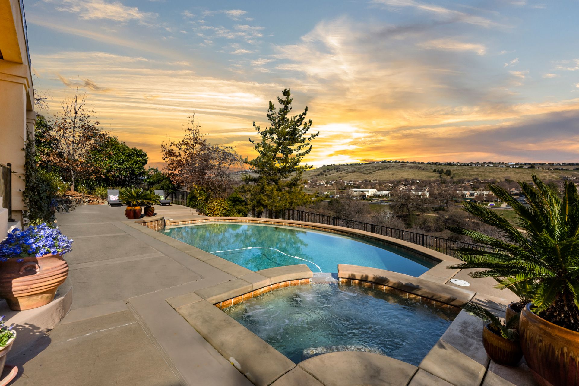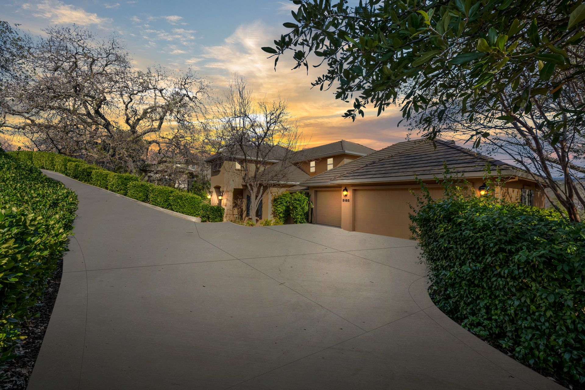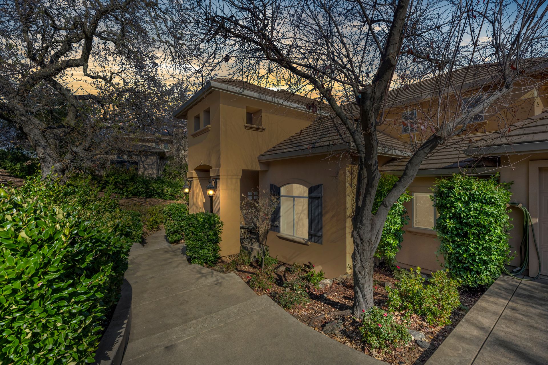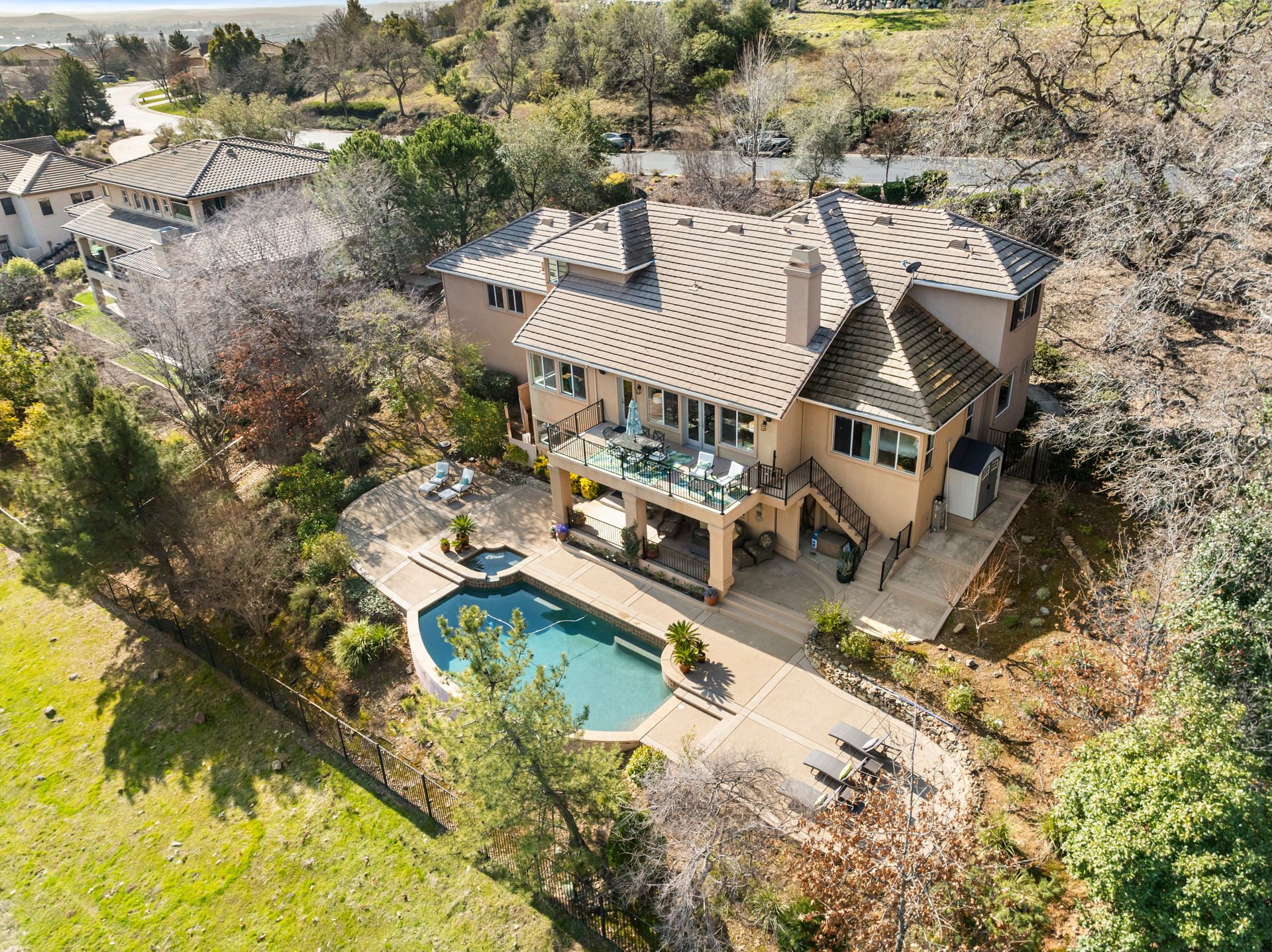 This CUSTOM BUILT home by Leu Construction seamlessly blends luxury, comfort and natures beauty! Nestled under the canopy of a MAJESTIC OAK on an approximately 0.49 acre lot overlooking the GREENBELT, it is nothing short of STUNNING! The home boast five bedrooms, four and one-half bathrooms, an office and retreat, 1 3/4" solid wood interior flooring and stunning updated baths with quartz countertops and stylish backsplashes. The kitchen is filled with natural light, a large center island, quartz countertops, and appliance updates, including an oven with an air fryer feature. The casual dining space is conveniently accessible to a butler's pantry with a sink, microwave and wine chiller plus there is a formal dining area. The great room boasts volume ceilings, abundant cabinetry and a gorgeous stone fireplace with access to the balcony to enjoy greenbelt views. The primary suite and office are on the main level. Not to miss ...the charming laundry room and primary bedroom closet! Upstairs is an en-suite, a built-in desk area in the hallway and two bedrooms and a bath. The lower level is ideal for guests with a retreat area, full bath and fifth bedroom. The oversized three-car garage has epoxy floors and lots of cabinetry. Entertain around a beautiful large pebble-tec pool/spa while you take in the VIEWS! Enjoy being minutes to SCHOOLS & EDH TOWN CENTER! Love and Live Serrano Life Style!