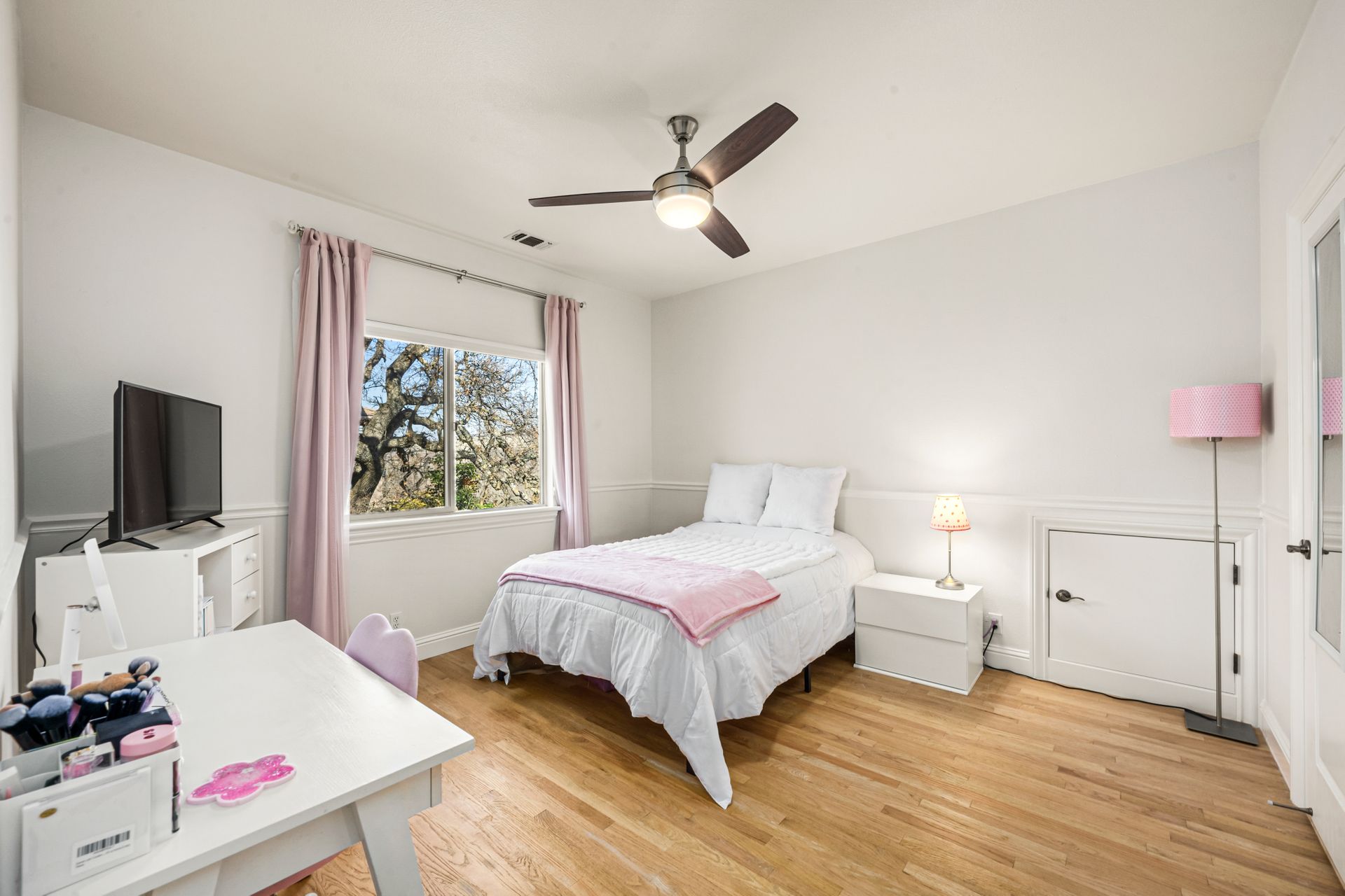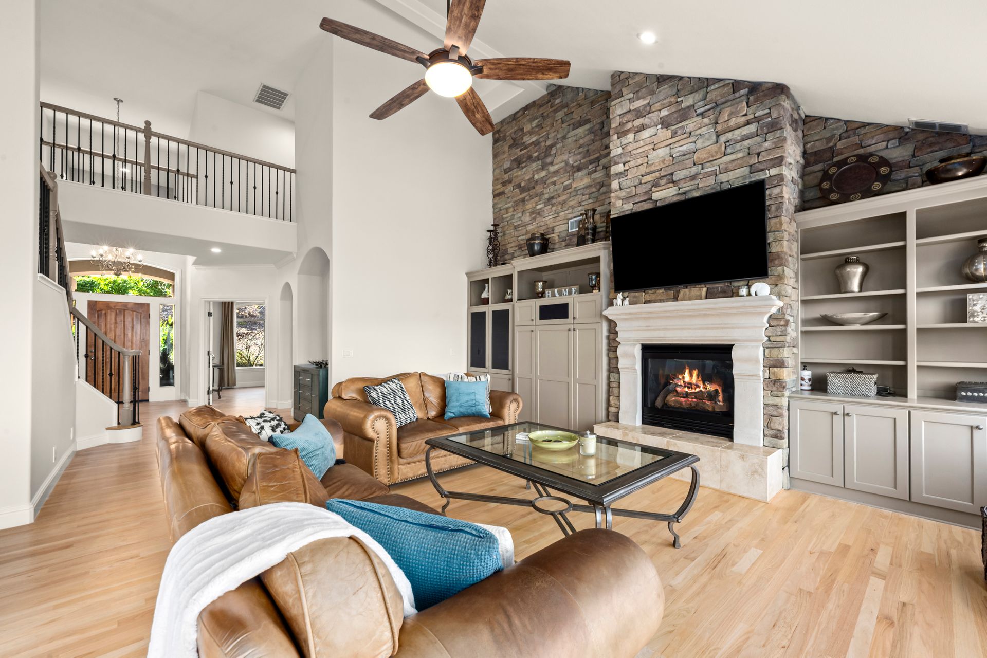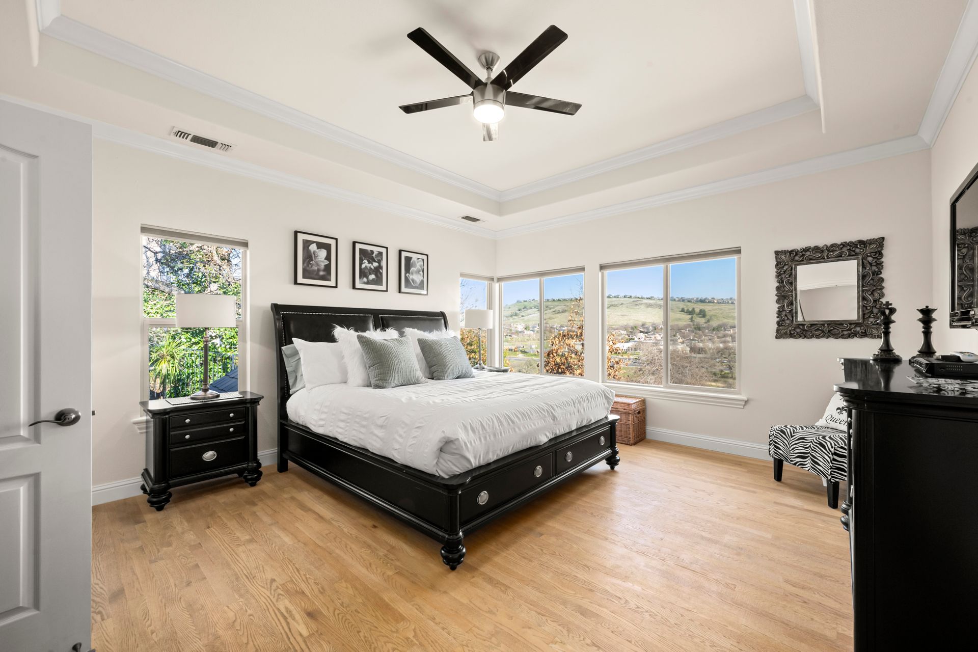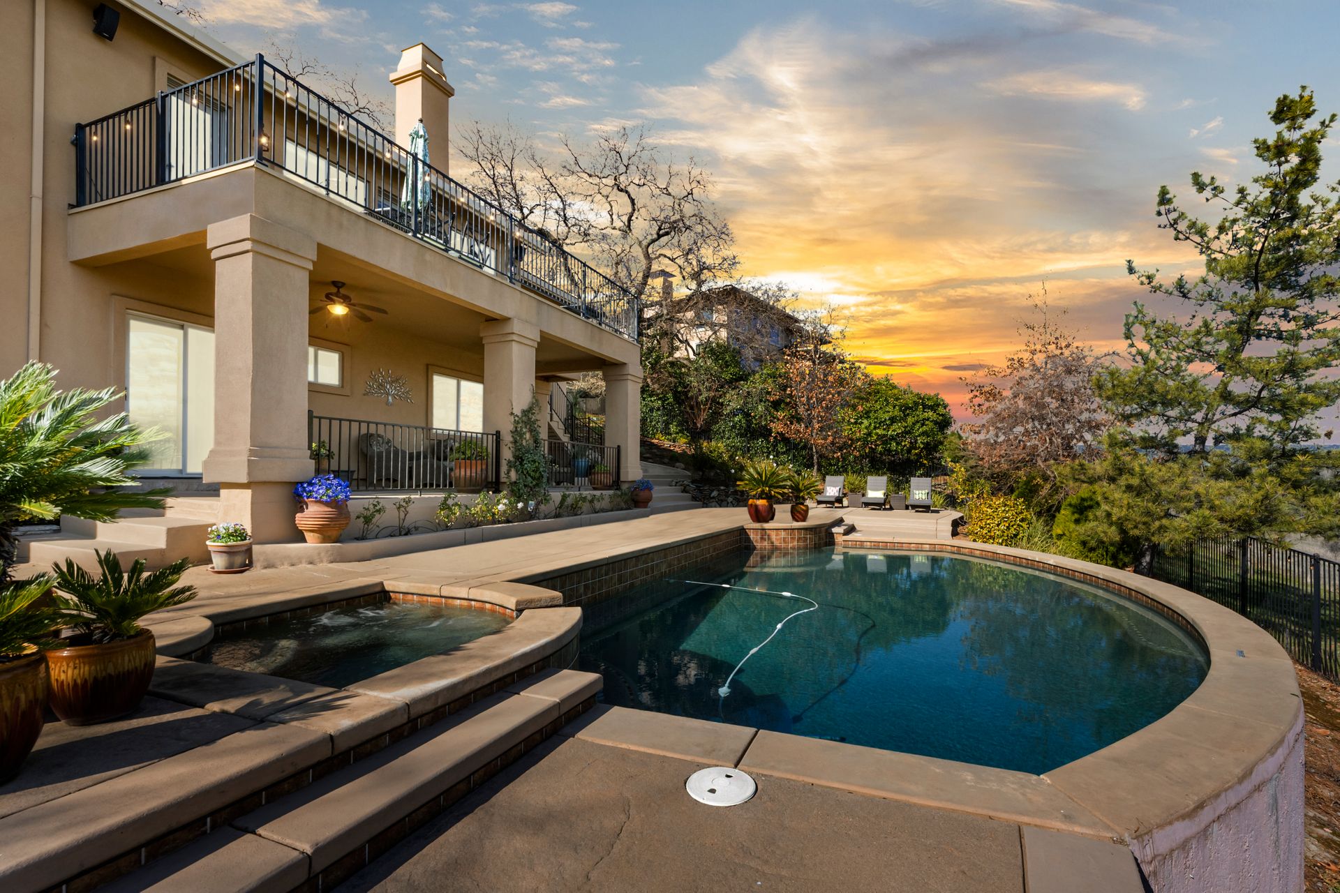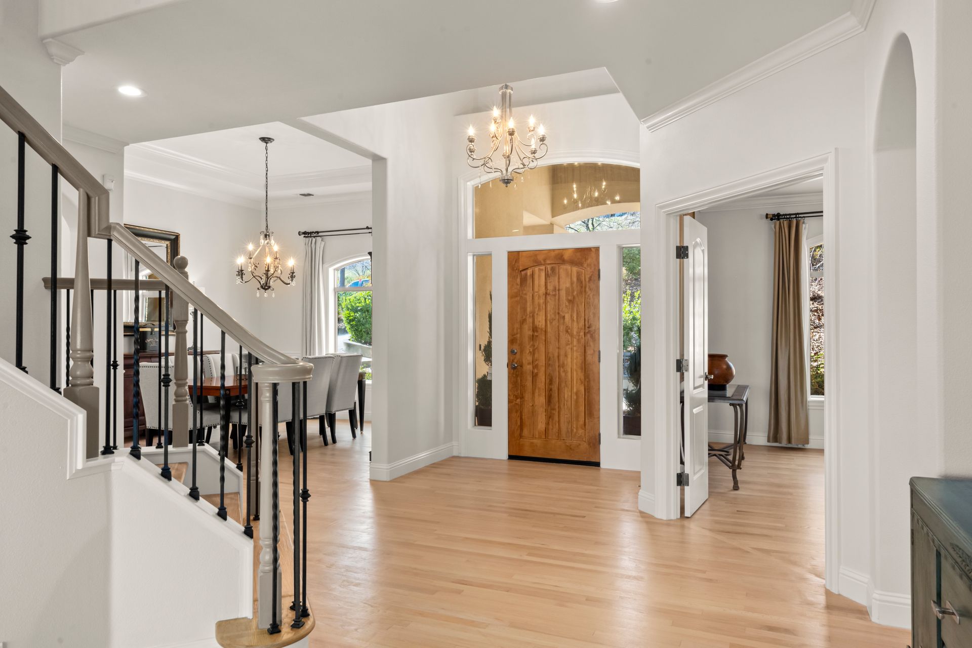 This CUSTOM BUILT home by Leu Construction seamlessly blends luxury, comfort and natures beauty! Nestled under the canopy of a MAJESTIC OAK on an approximately 0.49 acre lot overlooking the GREENBELT, it is nothing short of STUNNING! The home boast five bedrooms, four and one-half bathrooms, an office and retreat, 1 3/4" solid wood interior flooring and stunning updated baths with quartz countertops and stylish backsplashes. The kitchen is filled with natural light, a large center island, quartz countertops, and appliance updates, including an oven with an air fryer feature. The casual dining space is conveniently accessible to a butler's pantry with a sink, microwave and wine chiller plus there is a formal dining area. The great room boasts volume ceilings, abundant cabinetry and a gorgeous stone fireplace with access to the balcony to enjoy greenbelt views. The primary suite and office are on the main level. Not to miss ...the charming laundry room and primary bedroom closet! Upstairs is an en-suite, a built-in desk area in the hallway and two bedrooms and a bath. The lower level is ideal for guests with a retreat area, full bath and fifth bedroom. The oversized three-car garage has epoxy floors and lots of cabinetry. Entertain around a beautiful large pebble-tec pool/spa while you take in the VIEWS! Enjoy being minutes to SCHOOLS & EDH TOWN CENTER! Love and Live Serrano Life Style!
