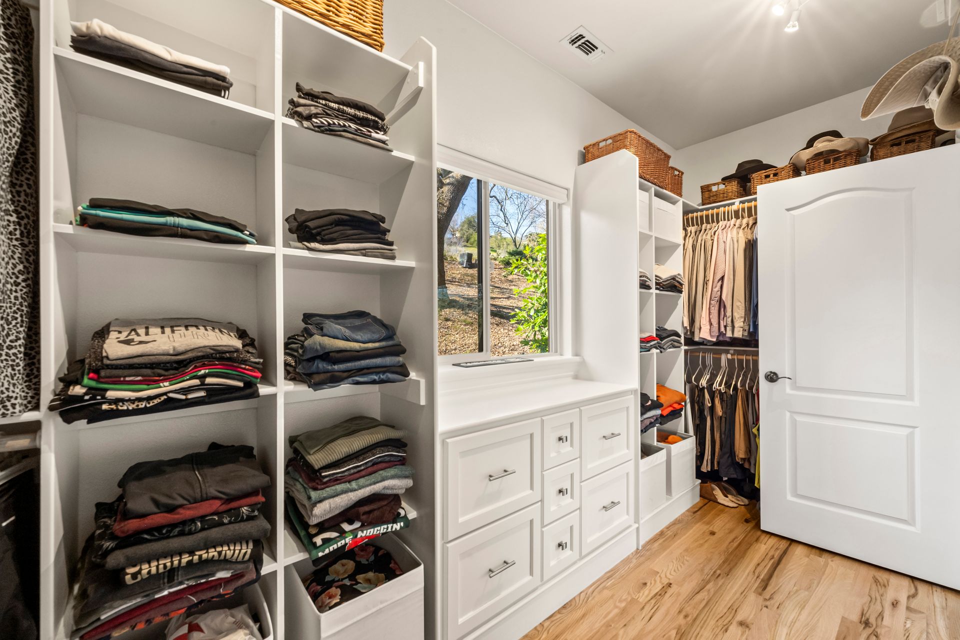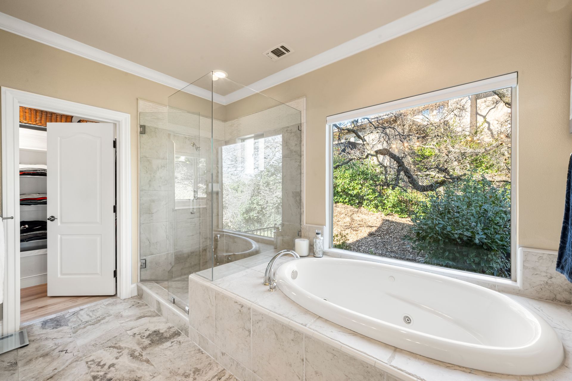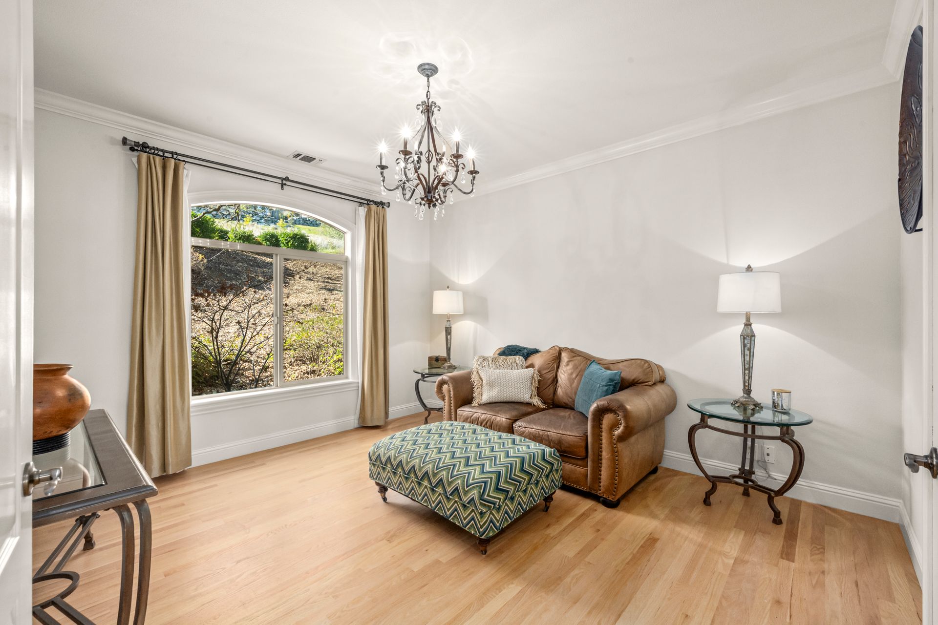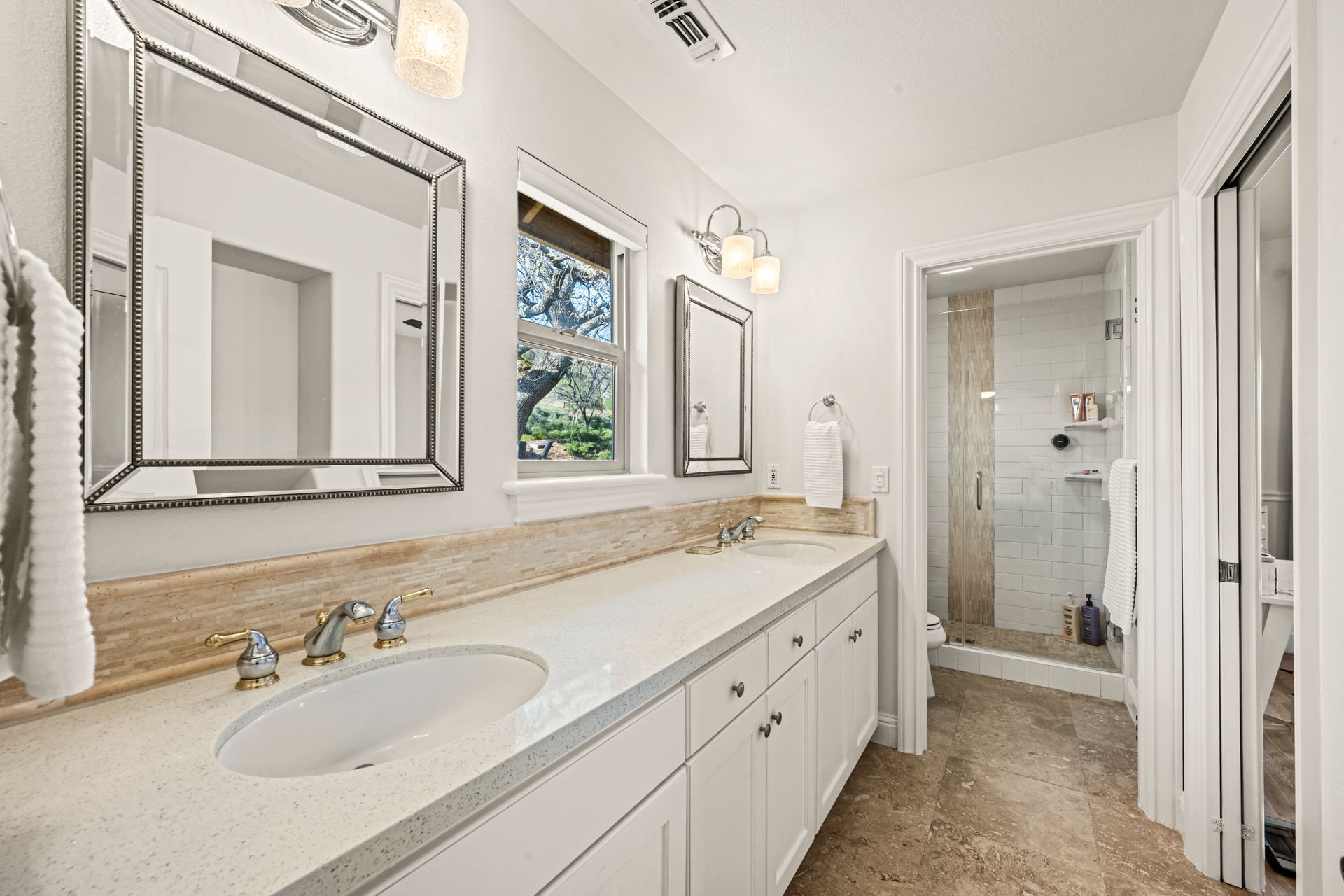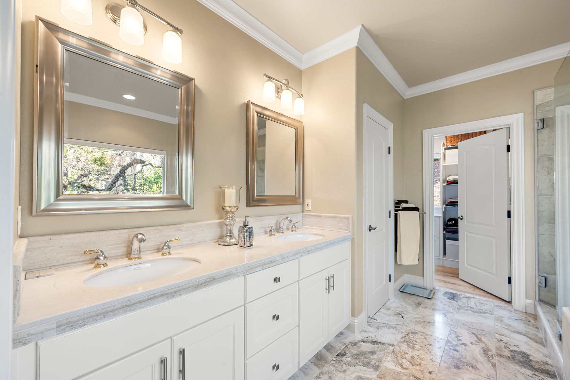 This CUSTOM BUILT home by Leu Construction seamlessly blends luxury, comfort and natures beauty! Nestled under the canopy of a MAJESTIC OAK on an approximately 0.49 acre lot overlooking the GREENBELT, it is nothing short of STUNNING! The home boast five bedrooms, four and one-half bathrooms, an office and retreat, 1 3/4" solid wood interior flooring and stunning updated baths with quartz countertops and stylish backsplashes. The kitchen is filled with natural light, a large center island, quartz countertops, and appliance updates, including an oven with an air fryer feature. The casual dining space is conveniently accessible to a butler's pantry with a sink, microwave and wine chiller plus there is a formal dining area. The great room boasts volume ceilings, abundant cabinetry and a gorgeous stone fireplace with access to the balcony to enjoy greenbelt views. The primary suite and office are on the main level. Not to miss ...the charming laundry room and primary bedroom closet! Upstairs is an en-suite, a built-in desk area in the hallway and two bedrooms and a bath. The lower level is ideal for guests with a retreat area, full bath and fifth bedroom. The oversized three-car garage has epoxy floors and lots of cabinetry. Entertain around a beautiful large pebble-tec pool/spa while you take in the VIEWS! Enjoy being minutes to SCHOOLS & EDH TOWN CENTER! Love and Live Serrano Life Style!