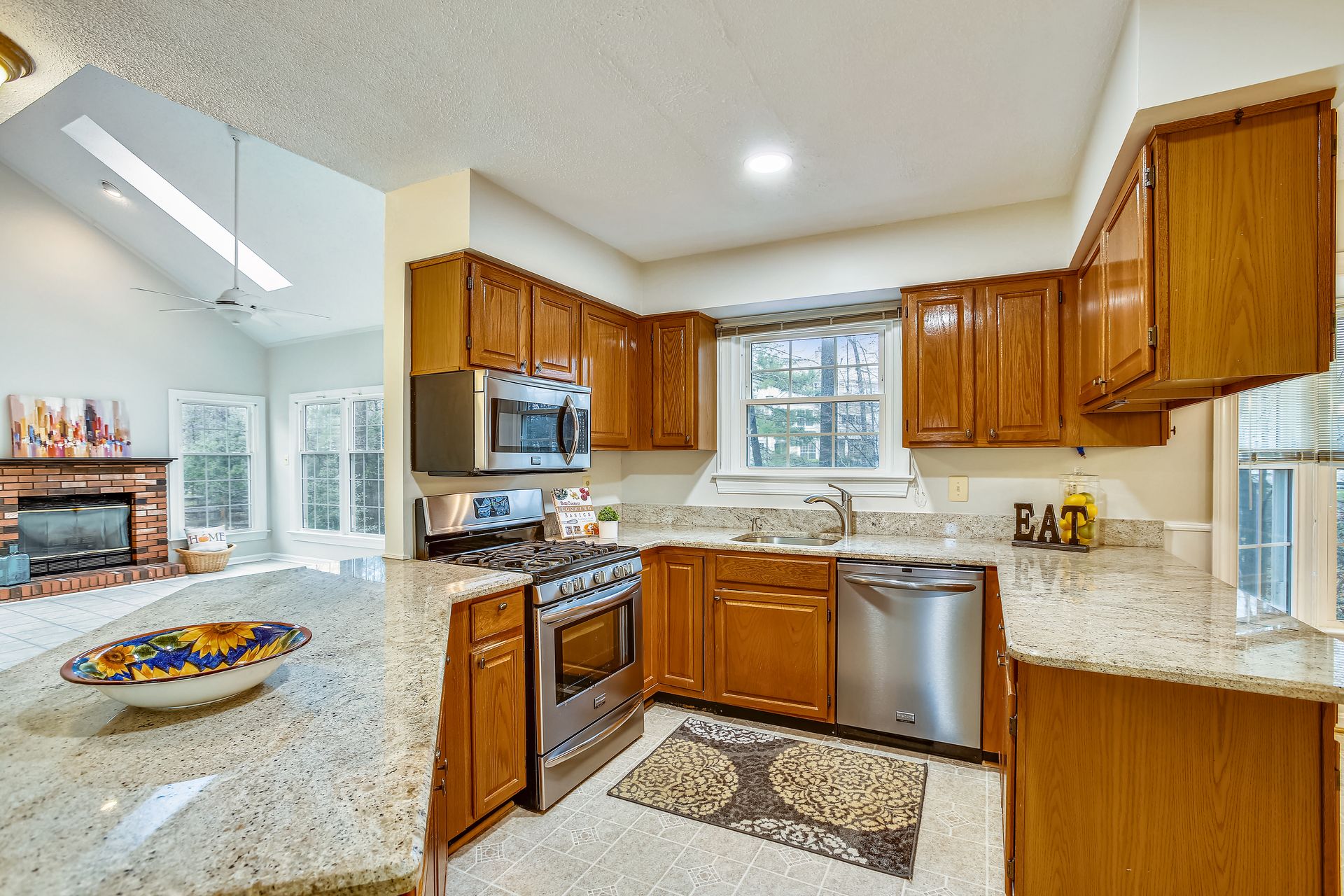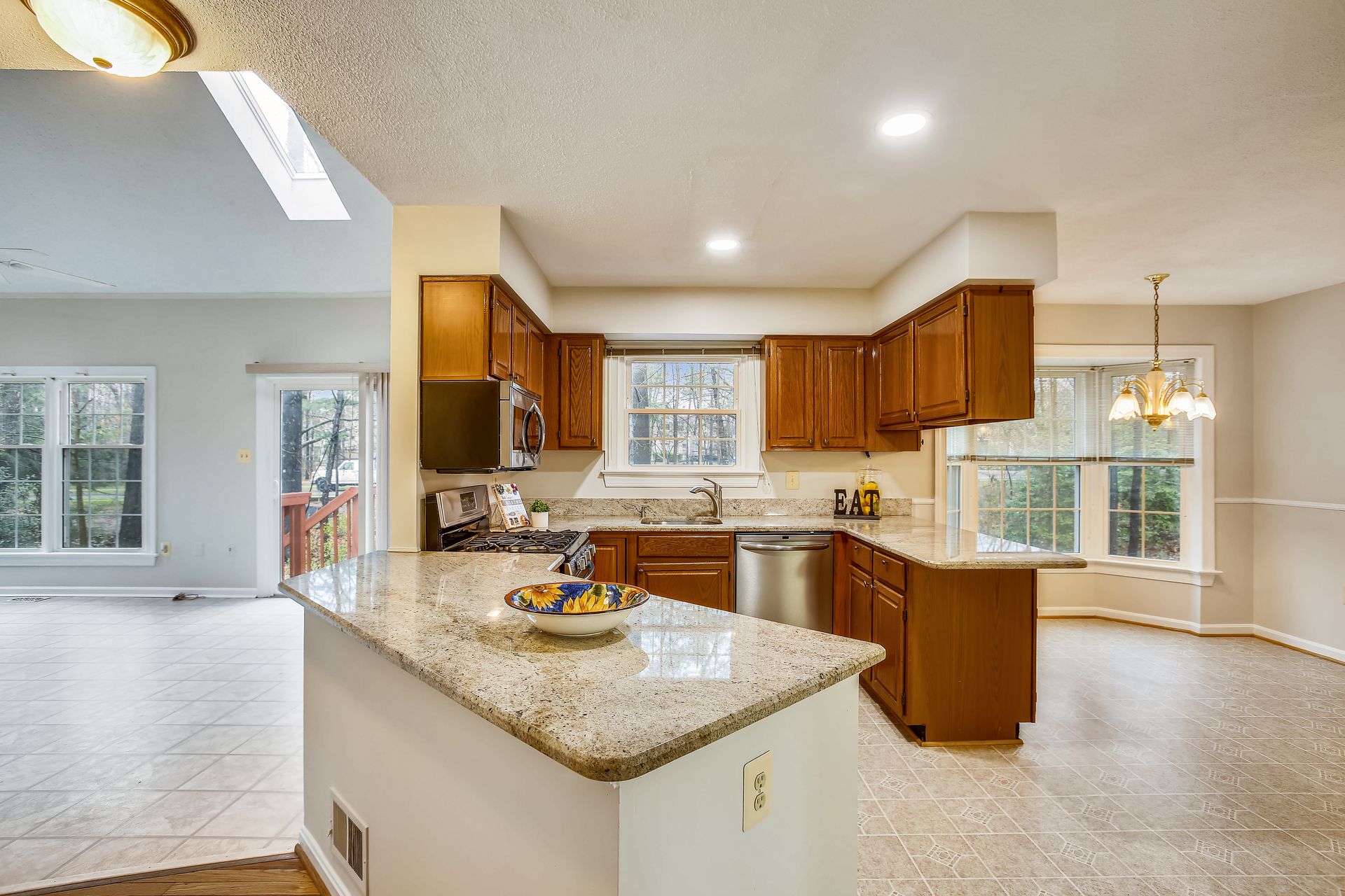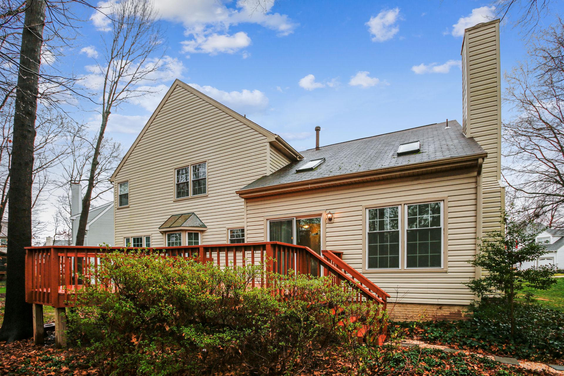 Welcome to this Sully Station home located at the end of a deep cul-de-sac. A Colonial by design but with a fun contemporary flair, this home offers an open inviting floor plan that is move-in ready. Easy flowing main level has neutral paint and no carpet. Fully-equipped granite Kitchen with two peninsula islands, big breakfast room and pantry. Generous-sized Family Room topped by soaring skylit vaulted ceiling plus gas fireplace - inviting all to gather. Big Sun Deck hugged by trees. Upper level enjoys a huge open Loft perfect for virtual school or office. Roomy Bedrooms including en-suite Primary Suite with dressing hall and private Bath. Lower Level Recreation and full Bath plus valuable storage or add more finished space. Popular Community with great perks: Clubhouse, Pool Complex, Sport Courts and Tot Lots are quick steps away. Super convenient Centreville location for easy access to retail/grocery, dining and public recreation. This one's an easy decision!