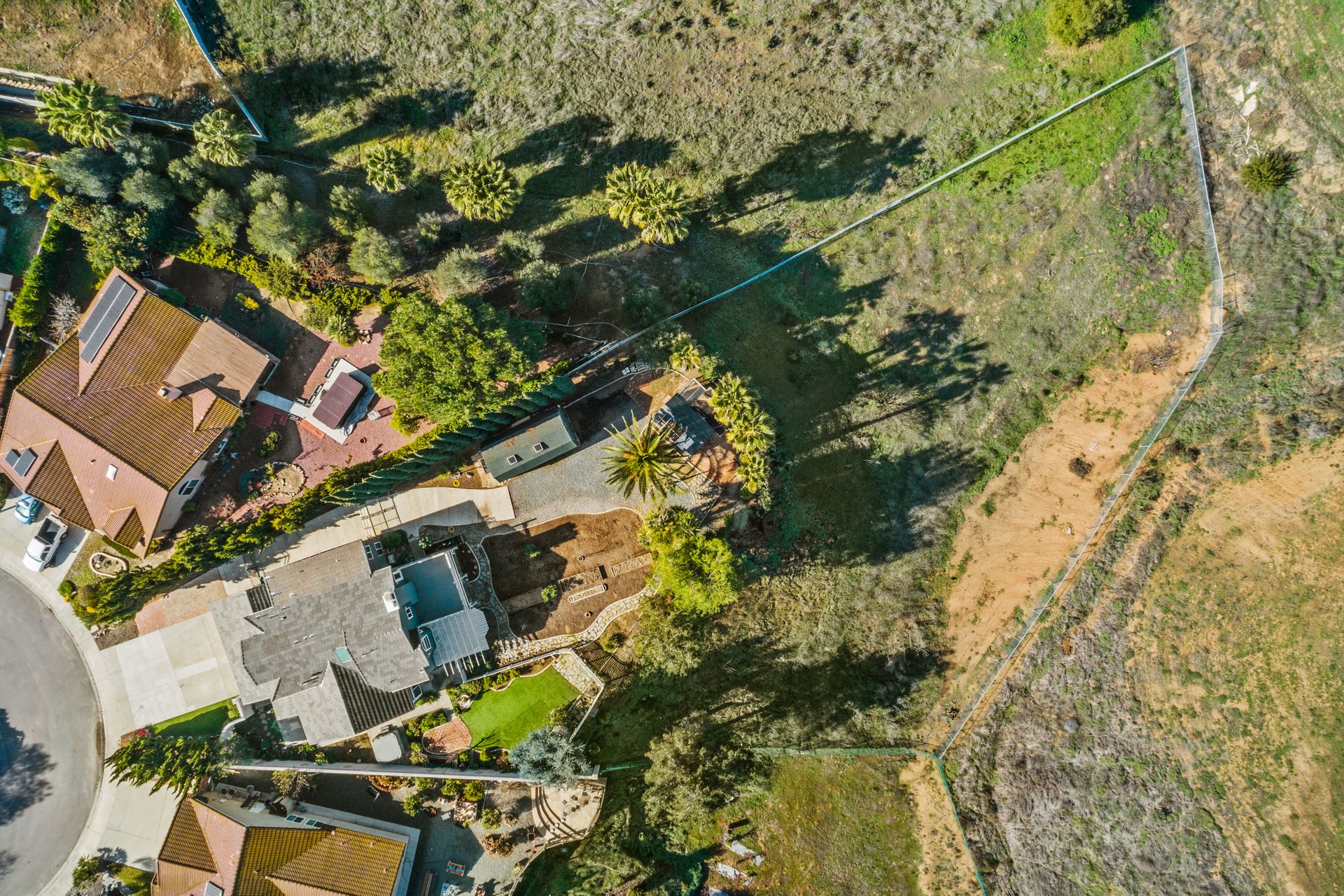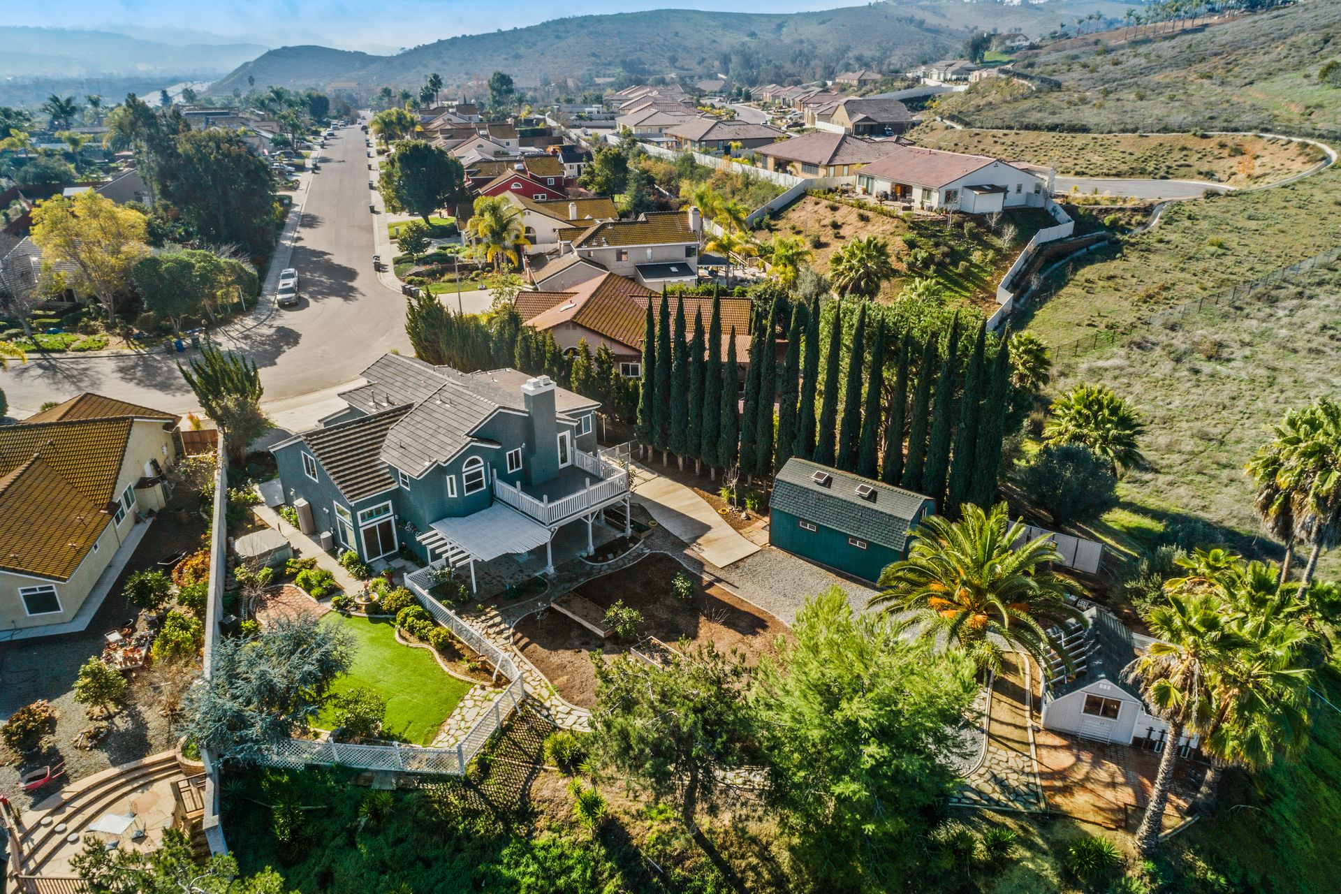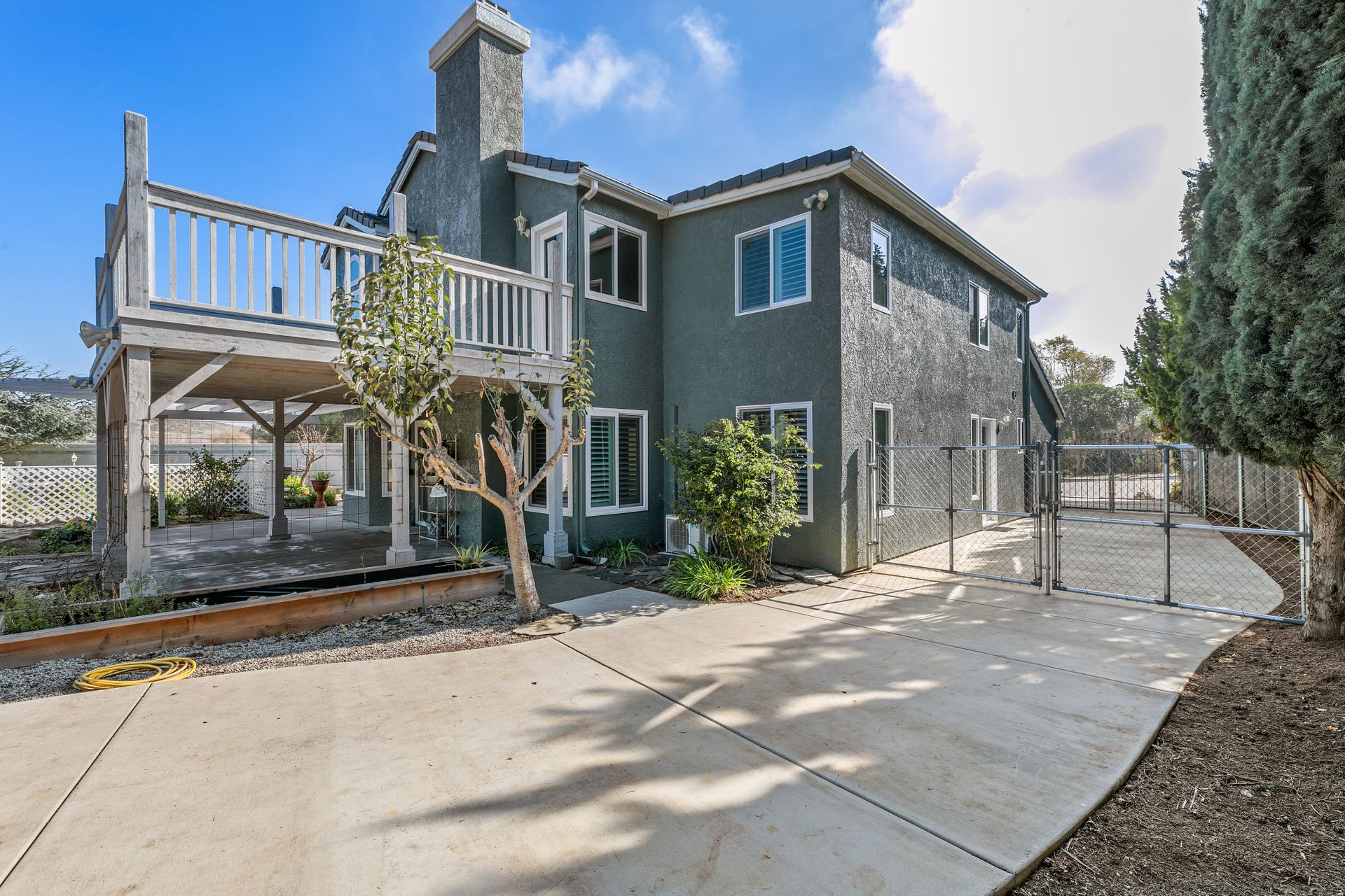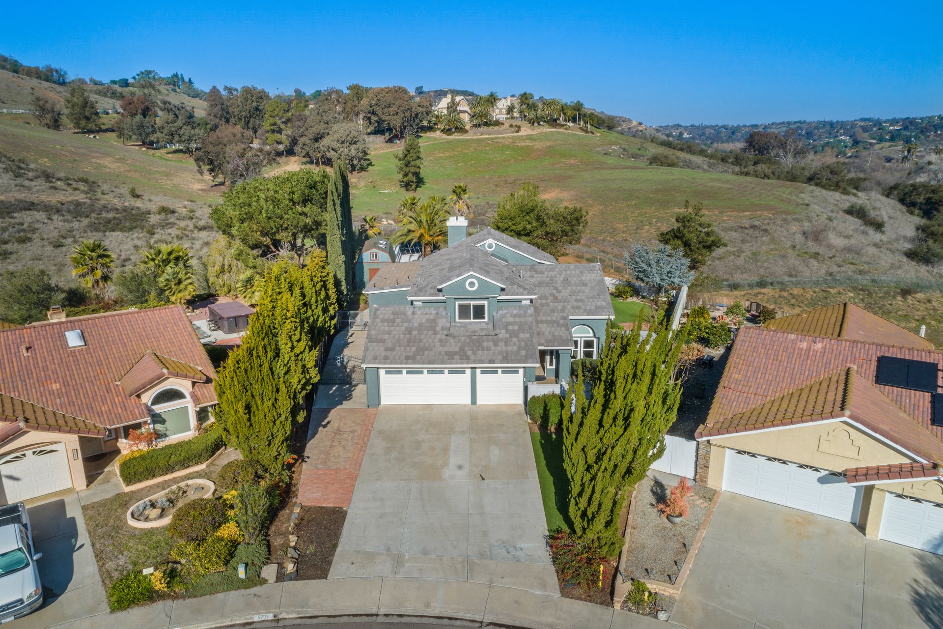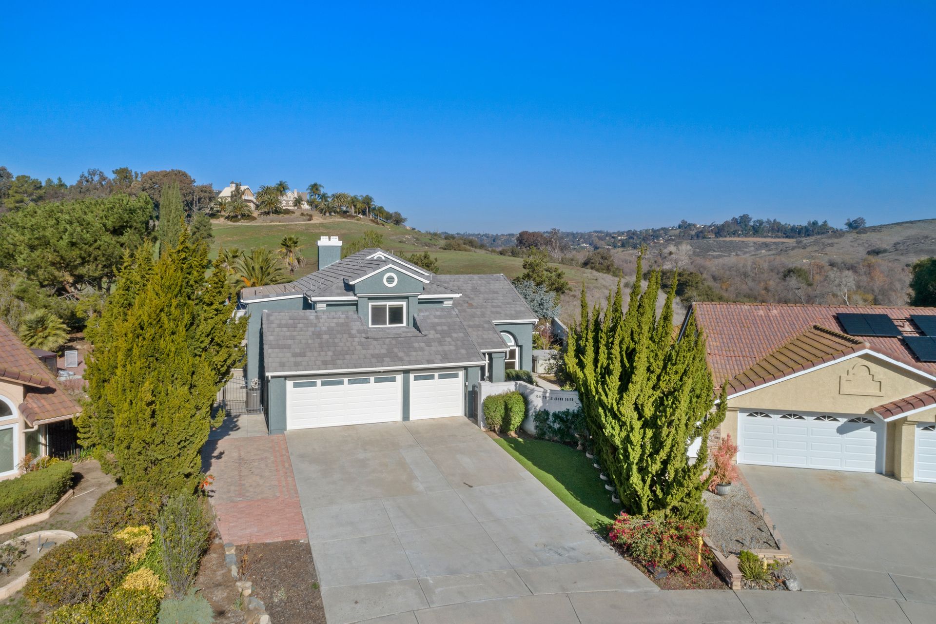 This beautiful home is situated on nearly an acre and features 3,169 sq ft, 5 bedrooms and 4 bathrooms, including an attached granny flat. You will access the home through a gated courtyard and upon entry, you will find a formal living room, dining room, kitchen, family room, and granny flat on the first floor. The granny flat has a bedroom, full bathroom, living room and kitchenette and can be accessed from within the home or via its own entrance from the exterior, offering great income potential. The upgraded kitchen features custom KraftMaid cabinets, granite counters, and stainless steel appliances. The kitchen opens up to the family room where you can enjoy the warmth of the cozy fireplace. Upstairs you will find the primary bedroom with a remodeled, en-suite bath, 3 additional guest bedrooms, a jack-and-jill bathroom, and a bonus room. There are two separate laundry areas - one in the garage and another on the 2nd floor in the bonus room. The large backyard offers endless possibilities with room for a pool, an ADU, or anything else you can dream up. The property line extends beyond the slope and is designated as open space providing beautiful views and privacy. Relax in the 6-person spa while sipping on a glass of wine and enjoying fresh fruit picked from one of the many fruit trees on the property including apple, peach, pear apple, pineapple guava, lemon, grapefruit, fig and nectarine. There is an abundance of storage between the approx 300 sq ft, 2-story shed/workshop and a smaller garden shed. The exterior of the home was recently painted in 2021 with a special fire retardant paint and a defensible space inspection has already been completed. This home is on sewer (not septic) and has natural gas (not propane). The roof, A/C and furnace are all approx. 12 years old. No HOA or Mellos Roos!