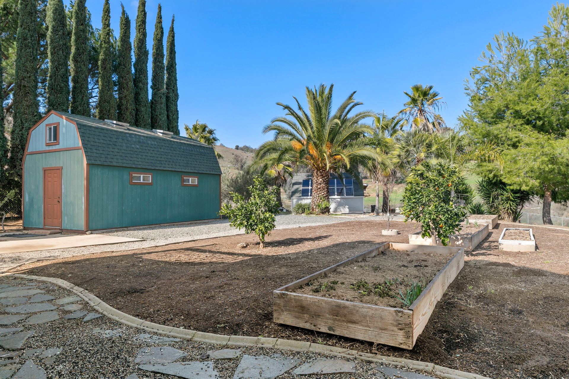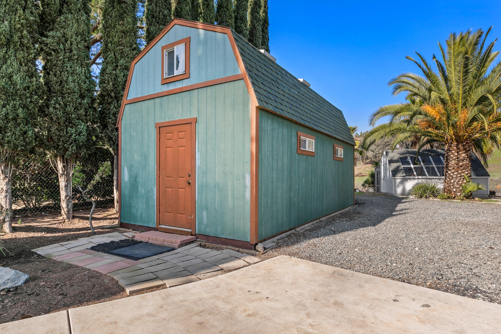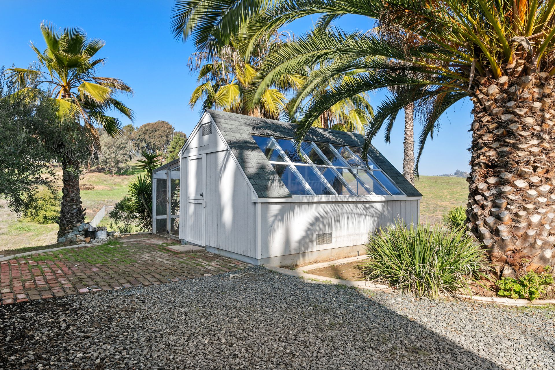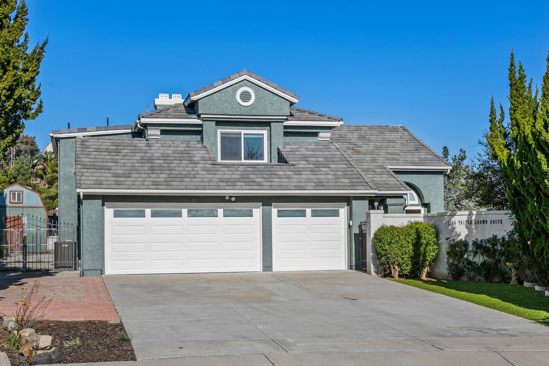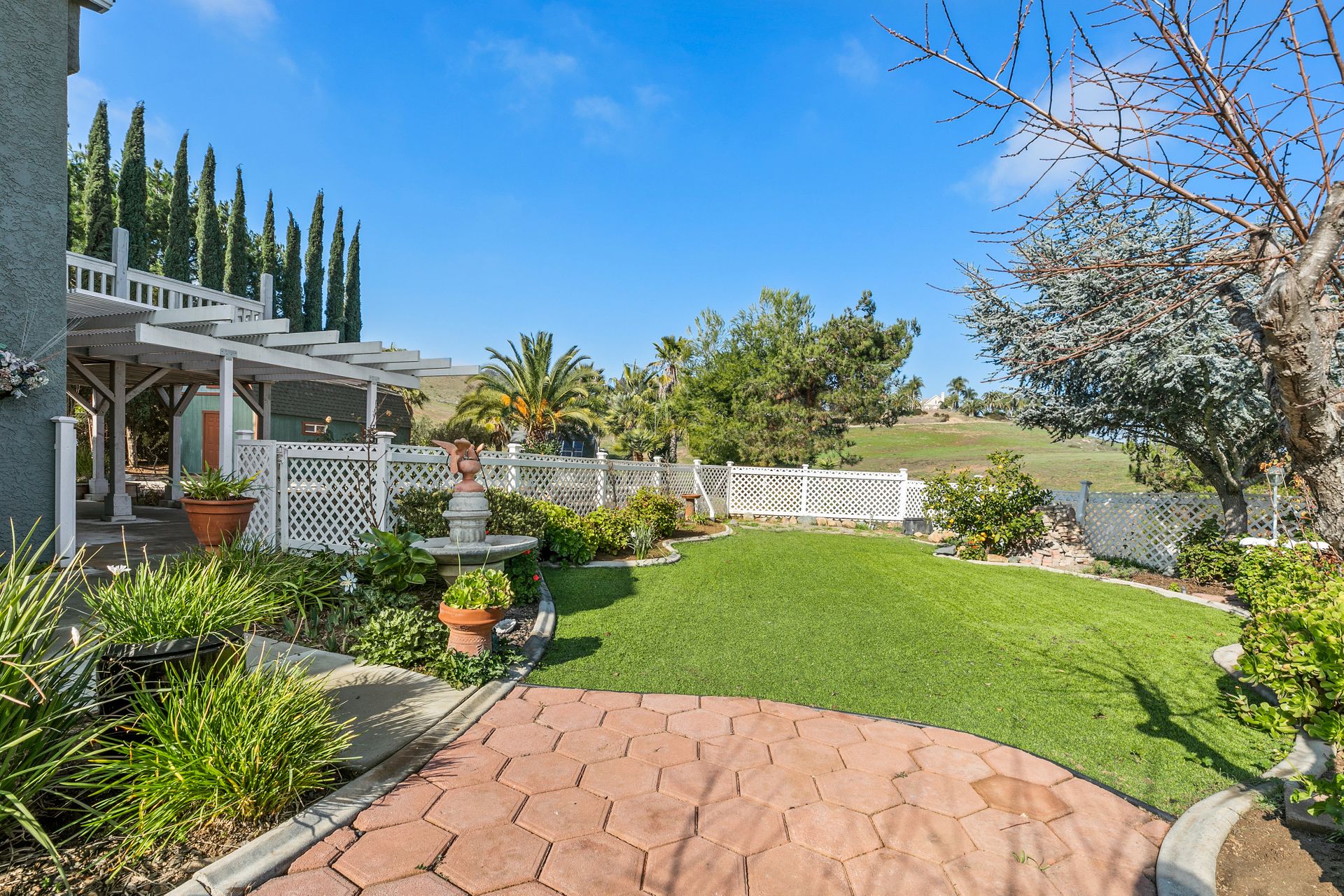 This beautiful home is situated on nearly an acre and features 3,169 sq ft, 5 bedrooms and 4 bathrooms, including an attached granny flat. You will access the home through a gated courtyard and upon entry, you will find a formal living room, dining room, kitchen, family room, and granny flat on the first floor. The granny flat has a bedroom, full bathroom, living room and kitchenette and can be accessed from within the home or via its own entrance from the exterior, offering great income potential. The upgraded kitchen features custom KraftMaid cabinets, granite counters, and stainless steel appliances. The kitchen opens up to the family room where you can enjoy the warmth of the cozy fireplace. Upstairs you will find the primary bedroom with a remodeled, en-suite bath, 3 additional guest bedrooms, a jack-and-jill bathroom, and a bonus room. There are two separate laundry areas - one in the garage and another on the 2nd floor in the bonus room. The large backyard offers endless possibilities with room for a pool, an ADU, or anything else you can dream up. The property line extends beyond the slope and is designated as open space providing beautiful views and privacy. Relax in the 6-person spa while sipping on a glass of wine and enjoying fresh fruit picked from one of the many fruit trees on the property including apple, peach, pear apple, pineapple guava, lemon, grapefruit, fig and nectarine. There is an abundance of storage between the approx 300 sq ft, 2-story shed/workshop and a smaller garden shed. The exterior of the home was recently painted in 2021 with a special fire retardant paint and a defensible space inspection has already been completed. This home is on sewer (not septic) and has natural gas (not propane). The roof, A/C and furnace are all approx. 12 years old. No HOA or Mellos Roos!