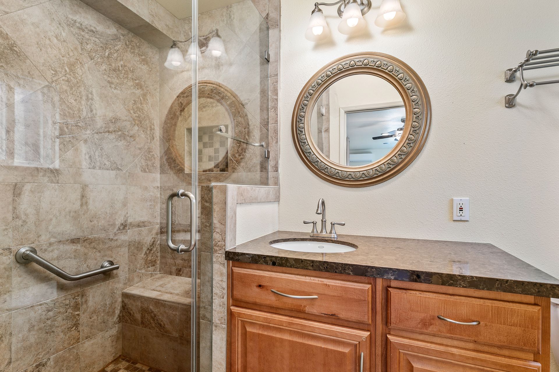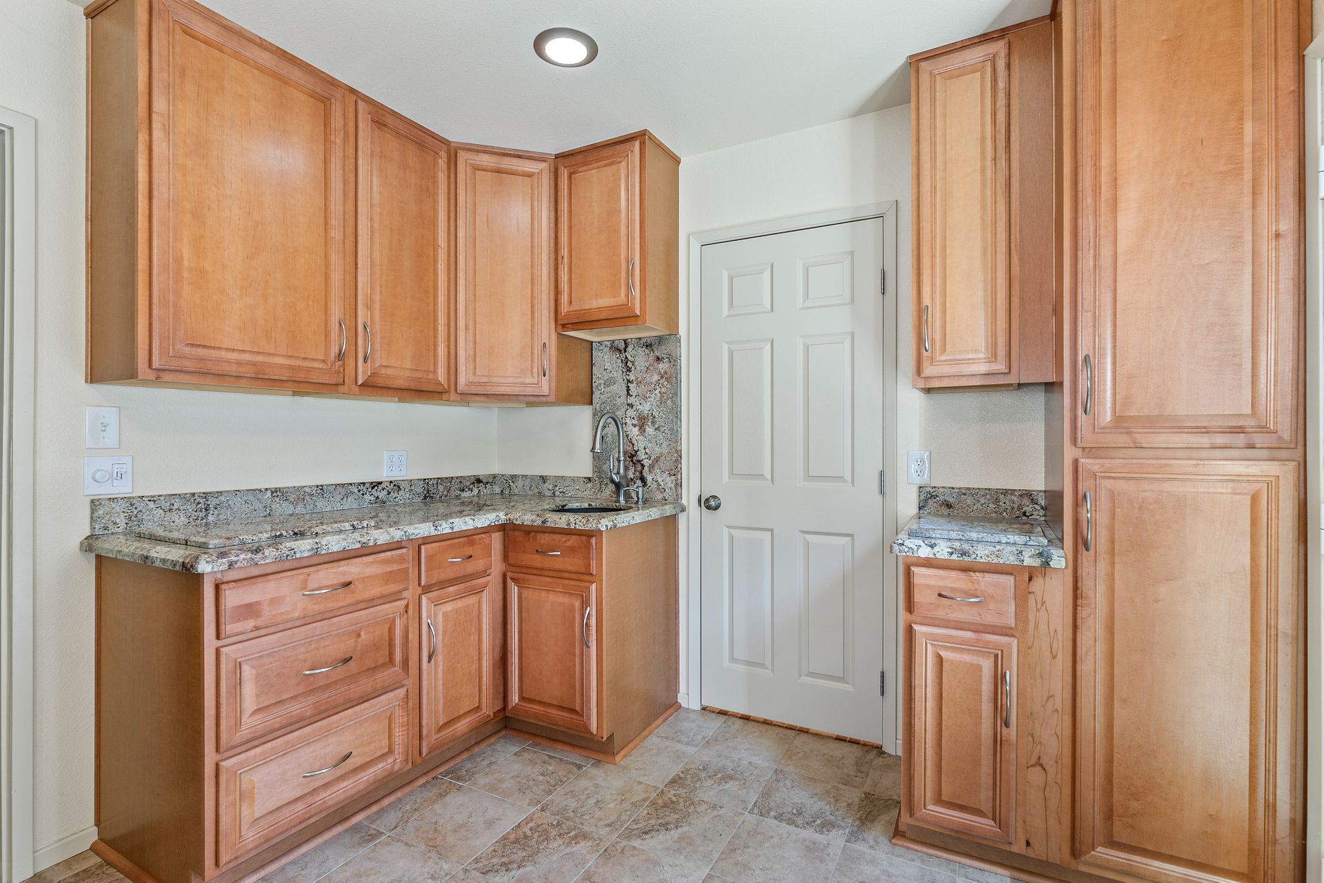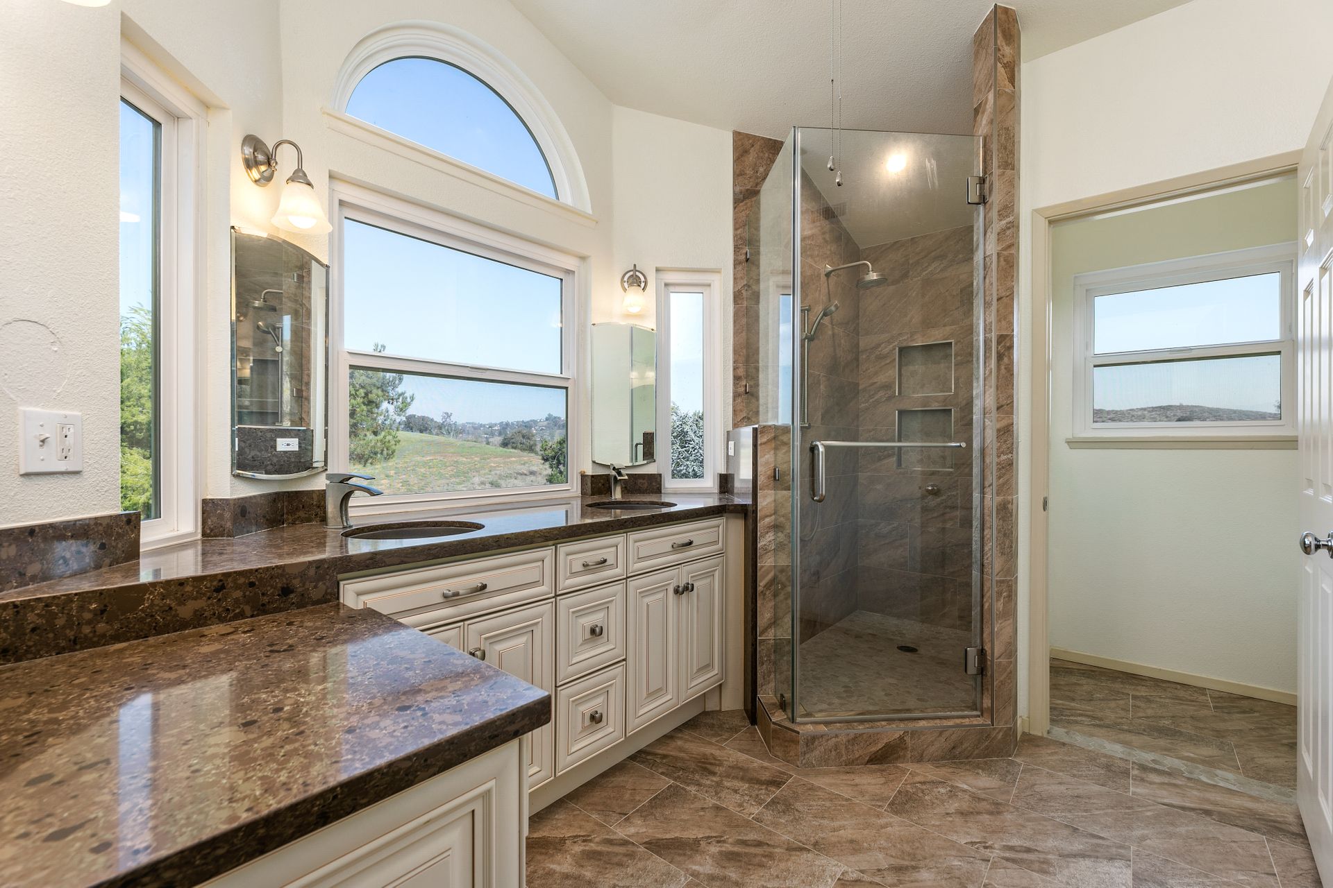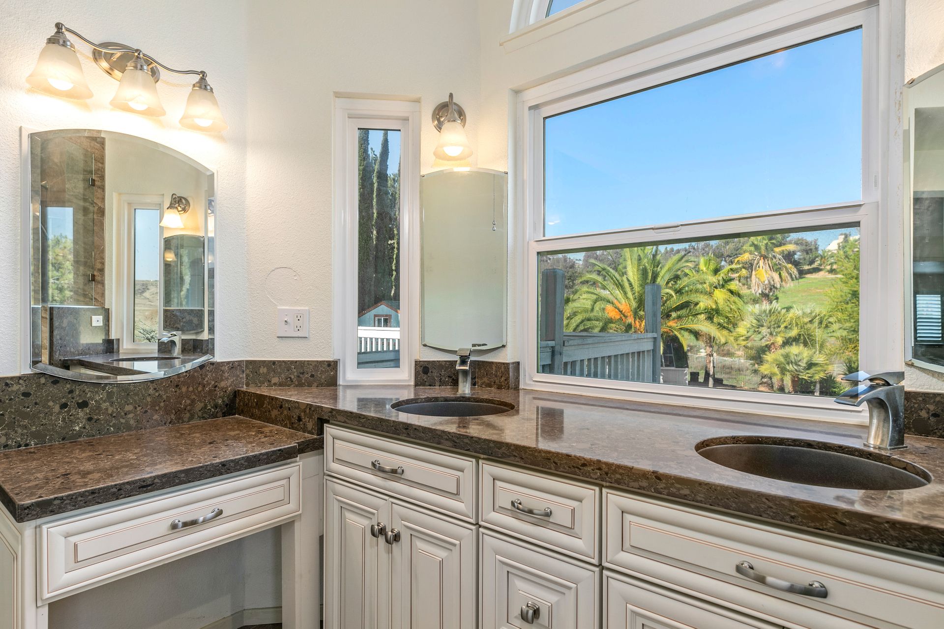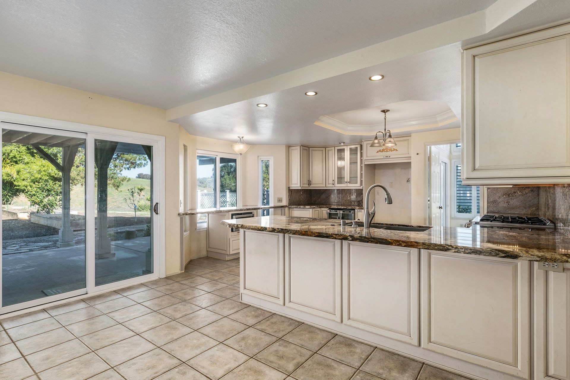 This beautiful home is situated on nearly an acre and features 3,169 sq ft, 5 bedrooms and 4 bathrooms, including an attached granny flat. You will access the home through a gated courtyard and upon entry, you will find a formal living room, dining room, kitchen, family room, and granny flat on the first floor. The granny flat has a bedroom, full bathroom, living room and kitchenette and can be accessed from within the home or via its own entrance from the exterior, offering great income potential. The upgraded kitchen features custom KraftMaid cabinets, granite counters, and stainless steel appliances. The kitchen opens up to the family room where you can enjoy the warmth of the cozy fireplace. Upstairs you will find the primary bedroom with a remodeled, en-suite bath, 3 additional guest bedrooms, a jack-and-jill bathroom, and a bonus room. There are two separate laundry areas - one in the garage and another on the 2nd floor in the bonus room. The large backyard offers endless possibilities with room for a pool, an ADU, or anything else you can dream up. The property line extends beyond the slope and is designated as open space providing beautiful views and privacy. Relax in the 6-person spa while sipping on a glass of wine and enjoying fresh fruit picked from one of the many fruit trees on the property including apple, peach, pear apple, pineapple guava, lemon, grapefruit, fig and nectarine. There is an abundance of storage between the approx 300 sq ft, 2-story shed/workshop and a smaller garden shed. The exterior of the home was recently painted in 2021 with a special fire retardant paint and a defensible space inspection has already been completed. This home is on sewer (not septic) and has natural gas (not propane). The roof, A/C and furnace are all approx. 12 years old. No HOA or Mellos Roos!