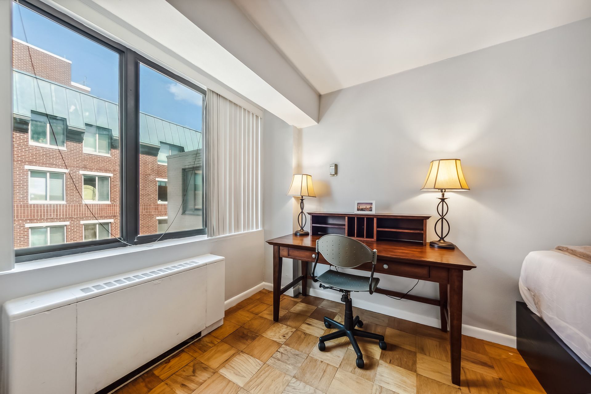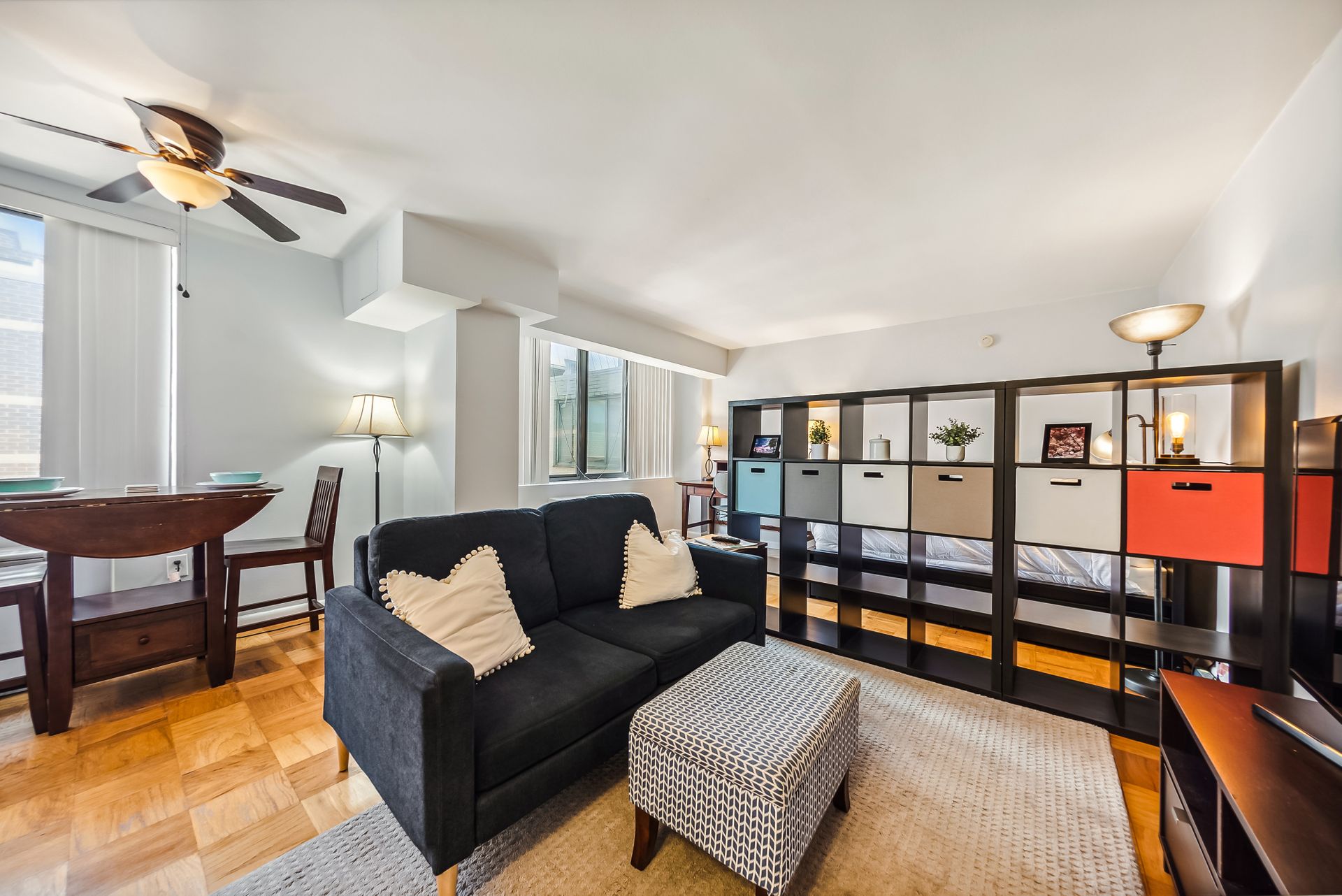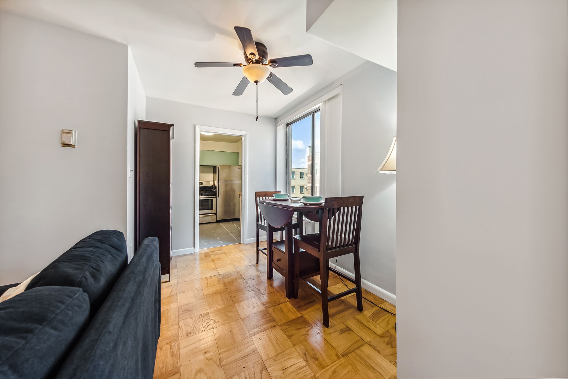 Time to ditch the dorm! Welcome to the Monroe House in the heart of Foggy Bottom. Located on a high floor—9th—this move-in ready studio is perfect for anyone looking for a centrally located condo. The modern kitchen has trendy sage green cabinetry, white countertops and stainless-steel appliances. The bathroom includes a tub shower. Bicycle storage room and possible condo garage rental parking space are often available in the building. The condo fee includes all utilities except cable, wifi and electricity.