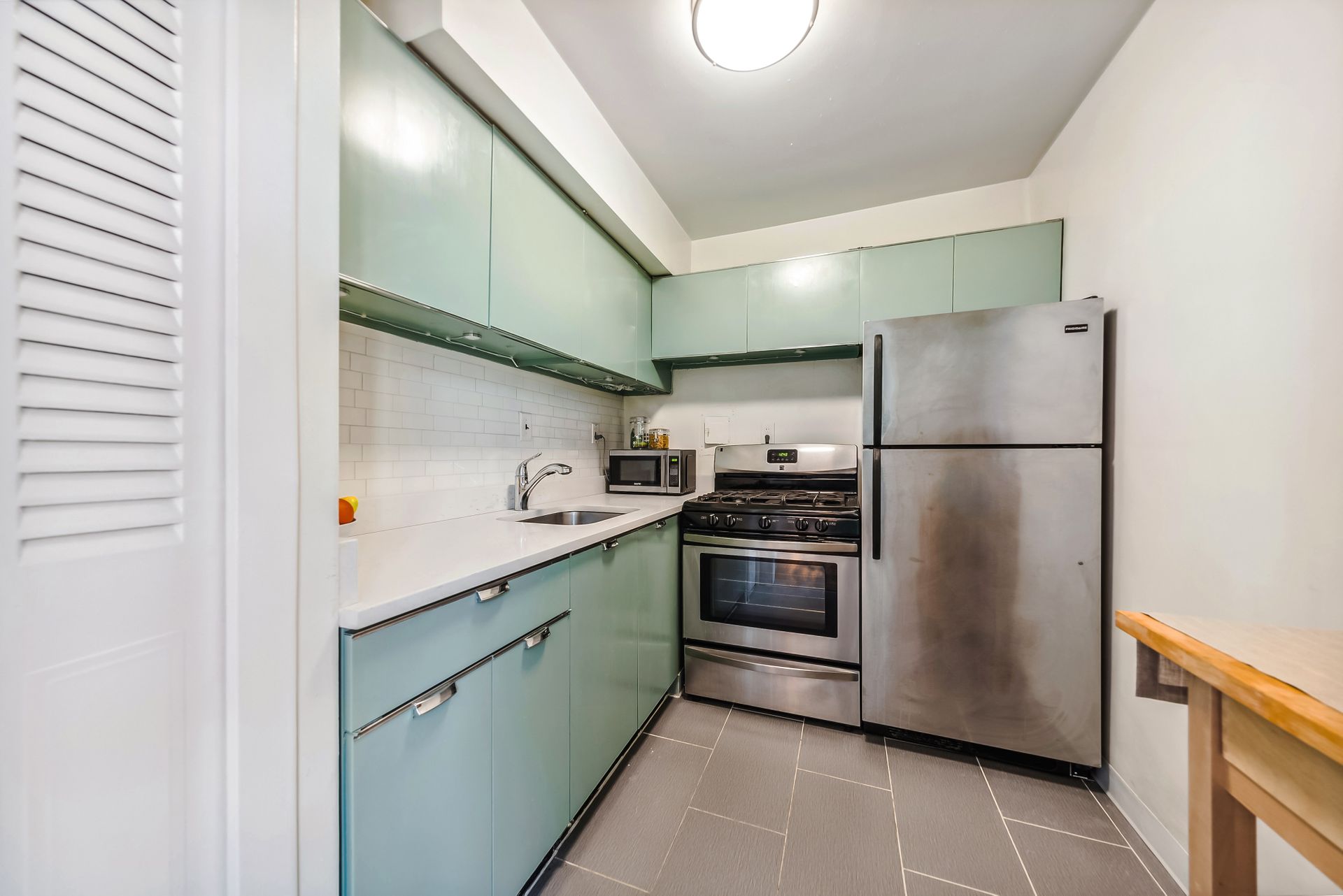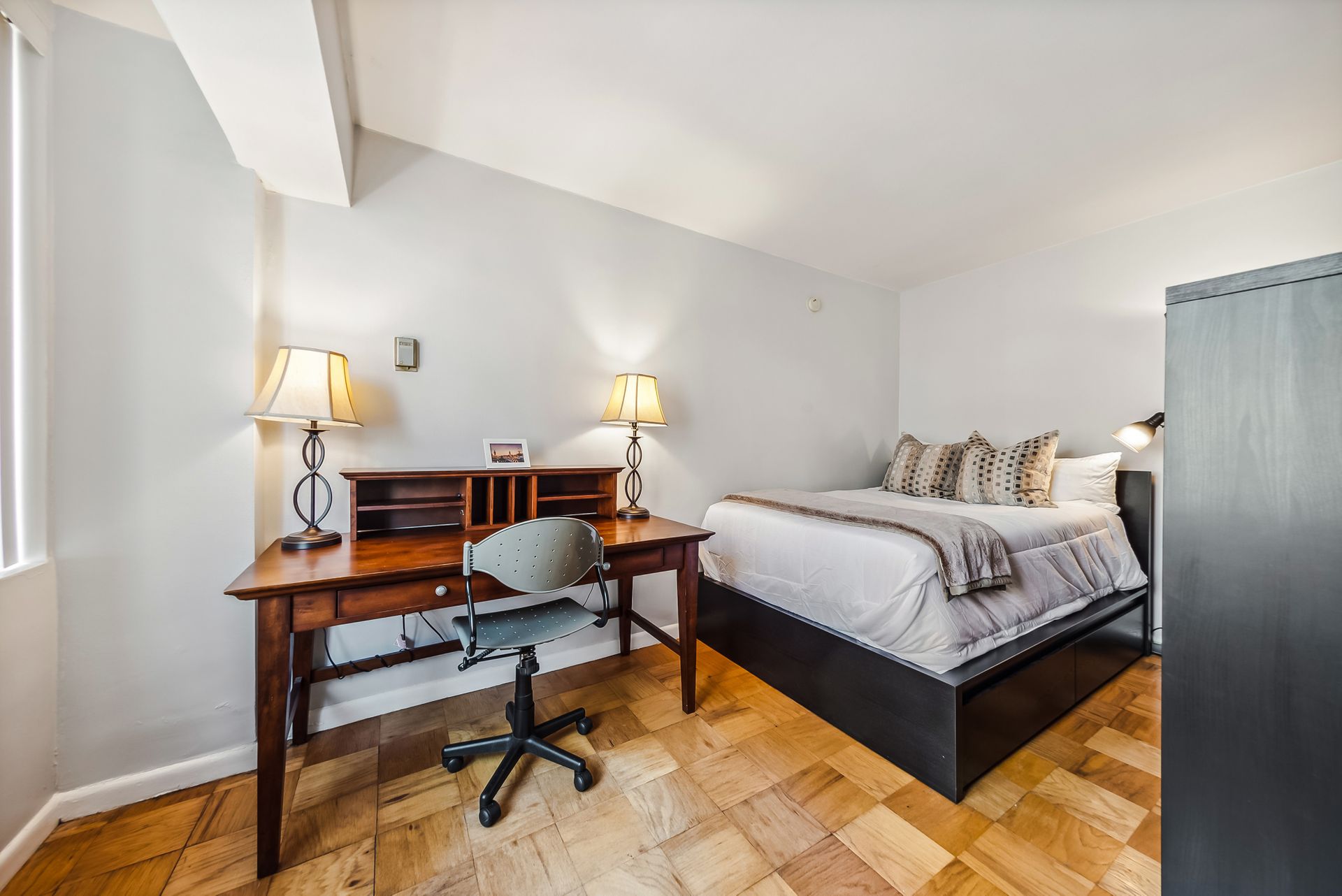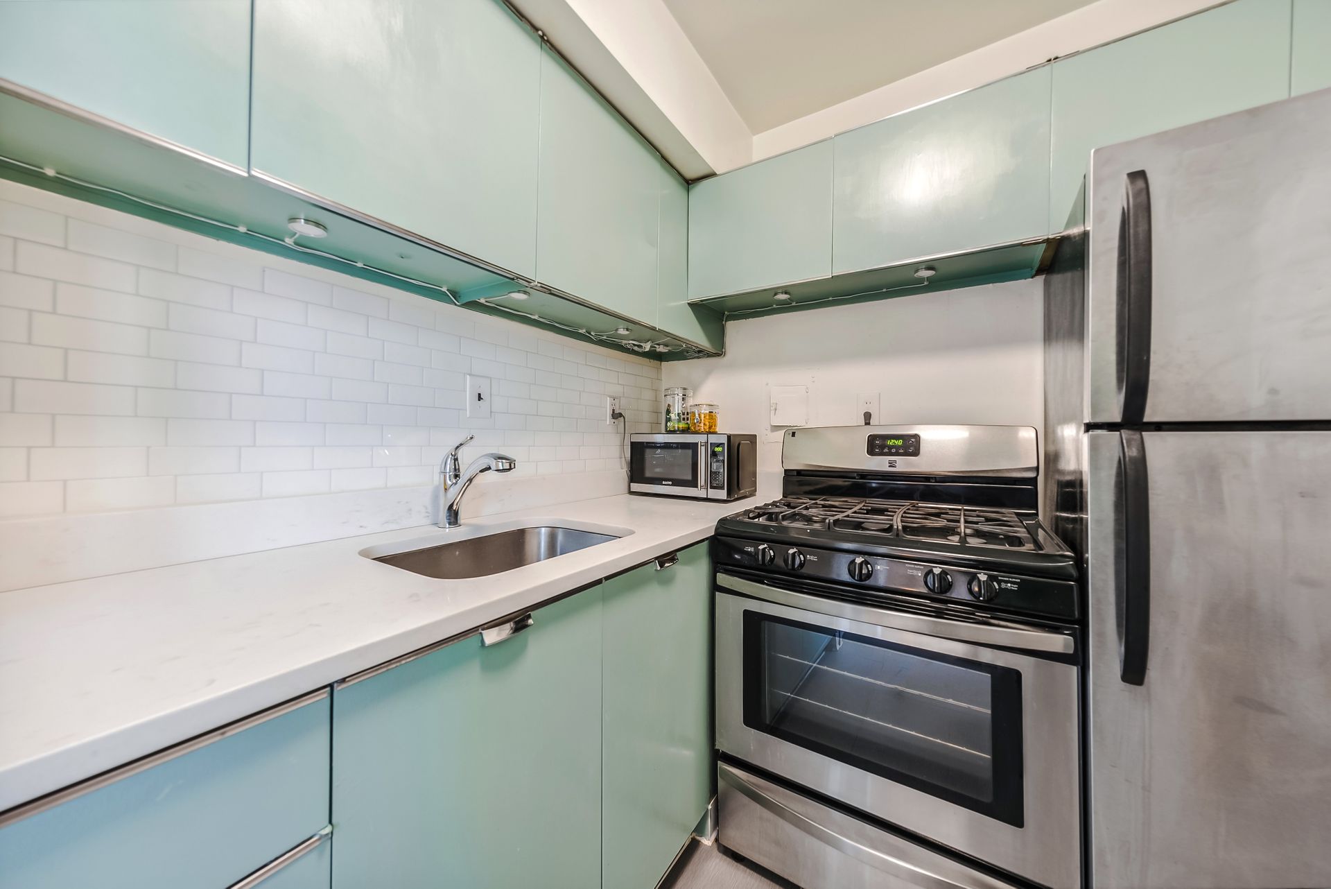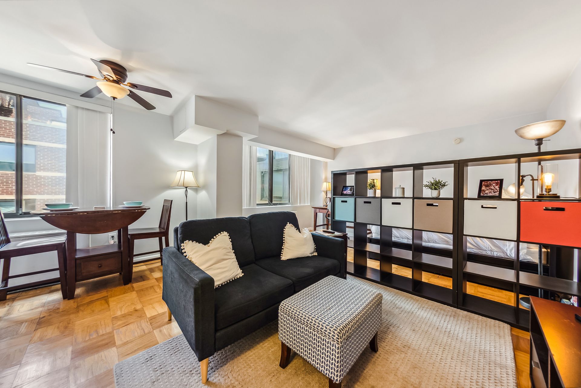 Time to ditch the dorm! Welcome to the Monroe House in the heart of Foggy Bottom. Located on a high floor—9th—this move-in ready studio is perfect for anyone looking for a centrally located condo. The modern kitchen has trendy sage green cabinetry, white countertops and stainless-steel appliances. The bathroom includes a tub shower. Bicycle storage room and possible condo garage rental parking space are often available in the building. The condo fee includes all utilities except cable, wifi and electricity.