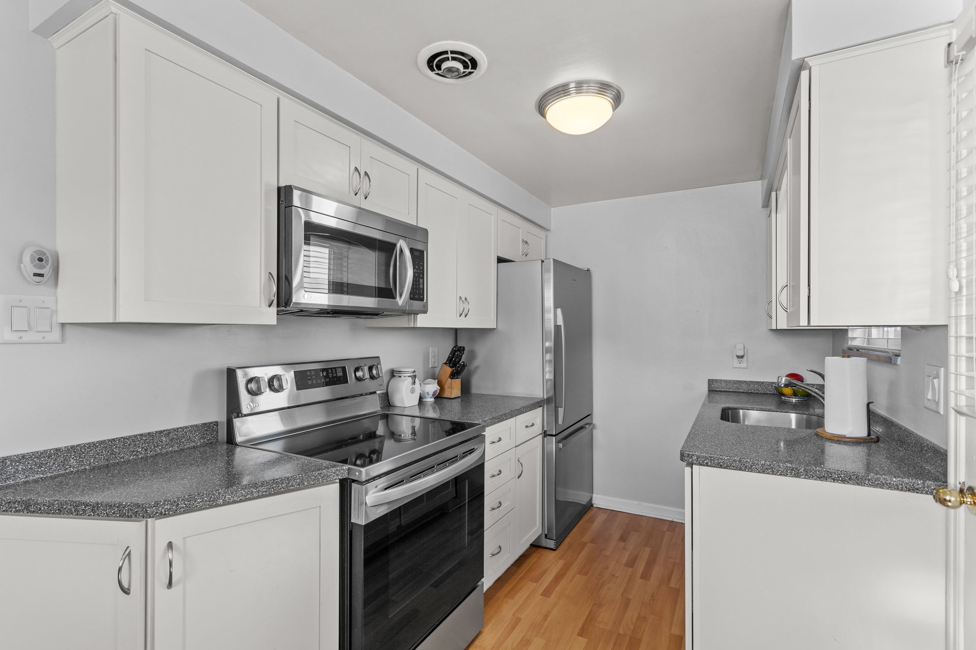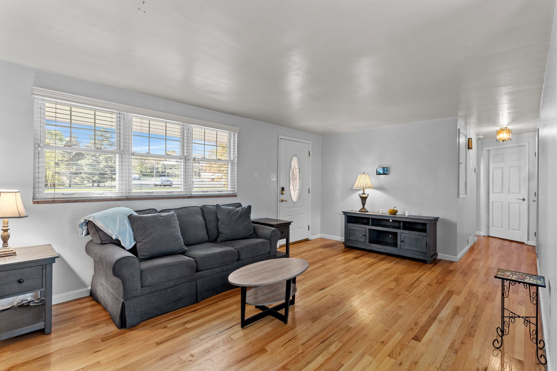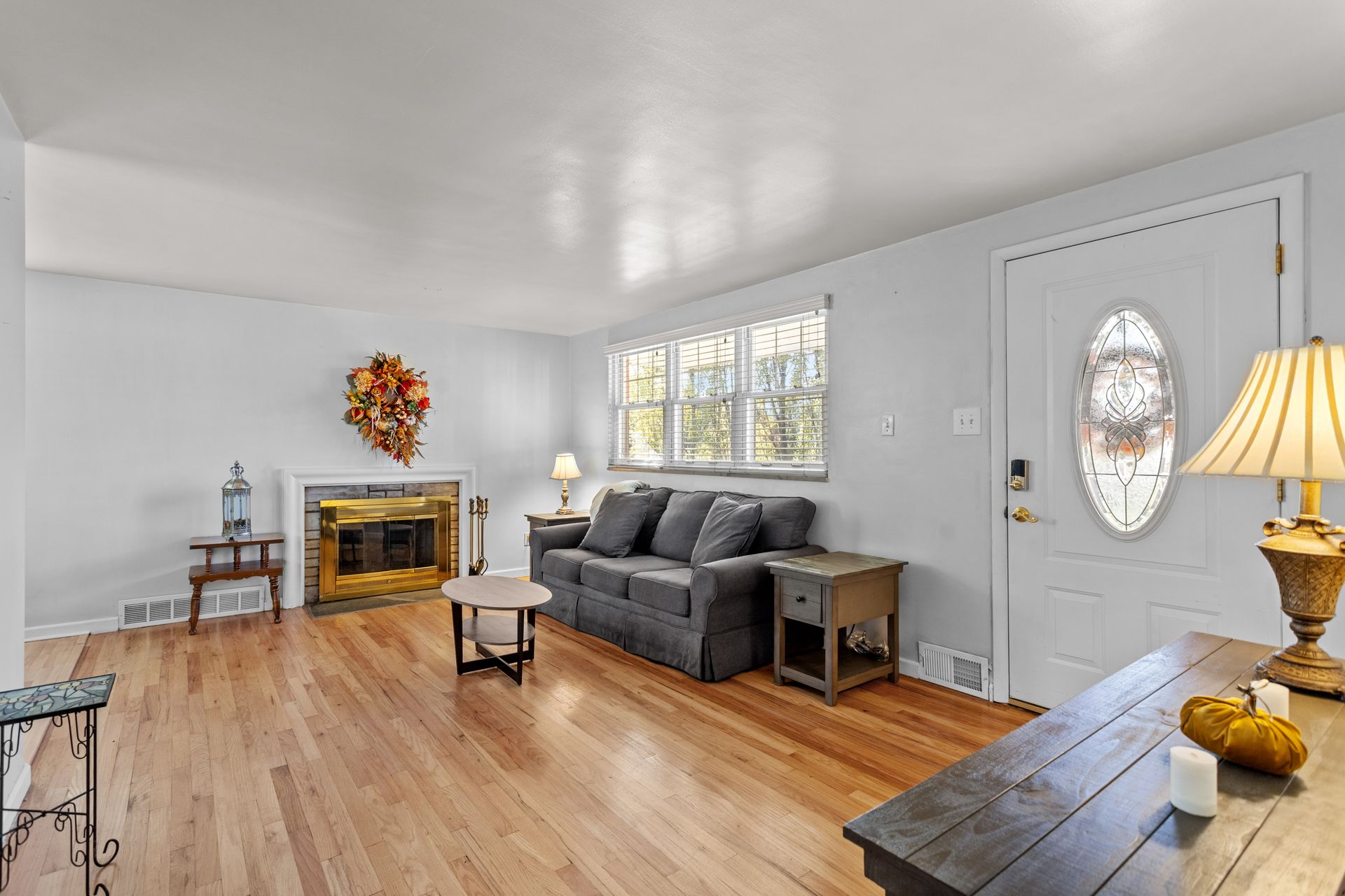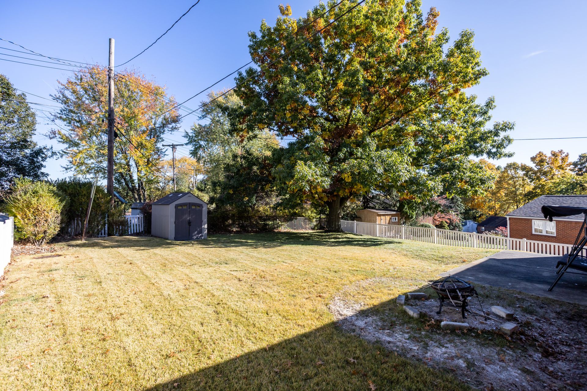 Enter into this three-bedroom brick ranch that seamlessly blends modern updates with timeless charm. Refinished hardwood floors welcome you throughout the main living areas. The updated kitchen boasts stainless steel appliances, white cabinetry, and solid surface countertops, with a sink window overlooking the picturesque, level, fenced backyard. Enjoy outdoor living on the patio, under the shade of a mature tree, with a convenient storage shed. A decorative fireplace adds character to the living room, and ceiling fans in the bedrooms ensure comfort. The daylight game room with Pella windows offers versatility, while a small den and a spacious laundry room add practicality. A one-car garage with an automatic door opener, an extra-wide driveway, plus central heating and cooling complete this cozy home. It's conveniently located close to Caste Village shops, restaurants and professional services, nestled between Rts 88 and 51, not far from South Hills Country Club.