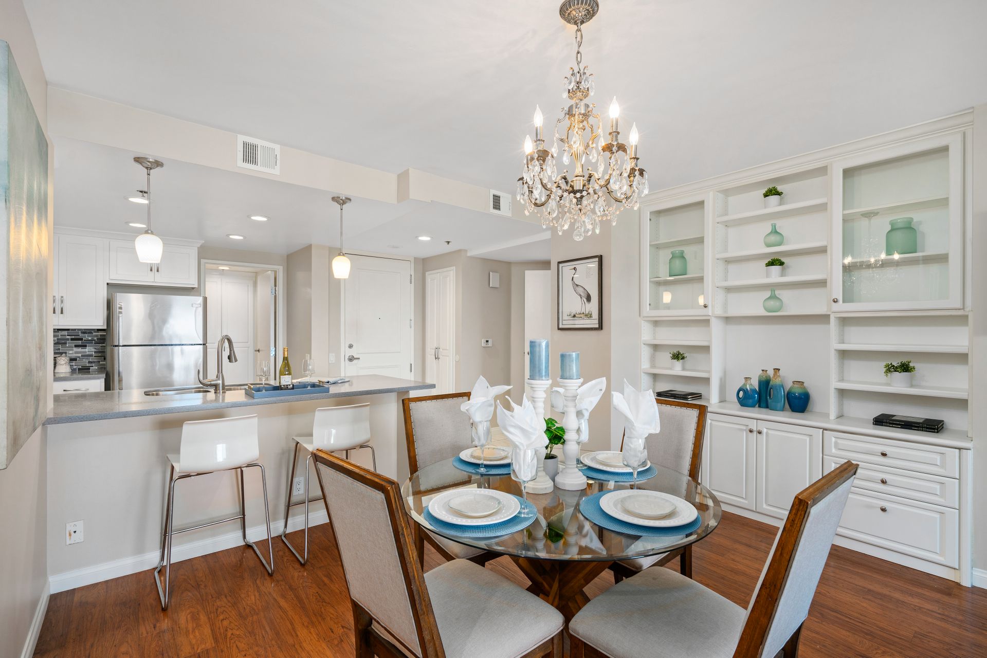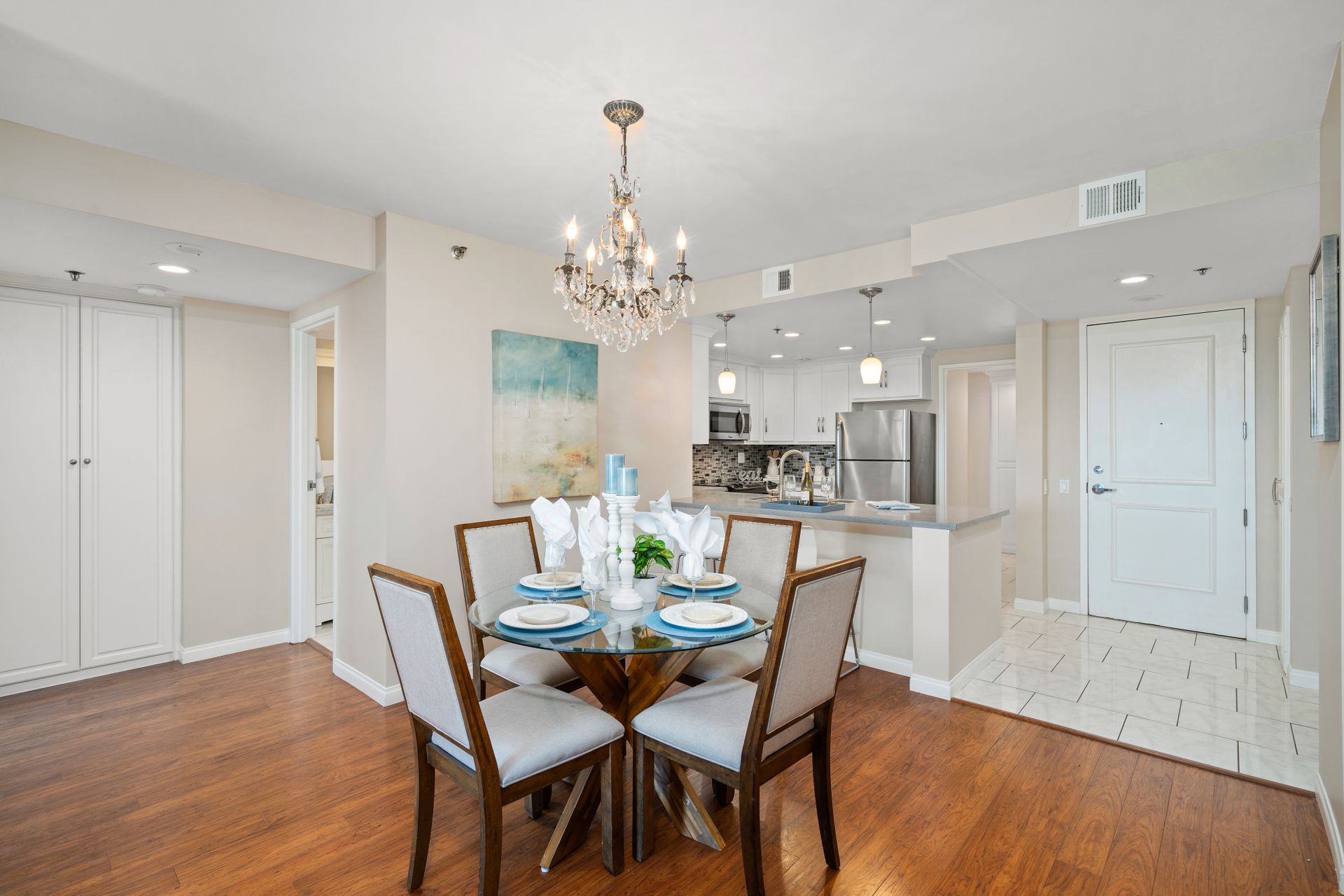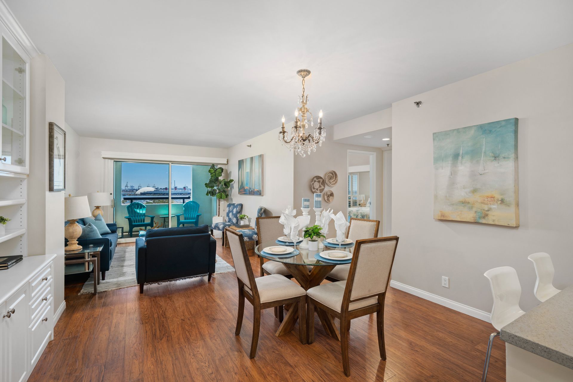 This two bedroom condo has become available for a discerning buyer. Kitchen and bathrooms have been extensively renovated; in fact, the primary bath was replaced with a giant shower for aqueous indulgence. A kitchen wall was removed to create a great room and many built-in storage nooks were added. Designer paint finishes and gleaming wood pattern floors complete the decor. The private balcony provides avian sunrise and sunset views. Harbor Place Tower is a well-managed and maintained high-rise complex complete with a fitness center, lap pool, saunas and meeting room. A 24-hour guard assures effective security. Long Beach offers convenient freeway access and close proximity to shopping, restaurants, the convention center, Long Beach Airport and CSULB. Two deeded tandem parking spaces complete the package. Arrange a personal showing of a new lifestyle, today!