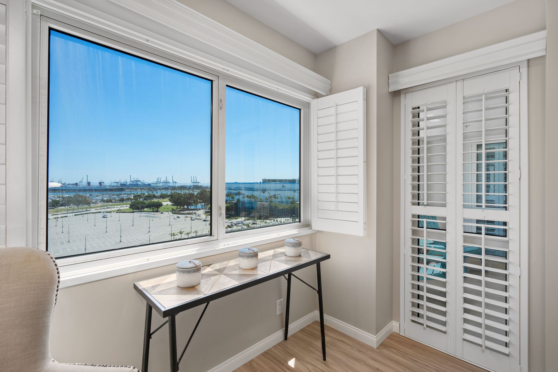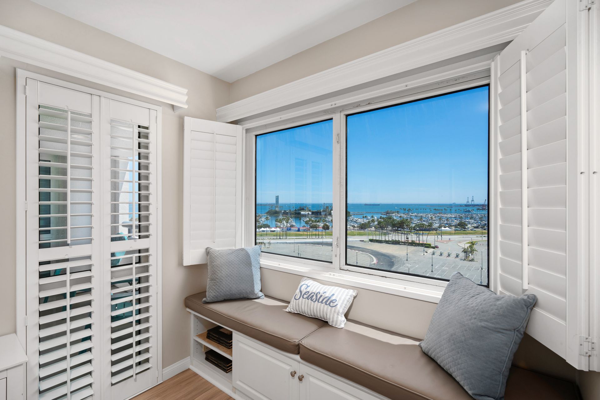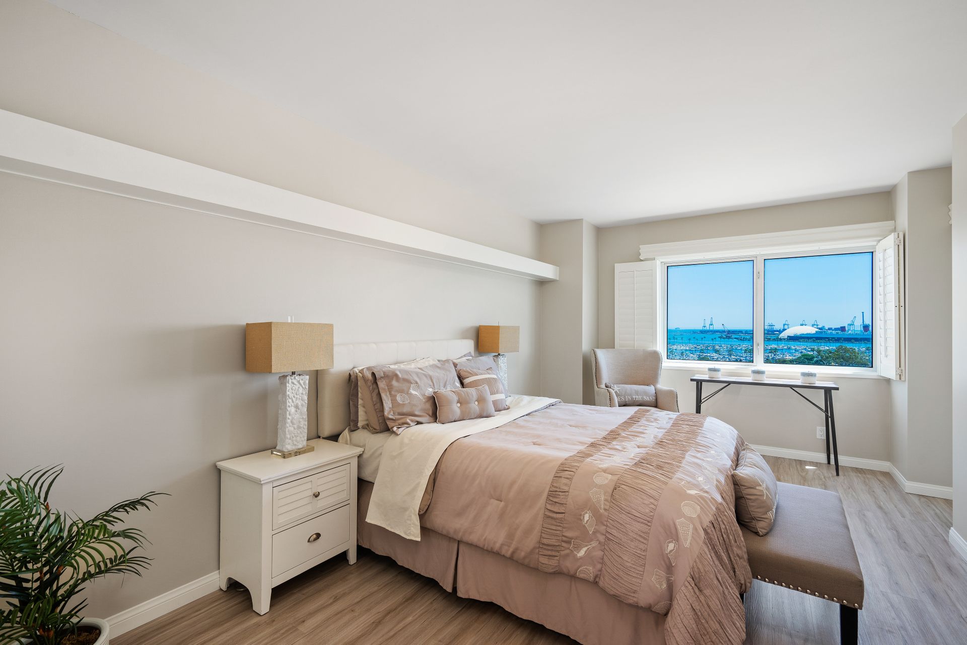 Perched high above the hurly-burly of this bustling beach city is a condominium of unique peace and beauty. Harbor Place Tower, located close to the azure Pacific shoreline, offers spectacular views of the Queen Mary, glimmering cityscape nightlights and the bustling cruise-liner terminal loading passengers destined for Catalina and beyond. And once per year, automotive enthusiasts enjoy a dress circle seat to the Long Beach Grand Prix, free.