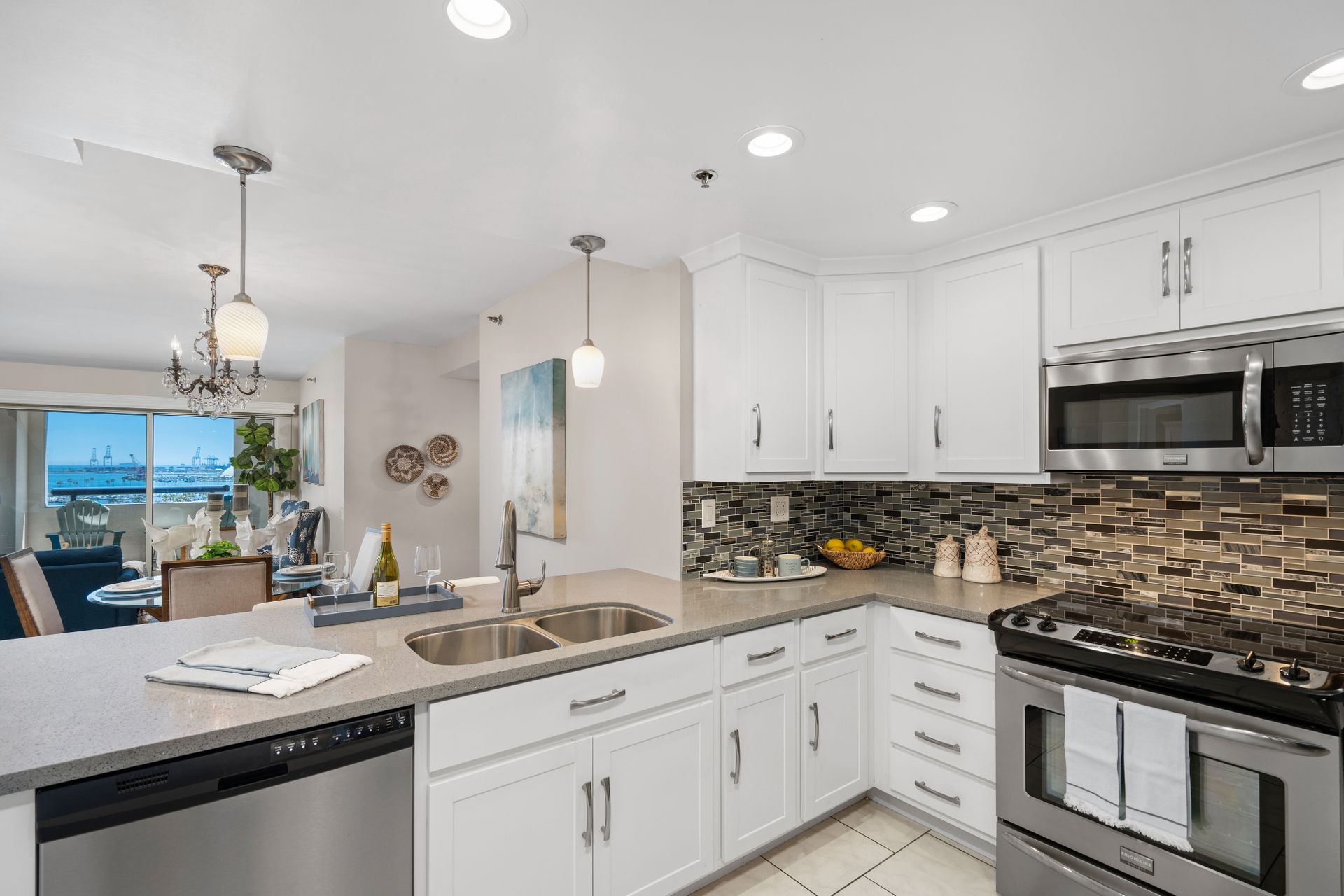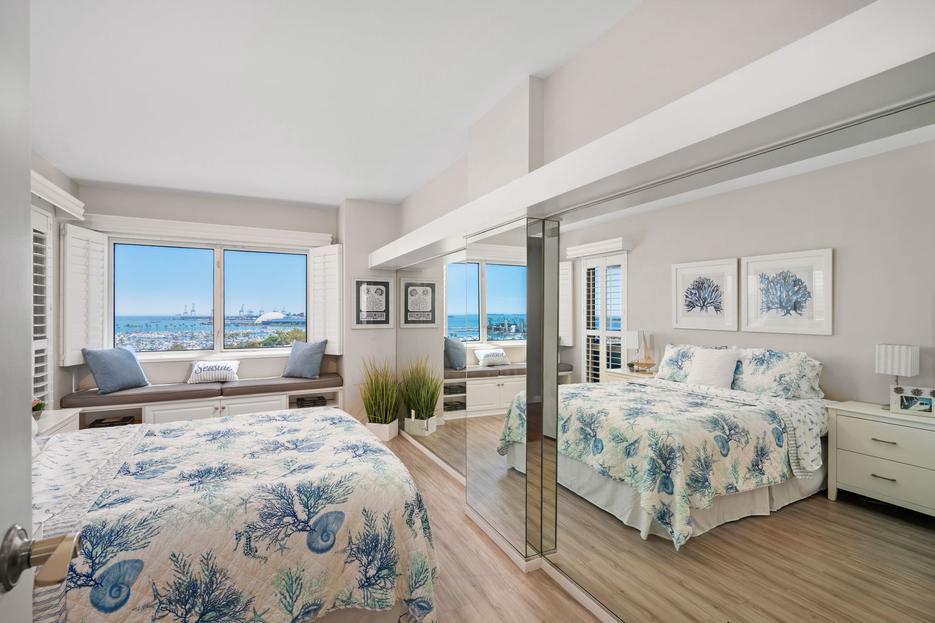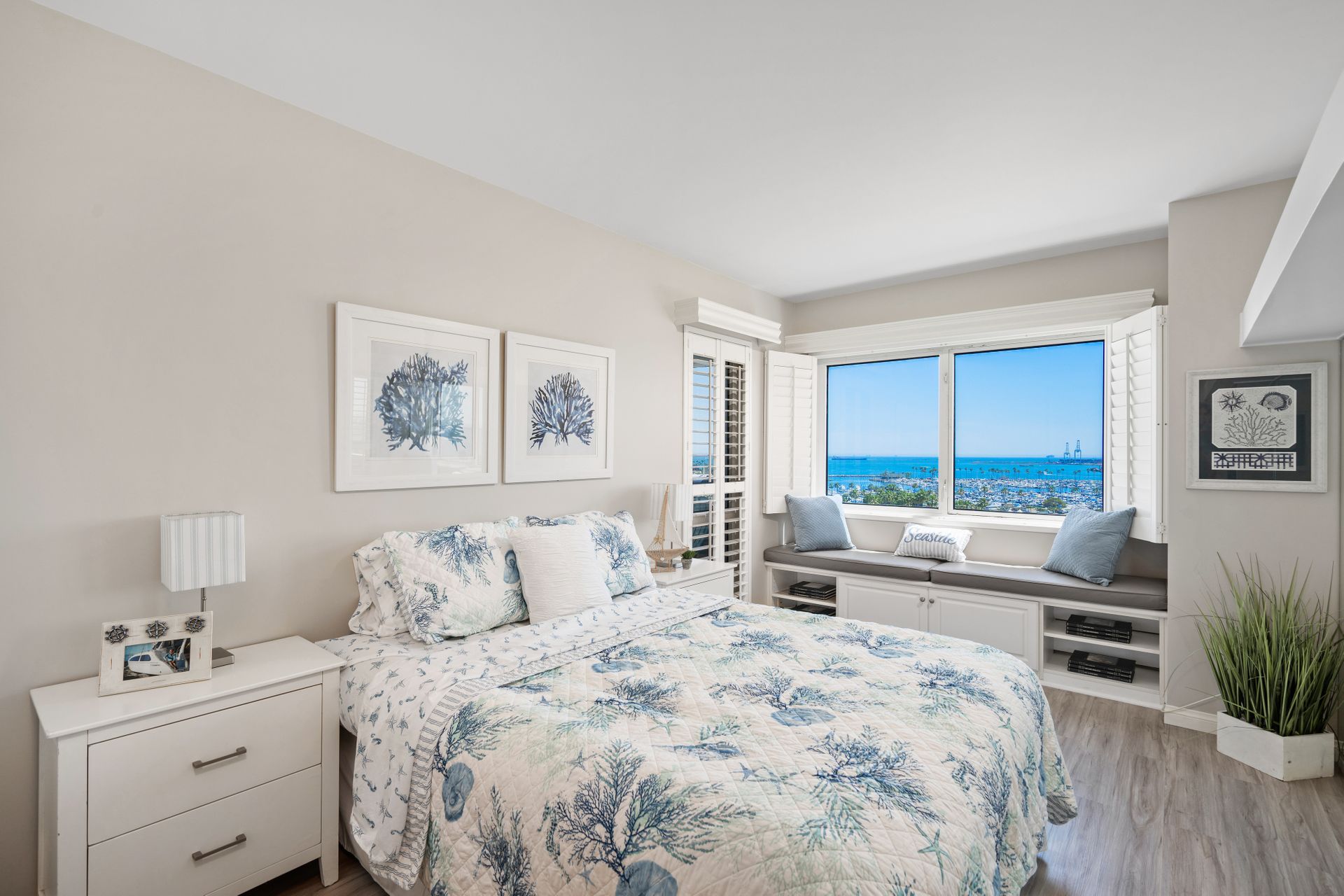 Perched high above the hurly-burly of this bustling beach city is a condominium of unique peace and beauty. Harbor Place Tower, located close to the azure Pacific shoreline, offers spectacular views of the Queen Mary, glimmering cityscape nightlights and the bustling cruise-liner terminal loading passengers destined for Catalina and beyond. And once per year, automotive enthusiasts enjoy a dress circle seat to the Long Beach Grand Prix, free.