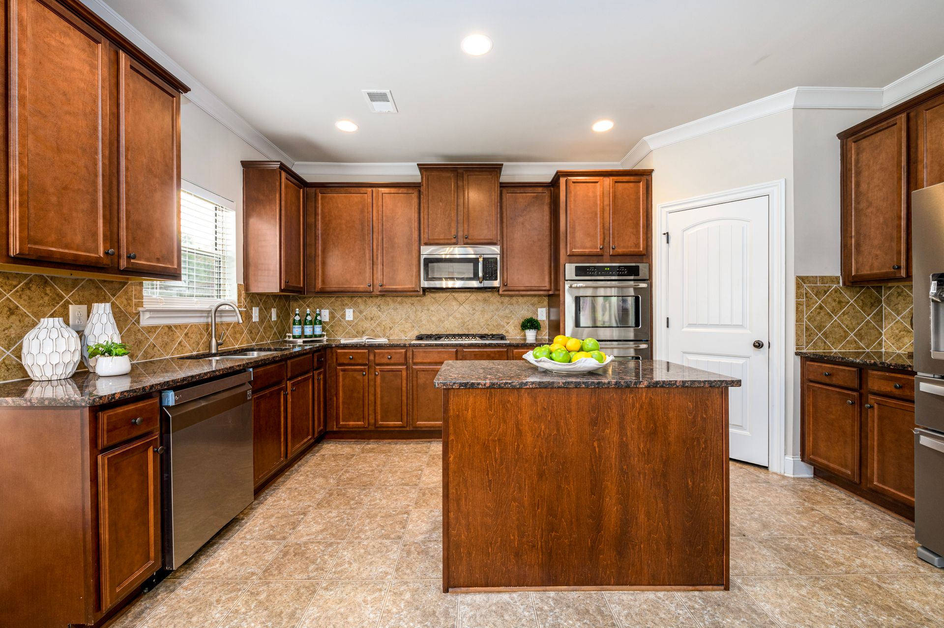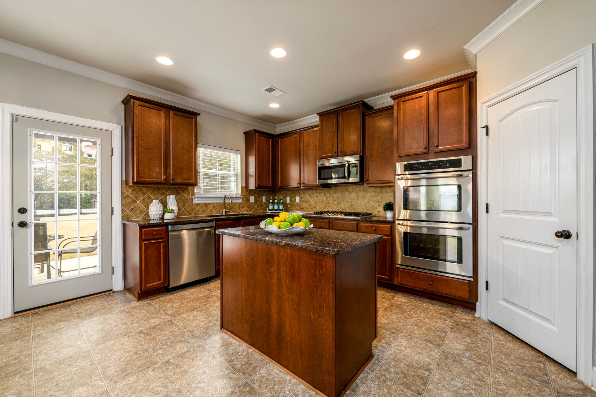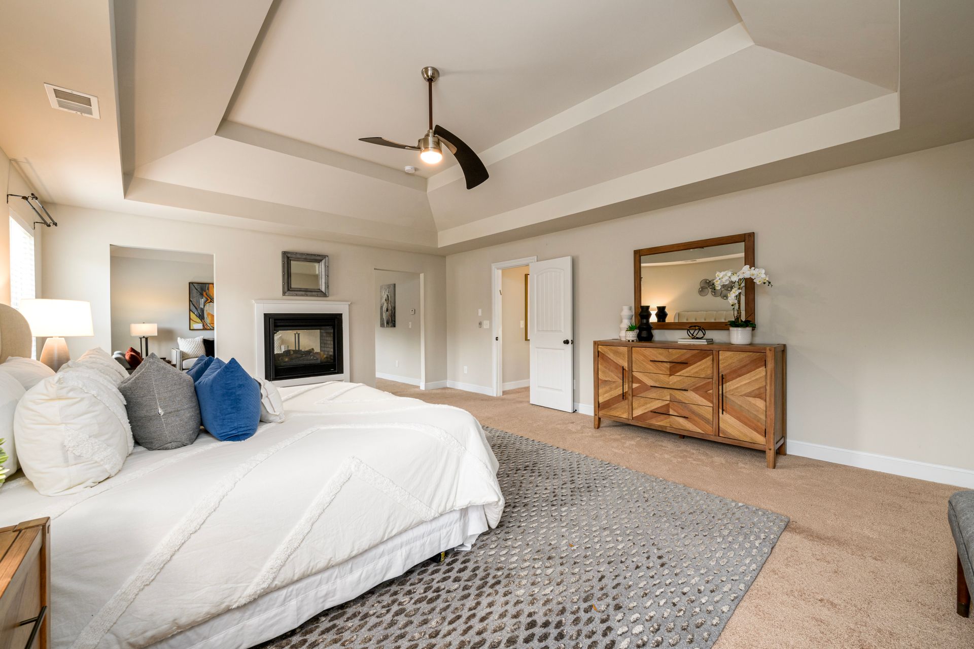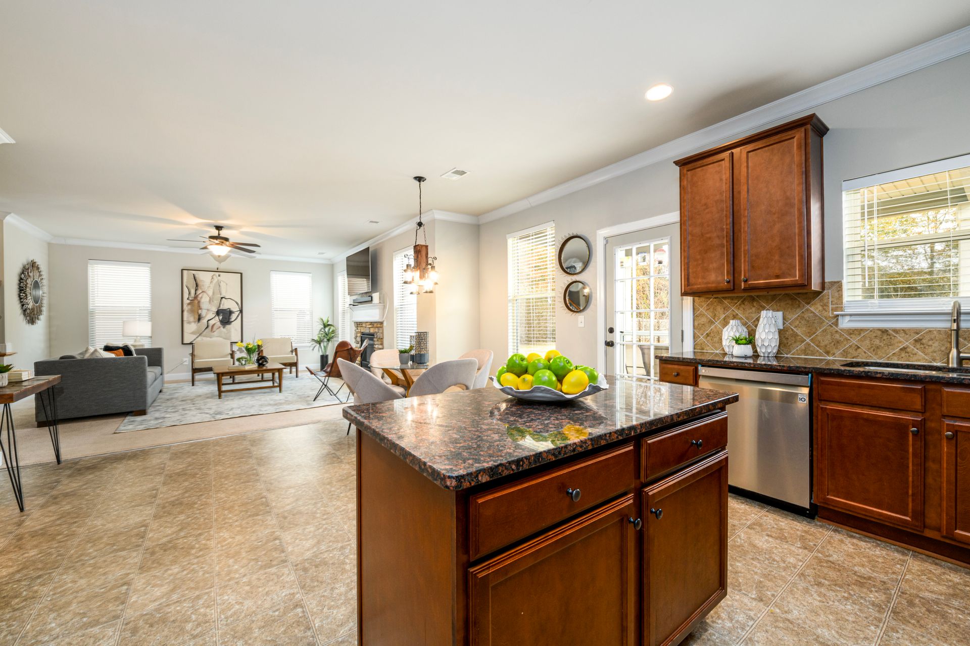 Just Reduced! Welcome home to this spacious and charming four bedroom, three full bath home. The main level features a huge open concept layout with beautiful gourmet kitchen, generously sized family room with fireplace, full bath and bedroom/office/flex space. The stainless steel appliances are surrounded by a beautiful tile backsplash with granite counters, walk-in pantry and kitchen island. The breakfast area can seat up to six. The dining room features craftsman trim and ledge surrounding the walls with a beautiful coffered ceiling. The upstairs presents a laundry room with washer and dryer and upper cabinets. The upstairs also sports a split bedroom layout with oversized primary en suite and sitting room with dual sided fireplace, grand primary bath and huge walk-in closet. The exterior promotes a beautifully landscaped fenced yard with three gates, rear covered extended patio, patio furniture, grill and yummy fruit and nut trees. Don't miss your opportunity to own your perfect piece of paradise.