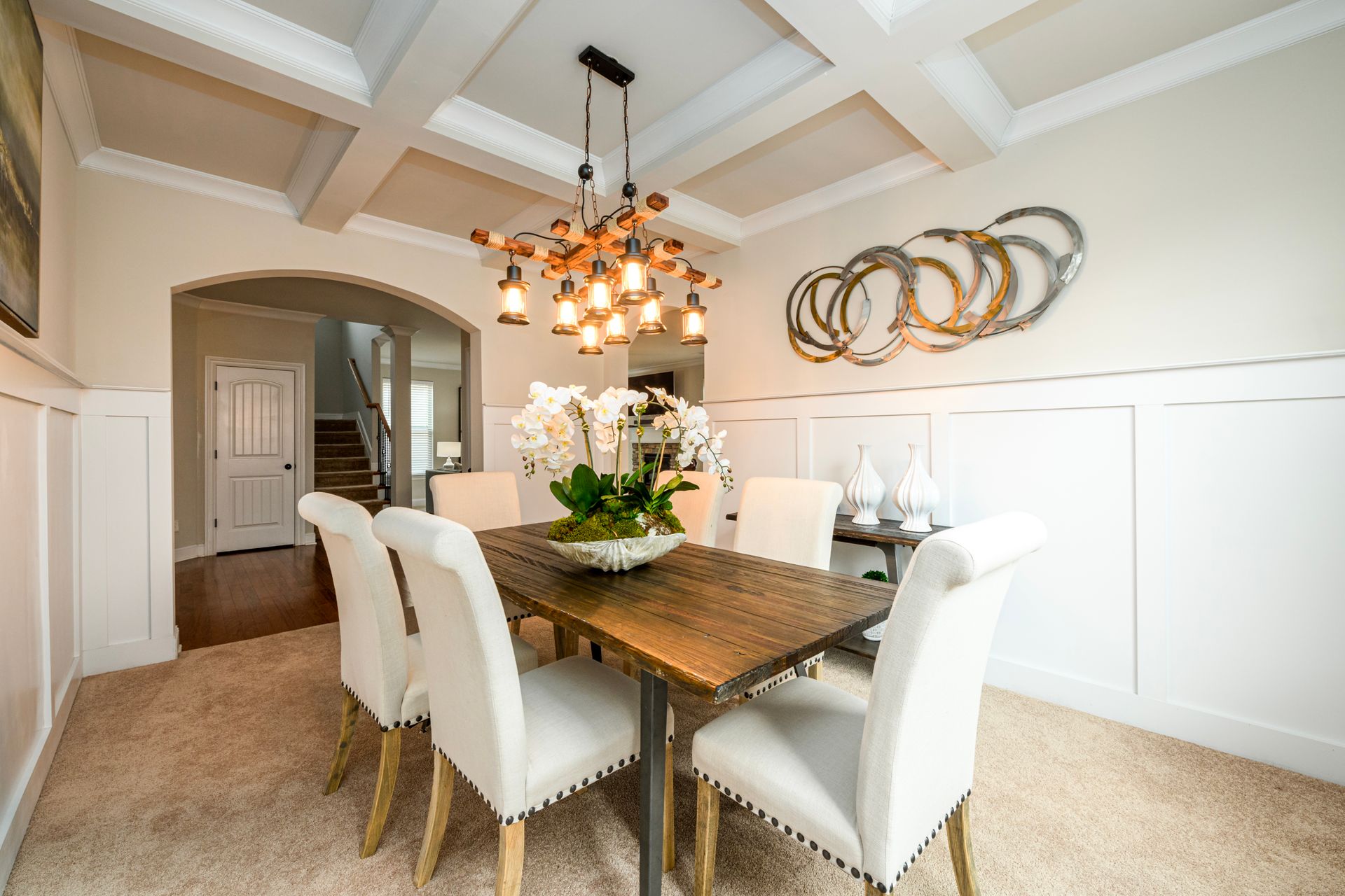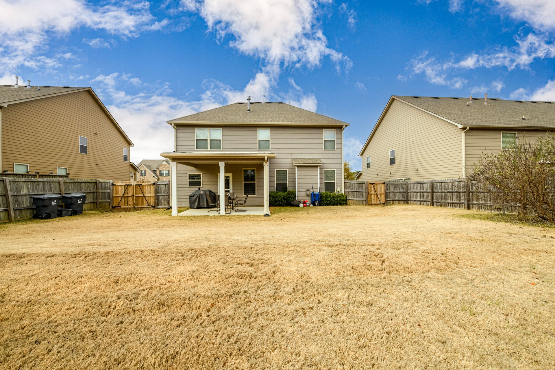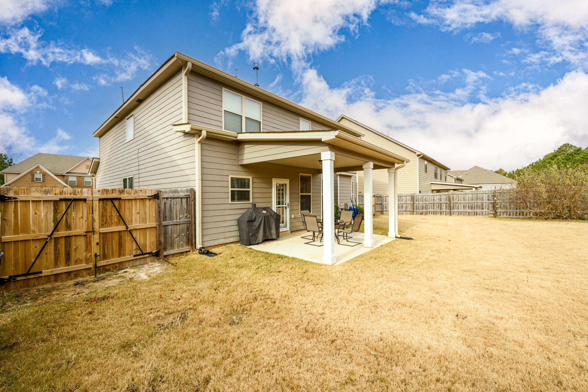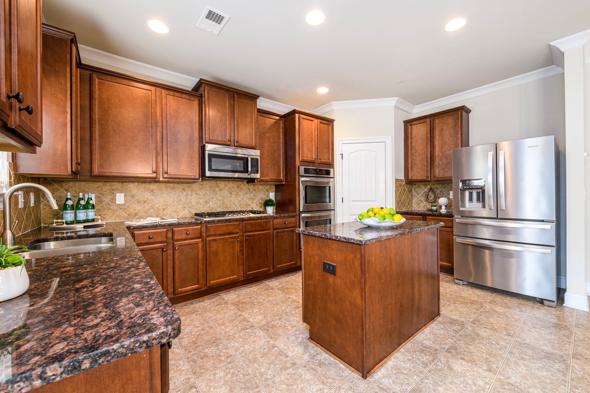 Just Reduced! Welcome home to this spacious and charming four bedroom, three full bath home. The main level features a huge open concept layout with beautiful gourmet kitchen, generously sized family room with fireplace, full bath and bedroom/office/flex space. The stainless steel appliances are surrounded by a beautiful tile backsplash with granite counters, walk-in pantry and kitchen island. The breakfast area can seat up to six. The dining room features craftsman trim and ledge surrounding the walls with a beautiful coffered ceiling. The upstairs presents a laundry room with washer and dryer and upper cabinets. The upstairs also sports a split bedroom layout with oversized primary en suite and sitting room with dual sided fireplace, grand primary bath and huge walk-in closet. The exterior promotes a beautifully landscaped fenced yard with three gates, rear covered extended patio, patio furniture, grill and yummy fruit and nut trees. Don't miss your opportunity to own your perfect piece of paradise.