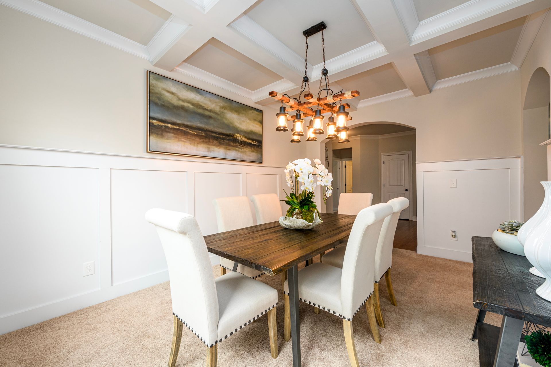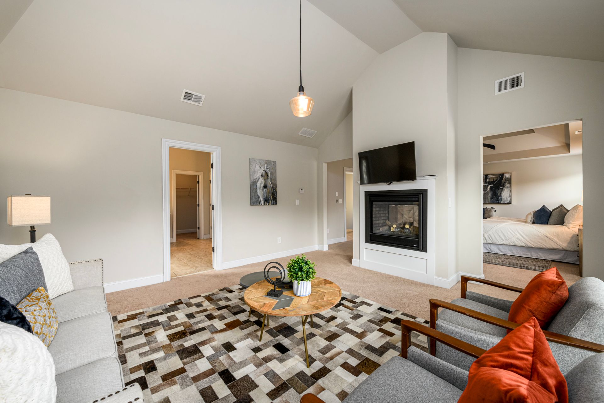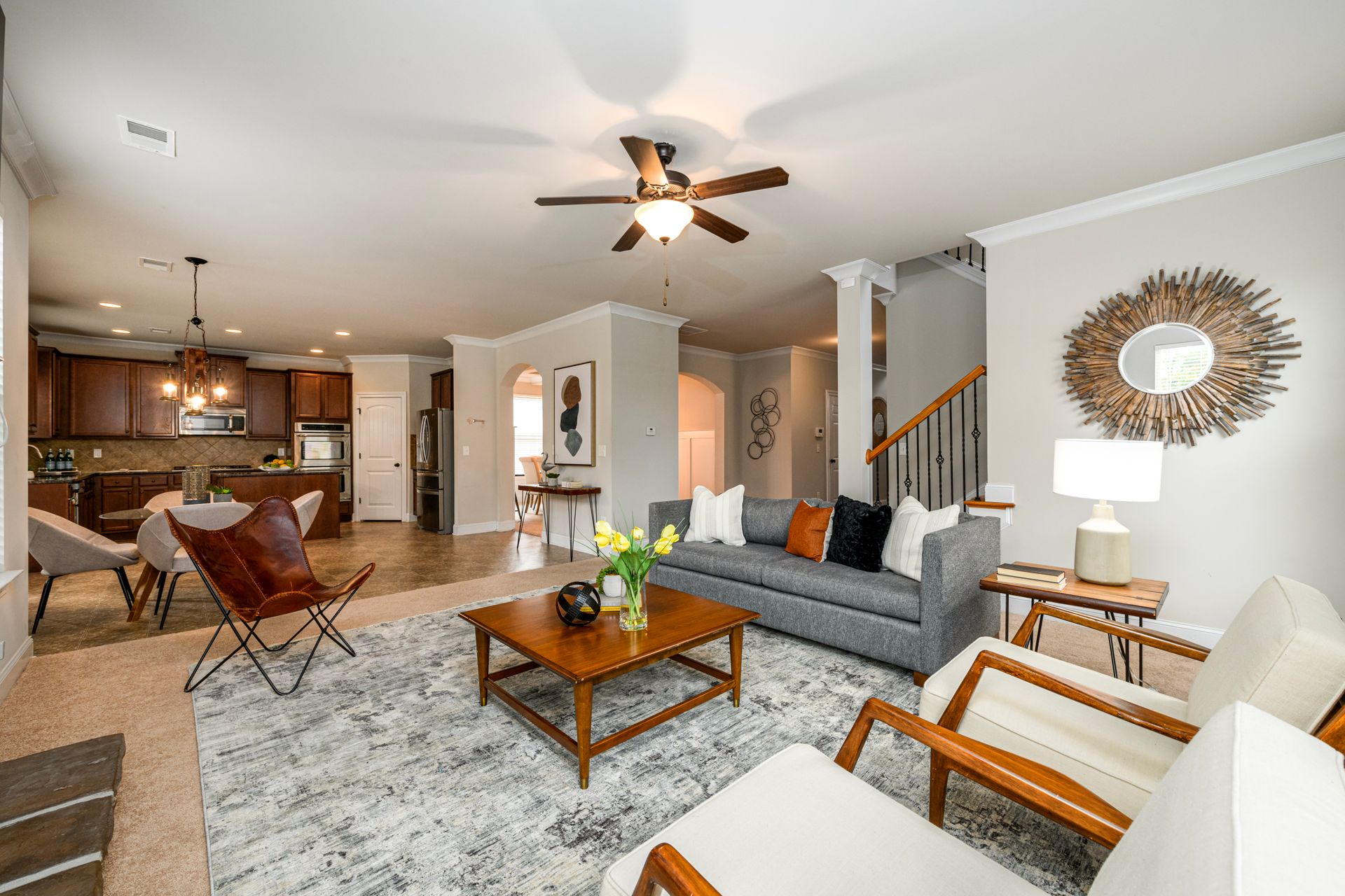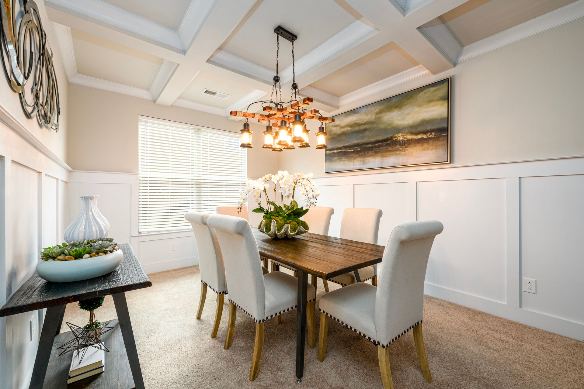 Just Reduced! Welcome home to this spacious and charming four bedroom, three full bath home. The main level features a huge open concept layout with beautiful gourmet kitchen, generously sized family room with fireplace, full bath and bedroom/office/flex space. The stainless steel appliances are surrounded by a beautiful tile backsplash with granite counters, walk-in pantry and kitchen island. The breakfast area can seat up to six. The dining room features craftsman trim and ledge surrounding the walls with a beautiful coffered ceiling. The upstairs presents a laundry room with washer and dryer and upper cabinets. The upstairs also sports a split bedroom layout with oversized primary en suite and sitting room with dual sided fireplace, grand primary bath and huge walk-in closet. The exterior promotes a beautifully landscaped fenced yard with three gates, rear covered extended patio, patio furniture, grill and yummy fruit and nut trees. Don't miss your opportunity to own your perfect piece of paradise.