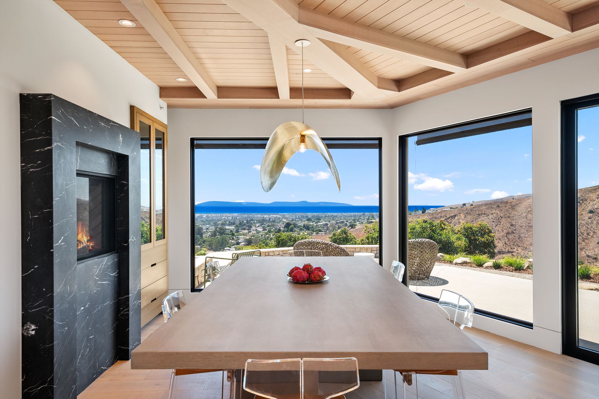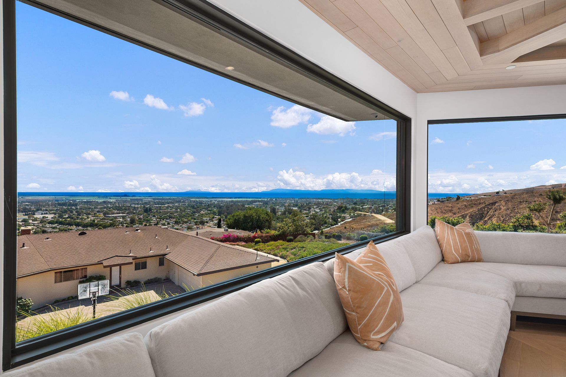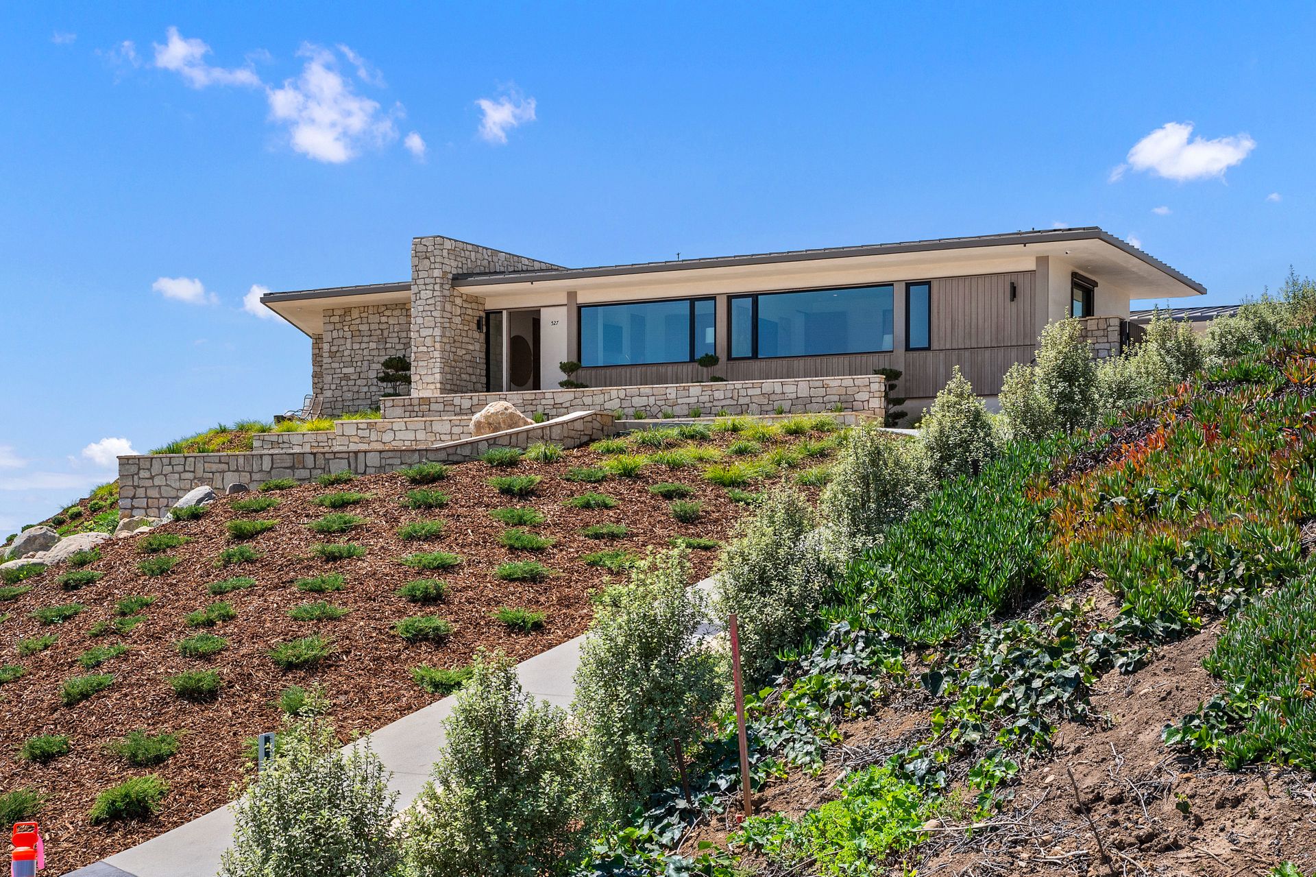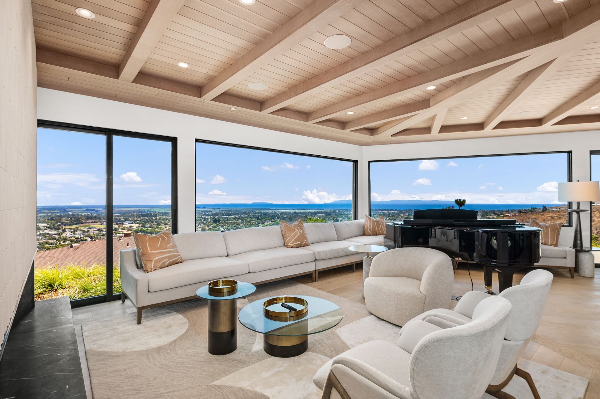 Expansive ocean views and luxurious amenities define this California Coastal Contemporary as a slice of paradise. The approximately 3,200 square-foot home features three bedrooms and three and one-half baths on the main level. There is also an approximately 1,000 square-foot basement with three flex rooms, storage closets and a mechanical room with 2,500-gallon water tank. The living rooms and bedrooms offer ADA compliant features such as level smooth thresholds and a roll-in primary suite shower with no lip. This is a custom-built home complete with beautifully designed furnishings and elements that connect to the iconic mid-century architecture in Ventura’s premium Ondulando district. Structural steel moment frames were utilized to allow expansive widths and areas of glass to the stunning view. All materials are lifelong and of highest quality: stone, cement plaster, copper, steel, white oak and fire treated cedar. Additional noteworthy features include remote-control gas fireplaces, a full family room bar with beverage coolers and an ice maker, plus an outdoor gas firepit.