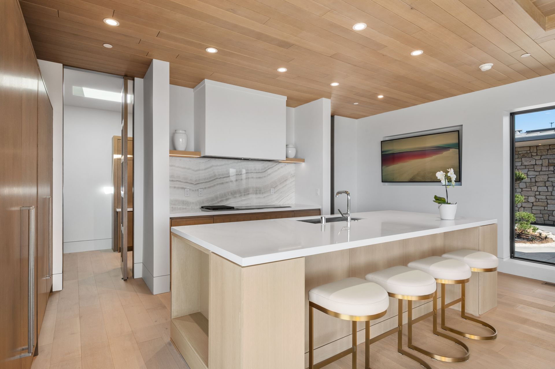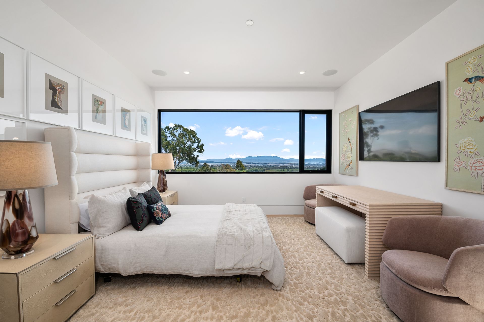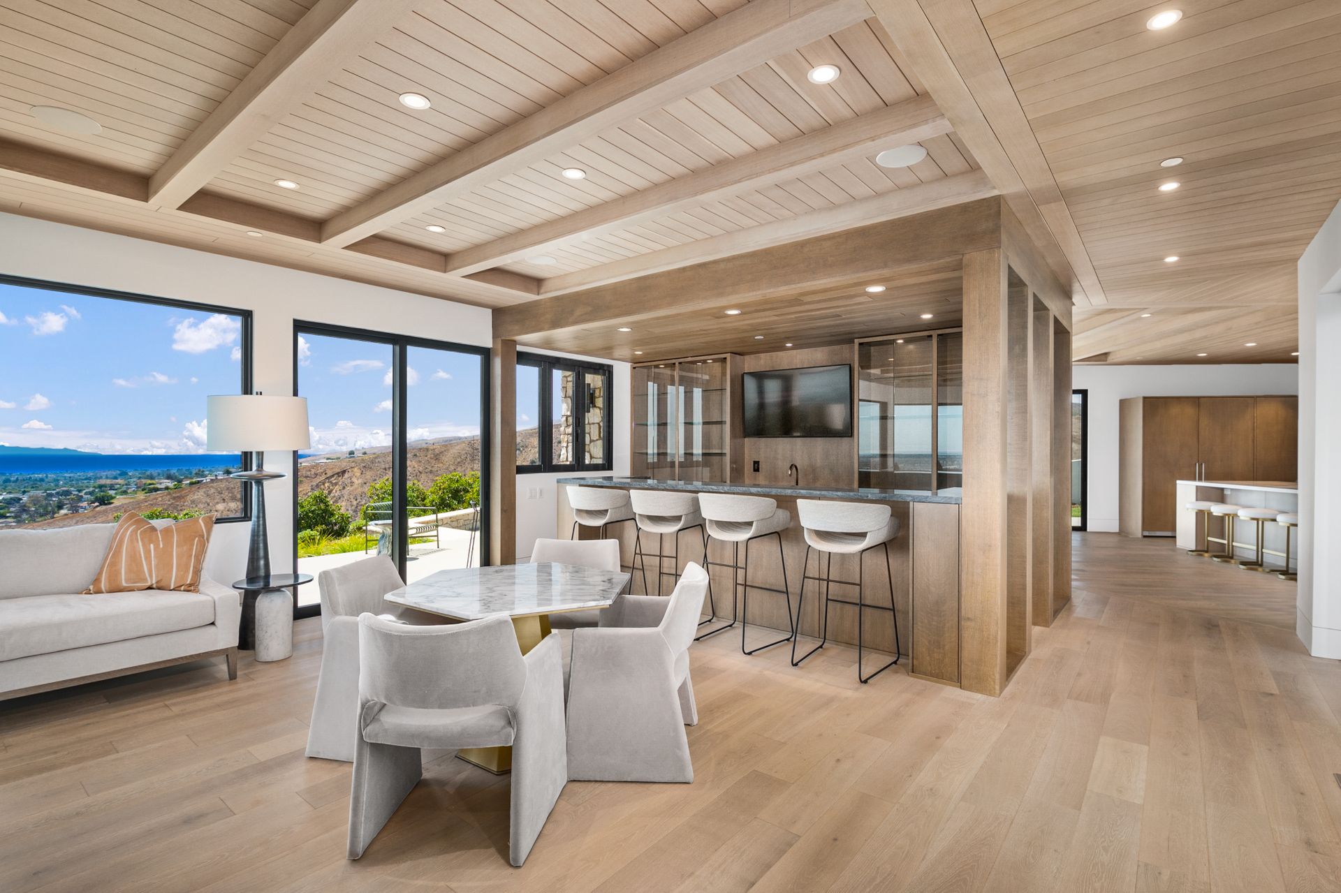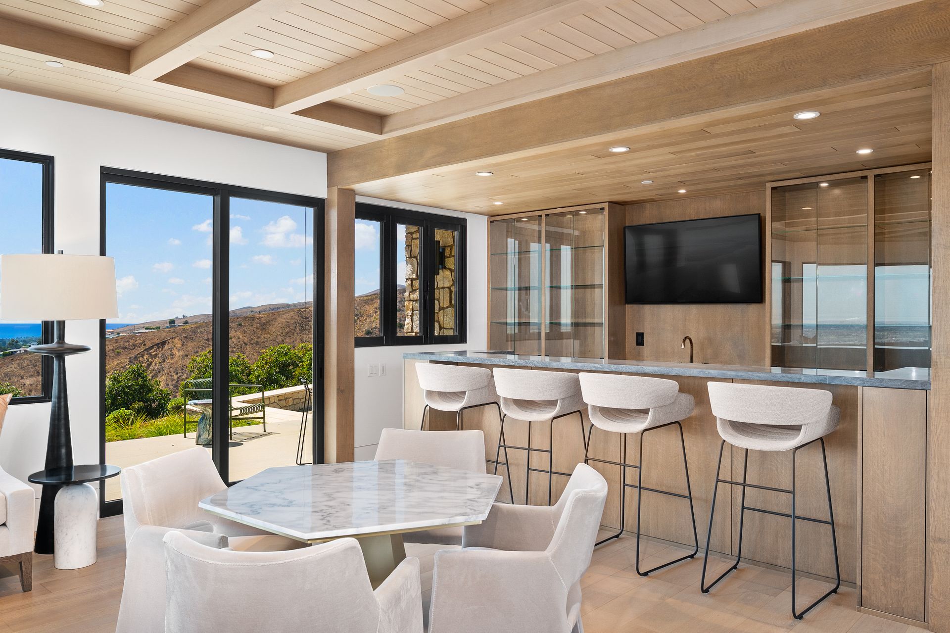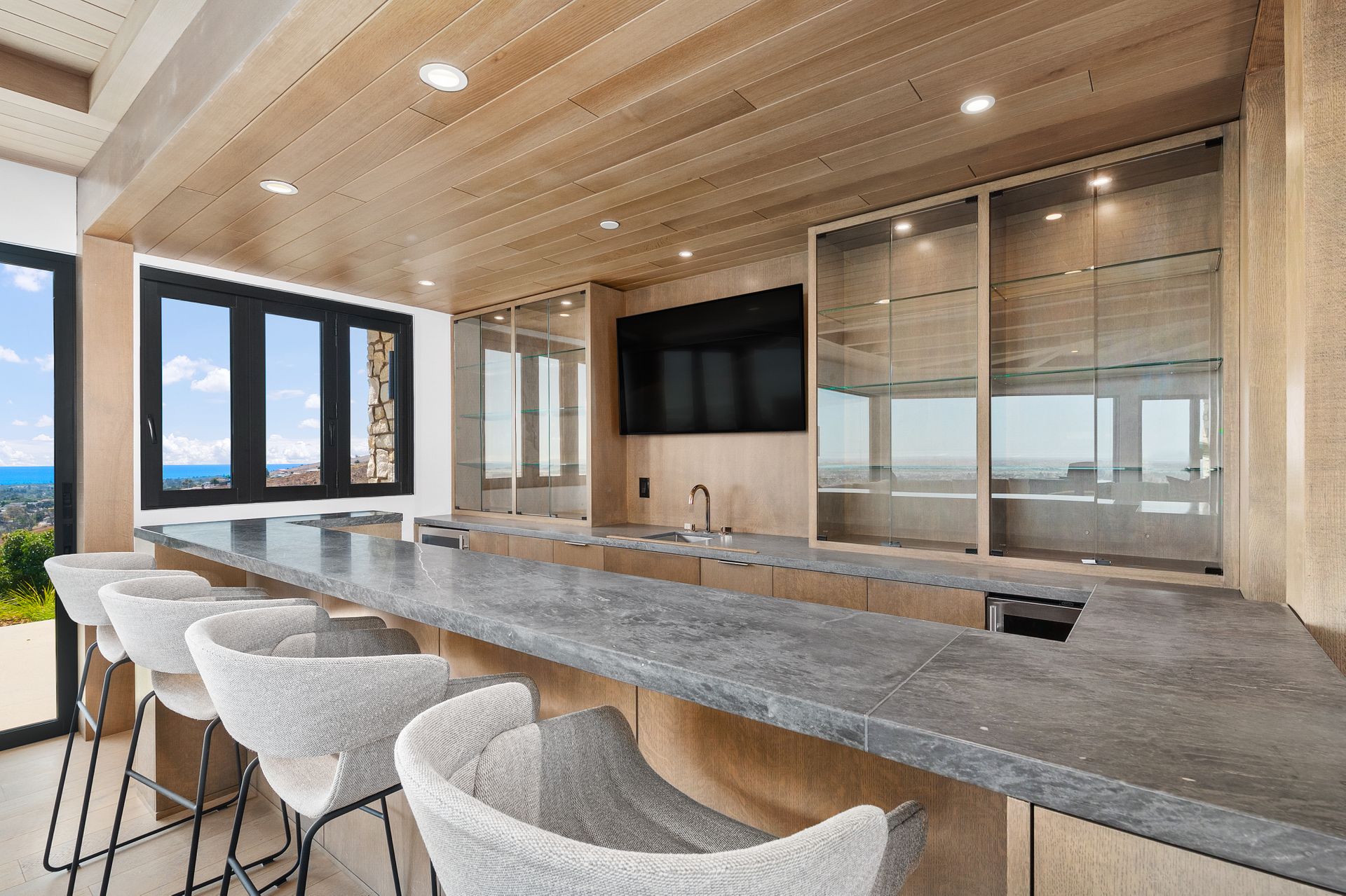 Expansive ocean views and luxurious amenities define this California Coastal Contemporary as a slice of paradise. The approximately 3,200 square-foot home features three bedrooms and three and one-half baths on the main level. There is also an approximately 1,000 square-foot basement with three flex rooms, storage closets and a mechanical room with 2,500-gallon water tank. The living rooms and bedrooms offer ADA compliant features such as level smooth thresholds and a roll-in primary suite shower with no lip. This is a custom-built home complete with beautifully designed furnishings and elements that connect to the iconic mid-century architecture in Ventura’s premium Ondulando district. Structural steel moment frames were utilized to allow expansive widths and areas of glass to the stunning view. All materials are lifelong and of highest quality: stone, cement plaster, copper, steel, white oak and fire treated cedar. Additional noteworthy features include remote-control gas fireplaces, a full family room bar with beverage coolers and an ice maker, plus an outdoor gas firepit.