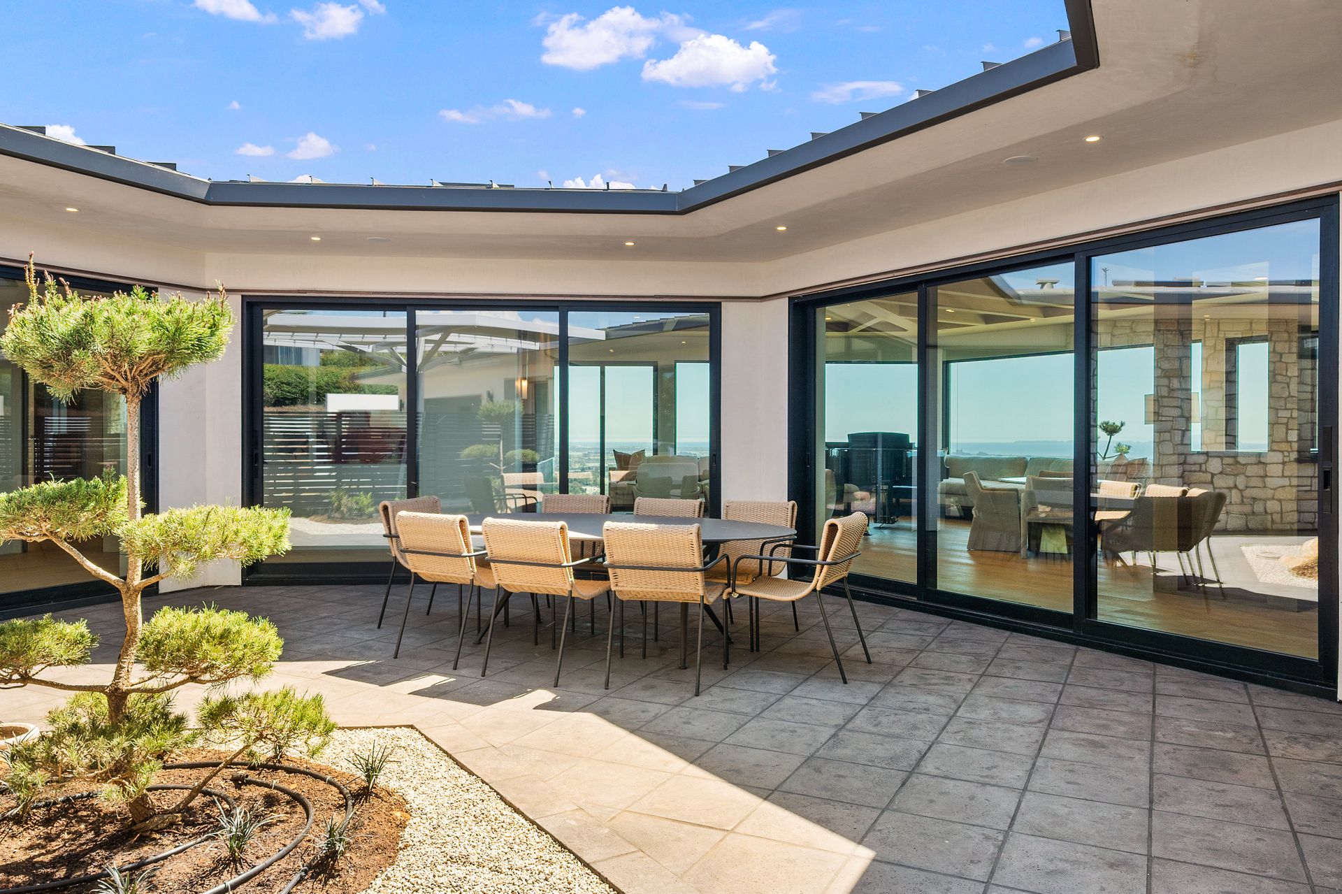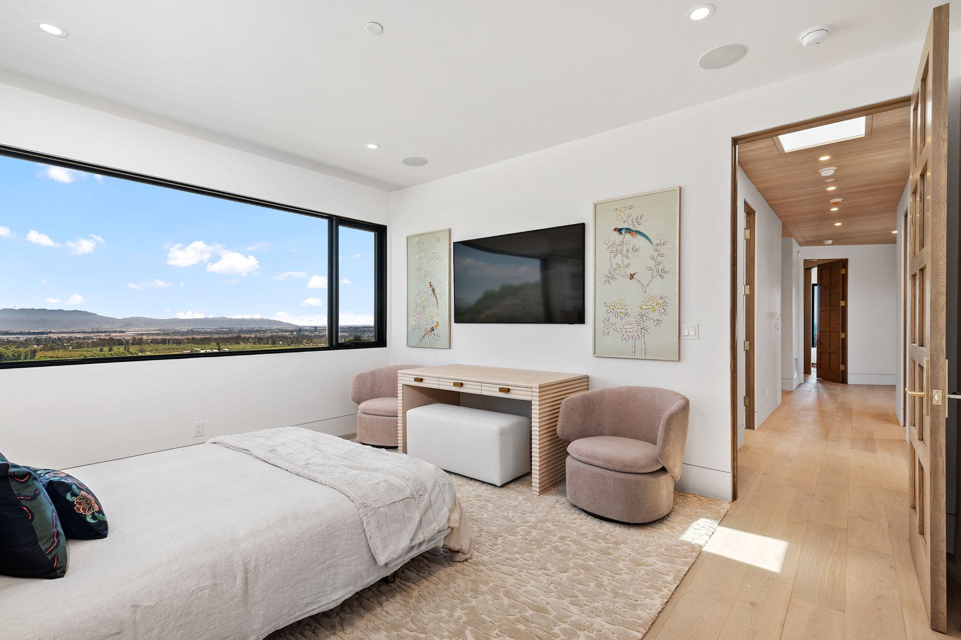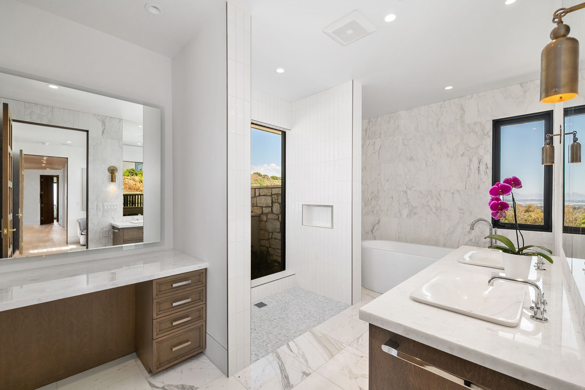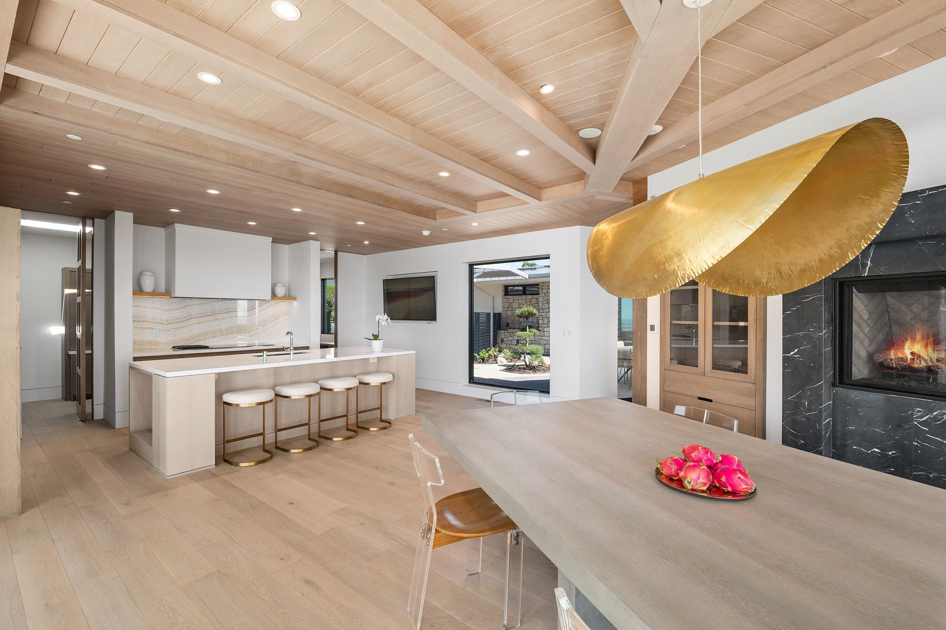 Expansive ocean views and luxurious amenities define this California Coastal Contemporary as a slice of paradise. The approximately 3,200 square-foot home features three bedrooms and three and one-half baths on the main level. There is also an approximately 1,000 square-foot basement with three flex rooms, storage closets and a mechanical room with 2,500-gallon water tank. The living rooms and bedrooms offer ADA compliant features such as level smooth thresholds and a roll-in primary suite shower with no lip. This is a custom-built home complete with beautifully designed furnishings and elements that connect to the iconic mid-century architecture in Ventura’s premium Ondulando district. Structural steel moment frames were utilized to allow expansive widths and areas of glass to the stunning view. All materials are lifelong and of highest quality: stone, cement plaster, copper, steel, white oak and fire treated cedar. Additional noteworthy features include remote-control gas fireplaces, a full family room bar with beverage coolers and an ice maker, plus an outdoor gas firepit.