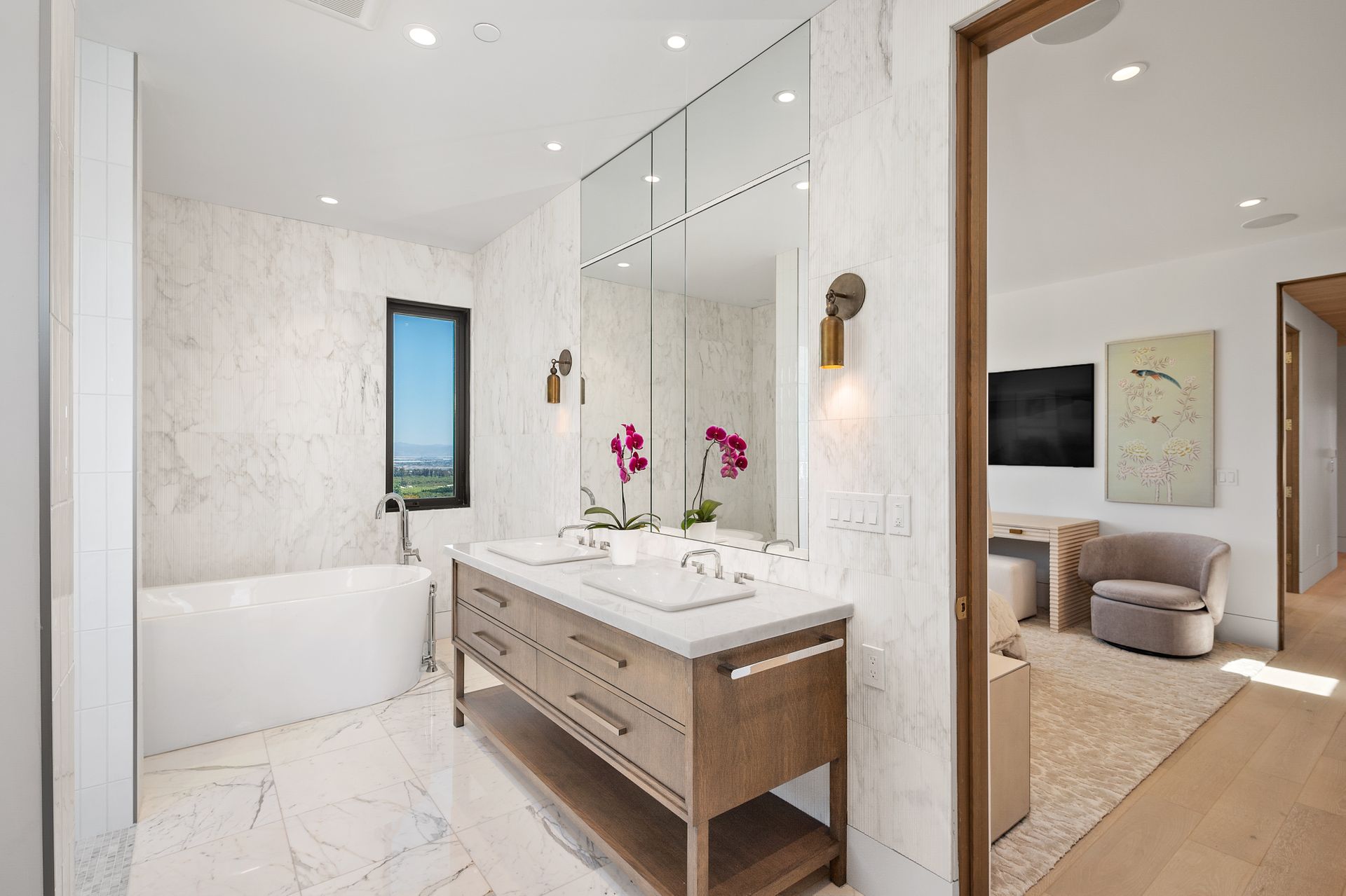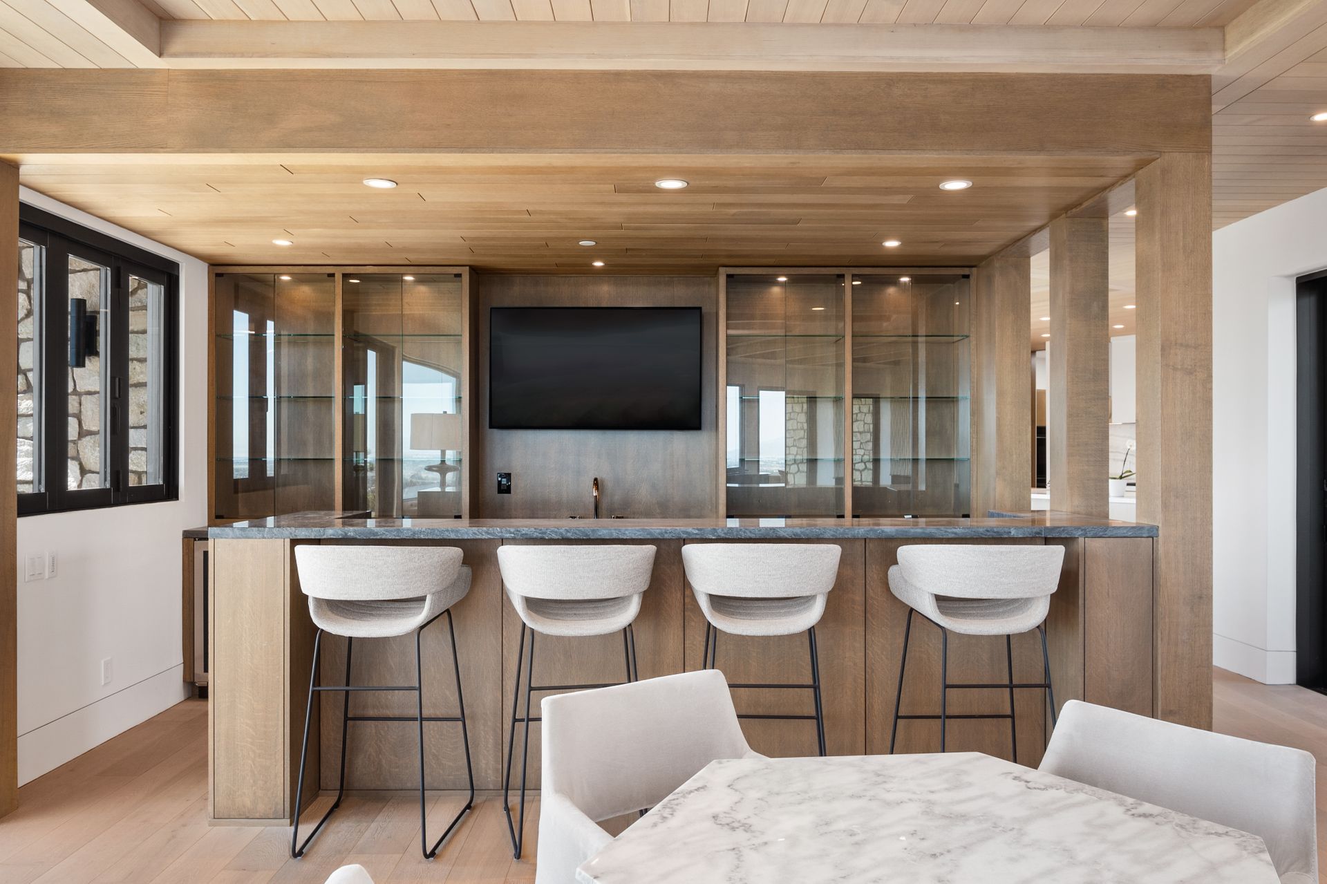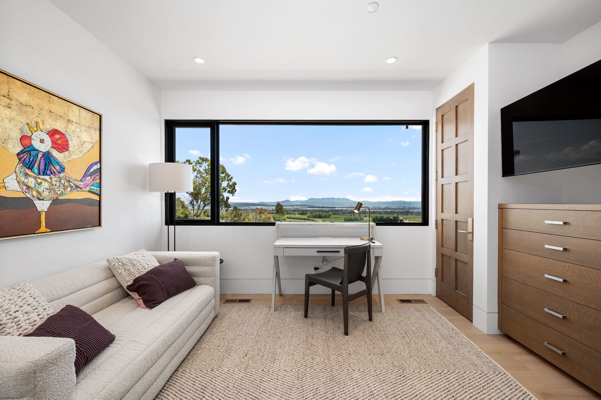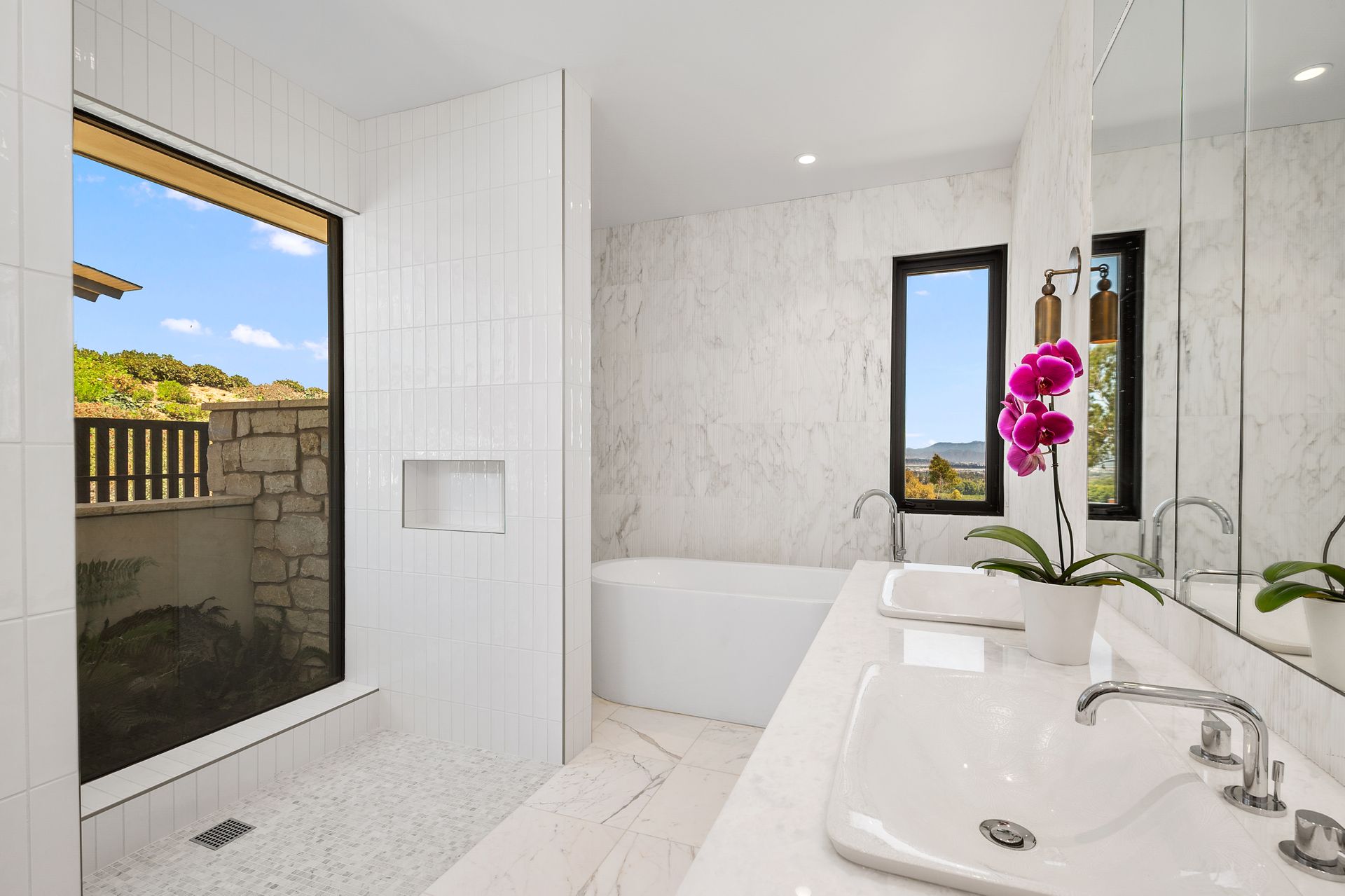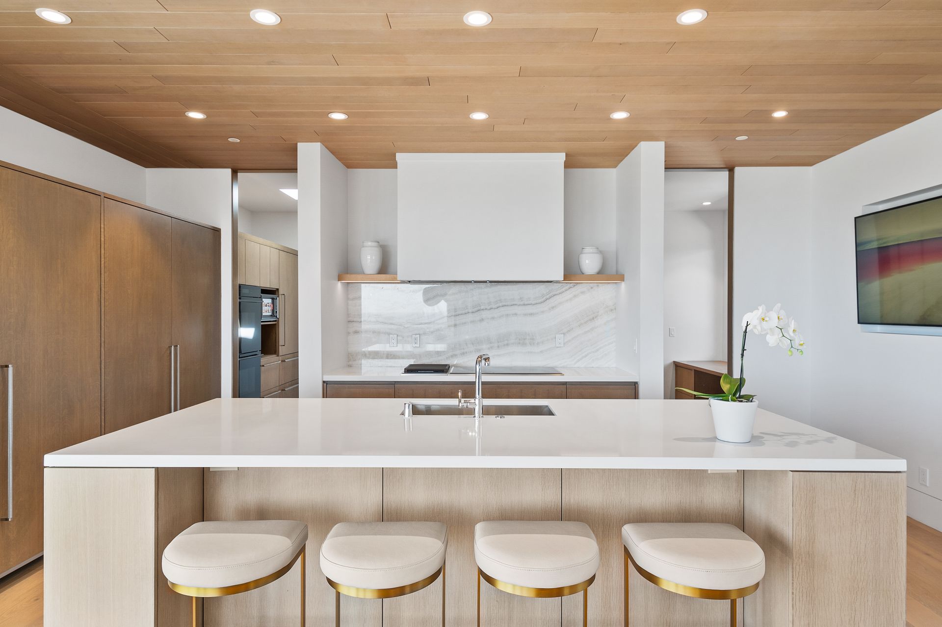 Expansive ocean views and luxurious amenities define this California Coastal Contemporary as a slice of paradise. The approximately 3,200 square-foot home features three bedrooms and three and one-half baths on the main level. There is also an approximately 1,000 square-foot basement with three flex rooms, storage closets and a mechanical room with 2,500-gallon water tank. The living rooms and bedrooms offer ADA compliant features such as level smooth thresholds and a roll-in primary suite shower with no lip. This is a custom-built home complete with beautifully designed furnishings and elements that connect to the iconic mid-century architecture in Ventura’s premium Ondulando district. Structural steel moment frames were utilized to allow expansive widths and areas of glass to the stunning view. All materials are lifelong and of highest quality: stone, cement plaster, copper, steel, white oak and fire treated cedar. Additional noteworthy features include remote-control gas fireplaces, a full family room bar with beverage coolers and an ice maker, plus an outdoor gas firepit.