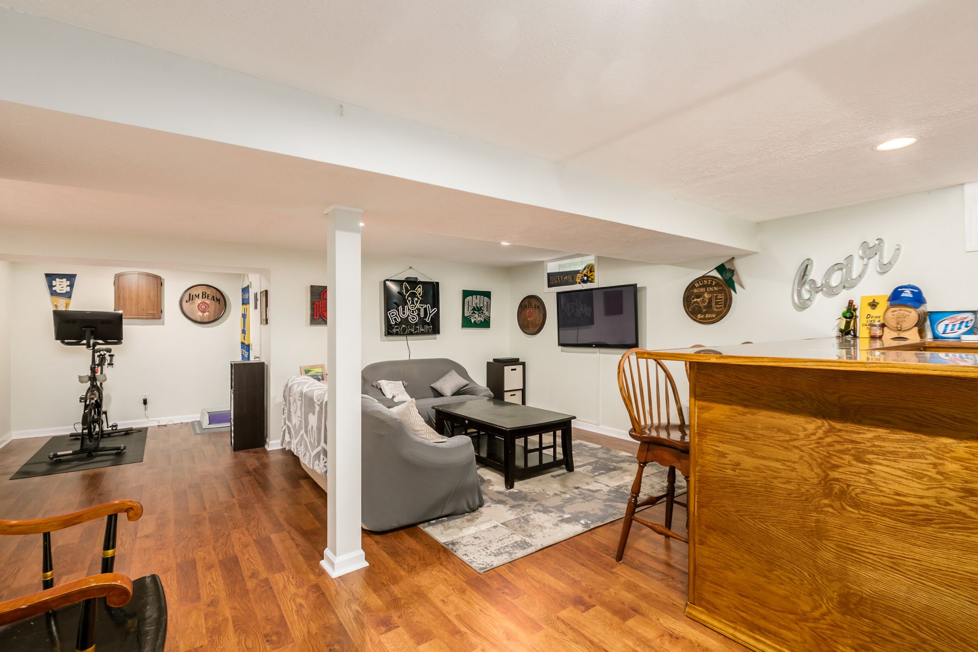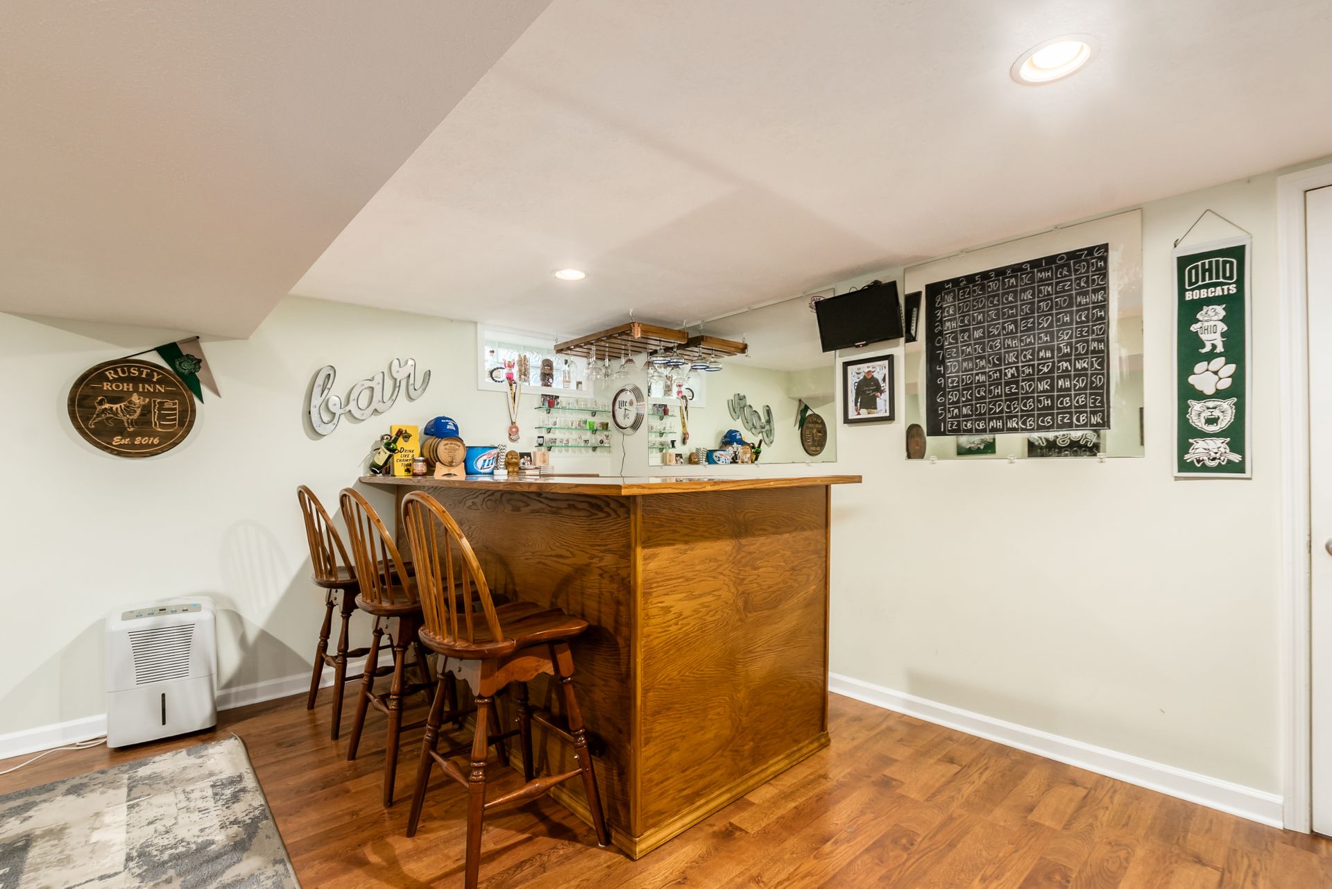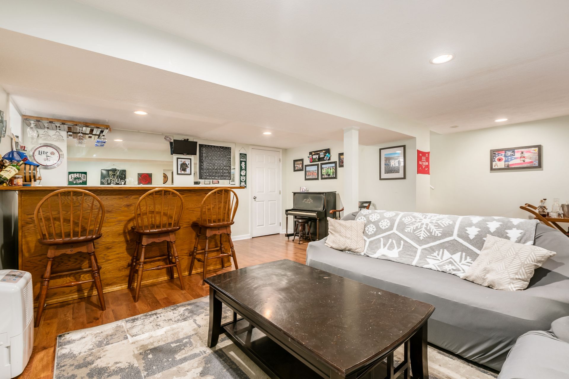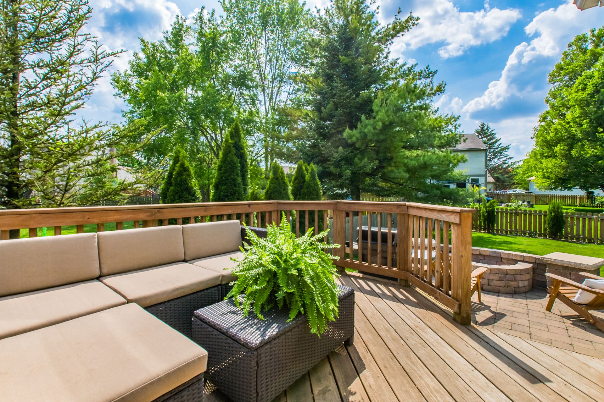 Open and airy one-story with plenty of natural light and an abundance of windows! Stainless appliances in the roomy, eat-in kitchen conveniently located next to laundry/mud room. High ceilings enhance the openness. Master suite has awesome dual closet space. Lower level has large built-in bar, recreation space, play space and/or movie viewing. Plus, ample storage room. Bring the outdoors in with an awesome deck to paver patio and built-in firepit. Plenty of green space in fully fenced backyard.