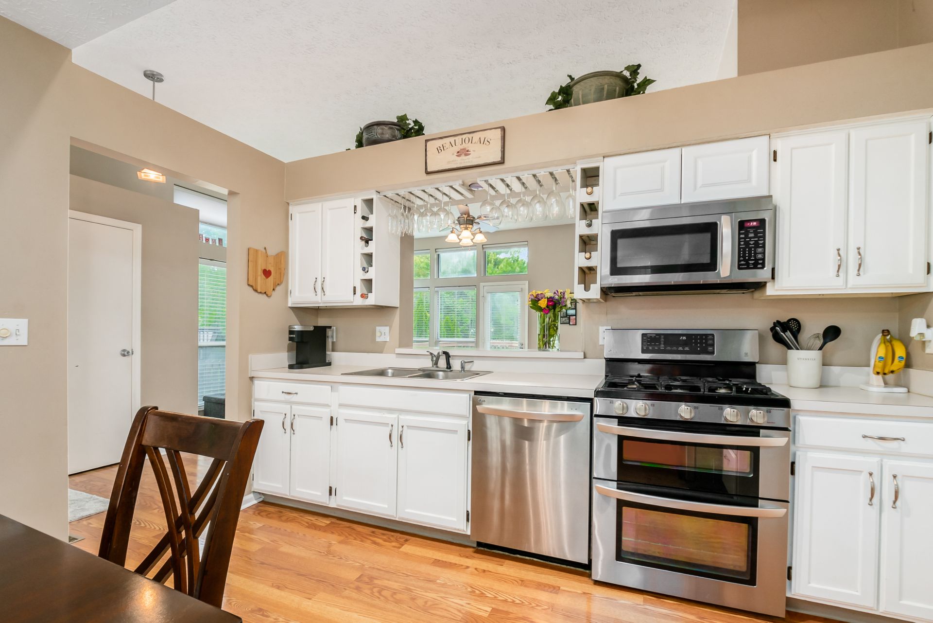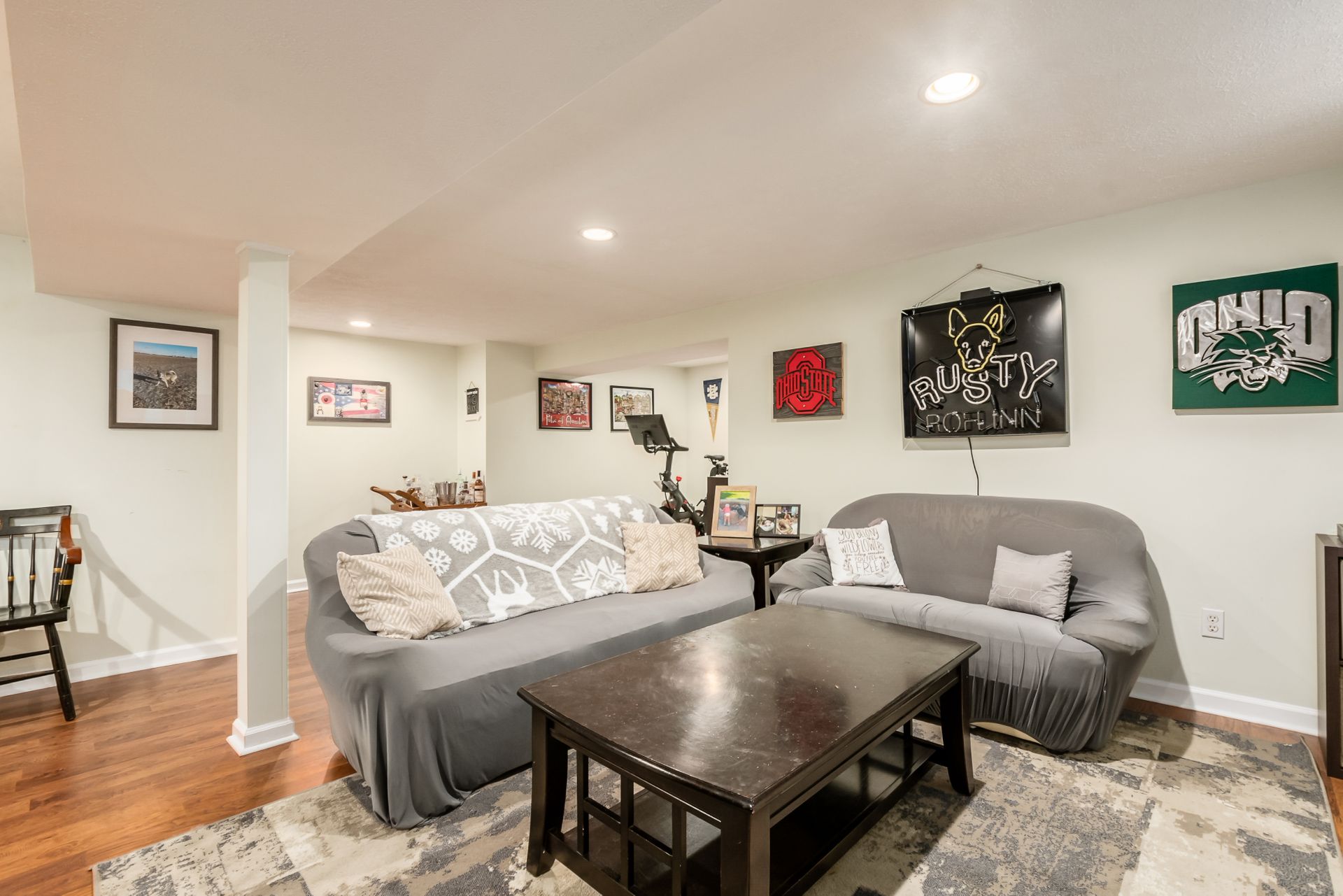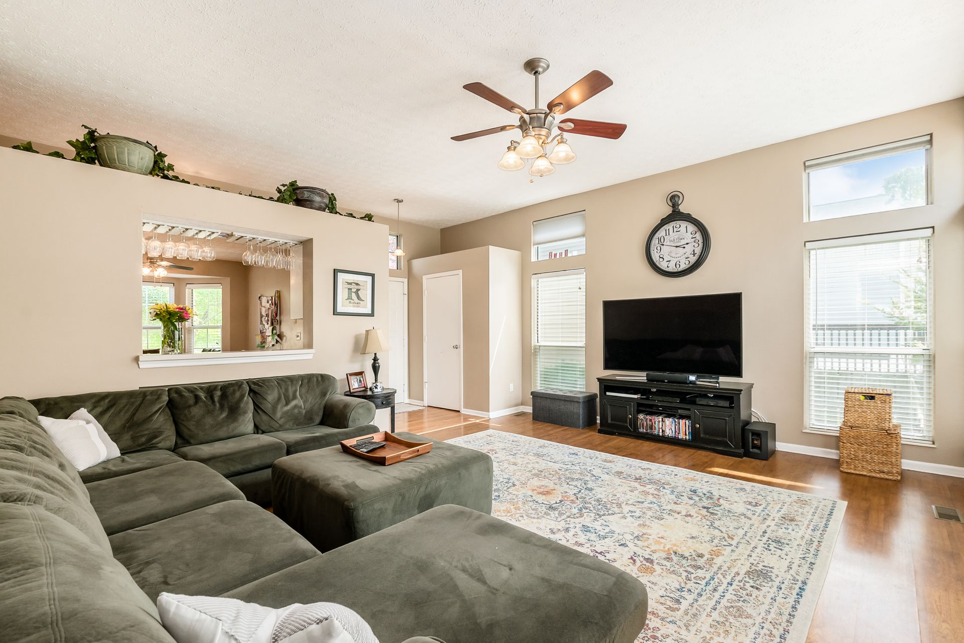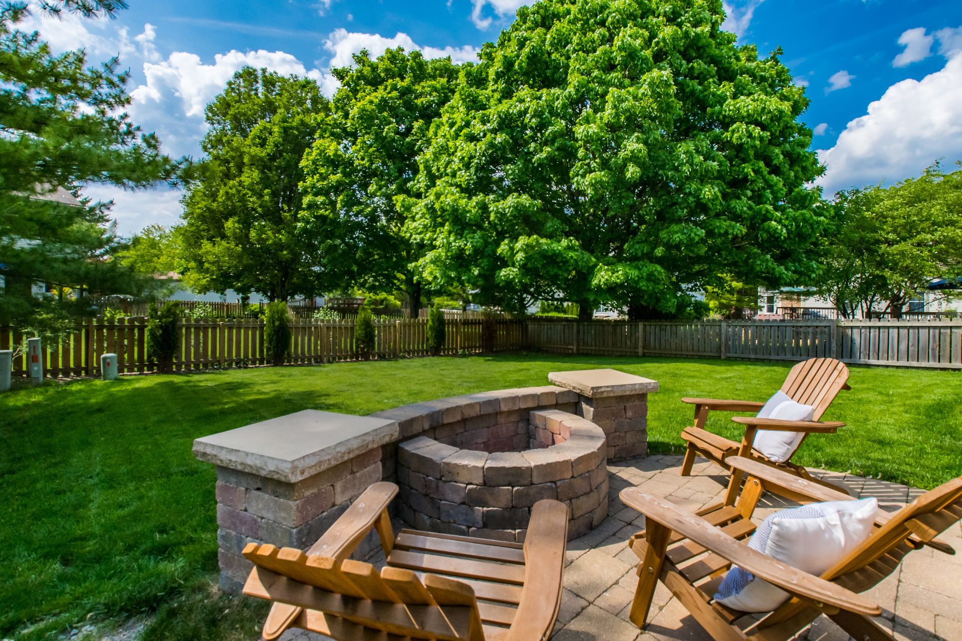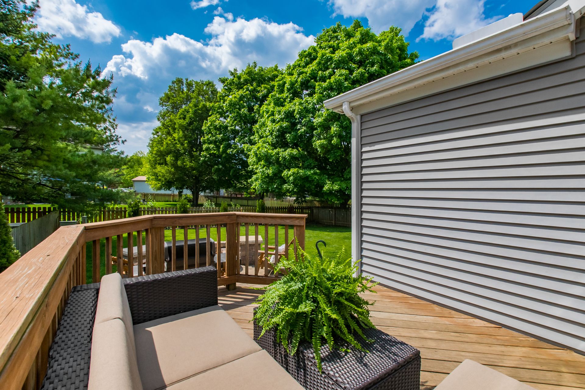 Open and airy one-story with plenty of natural light and an abundance of windows! Stainless appliances in the roomy, eat-in kitchen conveniently located next to laundry/mud room. High ceilings enhance the openness. Master suite has awesome dual closet space. Lower level has large built-in bar, recreation space, play space and/or movie viewing. Plus, ample storage room. Bring the outdoors in with an awesome deck to paver patio and built-in firepit. Plenty of green space in fully fenced backyard.