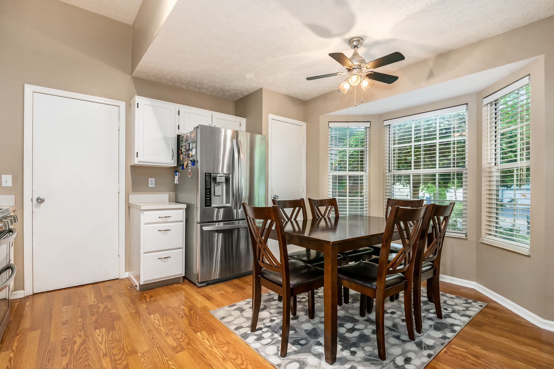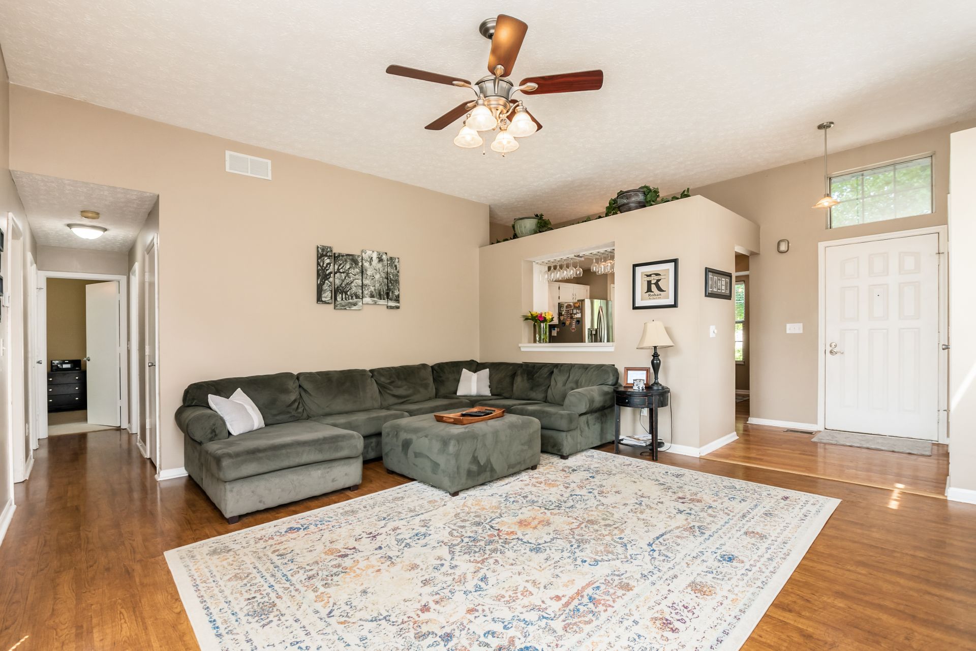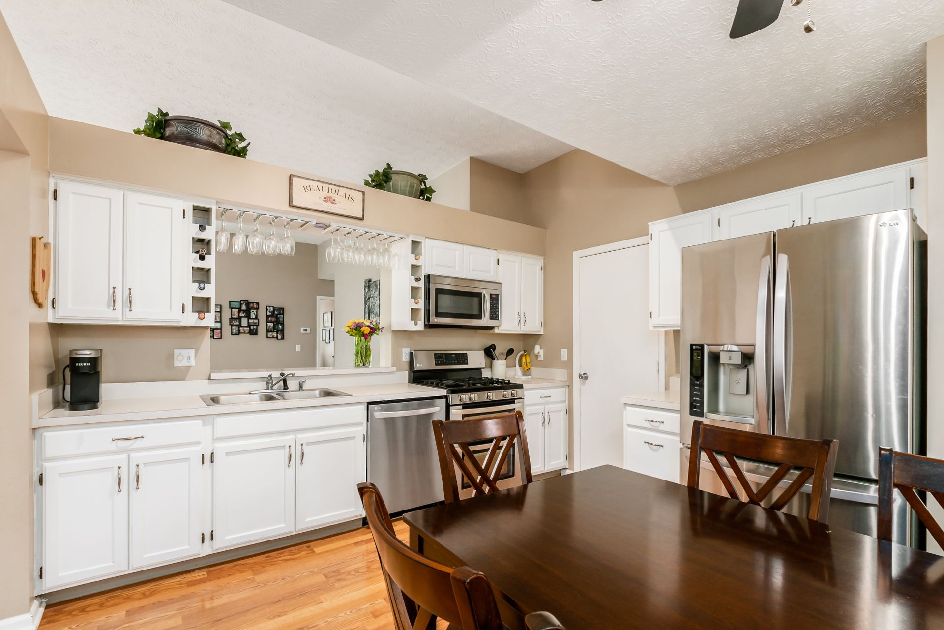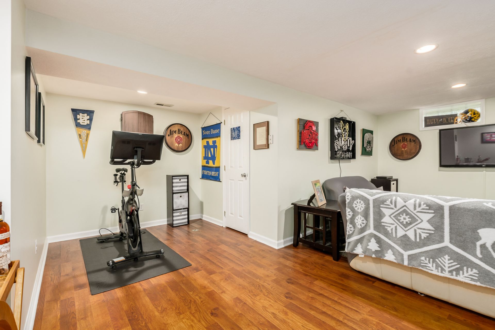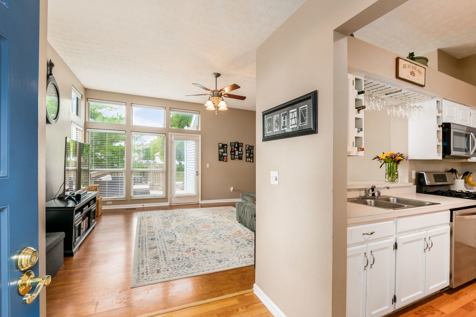 Open and airy one-story with plenty of natural light and an abundance of windows! Stainless appliances in the roomy, eat-in kitchen conveniently located next to laundry/mud room. High ceilings enhance the openness. Master suite has awesome dual closet space. Lower level has large built-in bar, recreation space, play space and/or movie viewing. Plus, ample storage room. Bring the outdoors in with an awesome deck to paver patio and built-in firepit. Plenty of green space in fully fenced backyard.