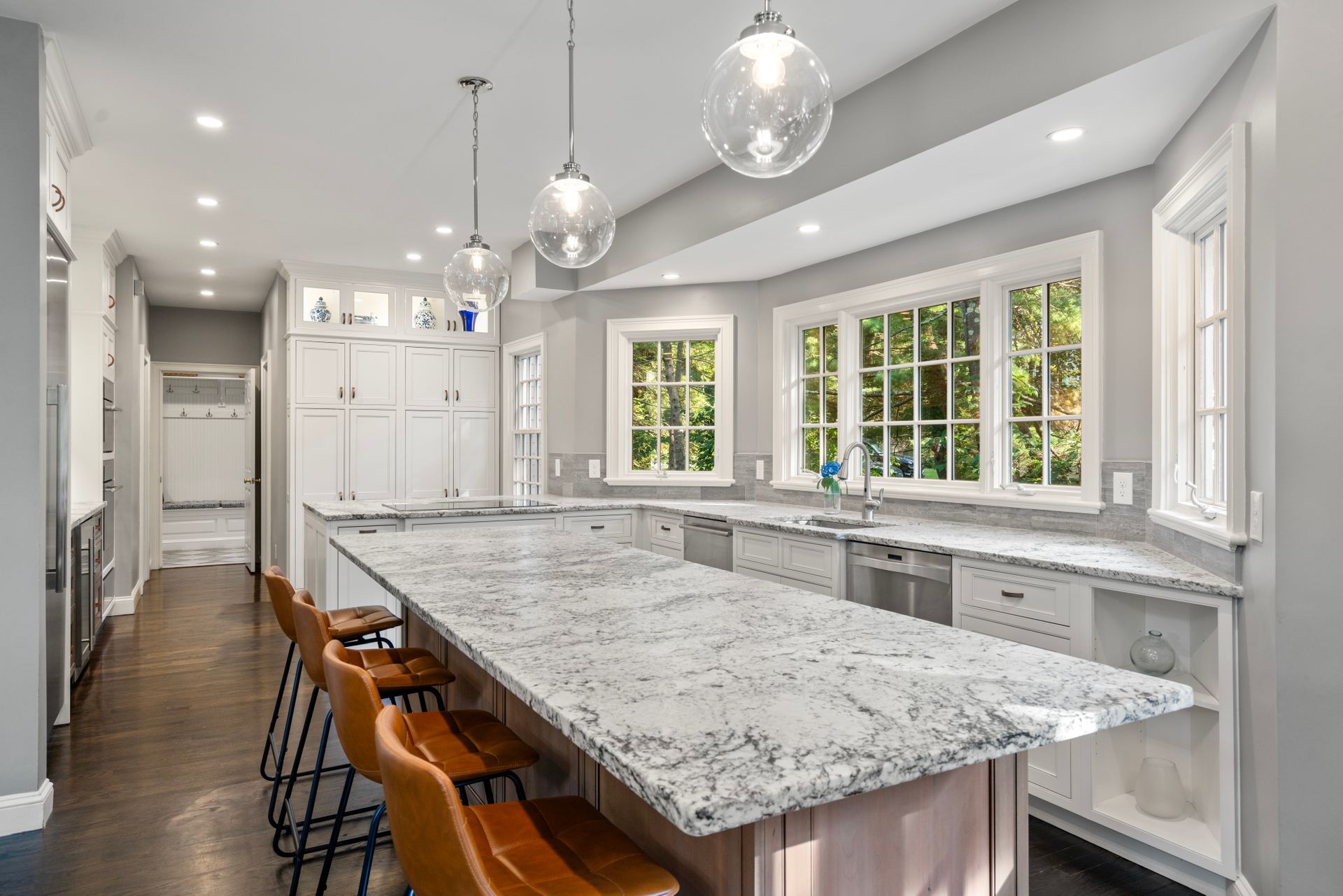 With over 7,000 square feet this home is ideally located on a cul de sac in the Country Club neighborhood. It features high ceilings and an open floor plan great for family living and entertaining. The newly renovated kitchen has leathered granite, high-end appliances, a large island, two dishwashers, speed oven, warming drawer and more. The kitchen opens to a large, sun-filled family room with French doors out to the deck and a screened porch great for indoor/outdoor living. The spacious primary bedroom has a recently renovated spa bath. The other bedrooms on the second floor all have en suite baths. The second floor also includes a large bonus room with a full bathroom and second staircase. The third floor includes a fifth bedroom with a full bath and extra room. The walk out basement is great for exercise or play. This house is close to train, schools, walking paths, parks, Whole Foods and much more!