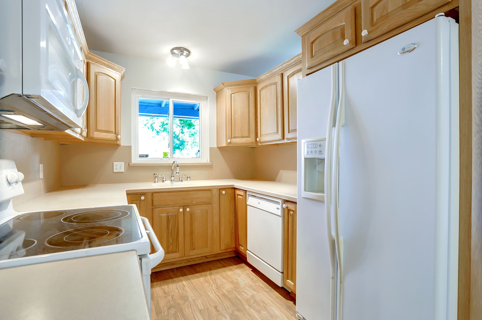 Cheery 4 bedroom, 2 bath cottage across from Lawrence Park offers hardwood floors, living room fireplace, updated kitchen with Corian counters, gas range, built-in microwave, dishwasher, & refrigerator; energy efficient dual pane windows throughout. Bonus room opens to the beautiful backyard featuring a central pergola, multiple fruit trees & colorful flowers. 2 car garage with plentiful shelving, storage shed, 2 blocks to public transportation.