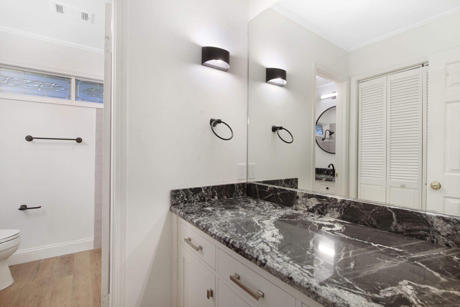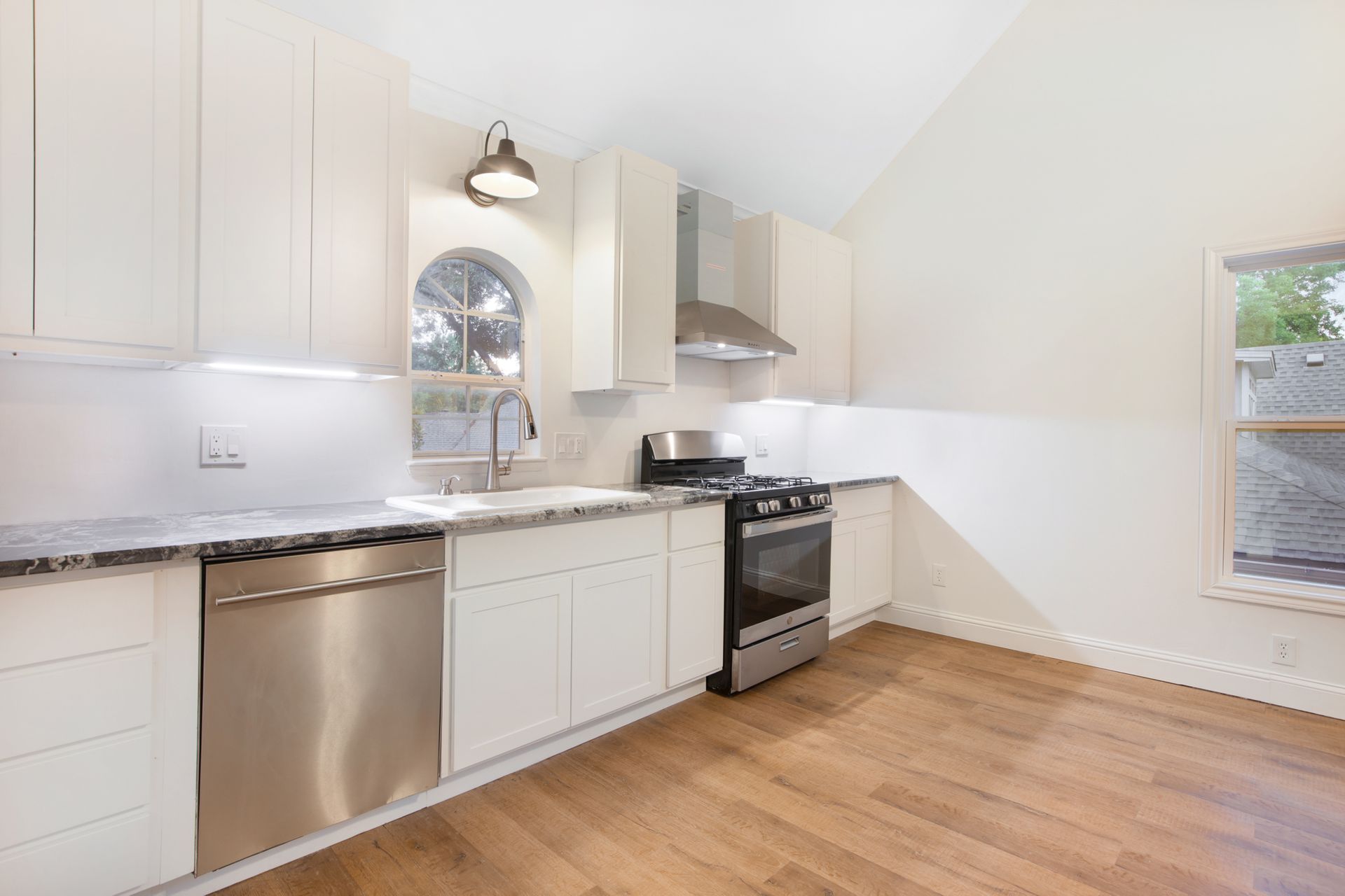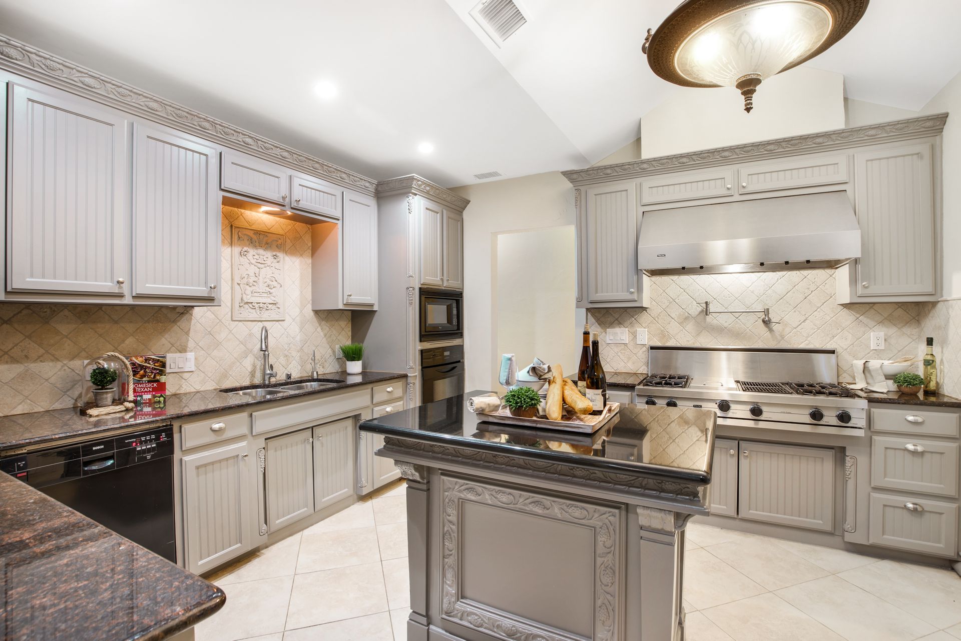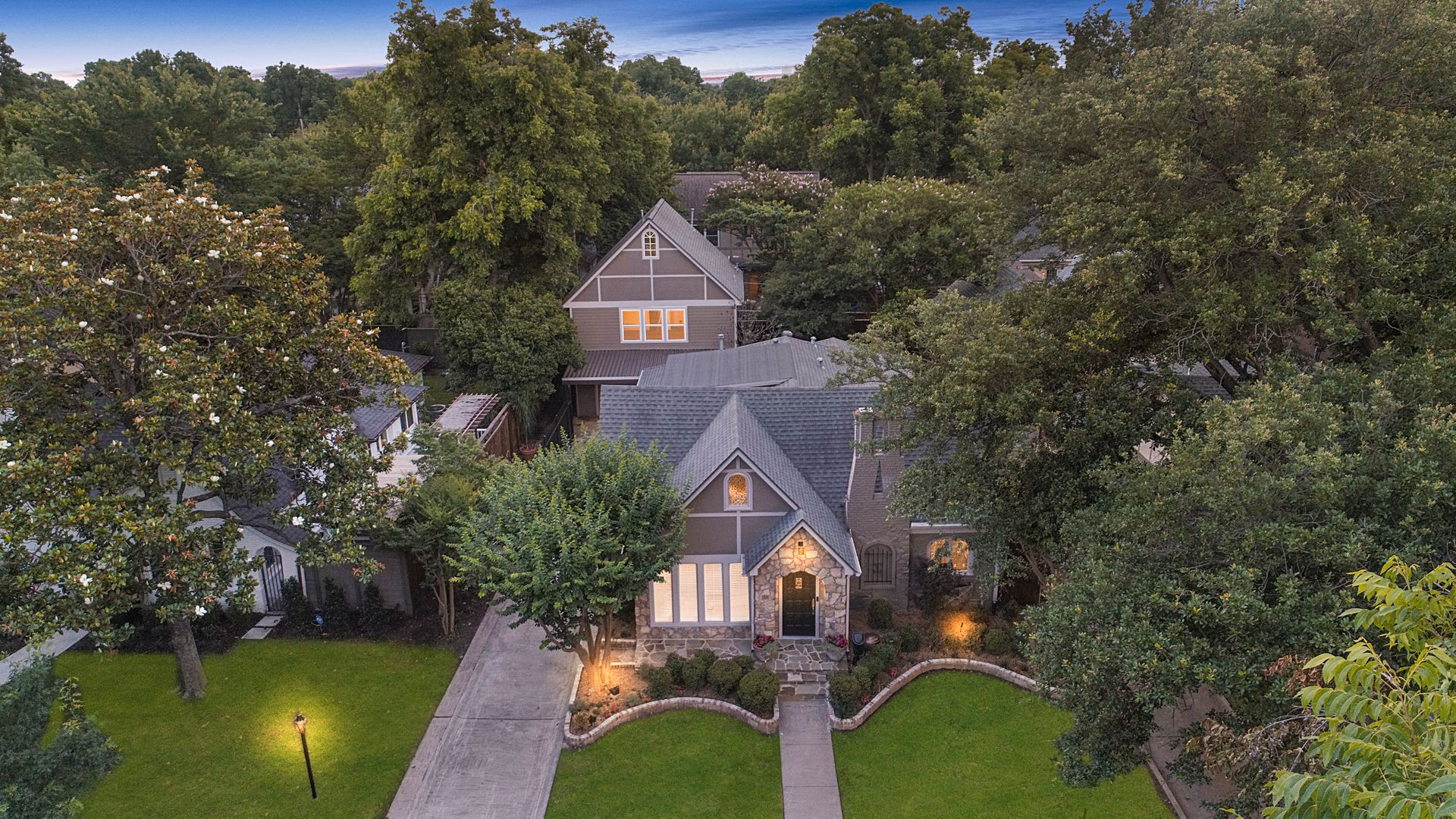 This classic 1925 Tudor has been masterfully updated and features a seamless melding of historic architectural charm and modern living. Fabulous kitchen is outftted with a large commercial Viking gas range and vent hood, pot filler, built-in refrigerator, and center island with wine fridge. There are four bedrooms and three full bathrooms in the main house. Numerous stained glass cathedral glass windows with historic Tudor appeal, and dual pane windows throughout. Large primary bedroom with ensuite bathroom with dual closets. Oversized detached garage with separate storage room and half bath. There is a spacious 633 square foot apartment above the garage (not included in total square footage) with living, bedroom, bath, and kitchen that is perfect for guests or rental income property. Wrought iron driveway gate and pedestrian gate provide separate access to garage apartment offering privacy and convenience. Beautiful low maintenance backyard with large deck, flagstone patio and lush landscape.