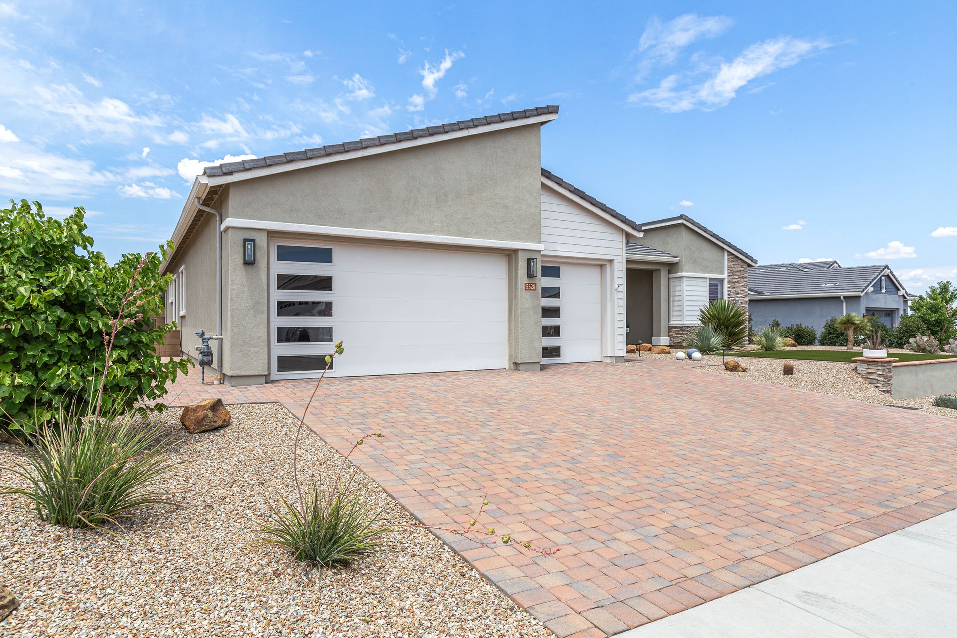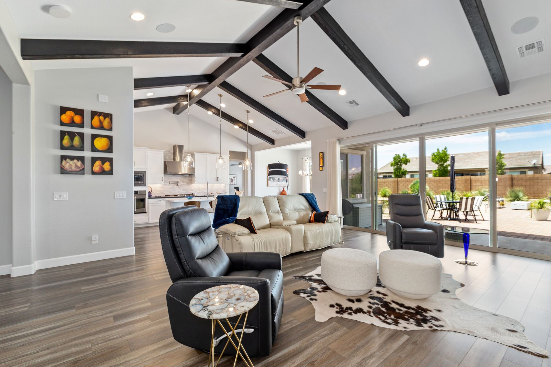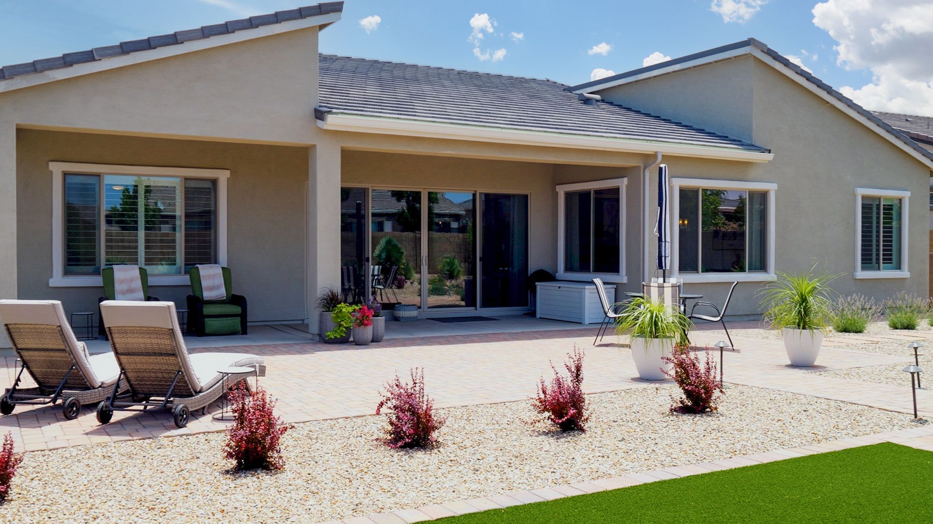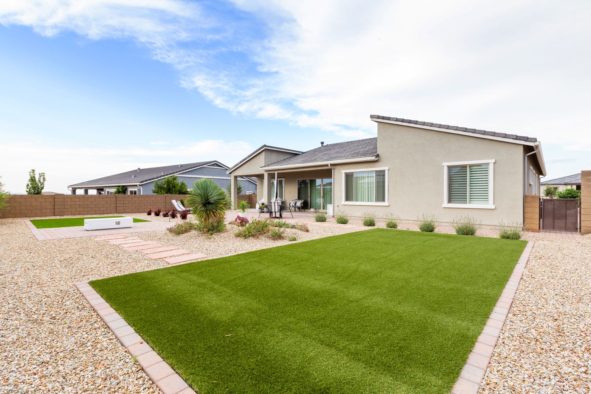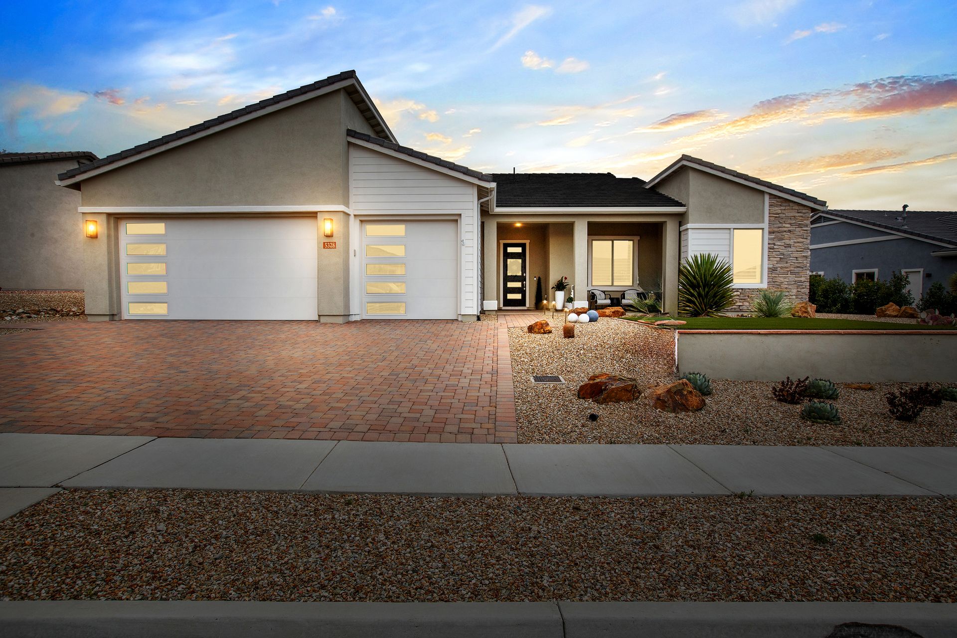 Magnificent modern style home in sought-after Granite Dells Estates! This 3 bed/2.5 bath + office, ''Sunflower floor plan'', has the elegance of modern design influences. The front yard invites you with a calming splash of green turf. Make your way to the main entry through the covered patio with seating area. Enter through the modern paneled front door into the entry vestibule with an immediate view of the open floor plan with vaulted ceilings, wood beams, floor-to-ceiling custom tiled fireplace and massive sun-drenched windows. The incredible chef's kitchen is equipped with a suite of GE Café including; refrigerator/freezer, gas cooktop, dishwasher, and baker's French-door wall oven. The kitchen cabinets are a crisp white with stainless pulls and just the right amount of stylish glass door upper cabinets. There's ample counter space with a huge island, quartz countertops, stylish pendant lights, stainless farm sink, designer backsplash, and walk-in pantry. The flooring throughout the home is luxury polymer plank flooring (no carpet). The primary bedroom is an elegant retreat with ensuite that has quartz counters w/dual sinks, freestanding tub, custom tiled glass shower, and a large walk-in closet. This split floor plan has two guest bedrooms with a hall bath. The laundry hallway includes Samsung washer/dryer, features a drop zone and a powder room. There is added quality with upgraded cabinets, quartz counters, paddle fans, custom tile and plantation shutters throughout. Enjoy the indoor-outdoor living with this Large (.29 Acre) lot that has an oversized paver patio, aqua-glass firepit, relaxing turf areas, and maturing trees. The insulated garage is extra-large with 4 ft extension, and includes wall storage cabinets, ceiling mounted storage and a workbench. Also, includes a whole house water purification system. This gem in Granite Dells Estates won't last long! MLS#6733825