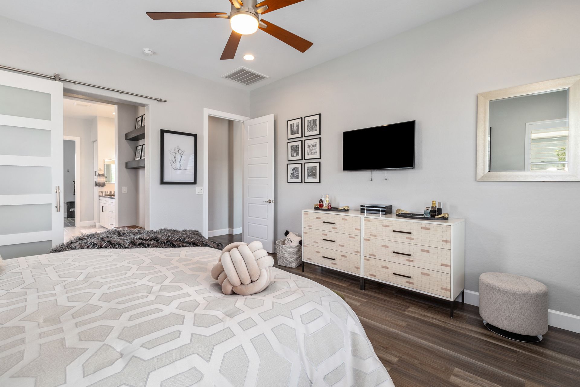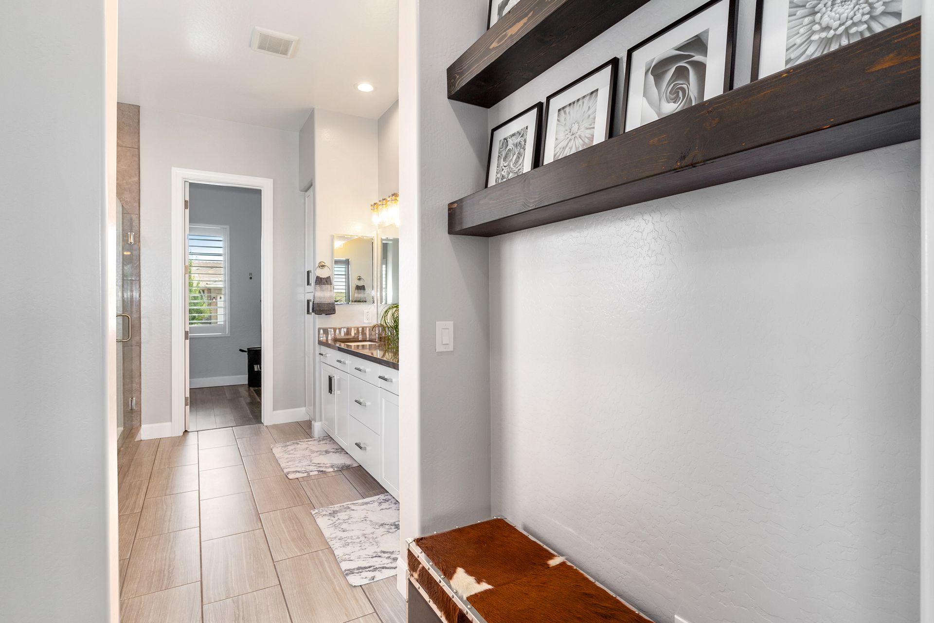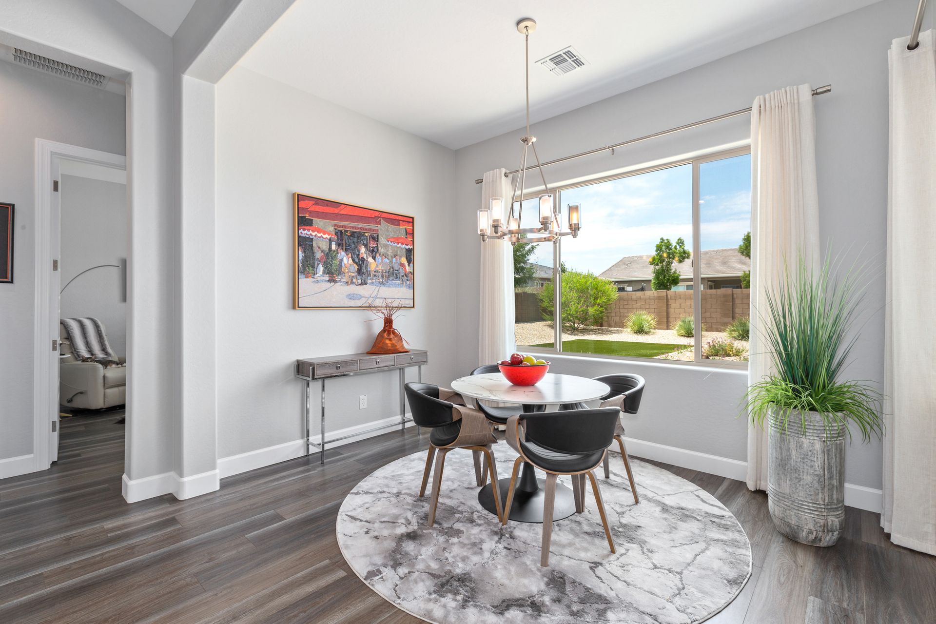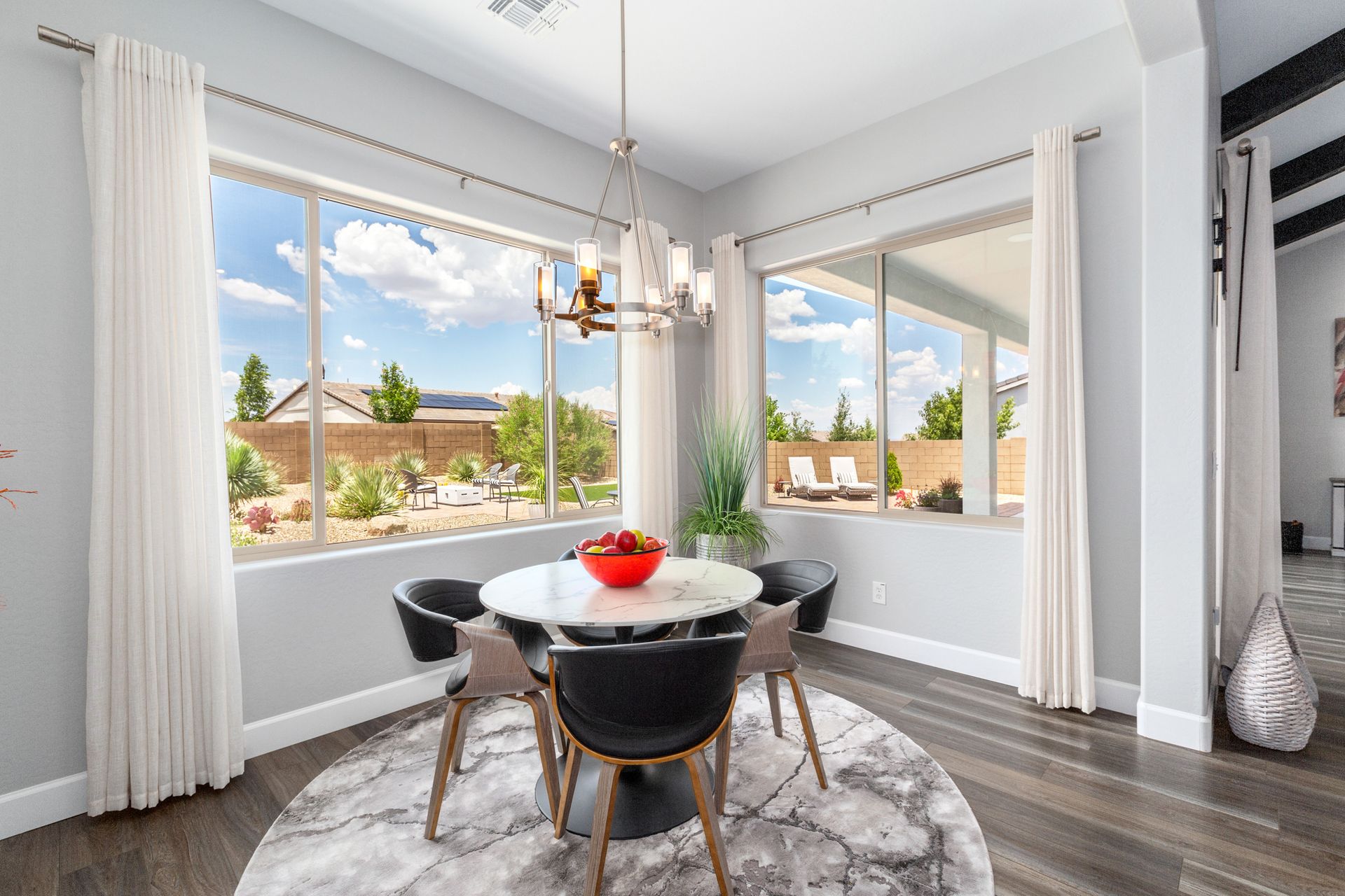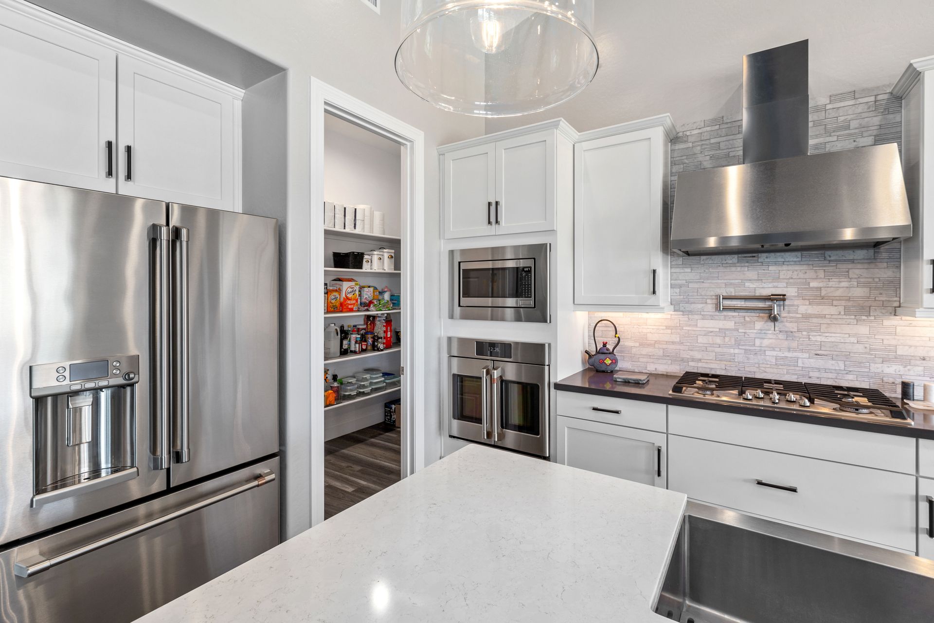 Magnificent modern style home in sought-after Granite Dells Estates! This 3 bed/2.5 bath + office, ''Sunflower floor plan'', has the elegance of modern design influences. The front yard invites you with a calming splash of green turf. Make your way to the main entry through the covered patio with seating area. Enter through the modern paneled front door into the entry vestibule with an immediate view of the open floor plan with vaulted ceilings, wood beams, floor-to-ceiling custom tiled fireplace and massive sun-drenched windows. The incredible chef's kitchen is equipped with a suite of GE Café including; refrigerator/freezer, gas cooktop, dishwasher, and baker's French-door wall oven. The kitchen cabinets are a crisp white with stainless pulls and just the right amount of stylish glass door upper cabinets. There's ample counter space with a huge island, quartz countertops, stylish pendant lights, stainless farm sink, designer backsplash, and walk-in pantry. The flooring throughout the home is luxury polymer plank flooring (no carpet). The primary bedroom is an elegant retreat with ensuite that has quartz counters w/dual sinks, freestanding tub, custom tiled glass shower, and a large walk-in closet. This split floor plan has two guest bedrooms with a hall bath. The laundry hallway includes Samsung washer/dryer, features a drop zone and a powder room. There is added quality with upgraded cabinets, quartz counters, paddle fans, custom tile and plantation shutters throughout. Enjoy the indoor-outdoor living with this Large (.29 Acre) lot that has an oversized paver patio, aqua-glass firepit, relaxing turf areas, and maturing trees. The insulated garage is extra-large with 4 ft extension, and includes wall storage cabinets, ceiling mounted storage and a workbench. Also, includes a whole house water purification system. This gem in Granite Dells Estates won't last long! MLS#6733825