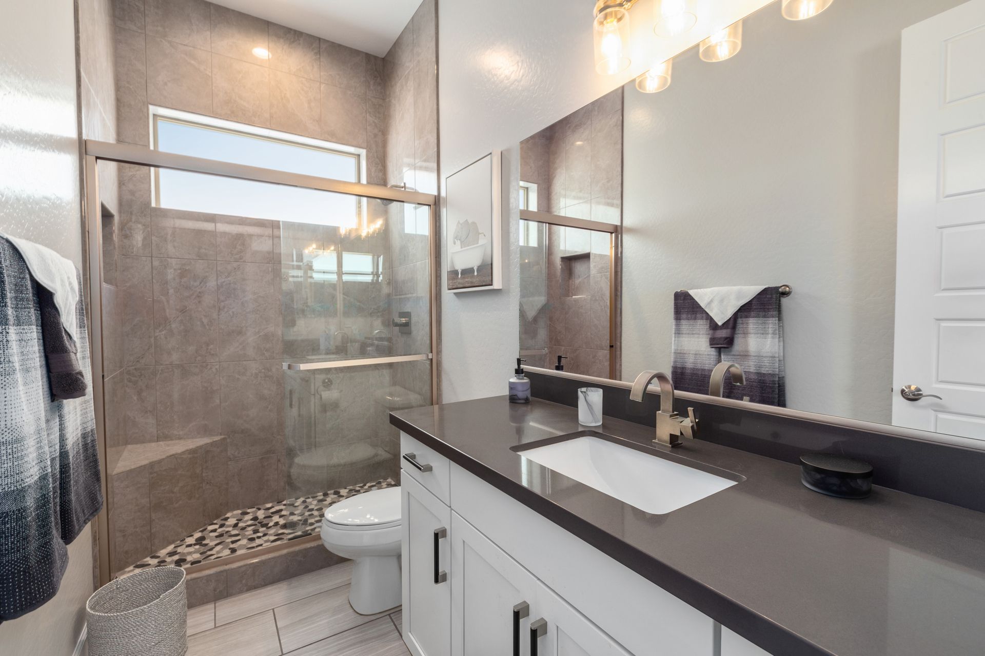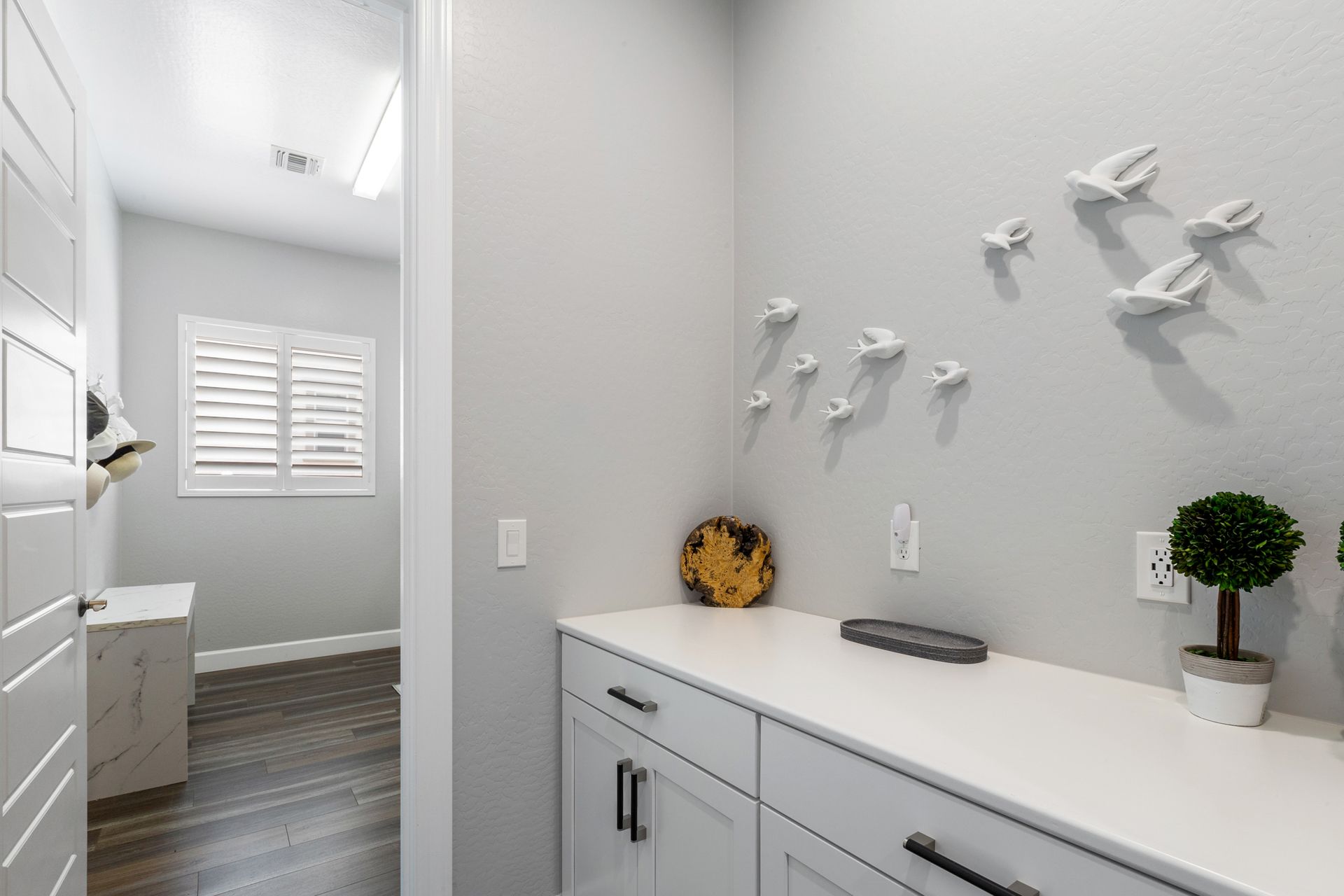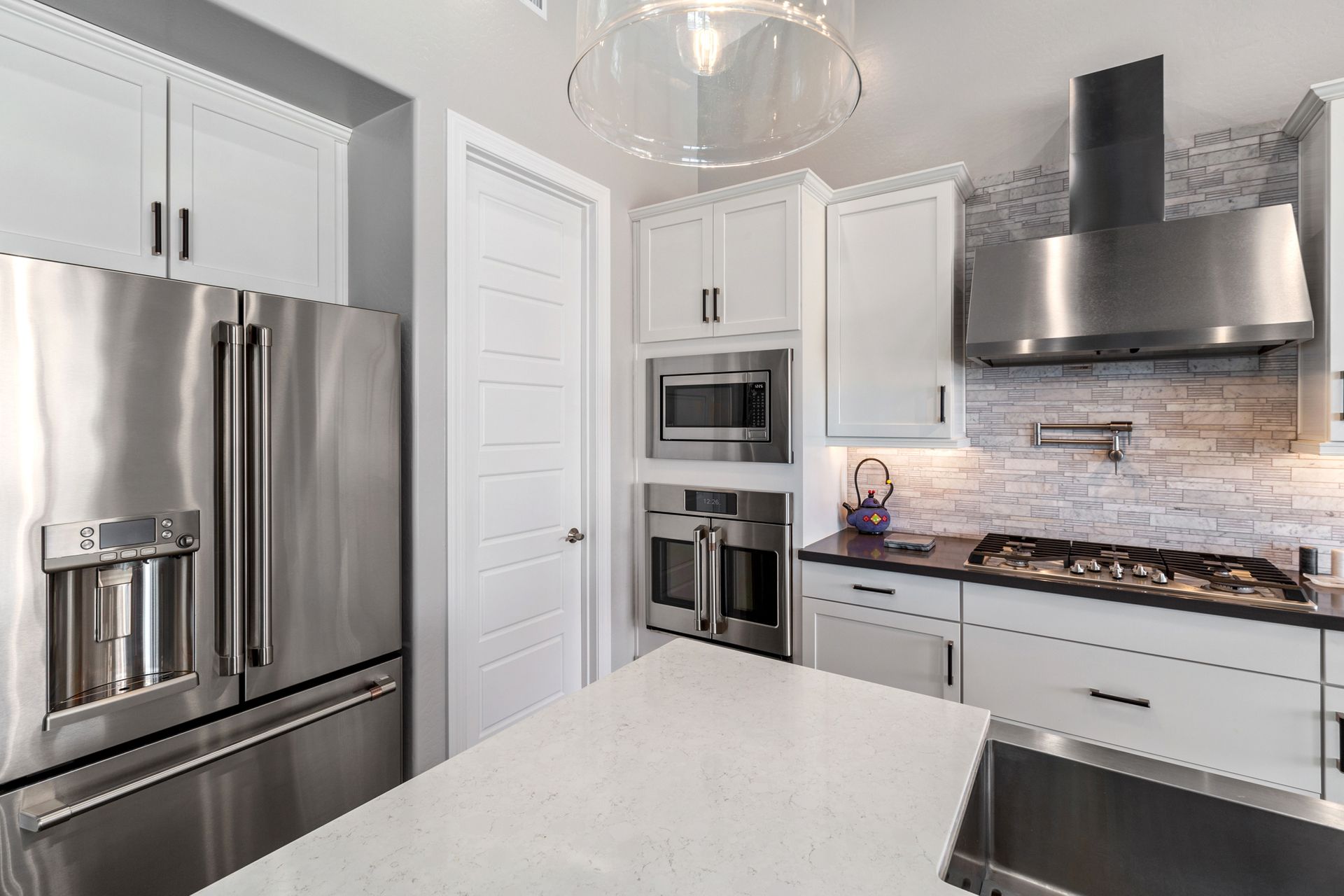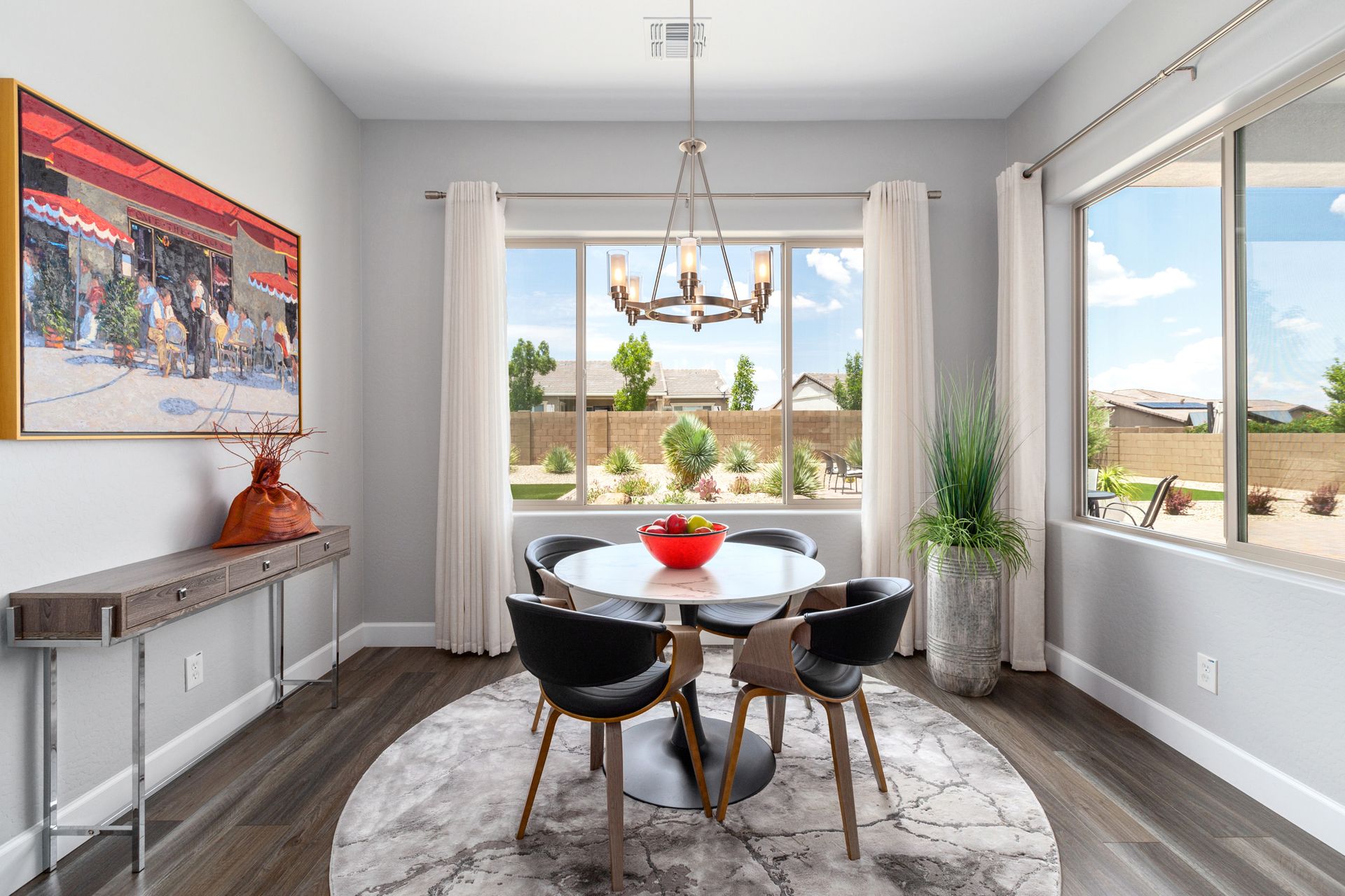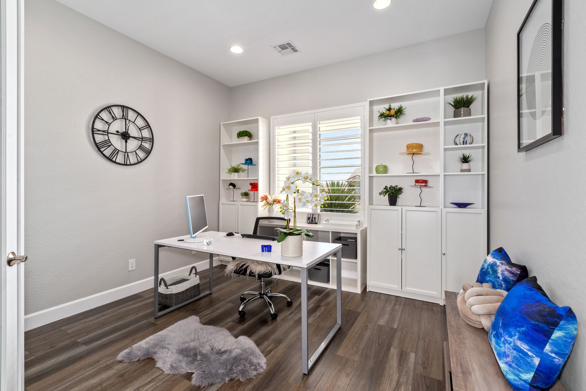 Magnificent modern style home in sought-after Granite Dells Estates! This 3 bed/2.5 bath + office, ''Sunflower floor plan'', has the elegance of modern design influences. The front yard invites you with a calming splash of green turf. Make your way to the main entry through the covered patio with seating area. Enter through the modern paneled front door into the entry vestibule with an immediate view of the open floor plan with vaulted ceilings, wood beams, floor-to-ceiling custom tiled fireplace and massive sun-drenched windows. The incredible chef's kitchen is equipped with a suite of GE Café including; refrigerator/freezer, gas cooktop, dishwasher, and baker's French-door wall oven. The kitchen cabinets are a crisp white with stainless pulls and just the right amount of stylish glass door upper cabinets. There's ample counter space with a huge island, quartz countertops, stylish pendant lights, stainless farm sink, designer backsplash, and walk-in pantry. The flooring throughout the home is luxury polymer plank flooring (no carpet). The primary bedroom is an elegant retreat with ensuite that has quartz counters w/dual sinks, freestanding tub, custom tiled glass shower, and a large walk-in closet. This split floor plan has two guest bedrooms with a hall bath. The laundry hallway includes Samsung washer/dryer, features a drop zone and a powder room. There is added quality with upgraded cabinets, quartz counters, paddle fans, custom tile and plantation shutters throughout. Enjoy the indoor-outdoor living with this Large (.29 Acre) lot that has an oversized paver patio, aqua-glass firepit, relaxing turf areas, and maturing trees. The insulated garage is extra-large with 4 ft extension, and includes wall storage cabinets, ceiling mounted storage and a workbench. Also, includes a whole house water purification system. This gem in Granite Dells Estates won't last long! MLS#6733825