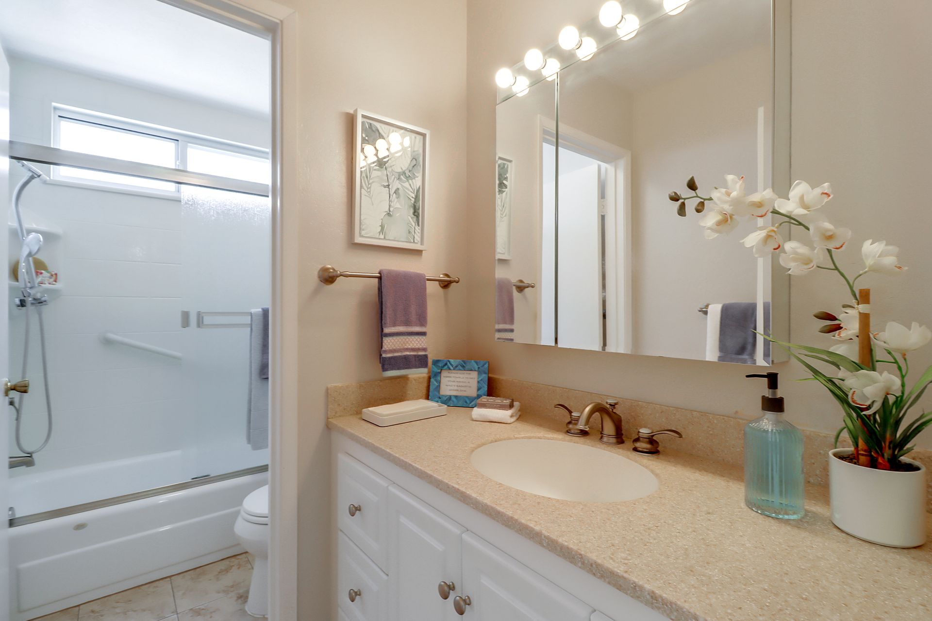 Terrific bright and inviting four-bedroom Blossom Valley home with updated kitchen and baths located on a lovely tree-lined street. Some of the wonderful features include beautiful KraftMaid kitchen cabinetry and soft close drawers, Corian countertop, tile backsplash, Bosch dishwasher and garden window, freshly painted and newly installed carpet in two bedrooms, newer hall lighting, wood floors, Ring doorbell and Nest camera, recessed lighting, dual pane windows, copper plumbing, sun tubes and lots of storage. The master suite has two closets with closet systems and mirrored doors featuring gorgeous master bath cabinetry with linen storage. The open concept kitchen, dining and family room opens to the attached sunroom for added space. Enjoy the private backyard garden abundant with drought tolerant and low maintenance landscaping with flowers that attract hummingbirds and a lemon tree. Walkway and driveway are newer concrete, shed included and boasts one of the larger lots in the neighborhood!