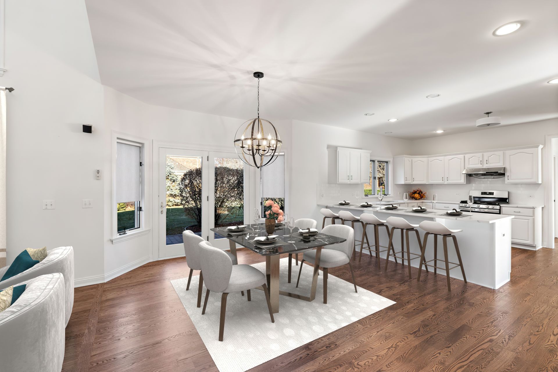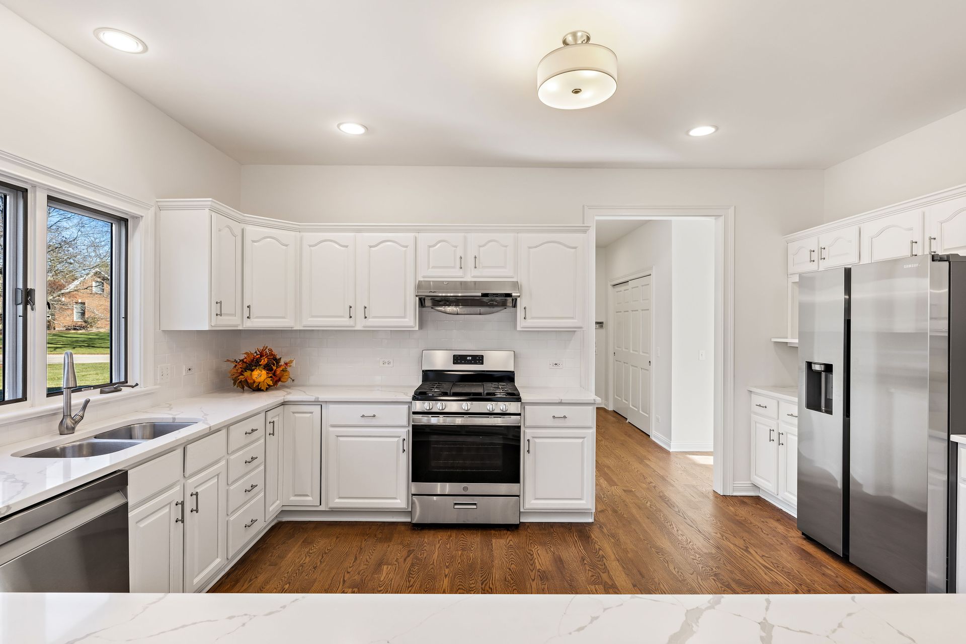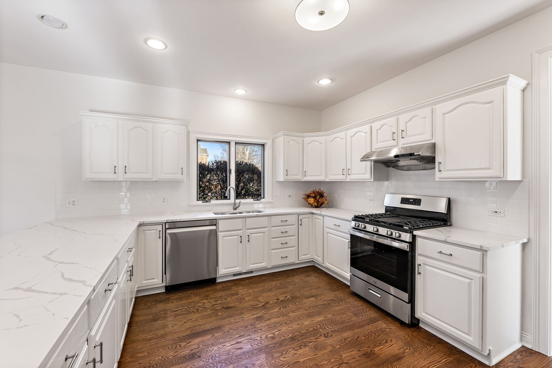 This gorgeous custom-built beauty located in the highly sought-after upscale River Bend subdivision of Libertyville! This 6-bedroom 4.5 bathroom home nestled on a 0.75 acre corner lot was just totally updated with over $110K spend: brand-new hardwood floor and carpet throughout; gourmet Kitchen with stunning NEW quartz countertops/tile backsplash/stainless steel refrigerator/cooktop/oven; bathrooms with new counters and fixtures. The minute you walk in, you feel like in a BRAND-NEW home, the soaring two-story foyer welcome you along with the gleaming hardwood floor, abundant natural light and open floor plan! Elegant Living Room with beautiful large window and amazing WATER VIEW! The heart of the home is the grand Great Room, featuring two-story ceiling, spectacular huge windows, and modern masonry fireplace. It flows to a generous breakfast area and your dream kitchen with built-in butler’s pantry, Lazy-Susan cabinet, oversized quartz island, and bar sitting! The highly desirable FIRST-FLOOR BEDROOM suite is your guests’ dream-coming-true, with incredible water view, beautiful windows and full bath. It’ll also be perfect for your work-from-home office! The romantic Master Bedroom suite at the east wing of the 2nd floor featuring tray ceiling, amazing water views, huge his and her walk-in closets; Attached Master Bath features two separate vanities, walk in shower, separate tub with whirlpool and a window view of the peaceful backyard. The 6th Bedroom is located in the finished basement, with a full bath, closet, and endless storage places. Your guests will never want to leave the recreation room with wet bar and game room in the lower level! Big back yard featuring large brick patio, in-ground sprinkler system and lush landscaping. Walk to picturesque Independence Grove with miles of walking and biking trails, award-winning Libertyville school districts, convenient to downtown, restaurants, expressways, shopping and much more! Move-in ready!