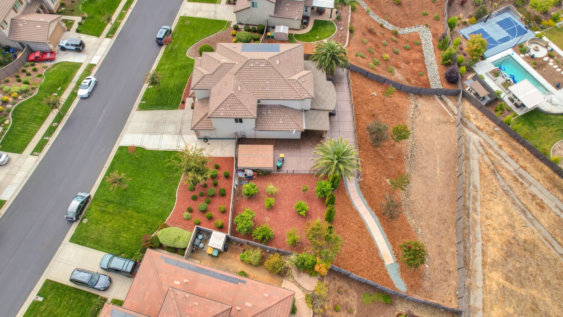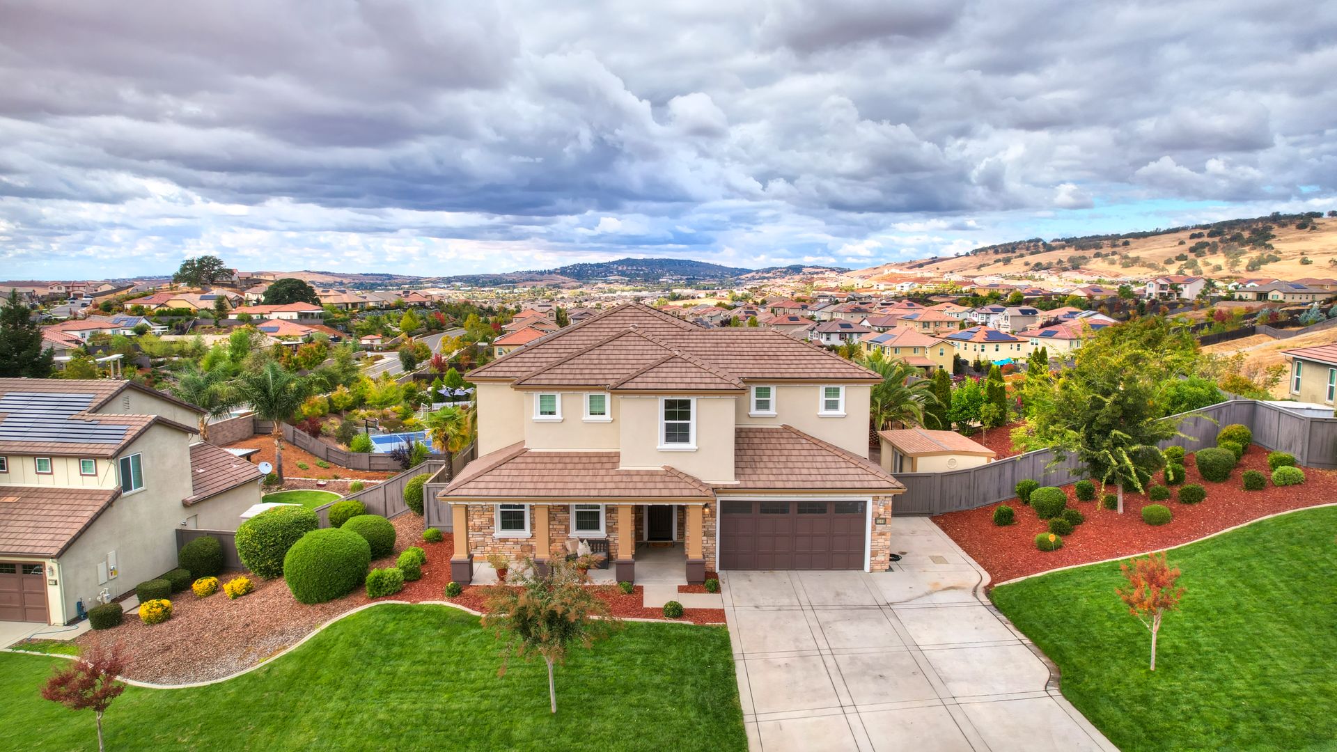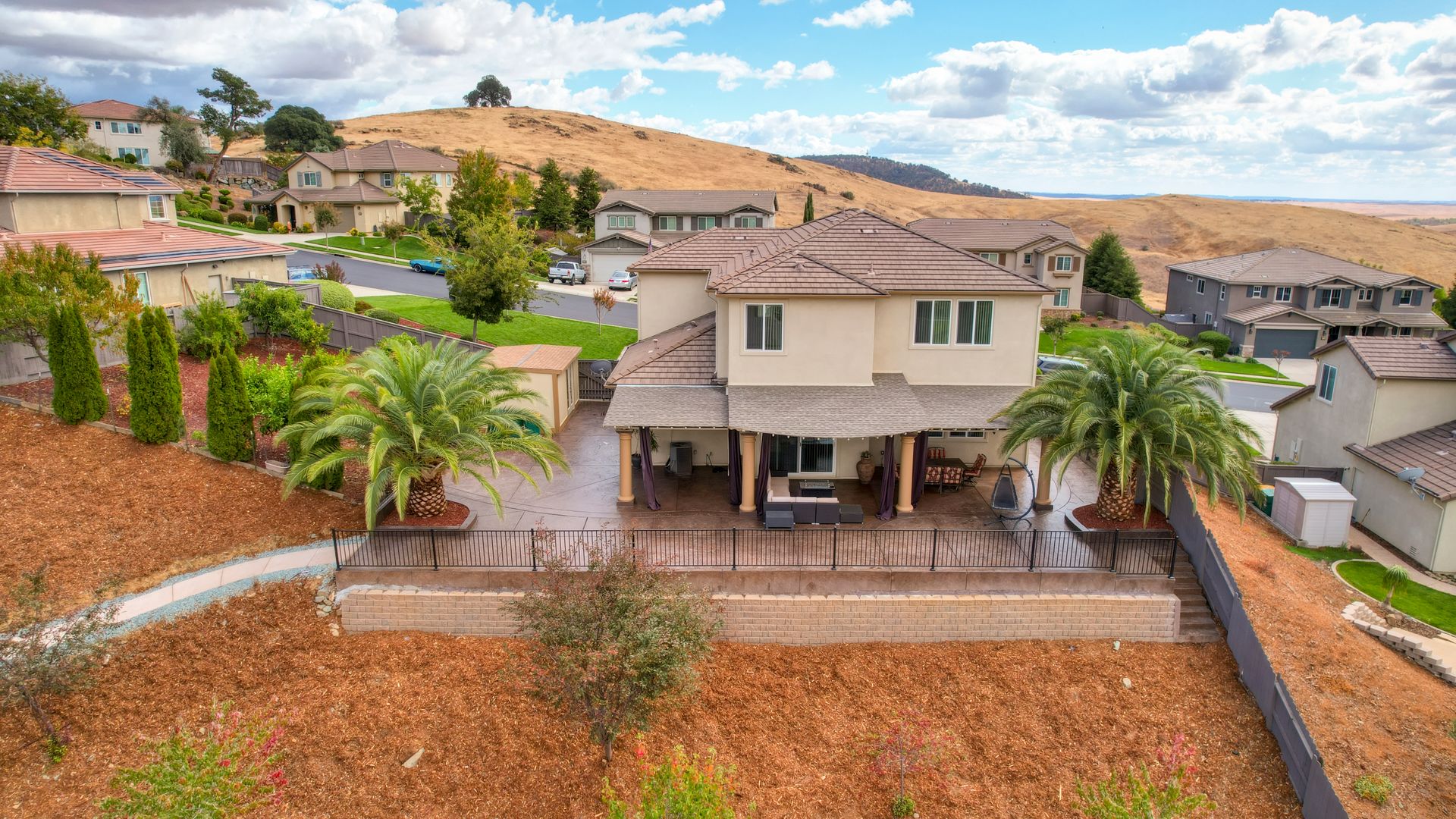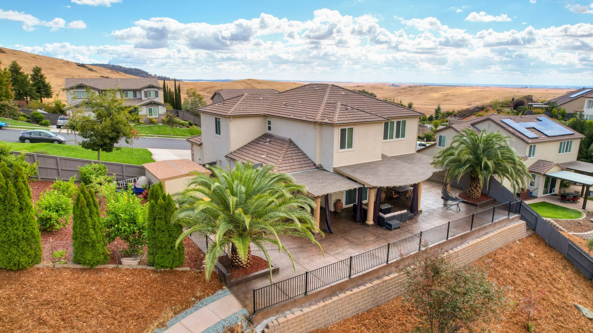 Situated on a peaceful street in the highly sought-after Blackstone Community is this stunning five bedroom and four bathroom home on a premium approximately .46 acre lot with breathtaking views and owned solar! Upgrades include tile flooring, a two-sided fireplace and a large chef's kitchen for entertaining. The spacious living room, oversized island counter, separate formal dining area and large walk-in pantry make this home great for gatherings. With one bedroom and one full bathroom on the main floor and second floor with a large bonus loft area, a primary suite with a spa-inspired bathroom and dual closets. The backyard features a custom stamped concrete patio landscaped with beautiful mature fruit trees and views for days! Three-car tandem garage and large backyard shed to allow for ample additional storage. Enjoy watching celebratory fireworks or enjoy the resort-style clubhouse and all of its amenities. Blackstone master-planned community features a homeowner exclusive clubhouse with swimming pools, a fitness center and large indoor and outdoor gathering areas.