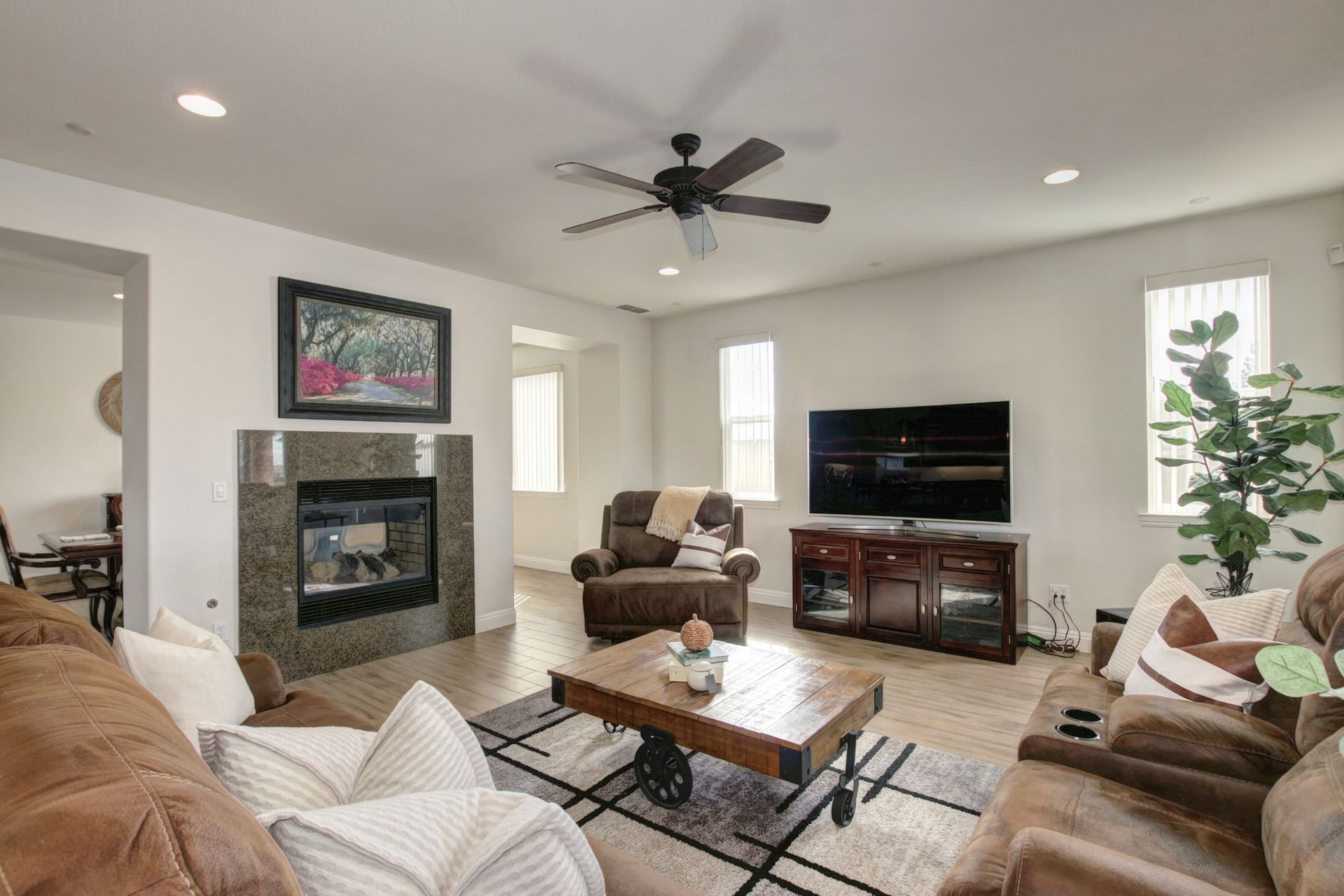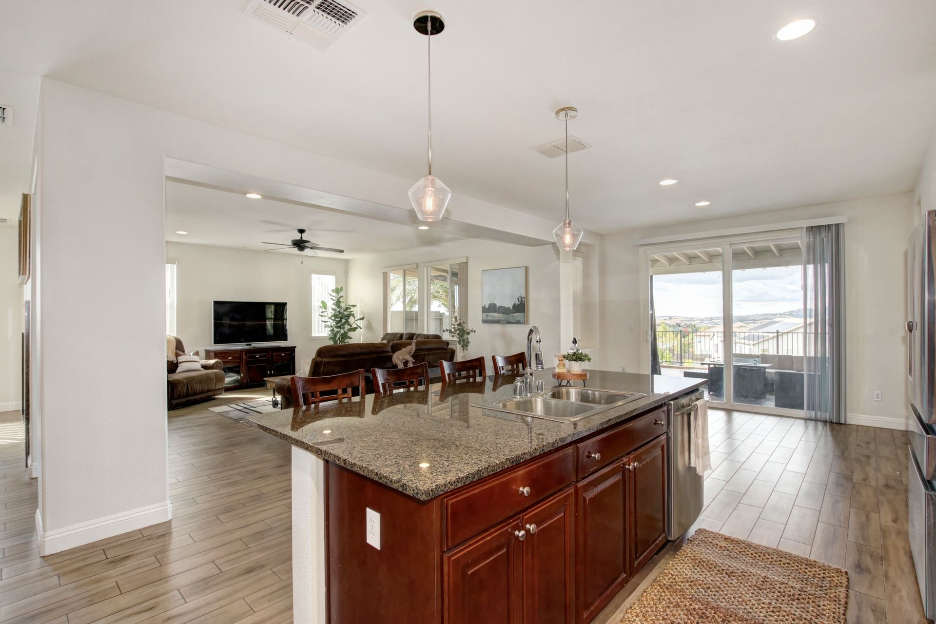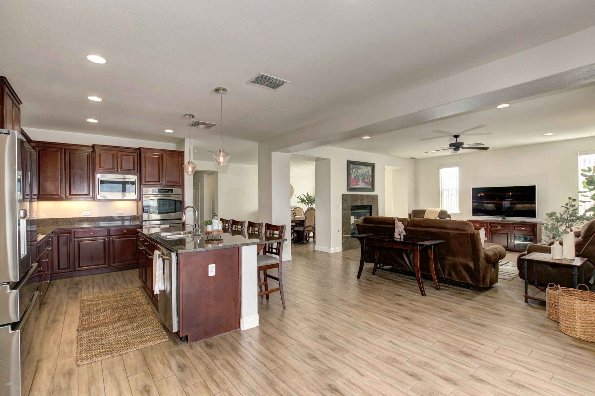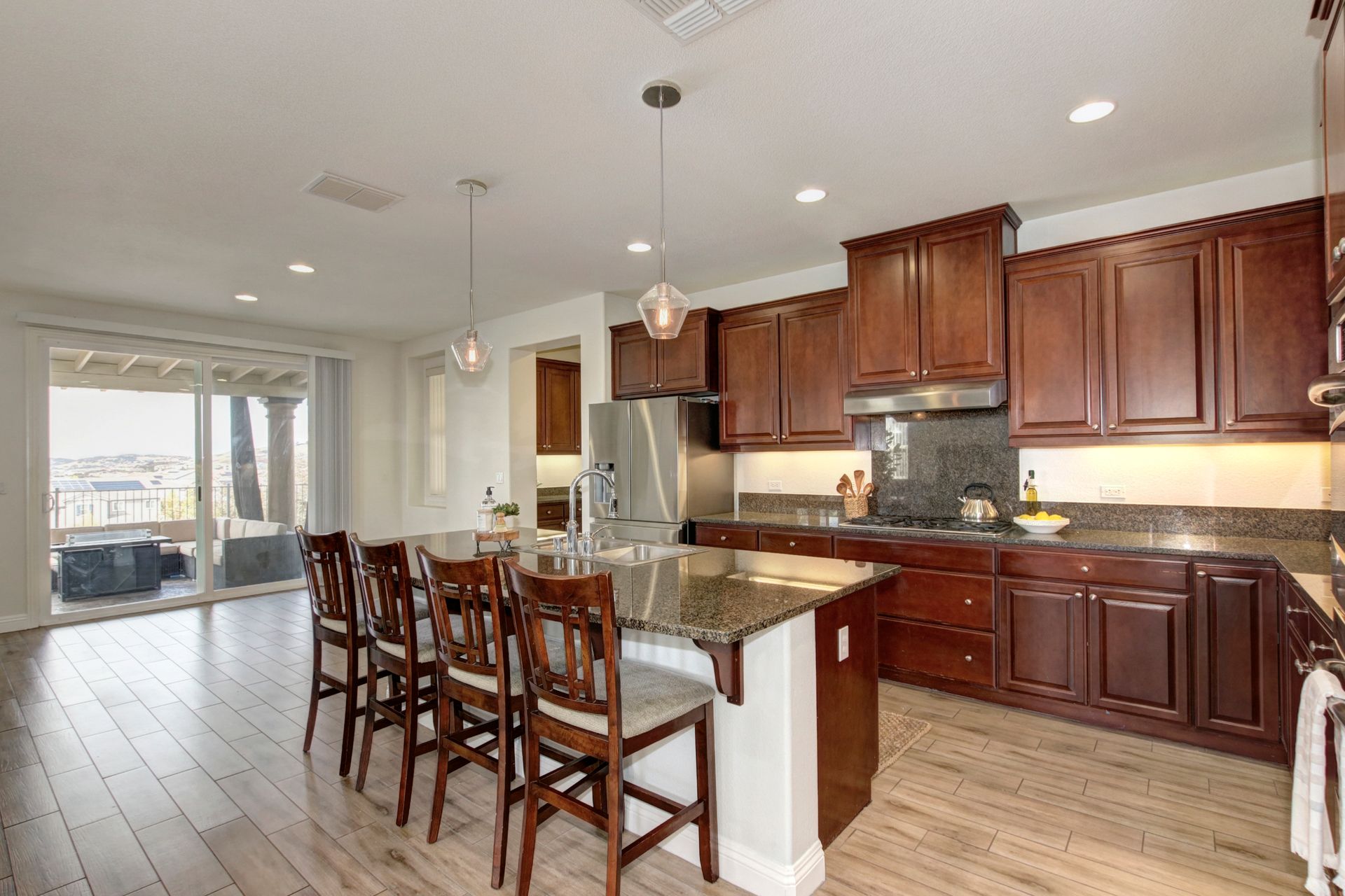 Situated on a peaceful street in the highly sought-after Blackstone Community is this stunning five bedroom and four bathroom home on a premium approximately .46 acre lot with breathtaking views and owned solar! Upgrades include tile flooring, a two-sided fireplace and a large chef's kitchen for entertaining. The spacious living room, oversized island counter, separate formal dining area and large walk-in pantry make this home great for gatherings. With one bedroom and one full bathroom on the main floor and second floor with a large bonus loft area, a primary suite with a spa-inspired bathroom and dual closets. The backyard features a custom stamped concrete patio landscaped with beautiful mature fruit trees and views for days! Three-car tandem garage and large backyard shed to allow for ample additional storage. Enjoy watching celebratory fireworks or enjoy the resort-style clubhouse and all of its amenities. Blackstone master-planned community features a homeowner exclusive clubhouse with swimming pools, a fitness center and large indoor and outdoor gathering areas.