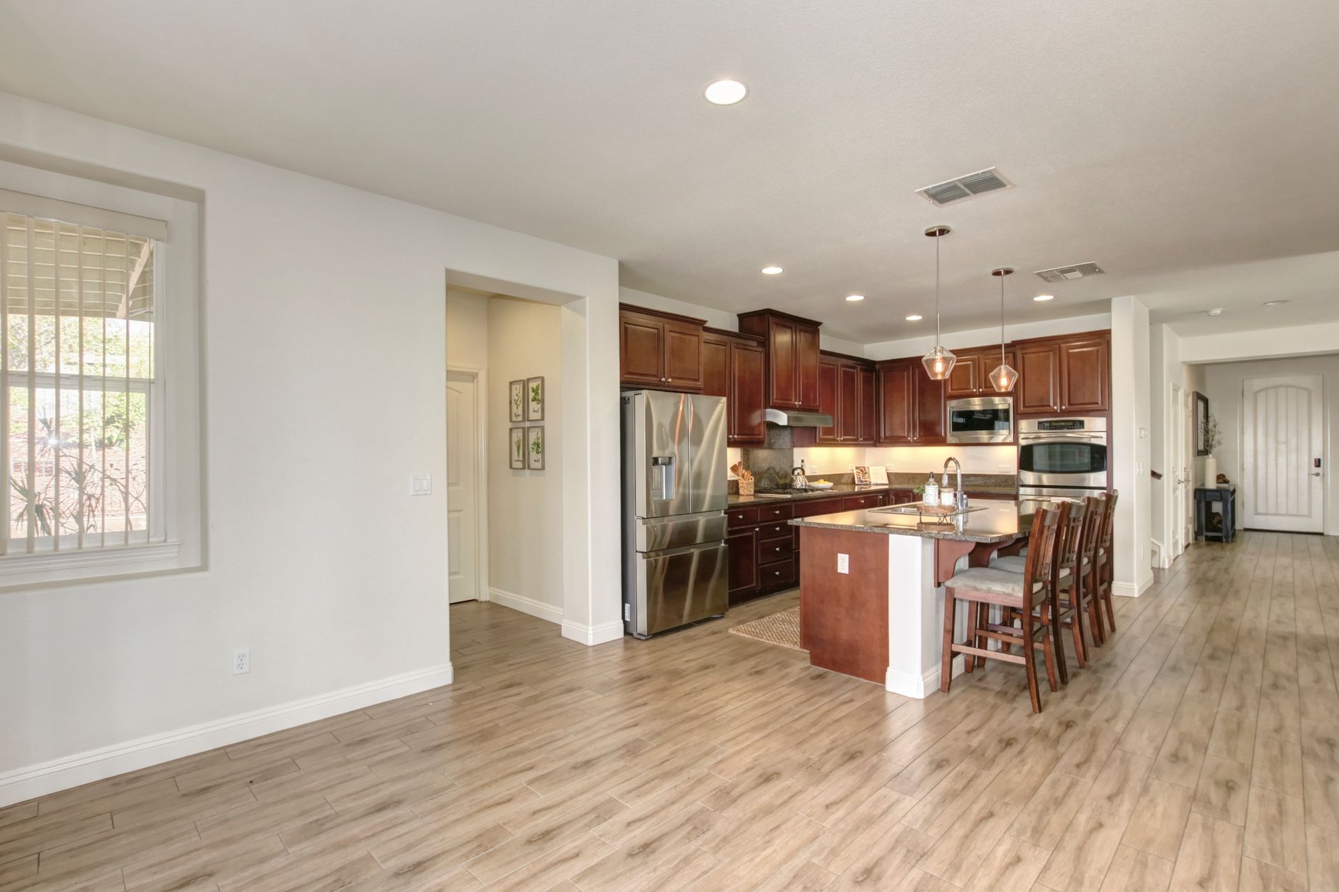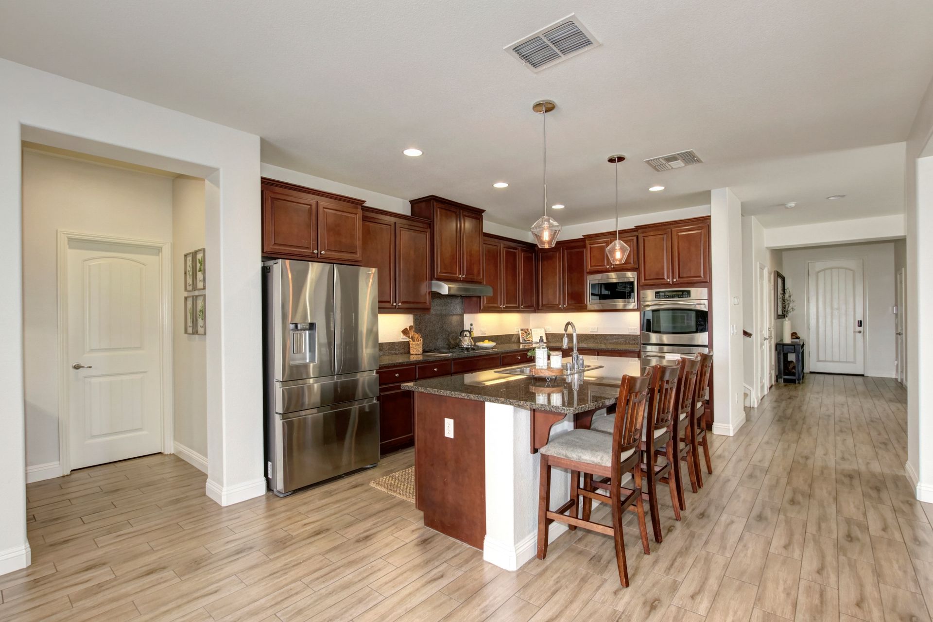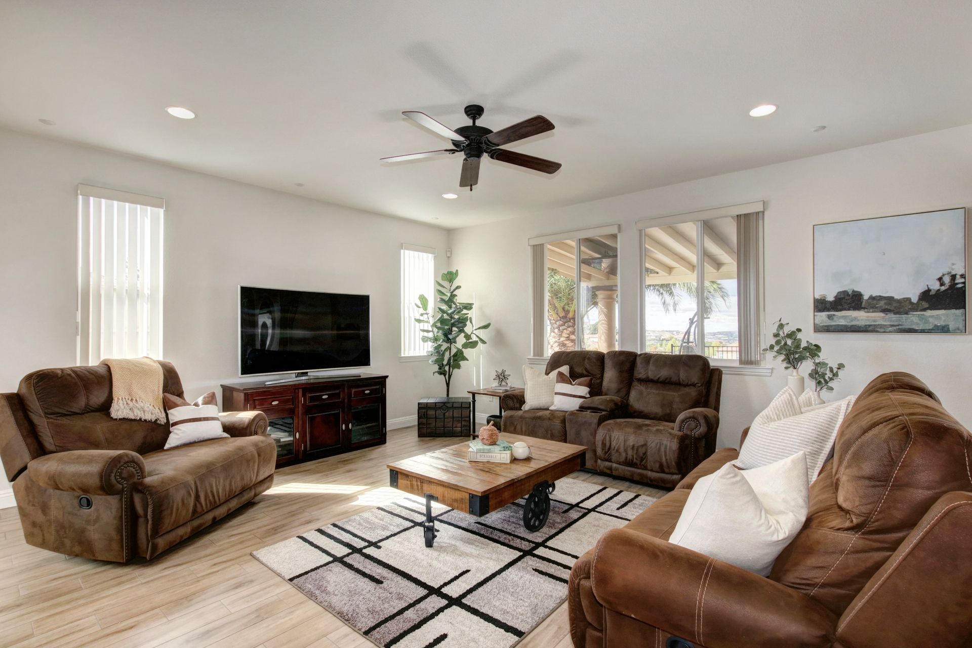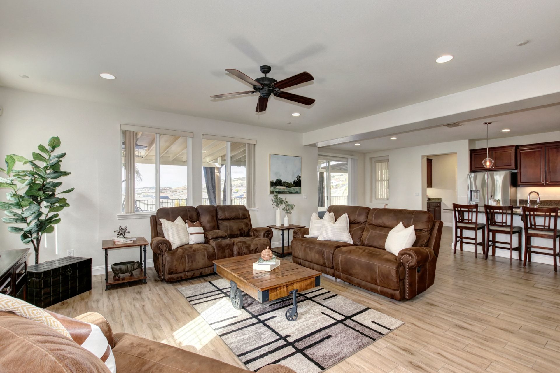 Situated on a peaceful street in the highly sought-after Blackstone Community is this stunning five bedroom and four bathroom home on a premium approximately .46 acre lot with breathtaking views and owned solar! Upgrades include tile flooring, a two-sided fireplace and a large chef's kitchen for entertaining. The spacious living room, oversized island counter, separate formal dining area and large walk-in pantry make this home great for gatherings. With one bedroom and one full bathroom on the main floor and second floor with a large bonus loft area, a primary suite with a spa-inspired bathroom and dual closets. The backyard features a custom stamped concrete patio landscaped with beautiful mature fruit trees and views for days! Three-car tandem garage and large backyard shed to allow for ample additional storage. Enjoy watching celebratory fireworks or enjoy the resort-style clubhouse and all of its amenities. Blackstone master-planned community features a homeowner exclusive clubhouse with swimming pools, a fitness center and large indoor and outdoor gathering areas.