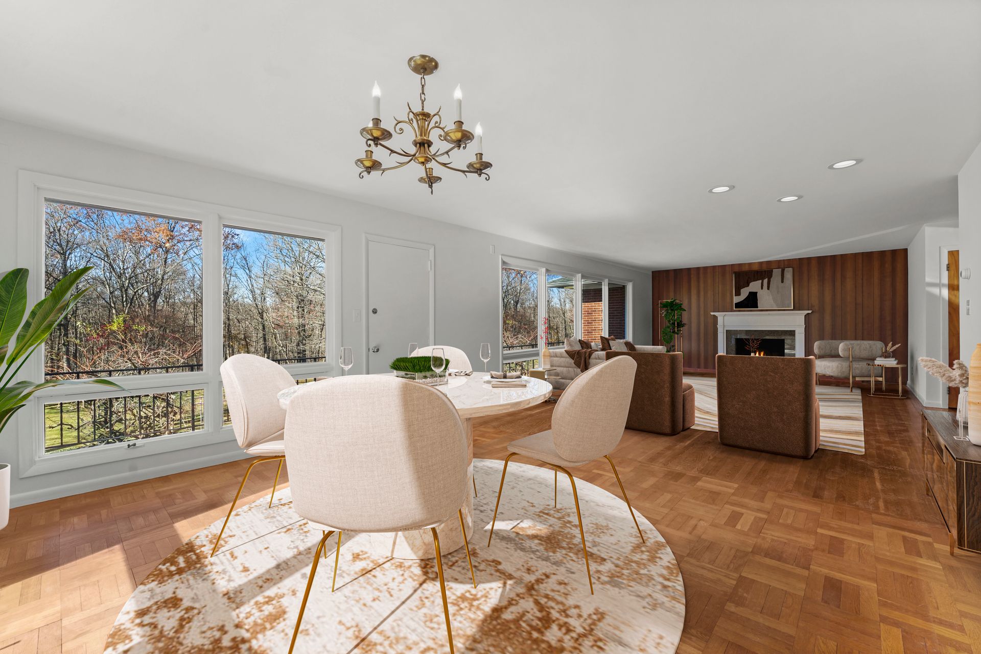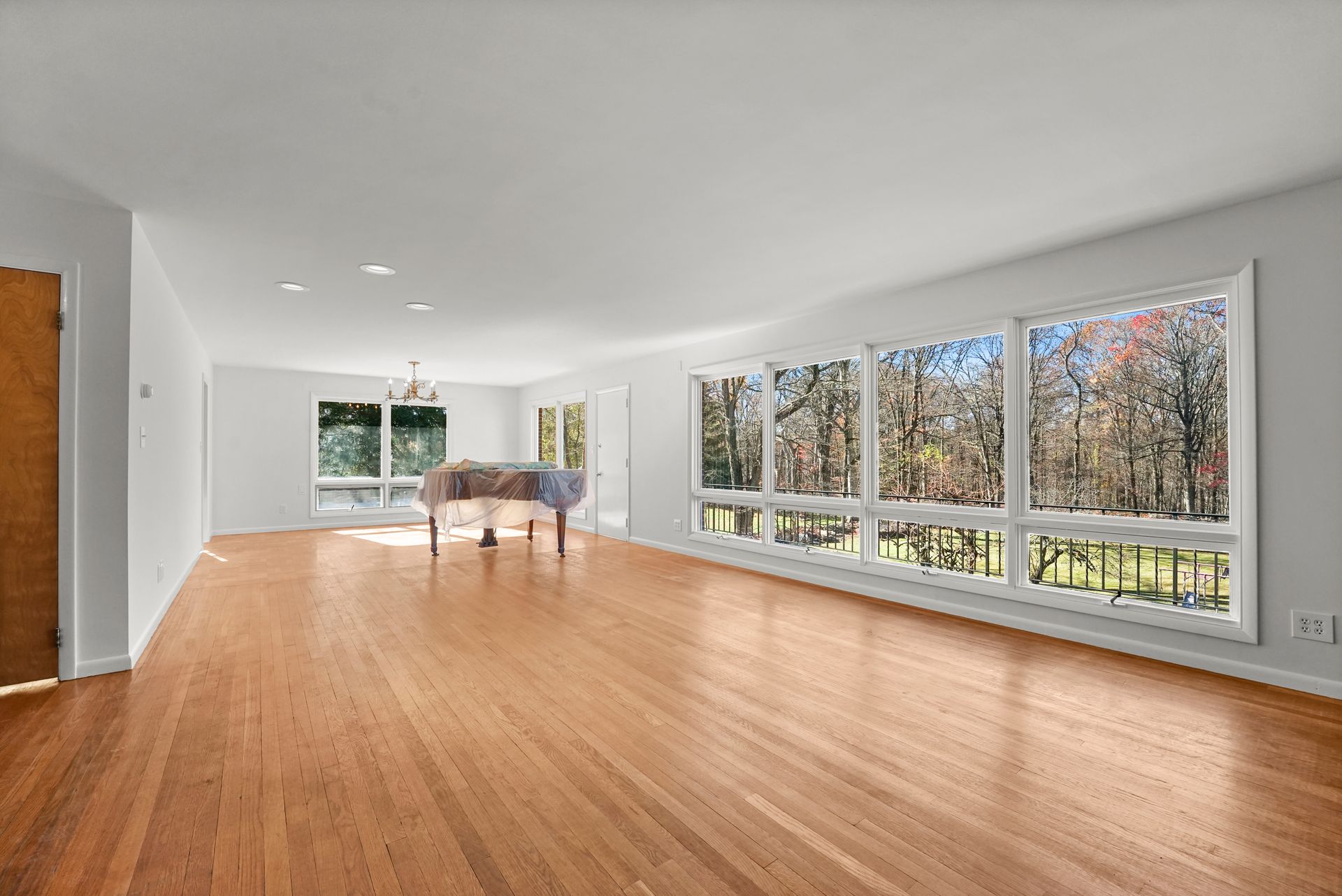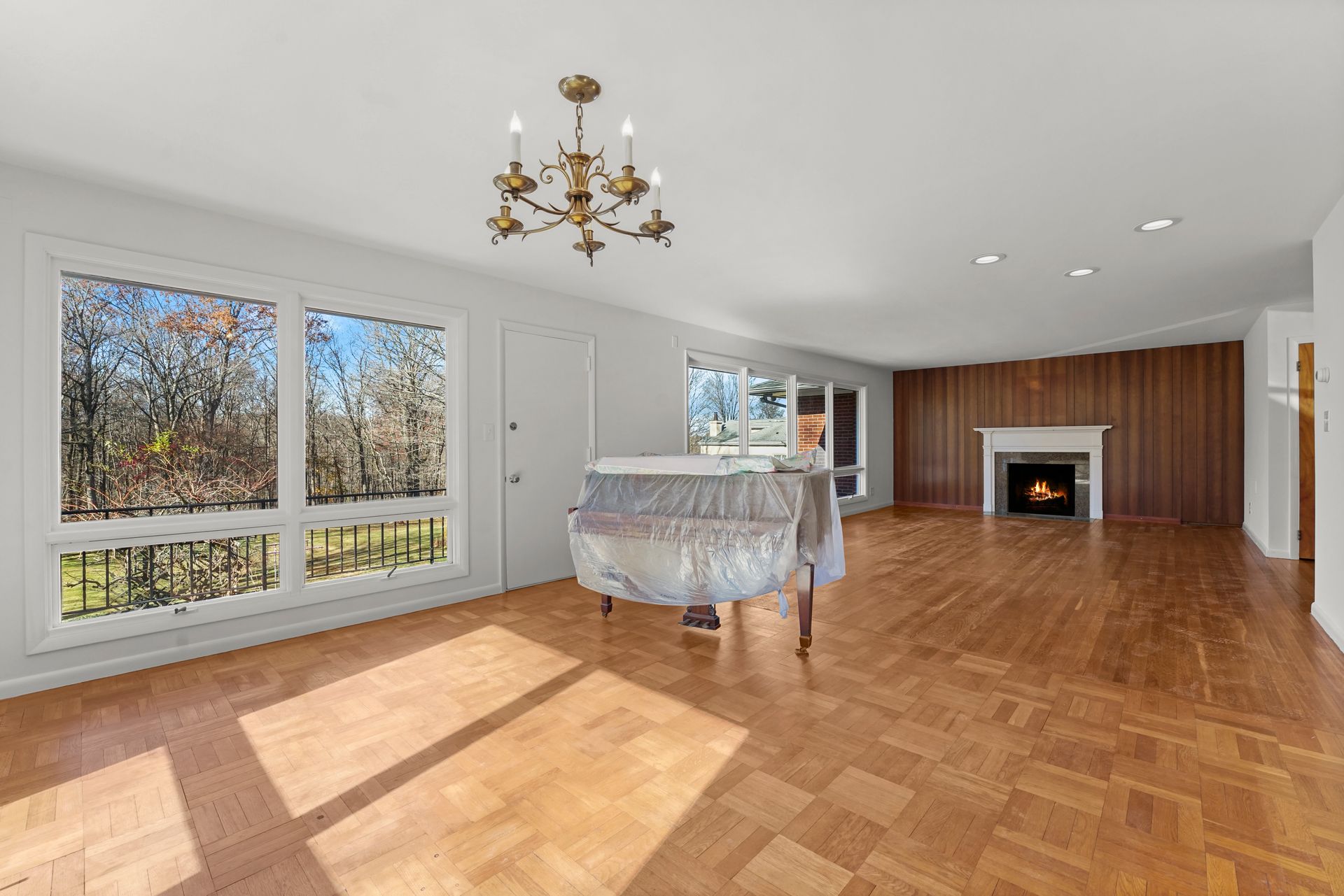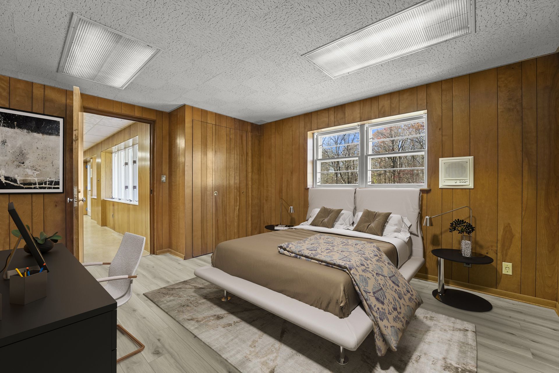 Your breath will be taken away as you enter the foyer and see the spectacular view through the oversized windows in the living room. An open floor plan with lots of windows, enhance this mid-century modern Ranch home that was designed by the original owner in 1962. The spacious living and dining rooms also feature a fireplace, a hidden paneled closet and door to the balcony. The kitchen has a large eating area with a bay window, cherry wood cabinets and a door to the side patio. Down the hall is the primary bedroom boasting two double closets and a full private bath. Two additional good-sized rooms and a hall bath complete this wing. The main level has hardwood floors, a cedar closet and some unique hidden storage areas. On the lower level enjoy a large family room with lots of windows, glass door to the back yard and a wood burning stove. The approximate 900 square feet on this level also includes a fourth bedroom/den, wet bar, full bath, workshop, door to the garage, laundry and storage. Sitting on over two and a half acres, this home has a private outdoor setting with mature trees, gardens, rock walls and out cropping, lawns and is great for entertaining and recreation.
