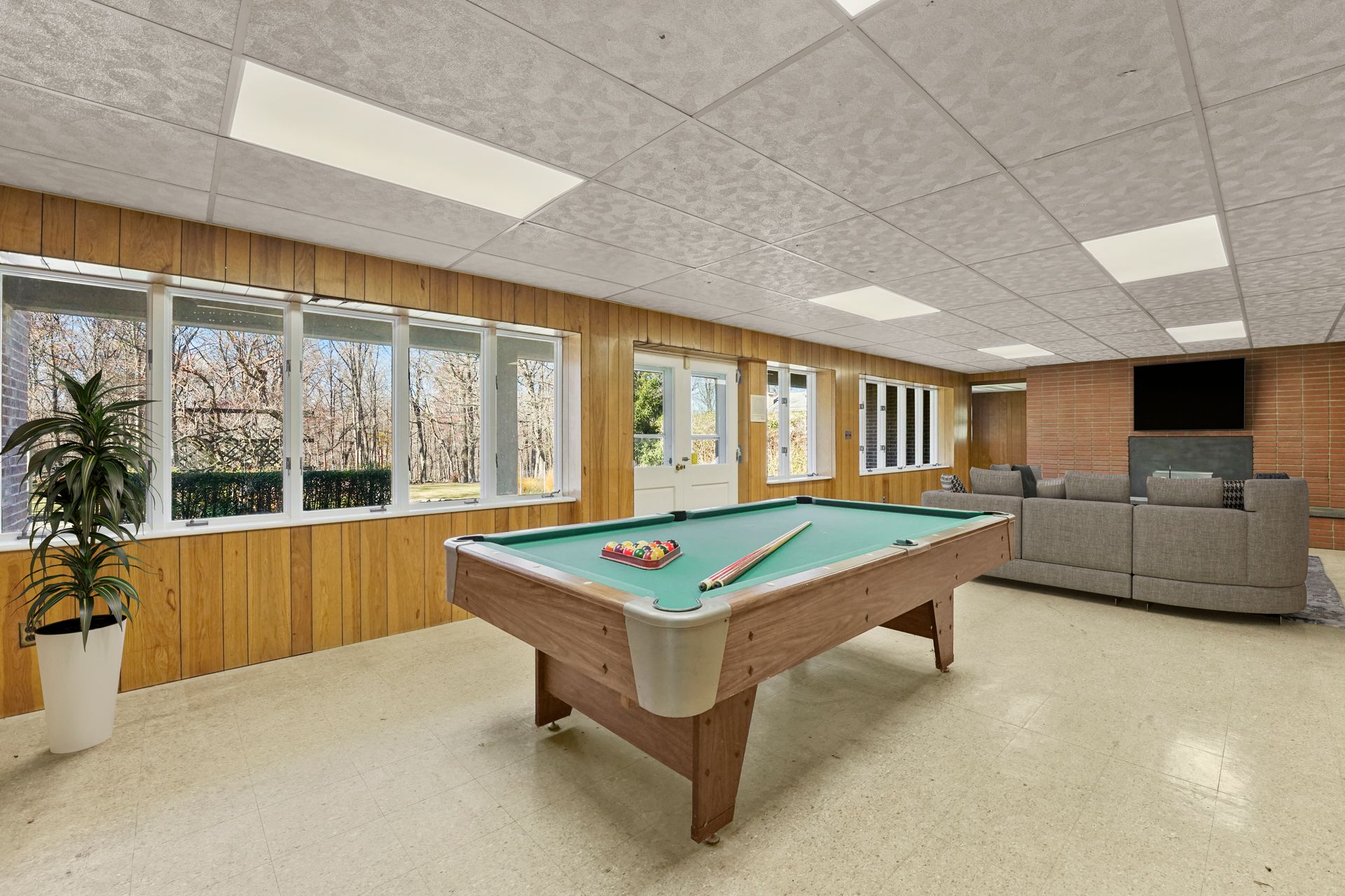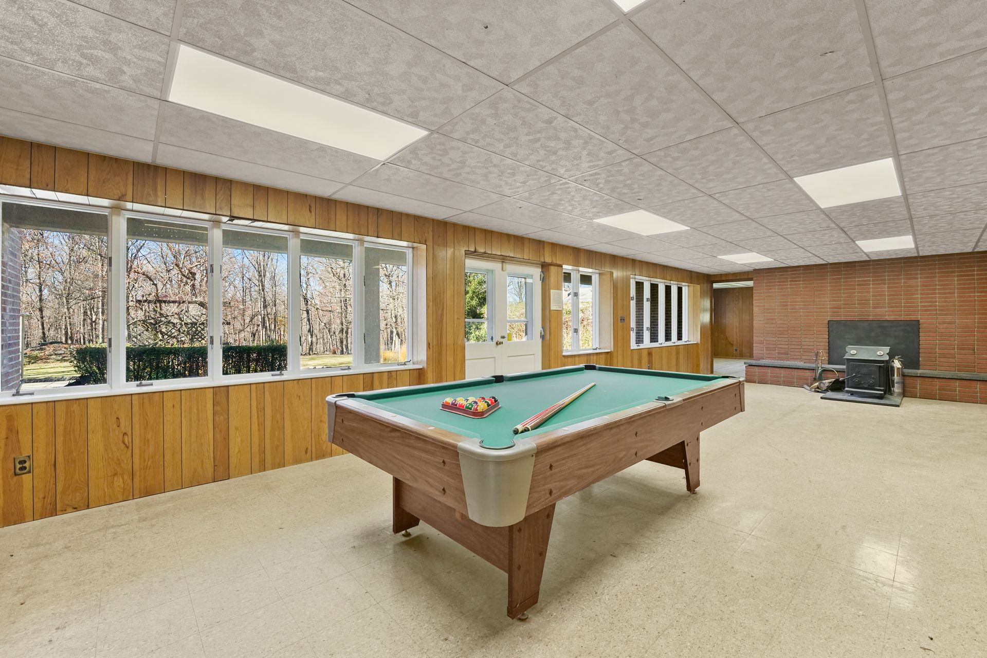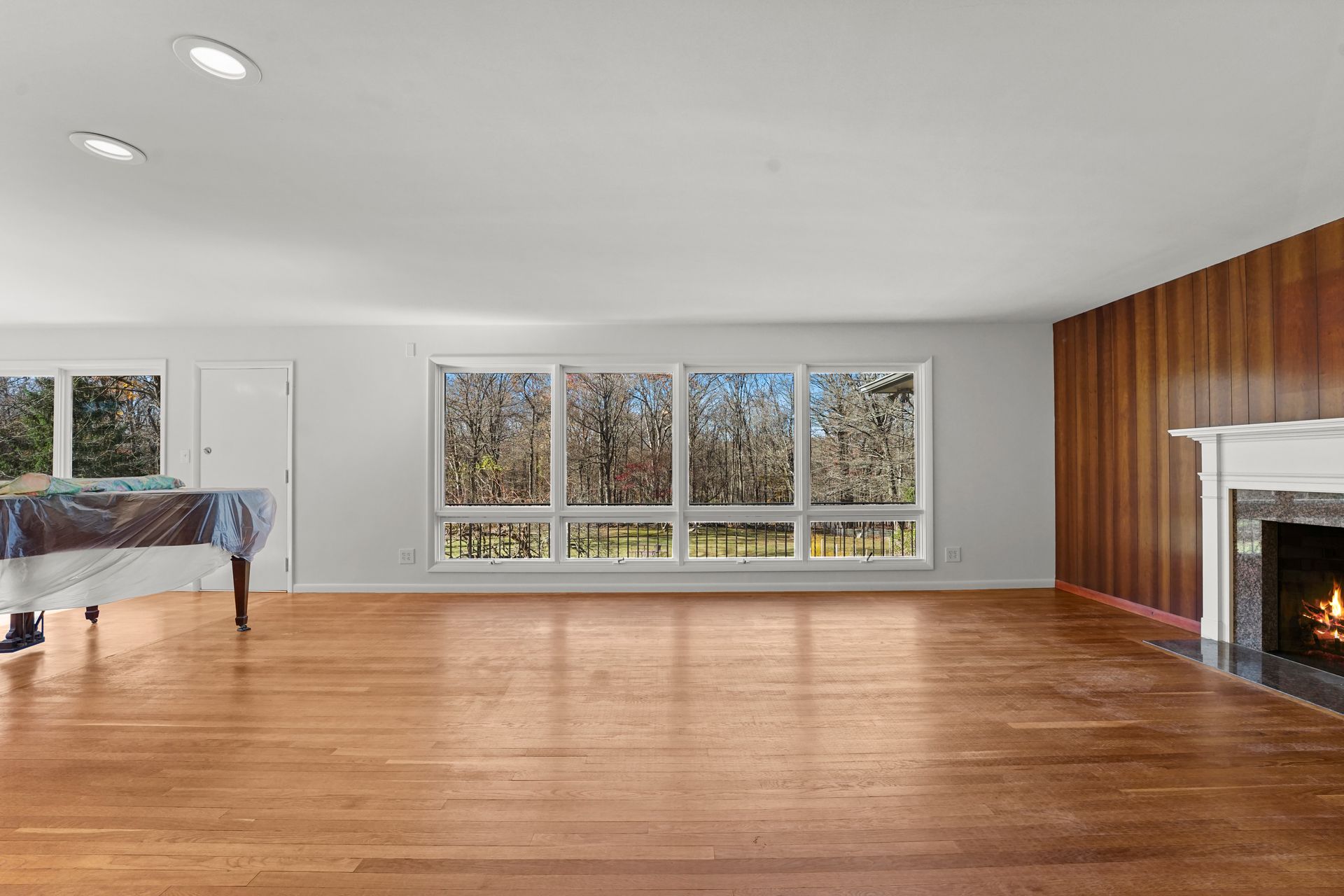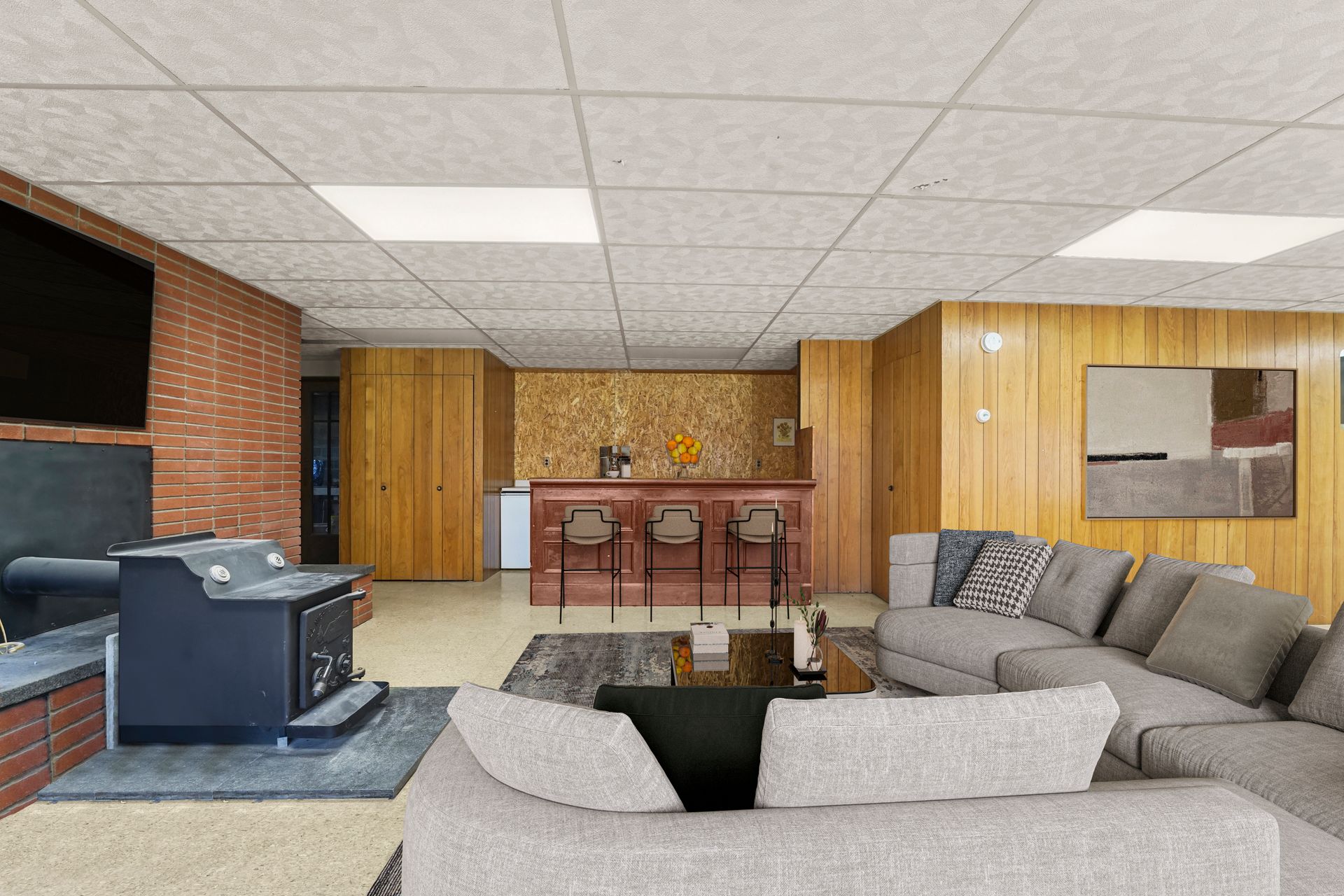 Your breath will be taken away as you enter the foyer and see the spectacular view through the oversized windows in the living room. An open floor plan with lots of windows, enhance this mid-century modern Ranch home that was designed by the original owner in 1962. The spacious living and dining rooms also feature a fireplace, a hidden paneled closet and door to the balcony. The kitchen has a large eating area with a bay window, cherry wood cabinets and a door to the side patio. Down the hall is the primary bedroom boasting two double closets and a full private bath. Two additional good-sized rooms and a hall bath complete this wing. The main level has hardwood floors, a cedar closet and some unique hidden storage areas. On the lower level enjoy a large family room with lots of windows, glass door to the back yard and a wood burning stove. The approximate 900 square feet on this level also includes a fourth bedroom/den, wet bar, full bath, workshop, door to the garage, laundry and storage. Sitting on over two and a half acres, this home has a private outdoor setting with mature trees, gardens, rock walls and out cropping, lawns and is great for entertaining and recreation.