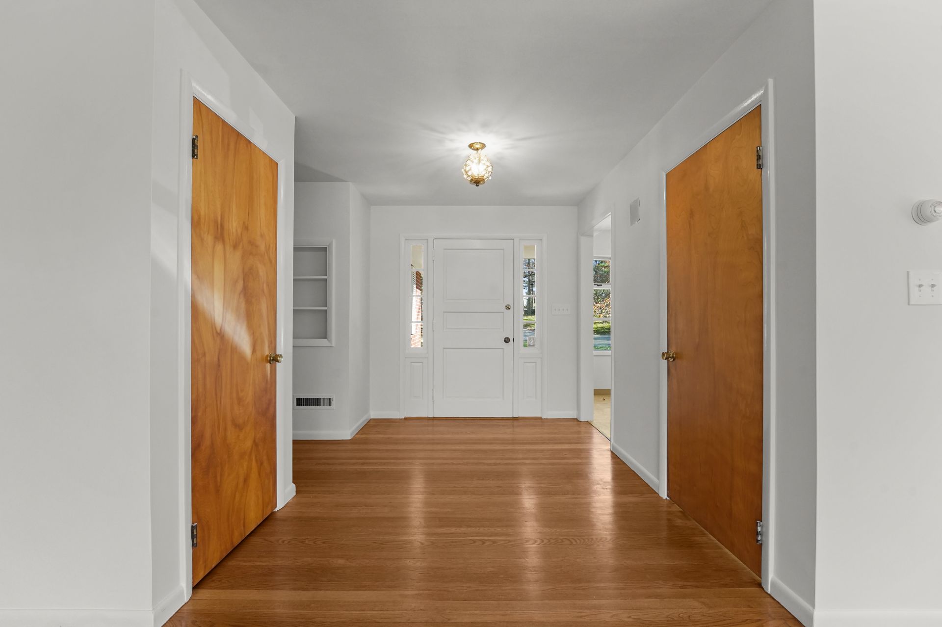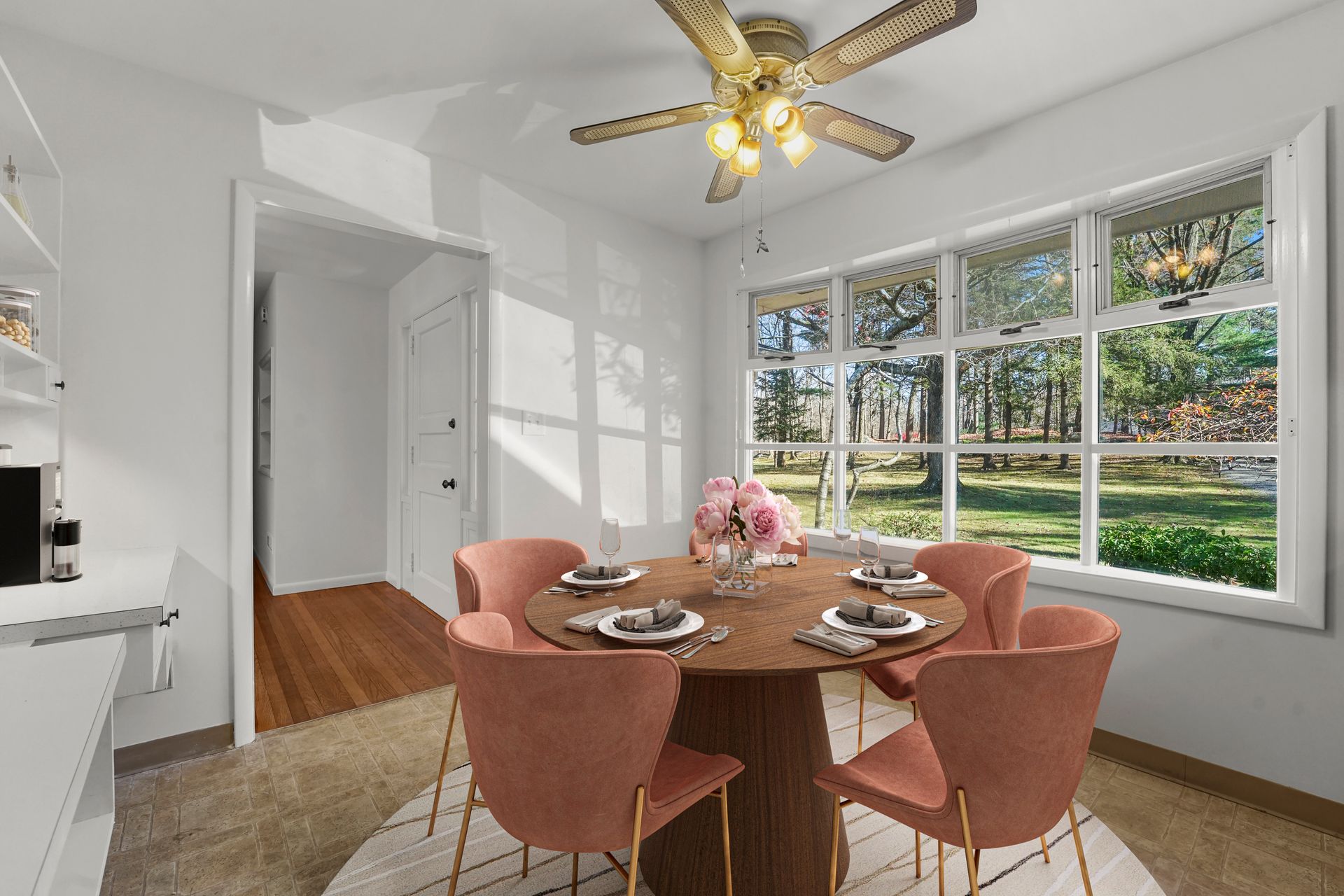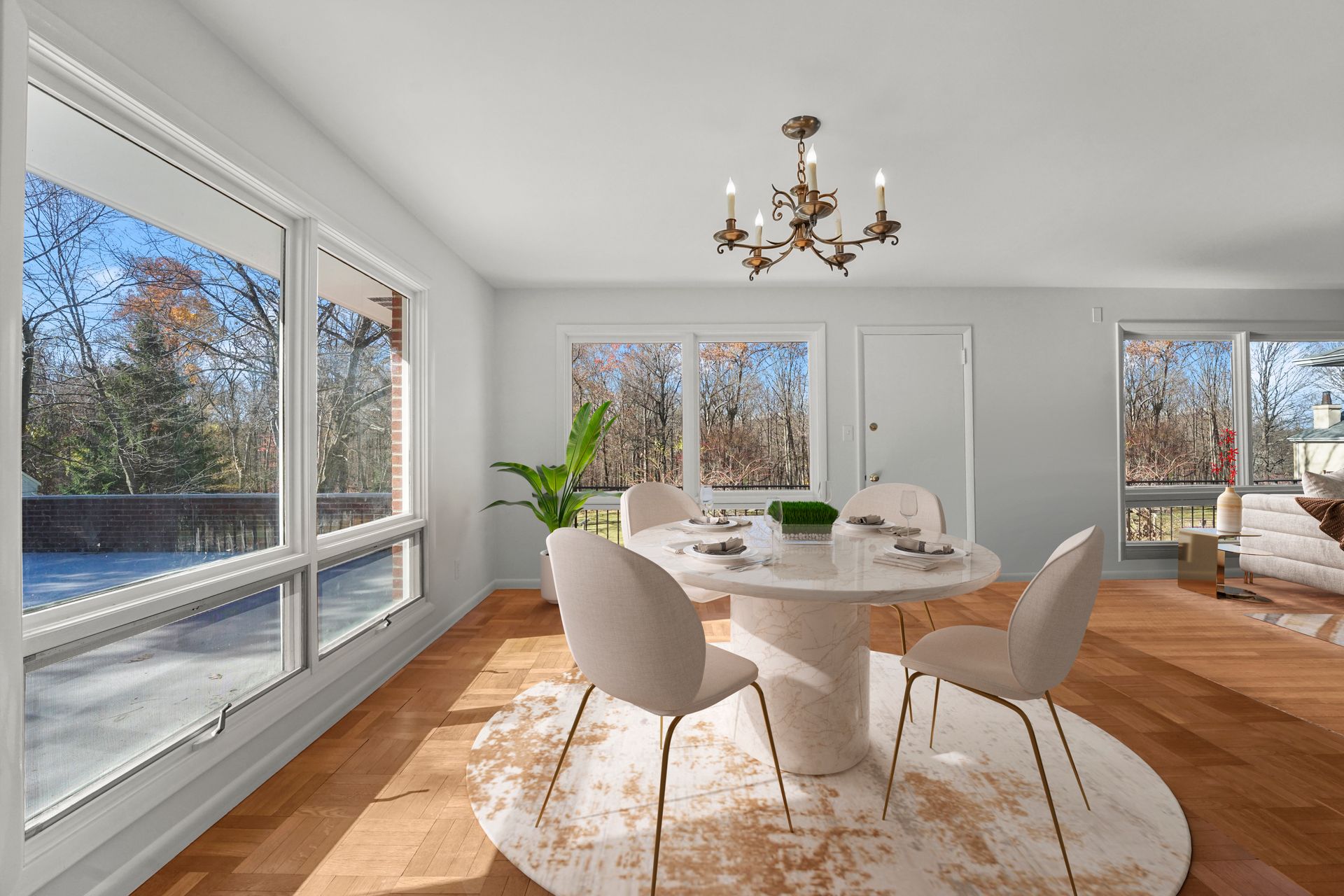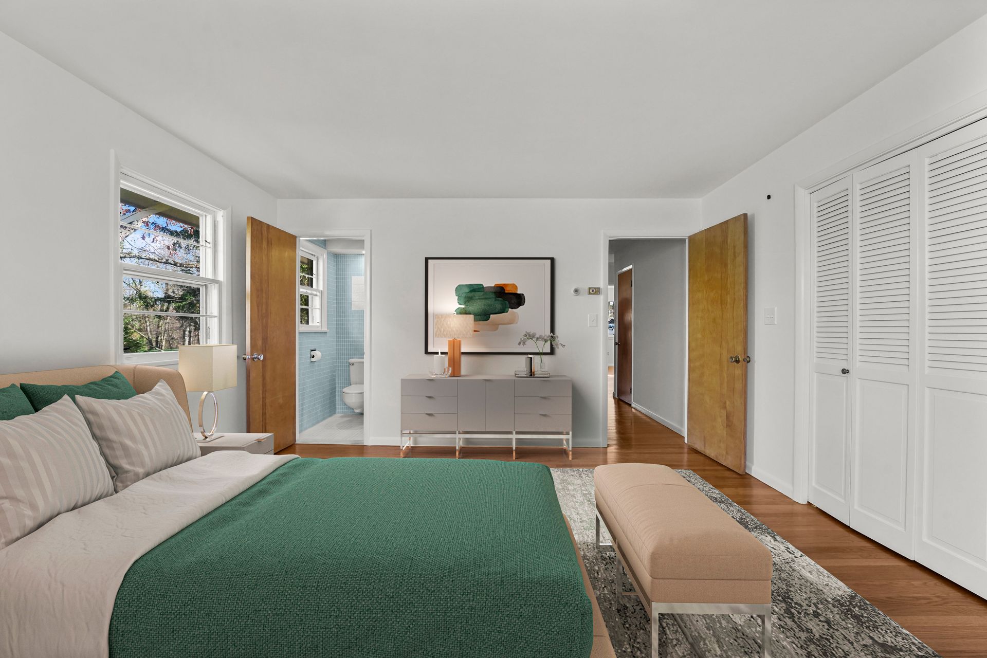 Your breath will be taken away as you enter the foyer and see the spectacular view through the oversized windows in the living room. An open floor plan with lots of windows, enhance this mid-century modern Ranch home that was designed by the original owner in 1962. The spacious living and dining rooms also feature a fireplace, a hidden paneled closet and door to the balcony. The kitchen has a large eating area with a bay window, cherry wood cabinets and a door to the side patio. Down the hall is the primary bedroom boasting two double closets and a full private bath. Two additional good-sized rooms and a hall bath complete this wing. The main level has hardwood floors, a cedar closet and some unique hidden storage areas. On the lower level enjoy a large family room with lots of windows, glass door to the back yard and a wood burning stove. The approximate 900 square feet on this level also includes a fourth bedroom/den, wet bar, full bath, workshop, door to the garage, laundry and storage. Sitting on over two and a half acres, this home has a private outdoor setting with mature trees, gardens, rock walls and out cropping, lawns and is great for entertaining and recreation.