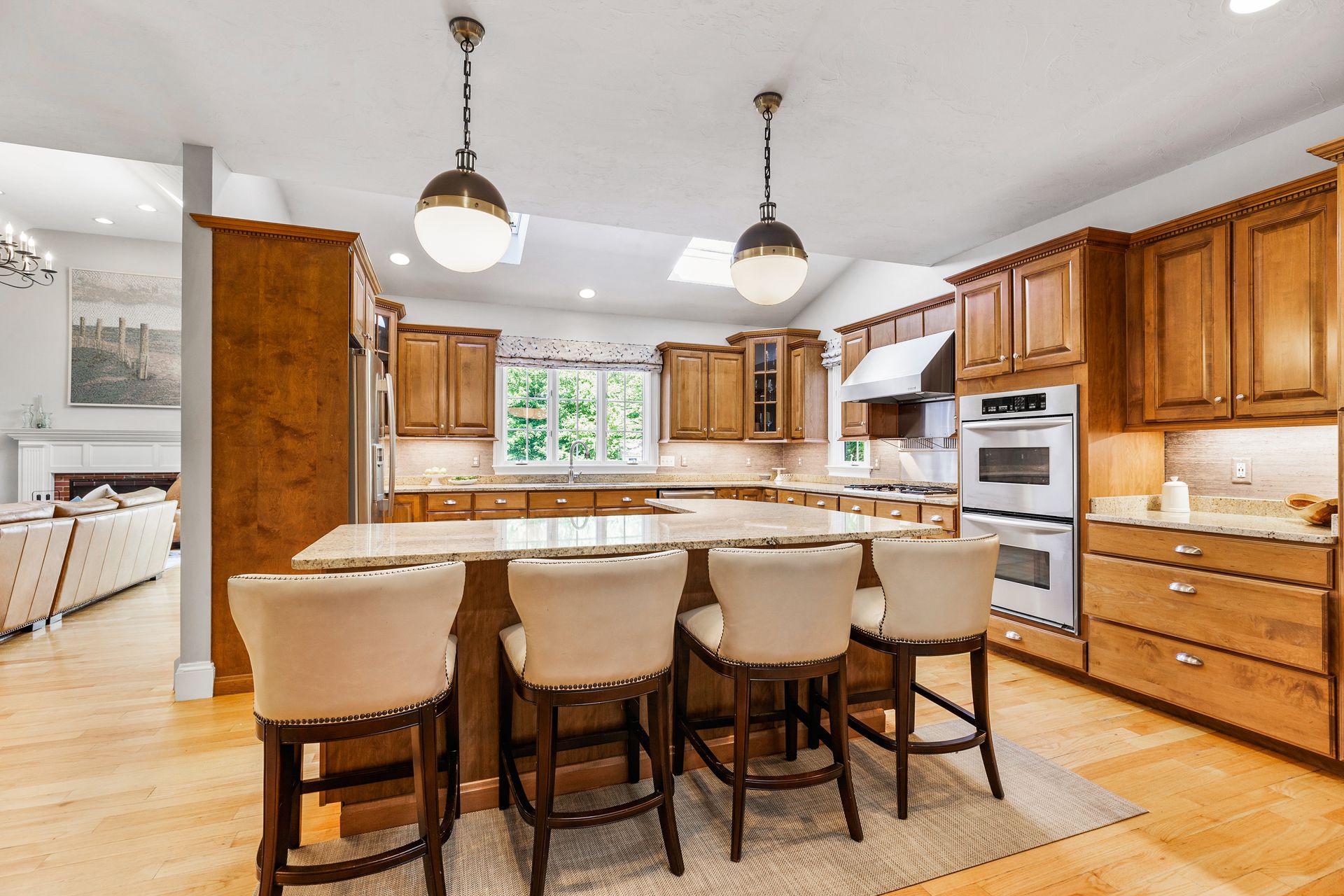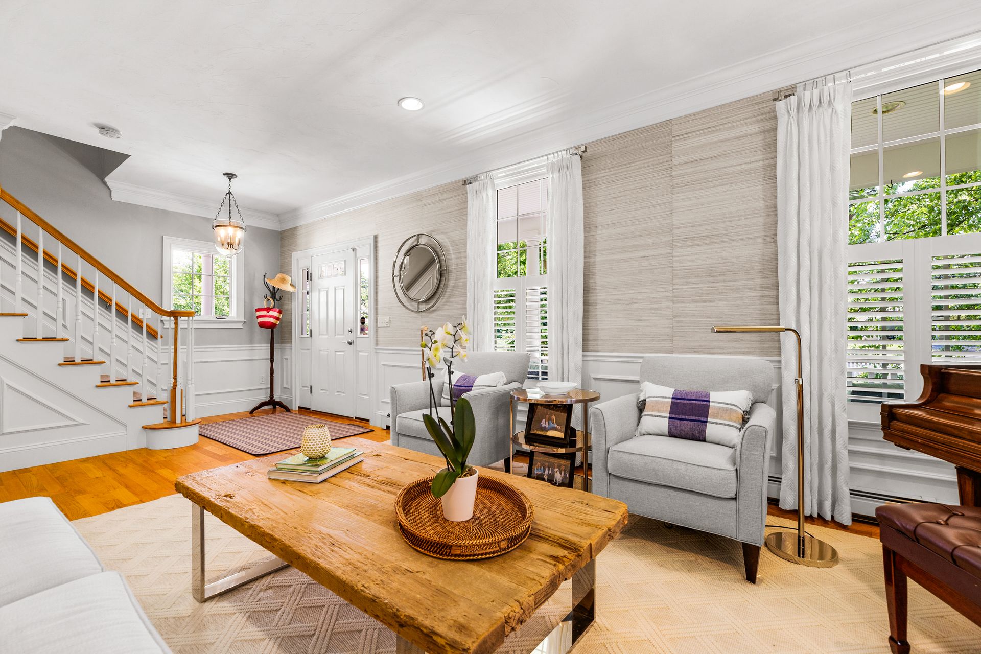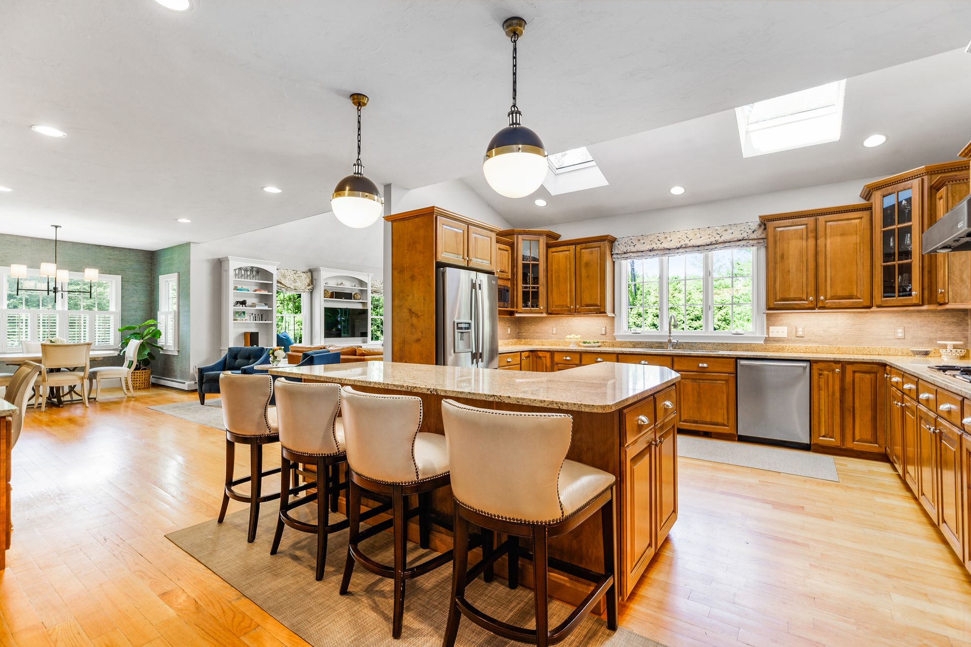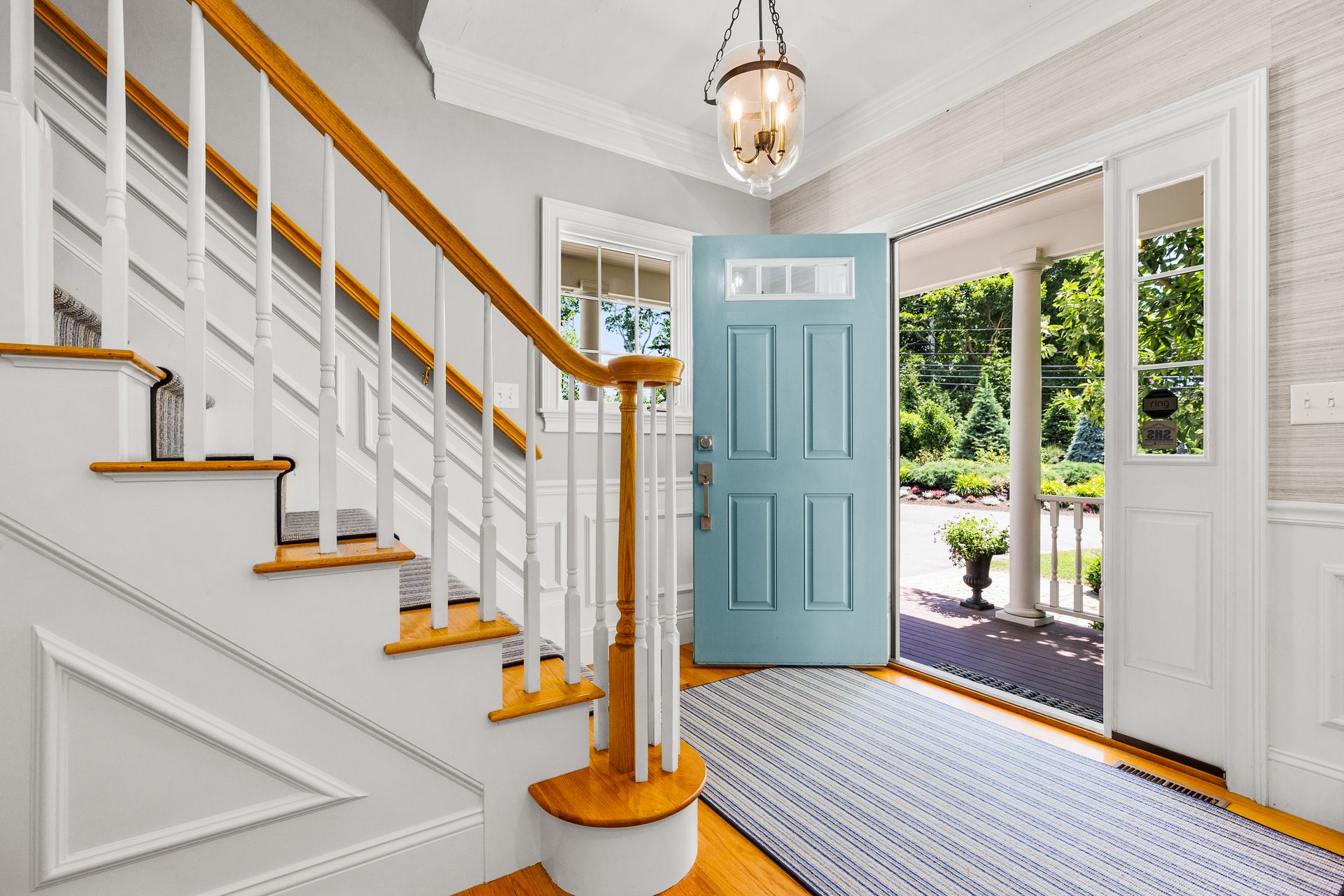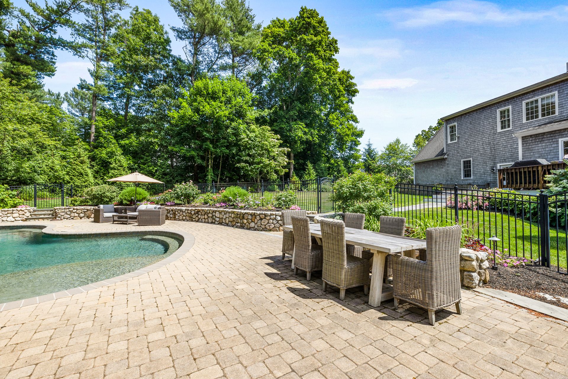 This elegant home with a wrap-around porch has been tastefully updated with the comforts of today's living. Exquisite details throughout this open floor plan include high ceilings, wainscoting, oversized windows, custom cabinetry and three fireplaces. Perfect layout for entertaining with a gourmet kitchen, formal dining and living rooms. The den with French doors opens to a deck overlooking a gorgeous in-ground pool surrounded by a manicured yard and beautiful stonework. The second level boasts two new bathrooms with designer finishes and WaterWorks fixtures, a home office and five gracious bedrooms including a private main suite with fireplace and walk-in closet. Fabulous finished, walk-out lower level has a well-crafted wet bar, full bathroom, media and exercise room with barn doors. An outdoor shower, stone fire pit, three-car garage and plentiful garden area enhance this property. Sidewalk leads to the school campus and nearby shops and restaurants. In town, must-see opportunity!