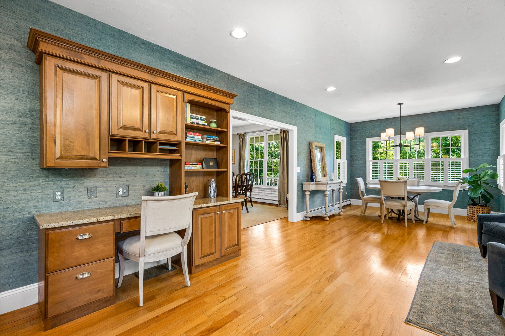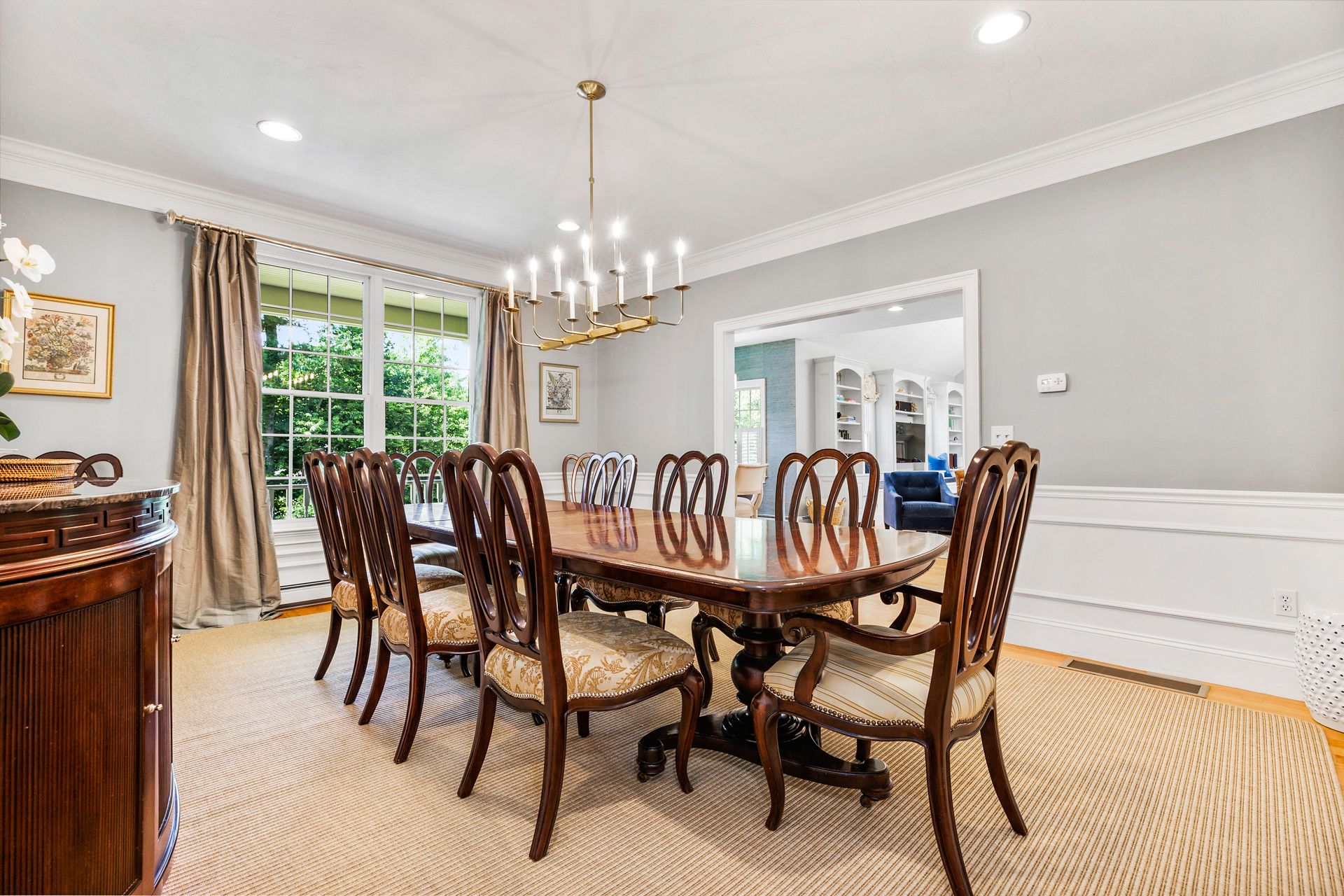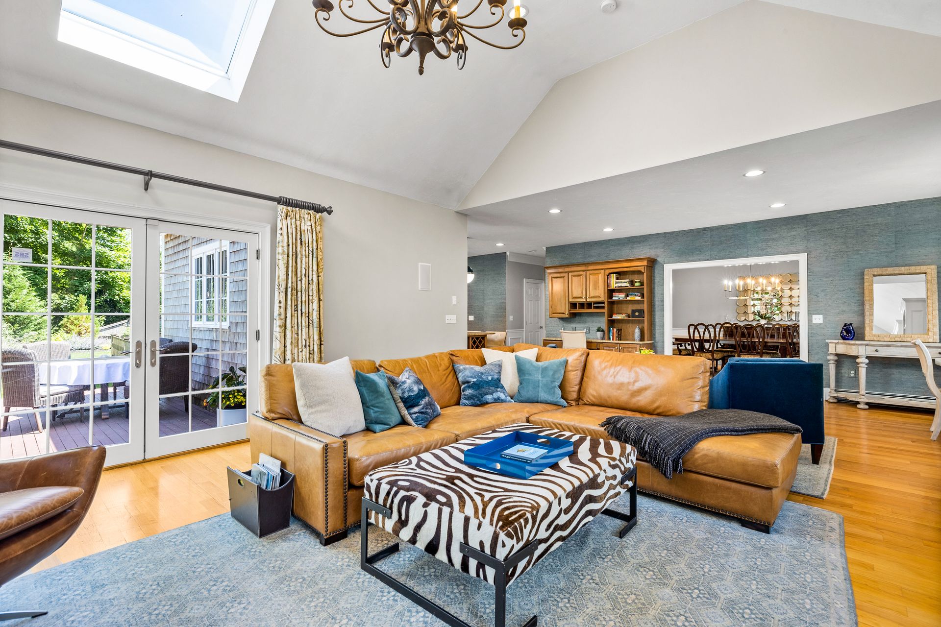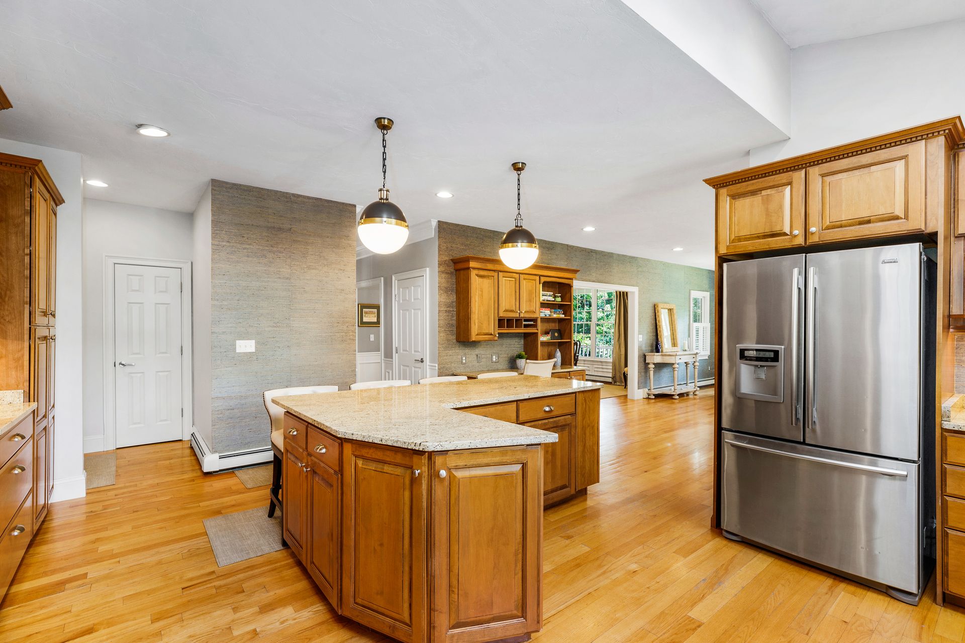 This elegant home with a wrap-around porch has been tastefully updated with the comforts of today's living. Exquisite details throughout this open floor plan include high ceilings, wainscoting, oversized windows, custom cabinetry and three fireplaces. Perfect layout for entertaining with a gourmet kitchen, formal dining and living rooms. The den with French doors opens to a deck overlooking a gorgeous in-ground pool surrounded by a manicured yard and beautiful stonework. The second level boasts two new bathrooms with designer finishes and WaterWorks fixtures, a home office and five gracious bedrooms including a private main suite with fireplace and walk-in closet. Fabulous finished, walk-out lower level has a well-crafted wet bar, full bathroom, media and exercise room with barn doors. An outdoor shower, stone fire pit, three-car garage and plentiful garden area enhance this property. Sidewalk leads to the school campus and nearby shops and restaurants. In town, must-see opportunity!