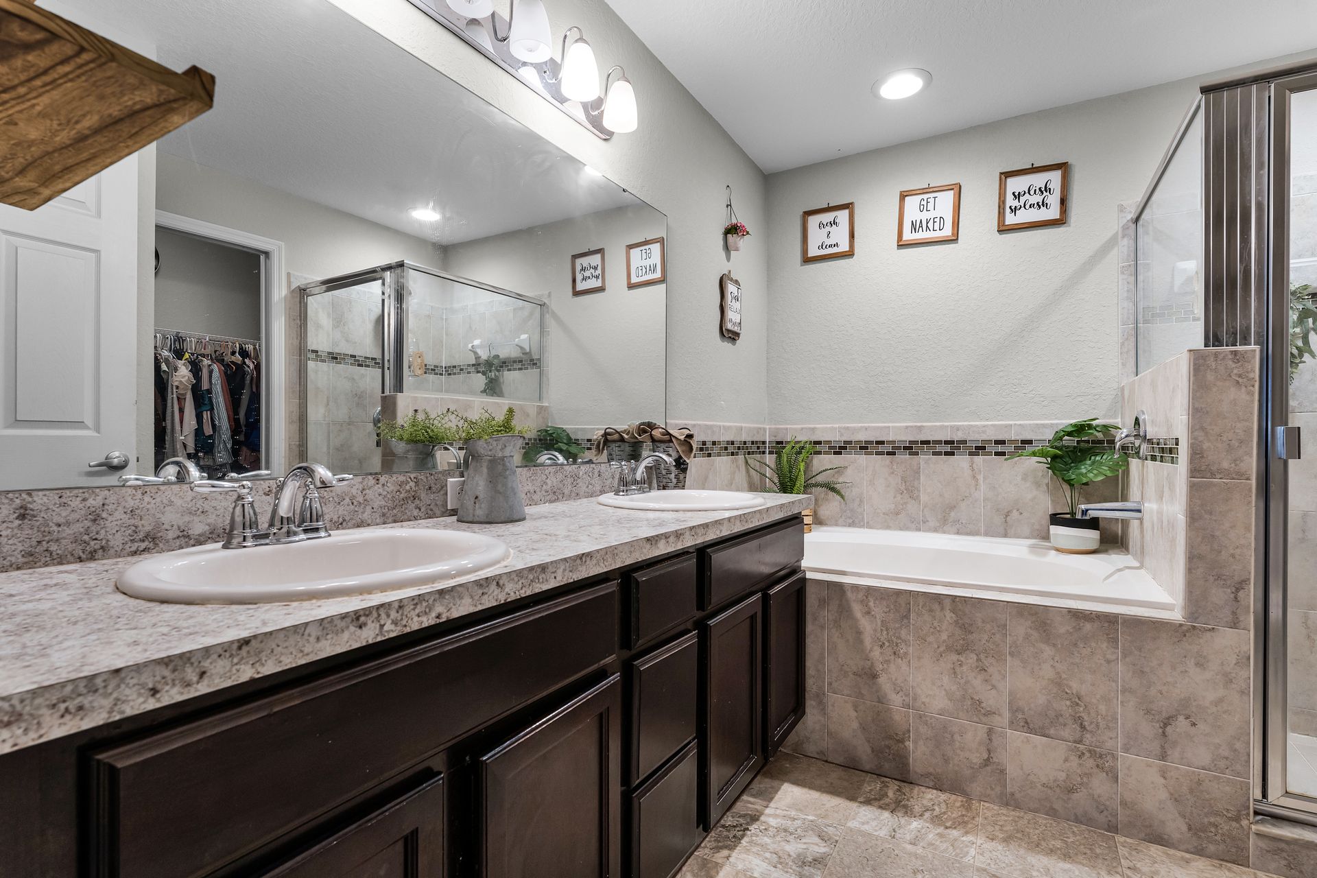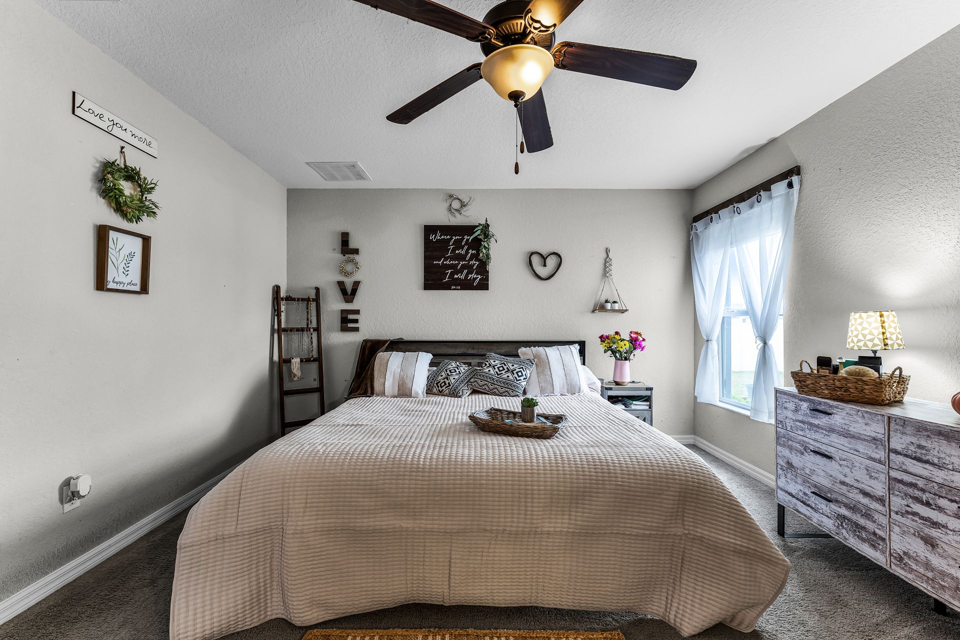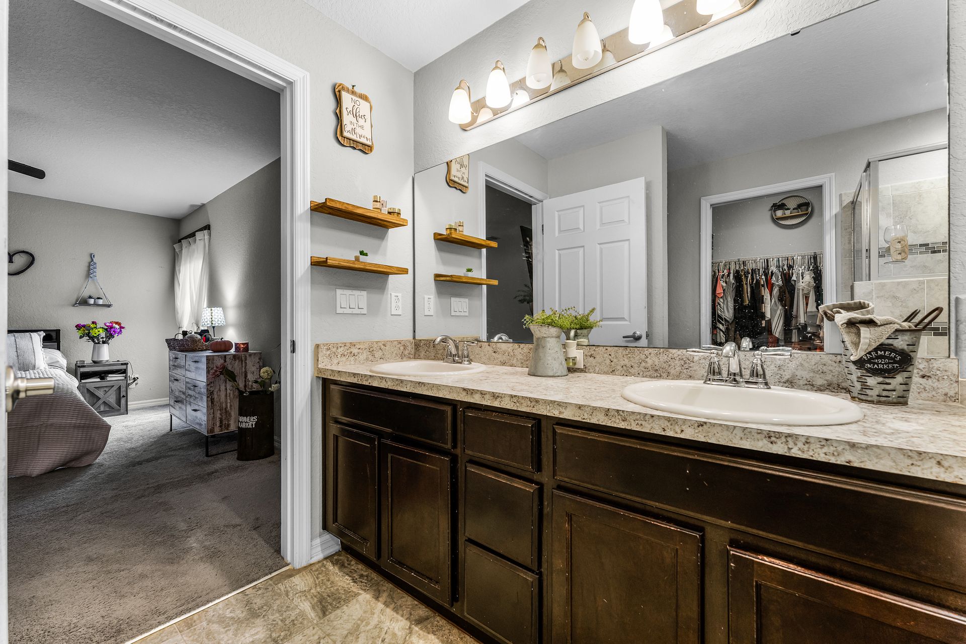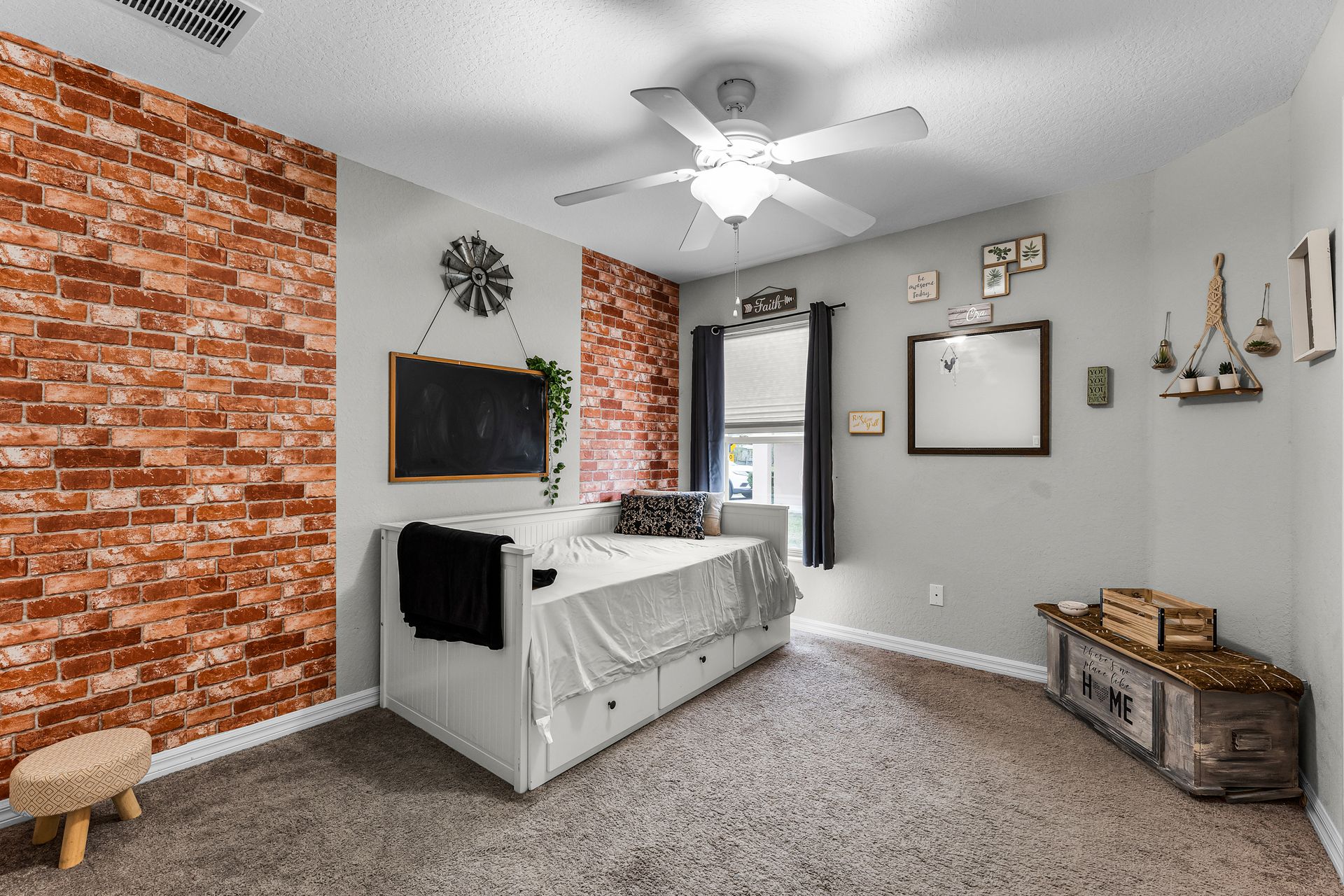 A custom barn door leads you into your spacious primary suite, which includes a luxurious ensuite with double sinks and a tub/shower combo. Two additional bedrooms provide plenty of space for guests, with privacy just down the hall.