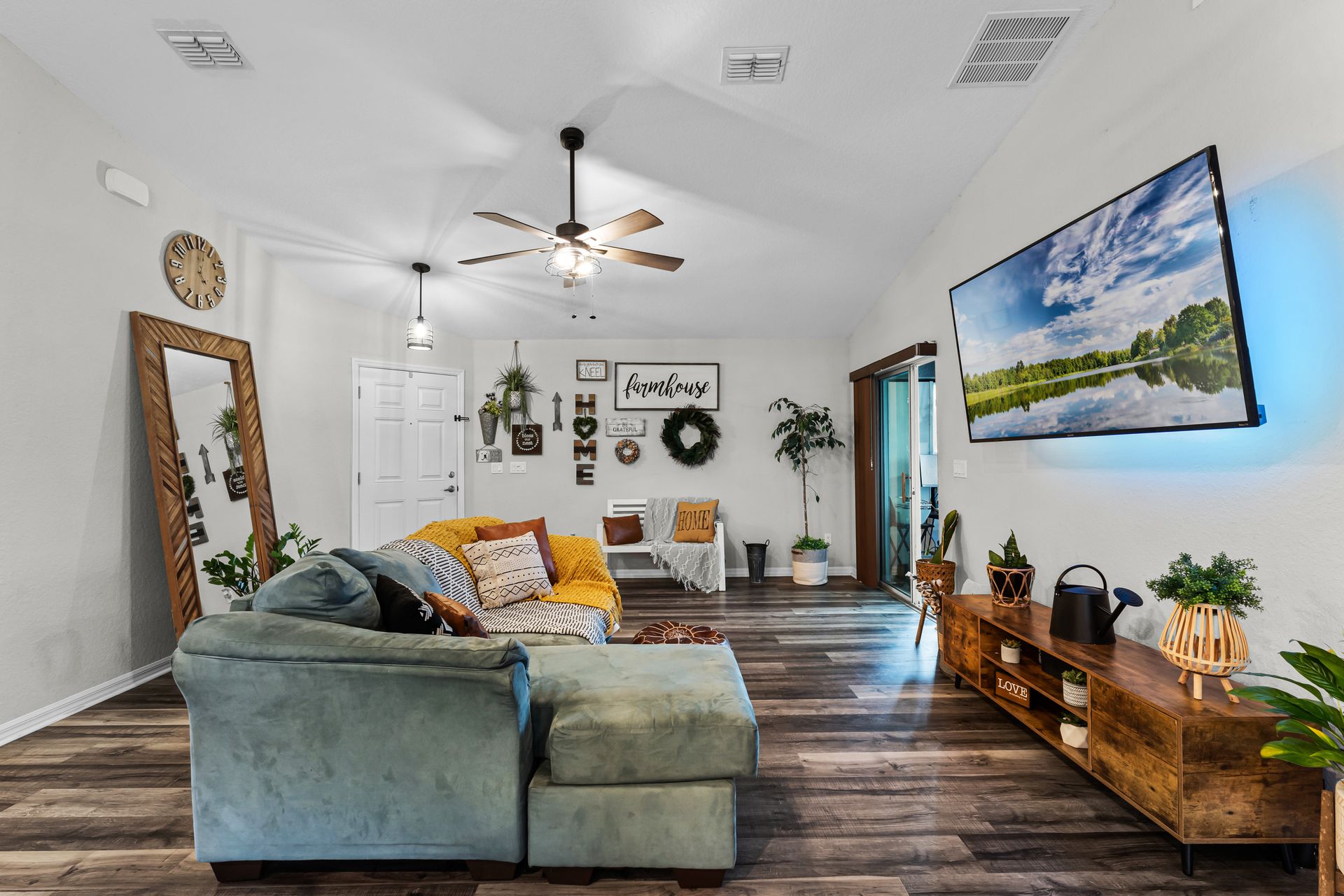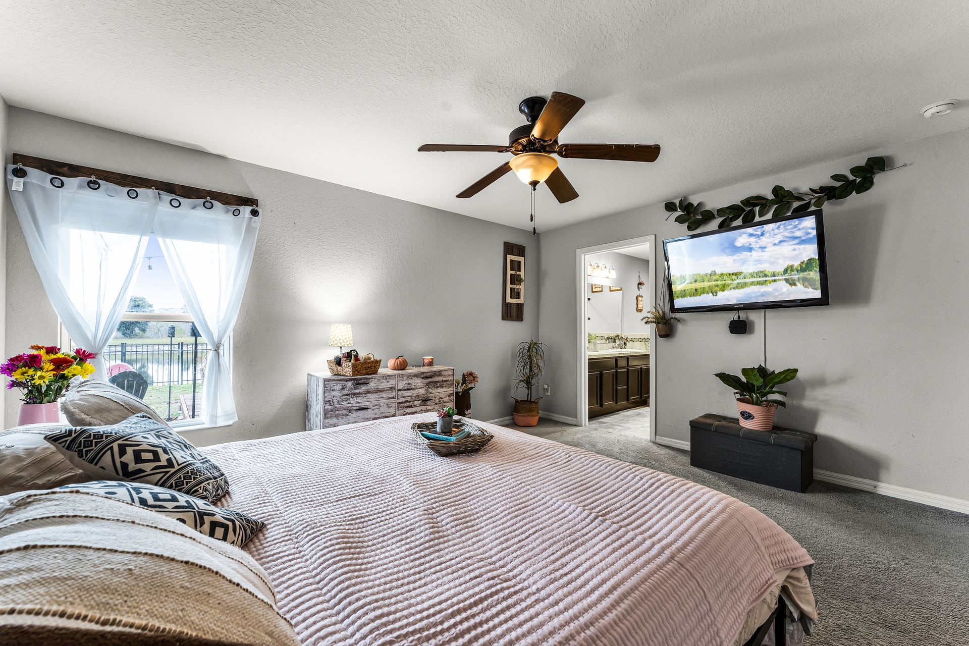 Outside, you'll enjoy serene views of a pond in the back and scenic pastures out front. The large, fully fenced yard offers ample space for pets, children, or just enjoying the outdoors in peace.