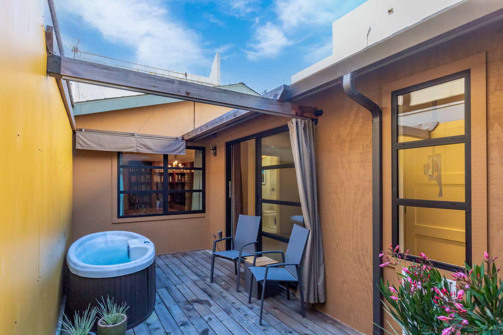 Designed by local renowned architect, George Ash, the approximately 1,865 square foot residence at 541 Foam Street is truly a unique gem. Located in the heart of historic Cannery Row, this two bedroom, two and one-half bath home is within a short distance of the Monterey Bay Aquarium and many other world-famous attractions, restaurants and hotels. Entertain your guests in the radiant heated living, kitchen and dining areas as well as the cozy private exterior spaces 541 Foam Street has to offer. Later, ride the elevator to the second floor to view the lights around Monterey Bay. This property was originally designed by Ash for his architectural firm along with a separate rental cottage. Two water meters and two electrical meters are available. Ash created an exciting urban loft lifestyle that includes intimate pockets of outdoor space in the middle of Monterey’s urban environment. This is a property composed with care and creativity, in a location ideal for living and experiencing the wonderful Monterey Bay Area.