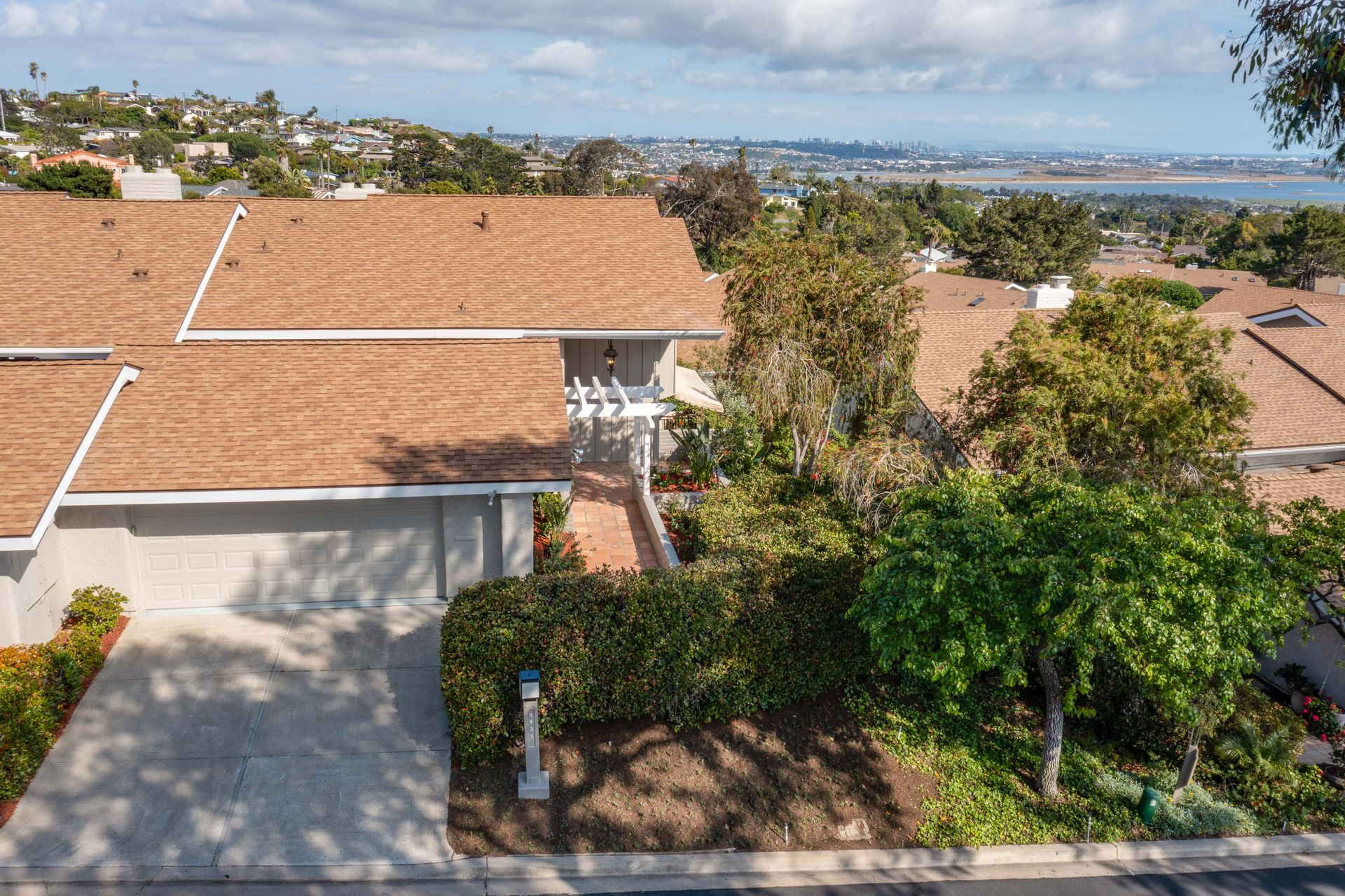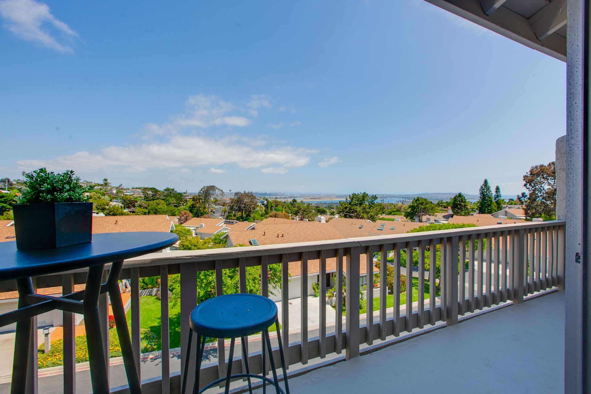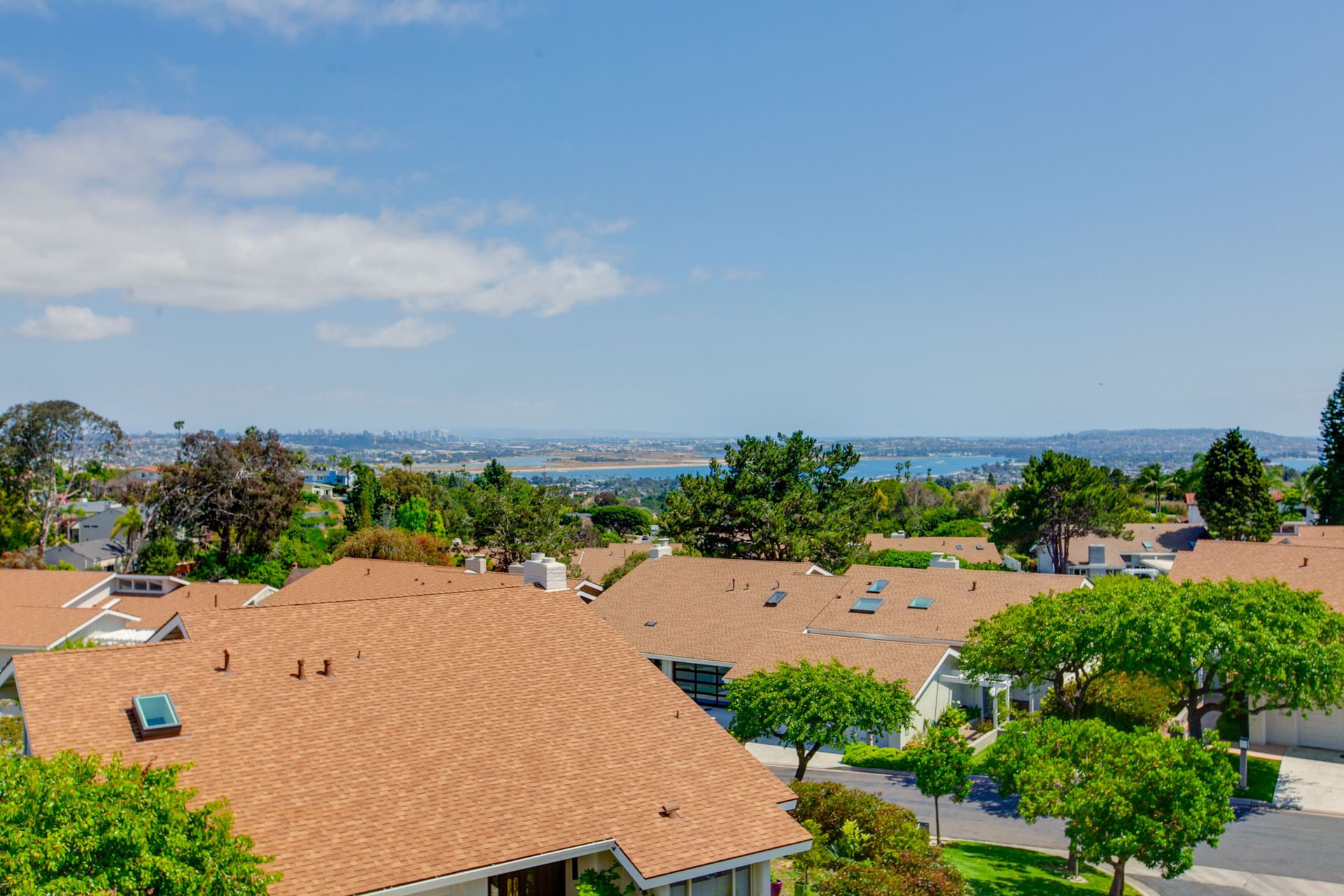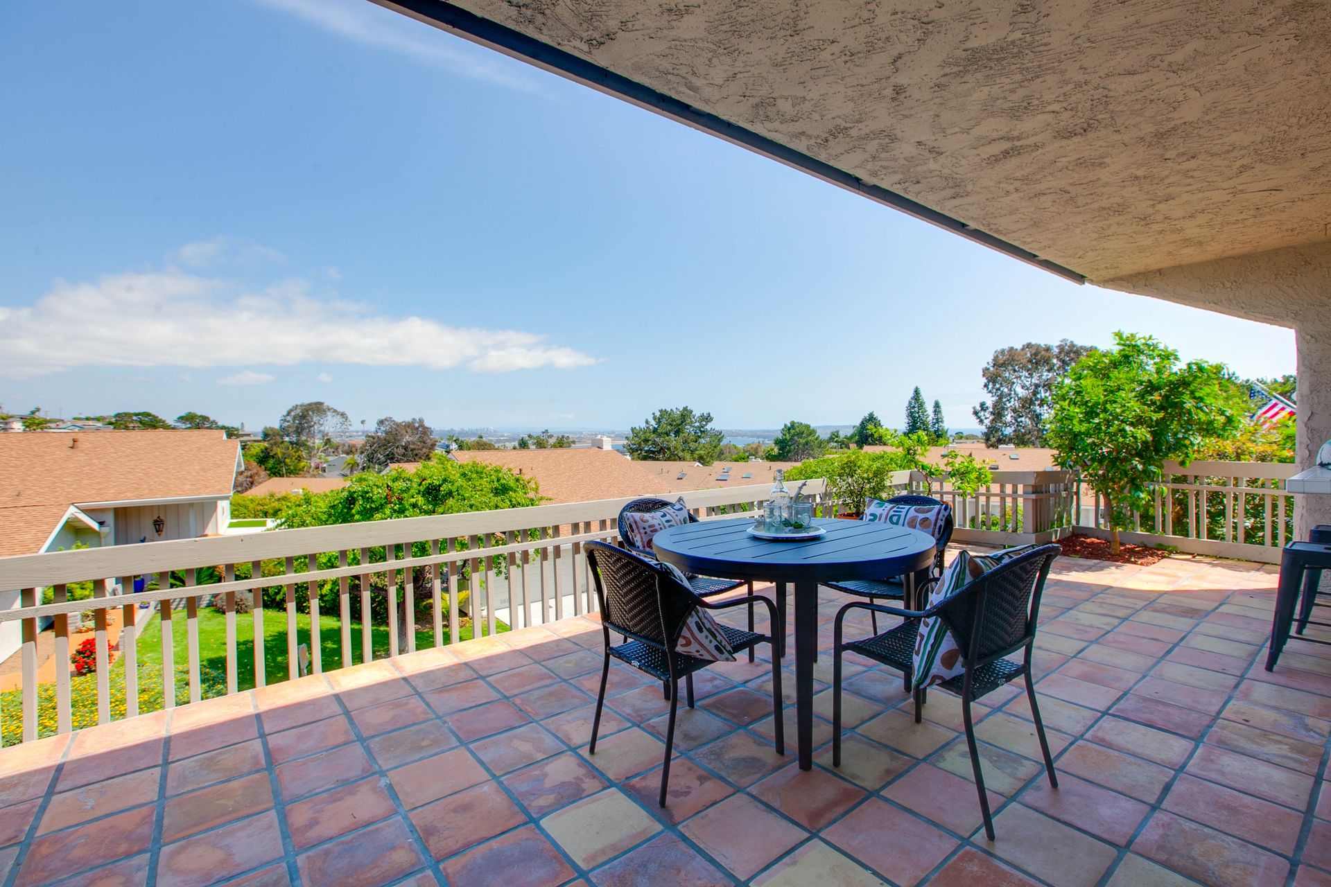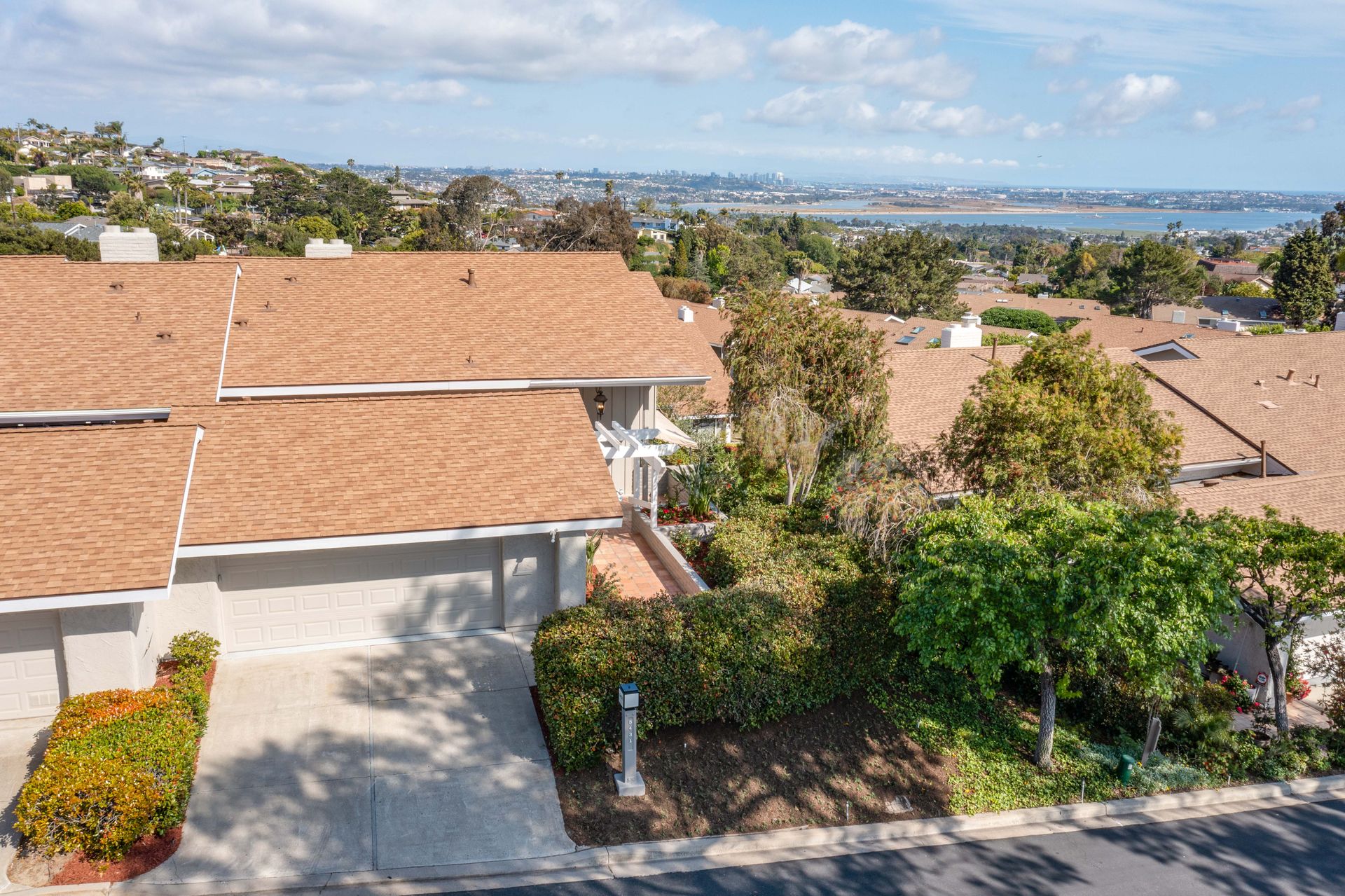 Enjoy expansive bay, ocean and city views on a prime lot located on a private cul-de-sac! This home has been meticulously maintained with a newer roof, remodeled kitchen and fresh exterior and interior paint. All three bedrooms also have scenic views. Enjoy the grand living/dining room with a fireplace which creates an ideal ambiance for gatherings. Savor your morning coffee on a private deck which is surrounded by flowers and mature fruit trees. The spacious primary suite boasts vaulted ceilings with floor to ceiling windows and its own private balcony to enjoy the ocean views and the Sea World fireworks! This is a home to love.