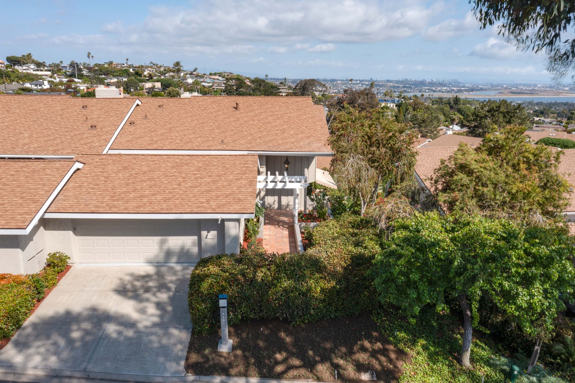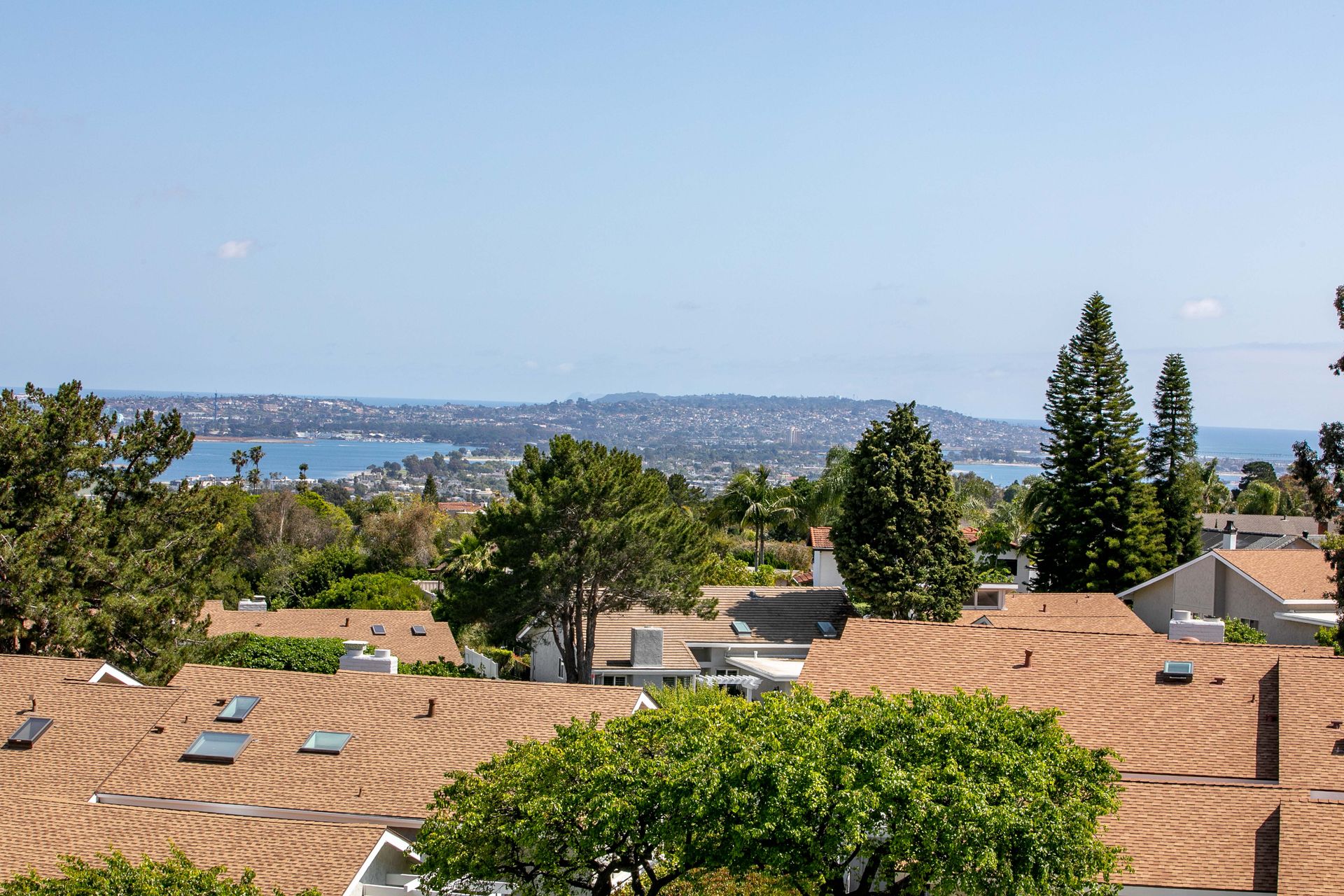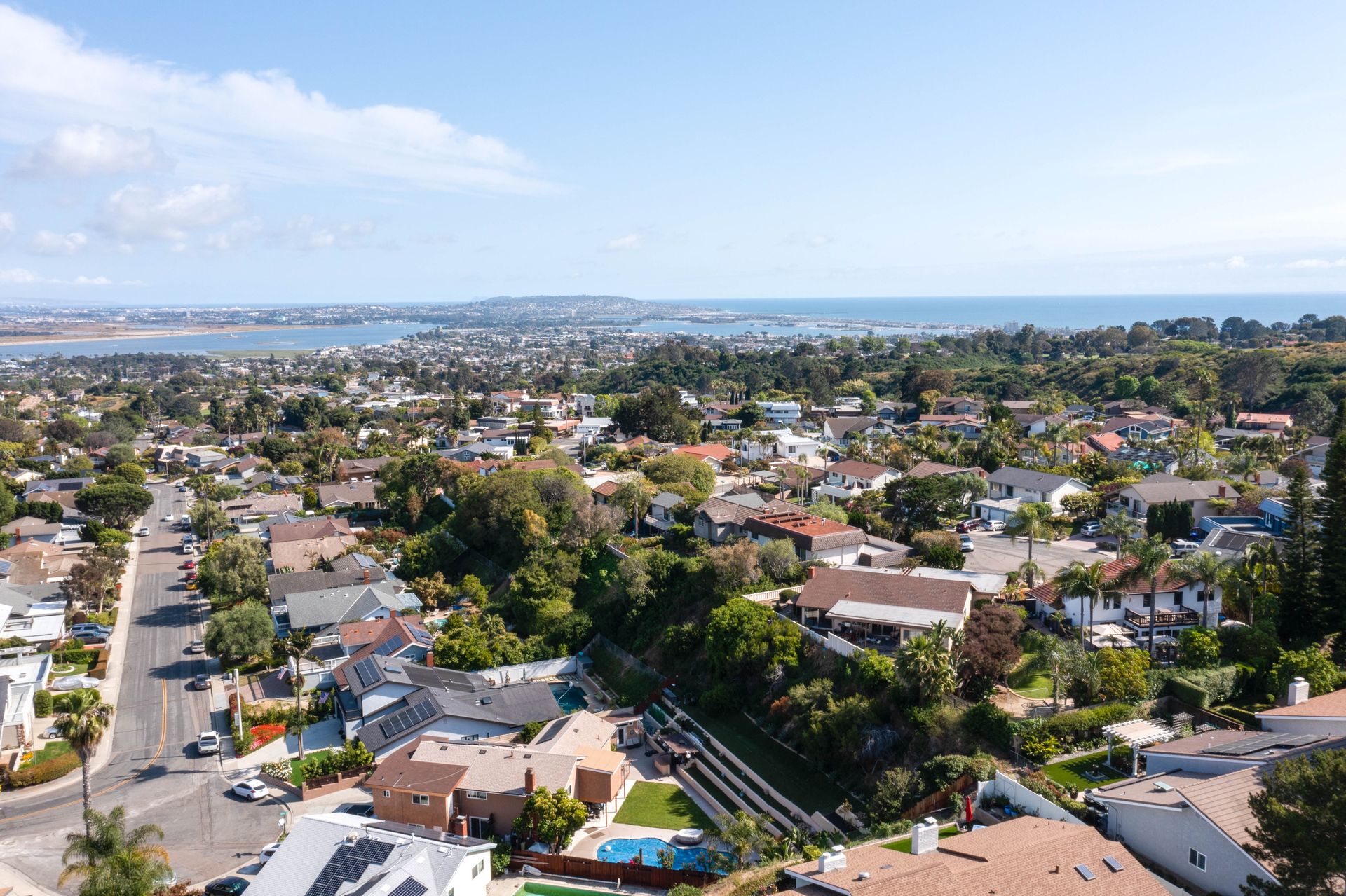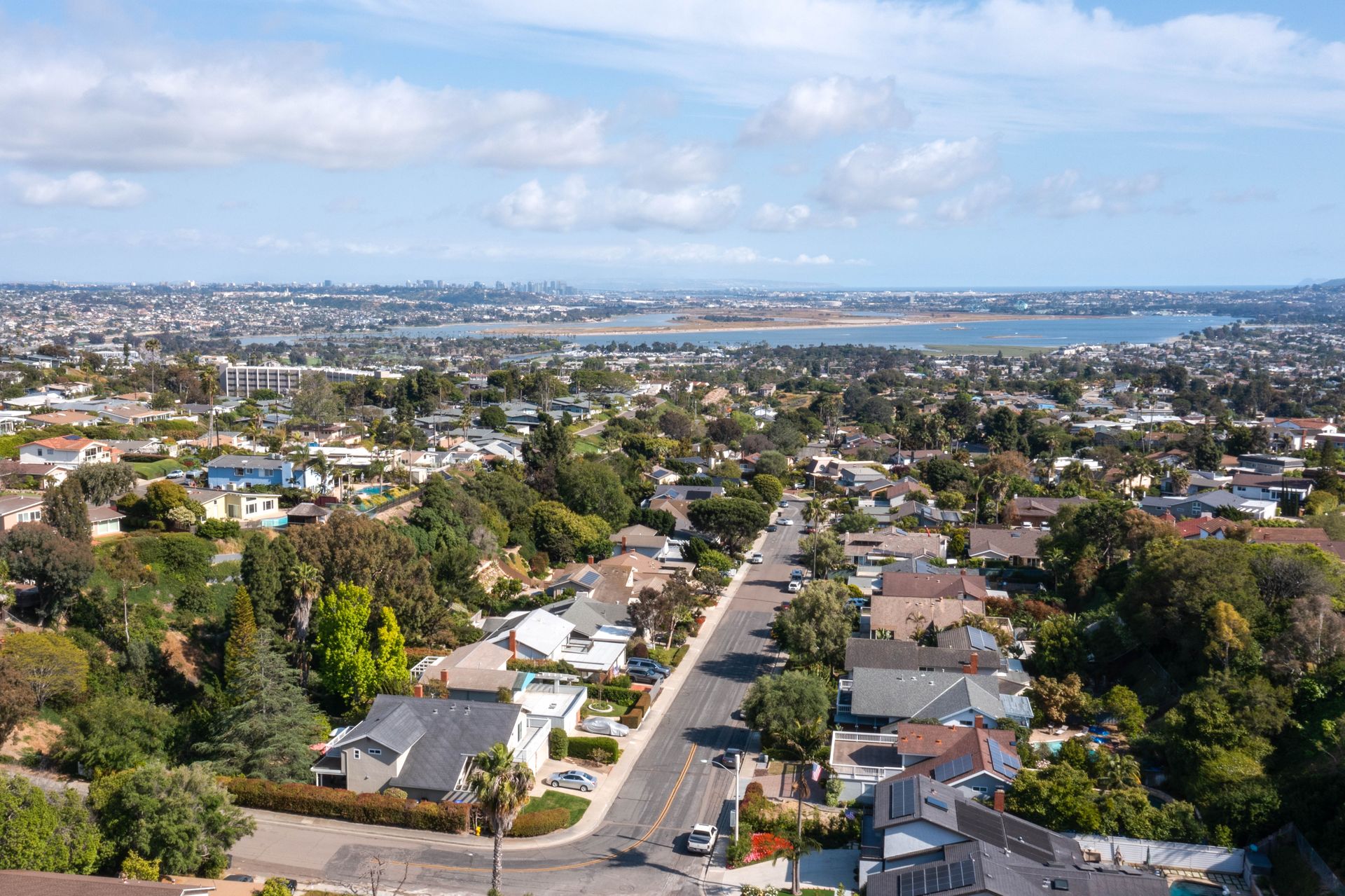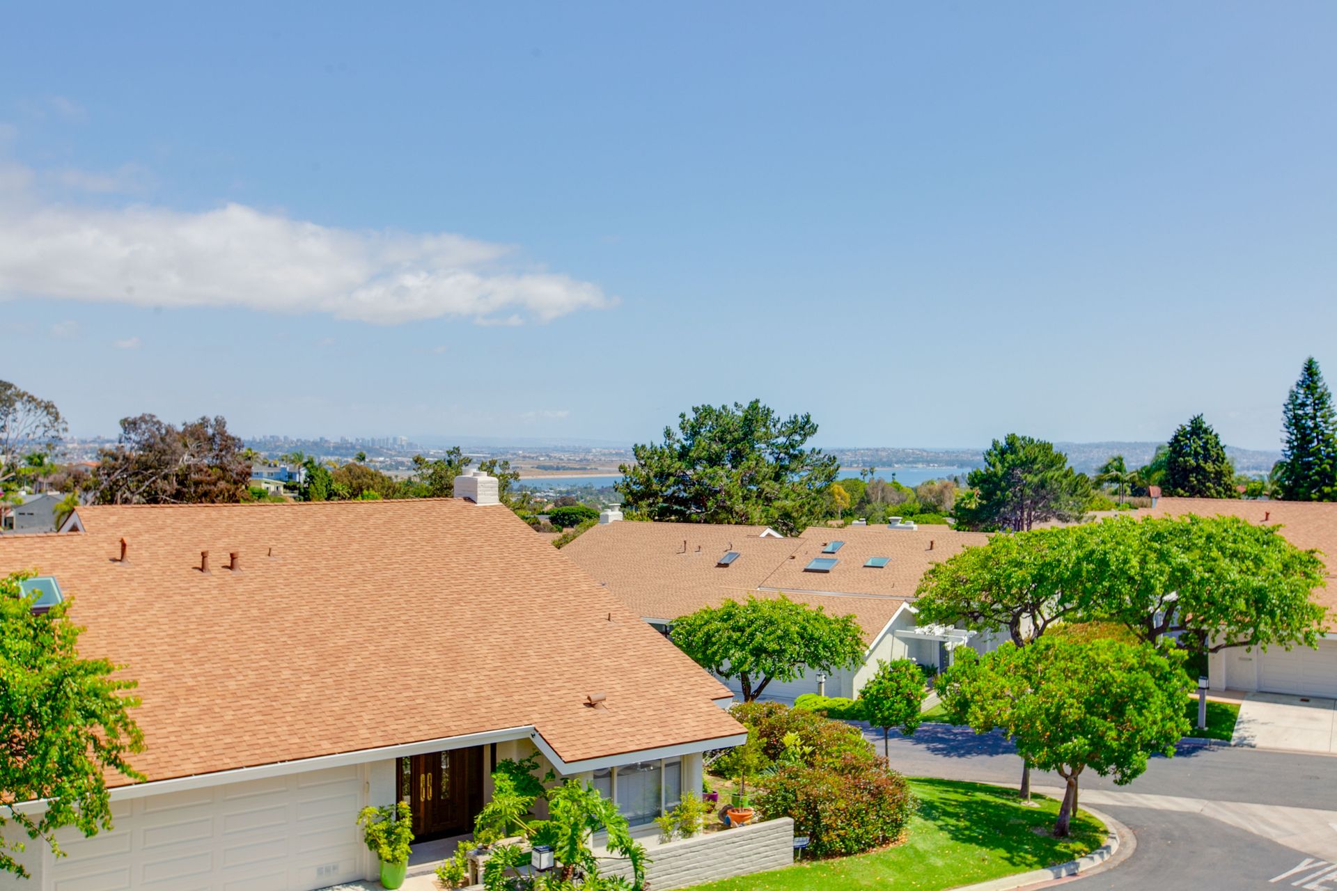 Enjoy expansive bay, ocean and city views on a prime lot located on a private cul-de-sac! This home has been meticulously maintained with a newer roof, remodeled kitchen and fresh exterior and interior paint. All three bedrooms also have scenic views. Enjoy the grand living/dining room with a fireplace which creates an ideal ambiance for gatherings. Savor your morning coffee on a private deck which is surrounded by flowers and mature fruit trees. The spacious primary suite boasts vaulted ceilings with floor to ceiling windows and its own private balcony to enjoy the ocean views and the Sea World fireworks! This is a home to love.