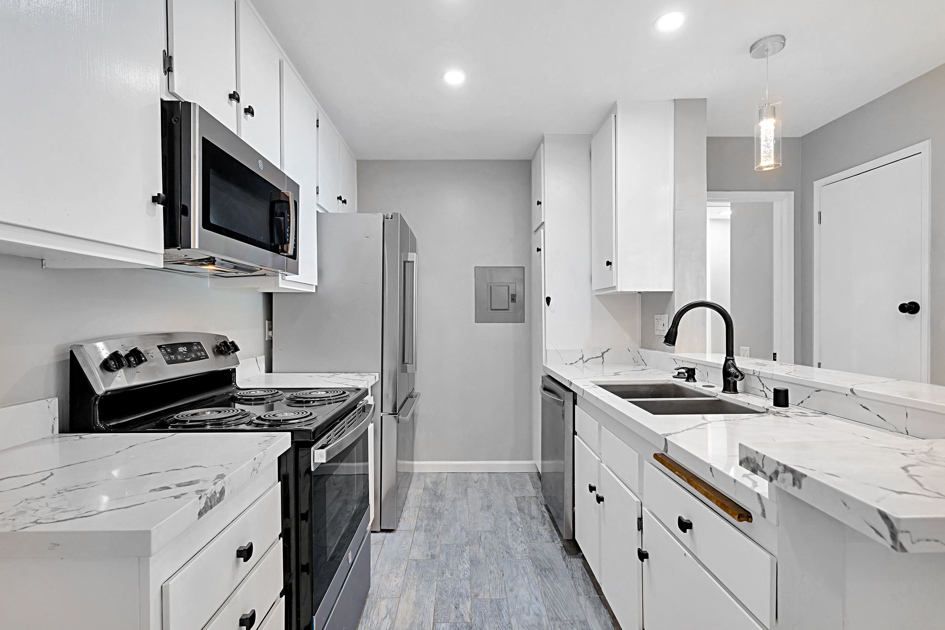 Don’t miss a chance to see this beautifully remodeled top floor unit with laminate and porcelain tile floors, recessed lighting, designer fixtures and tastefully redone kitchen and baths. A light and spacious floor plan offers two bedrooms that each have their own baths. Close to the elevator and prime parking spots! HOA amenities include a sparkling pool and Jacuzzi, a clubhouse, a fitness center, tennis courts and common areas for relaxation with seating and BBQs. Nestled in a wonderful Encino location close to transportation, shopping and restaurants!