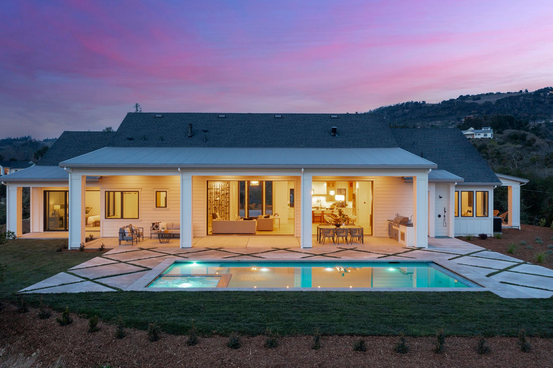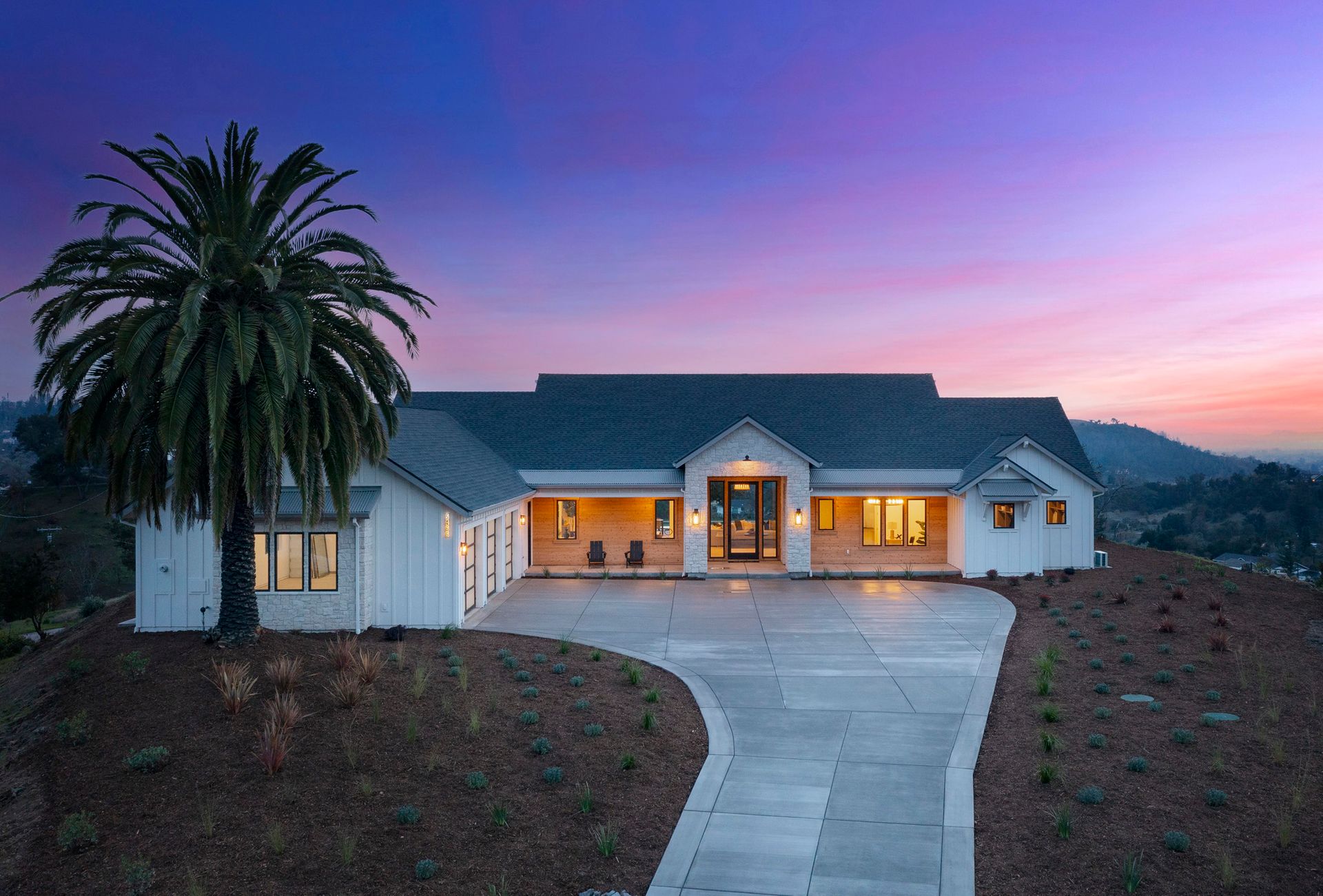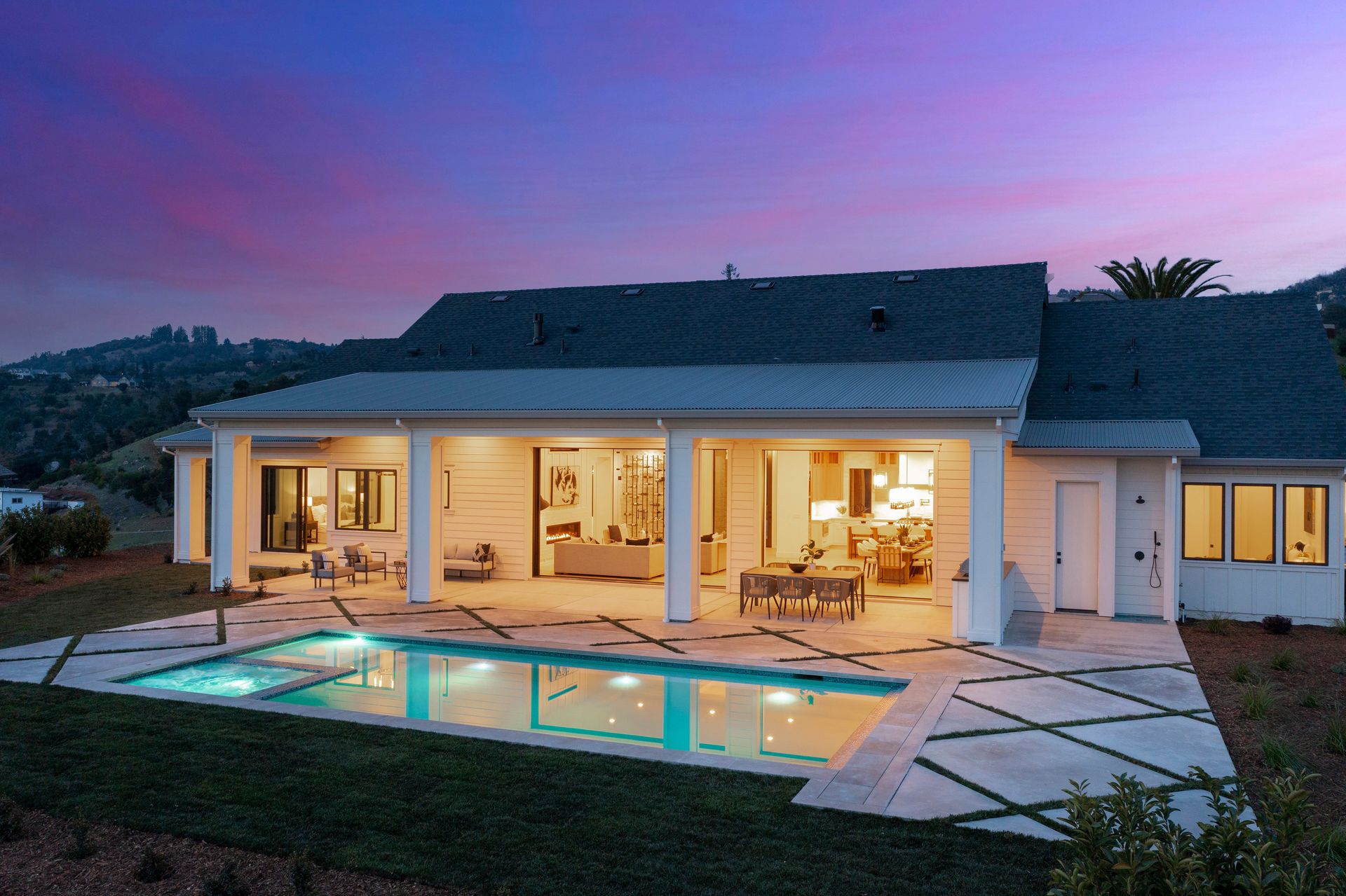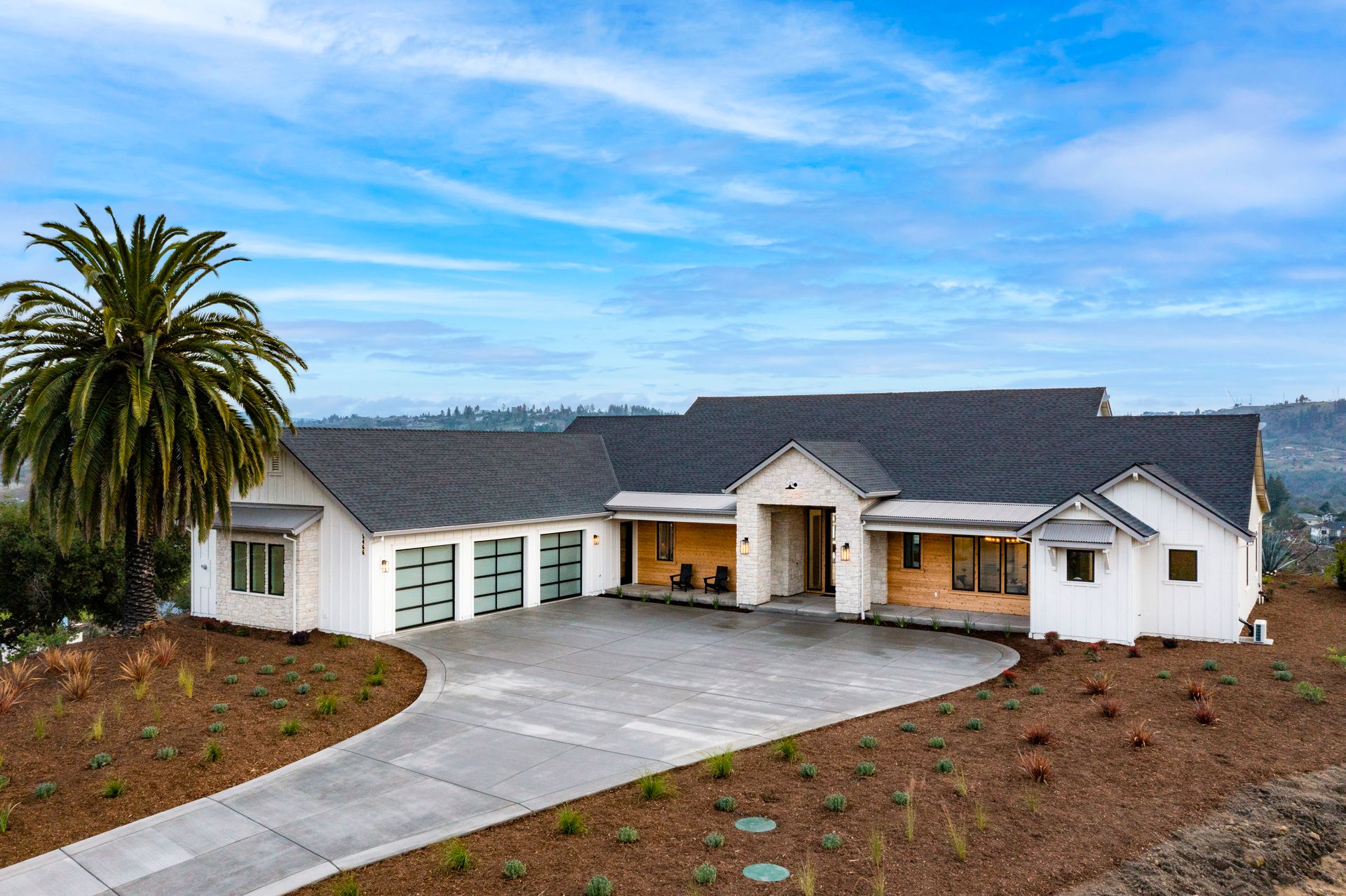 This exceptional newly constructed, custom modern farmhouse located in the heart of Sonoma County with 3,300+/- square feet of single level living space, is set on 1.2+/- tranquil acres and breathtaking views of city lights and hills beyond. Blending architectural integrity with excellent craftsmanship, this stunning home has 3 bedrooms plus an office, 3 full baths and 2 half baths, and is elegantly appointed with extensive use of wide plank wood flooring and wired for audio in much of the home. The open-concept interior with a temperature controlled wine display showcase, opens to the rear patio, pool/spa and covered terrace through 10 ft. high disappearing moving glass doors from the great room. The dining area is open to a gourmet kitchen with quartz center island. The primary suite has 2 walk-in closets and direct access to the terrace which takes full advantage of the views. Exterior entertaining includes an outdoor kitchen with built-in grill, pool bath and outdoor shower. This distinctive custom home is in the heart of wine country with close proximity to wineries, fine dining and the Sonoma County Airport.
