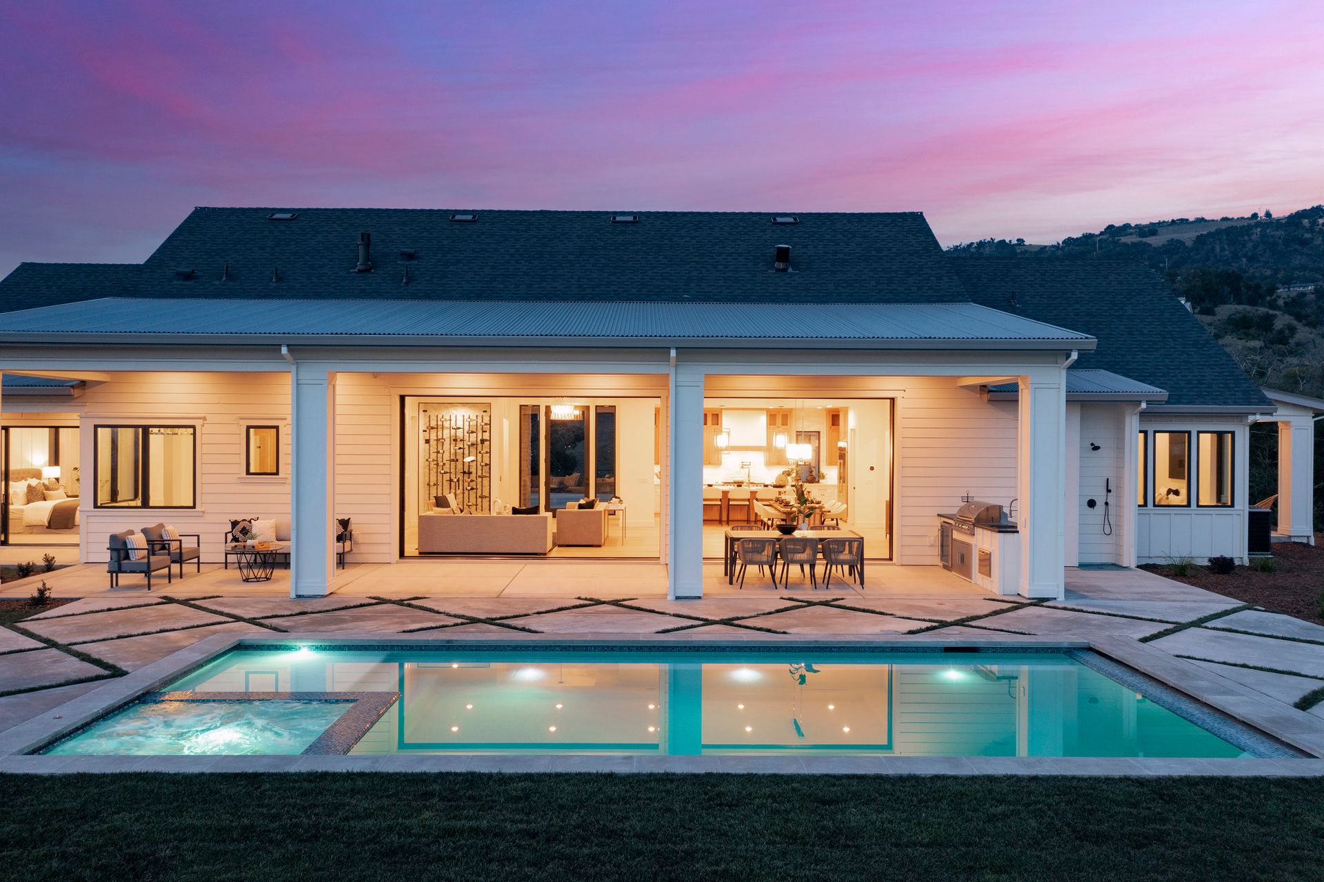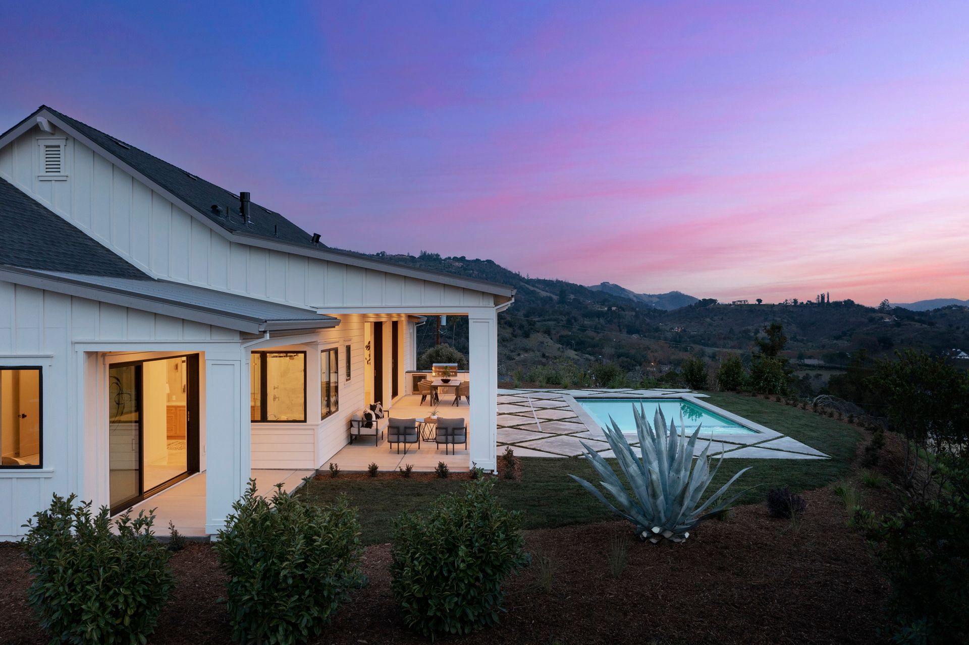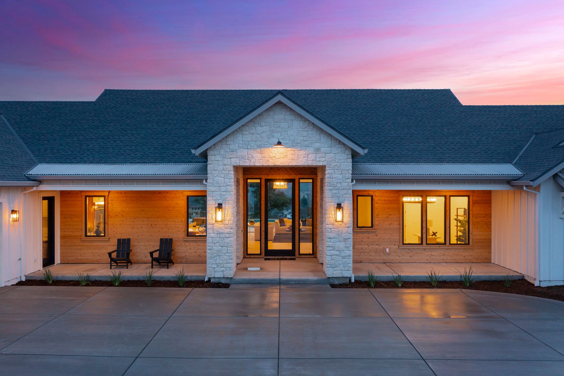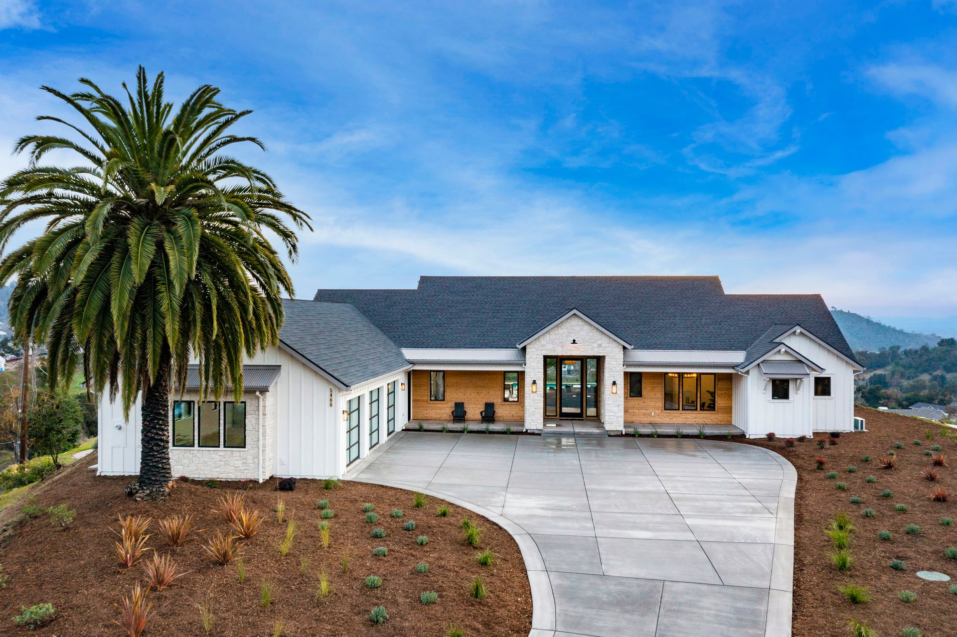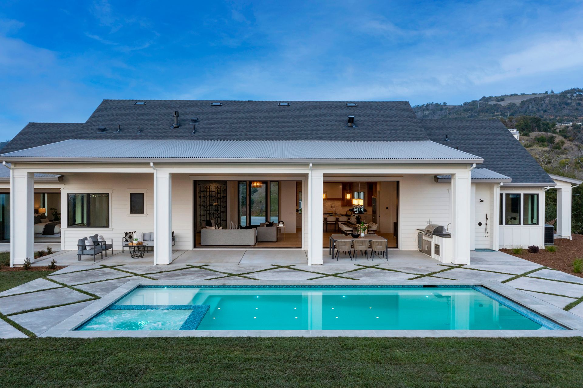 This exceptional newly constructed, custom modern farmhouse located in the heart of Sonoma County with 3,300+/- square feet of single level living space, is set on 1.2+/- tranquil acres and breathtaking views of city lights and hills beyond. Blending architectural integrity with excellent craftsmanship, this stunning home has 3 bedrooms plus an office, 3 full baths and 2 half baths, and is elegantly appointed with extensive use of wide plank wood flooring and wired for audio in much of the home. The open-concept interior with a temperature controlled wine display showcase, opens to the rear patio, pool/spa and covered terrace through 10 ft. high disappearing moving glass doors from the great room. The dining area is open to a gourmet kitchen with quartz center island. The primary suite has 2 walk-in closets and direct access to the terrace which takes full advantage of the views. Exterior entertaining includes an outdoor kitchen with built-in grill, pool bath and outdoor shower. This distinctive custom home is in the heart of wine country with close proximity to wineries, fine dining and the Sonoma County Airport.
