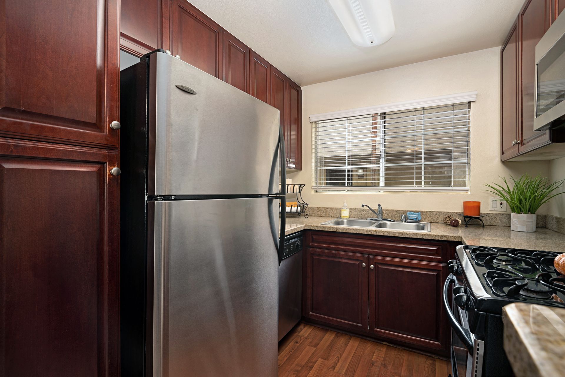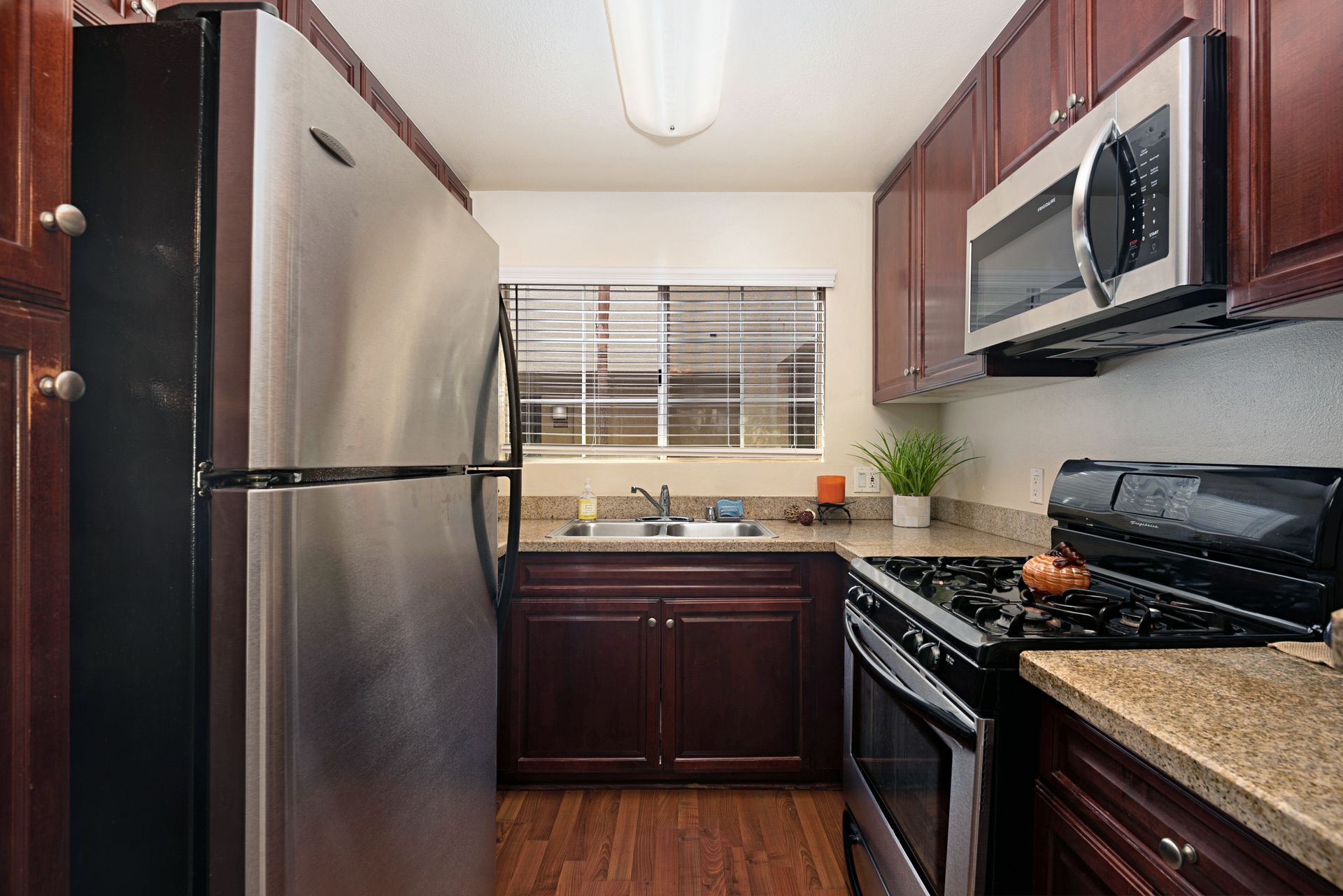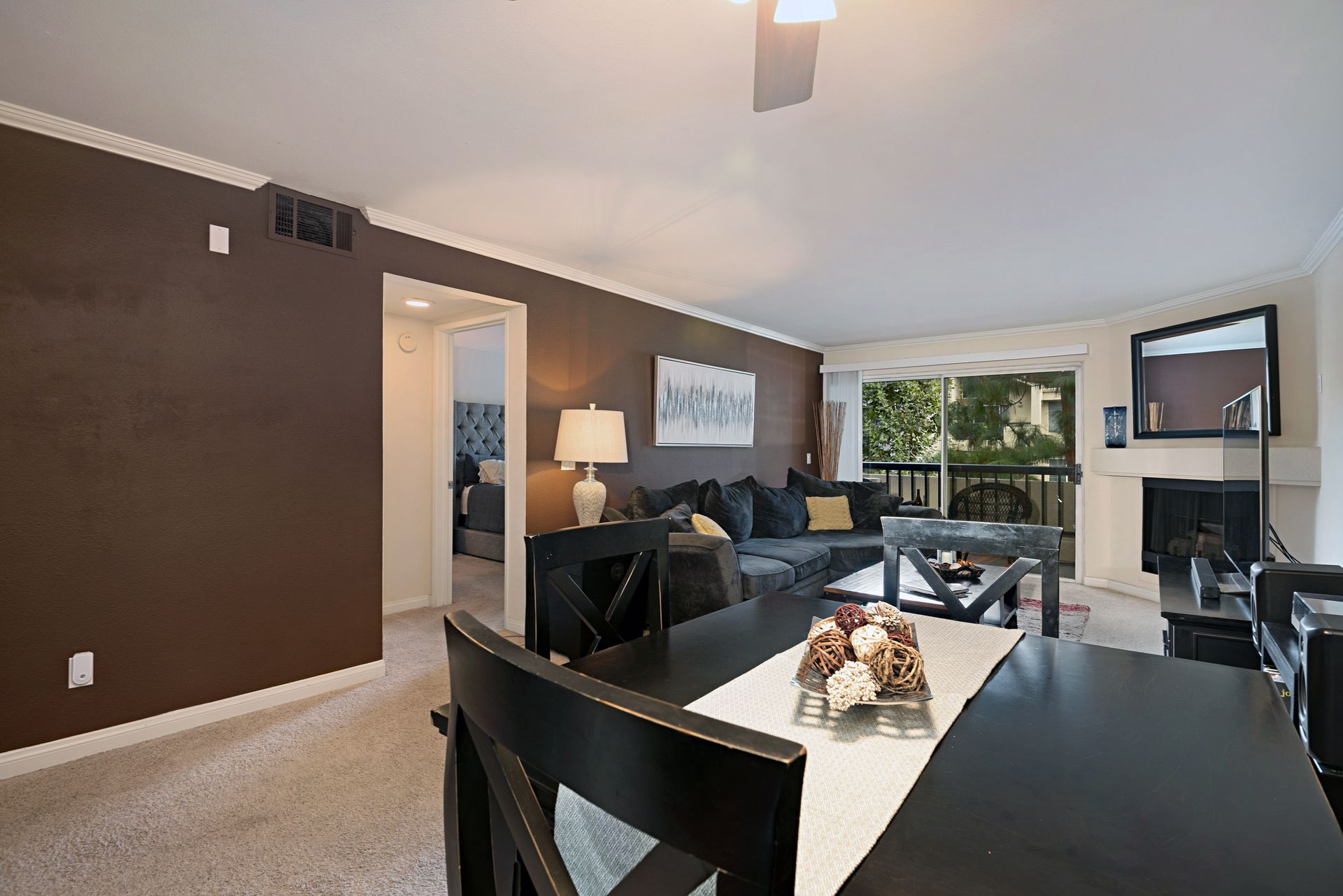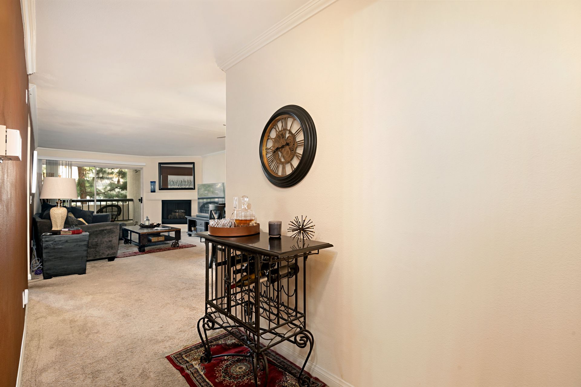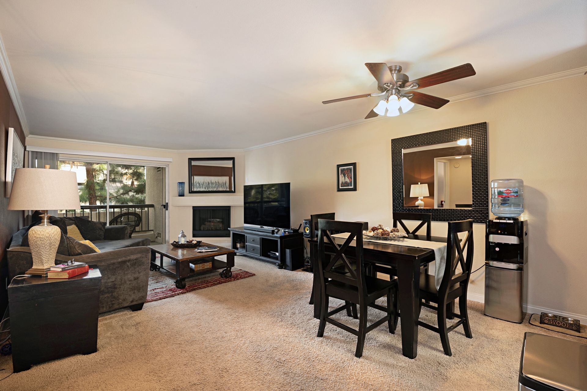 Experience Luxury resort-style living at the Met in Warner City, a 24-hour guard gated community in a prestigious area of Woodland Hills. This sophisticated two bedroom condo is close to "The Village" in Woodland Hills, movie theaters, Westfield Mall, restaurants and more. The kitchen is appointed with cherry wood cabinets, granite counters and beautiful stainless steel appliances. A huge living room features crown moldings and is adorned with a fireplace. The private outdoor balcony is ideal for al fresco dining. Find newer carpet throughout the unit. A sizeable primary suite offers dual sinks and plenty of closet space. The large secondary bedroom is currently being used as an office/music room. Additional features include a stackable in-house laundry room and two tandem parking spaces. This unit is close to the entrance gate for convenient entry and exit. The complex offers six tennis courts, two racquetball courts, playgrounds, four pools, a sauna and a 24-hour fitness center to enjoy. HOA fees include water, trash, greenbelts, landscape, maintenance and earthquake insurance.