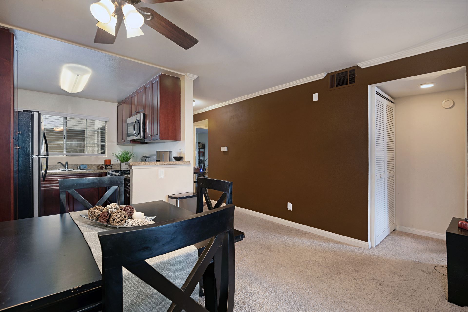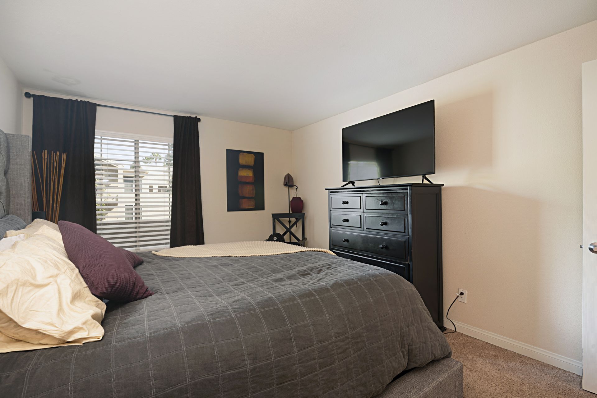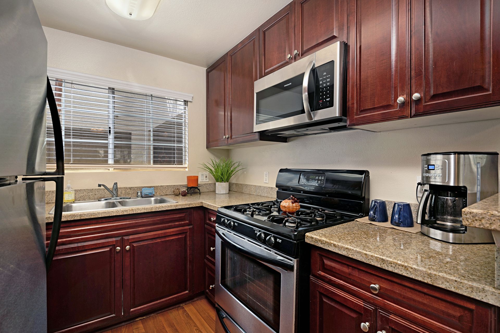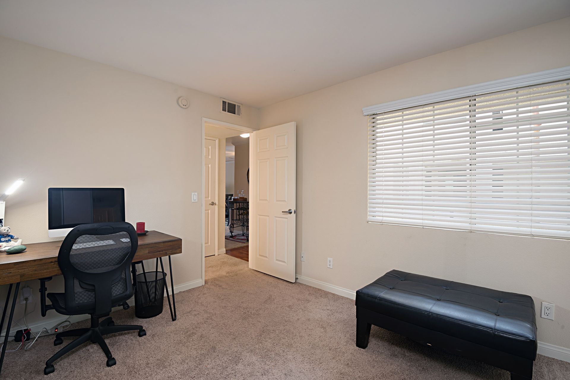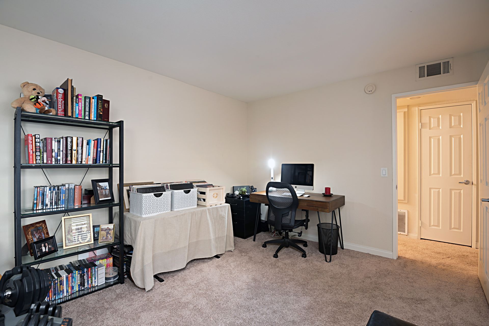 Experience Luxury resort-style living at the Met in Warner City, a 24-hour guard gated community in a prestigious area of Woodland Hills. This sophisticated two bedroom condo is close to "The Village" in Woodland Hills, movie theaters, Westfield Mall, restaurants and more. The kitchen is appointed with cherry wood cabinets, granite counters and beautiful stainless steel appliances. A huge living room features crown moldings and is adorned with a fireplace. The private outdoor balcony is ideal for al fresco dining. Find newer carpet throughout the unit. A sizeable primary suite offers dual sinks and plenty of closet space. The large secondary bedroom is currently being used as an office/music room. Additional features include a stackable in-house laundry room and two tandem parking spaces. This unit is close to the entrance gate for convenient entry and exit. The complex offers six tennis courts, two racquetball courts, playgrounds, four pools, a sauna and a 24-hour fitness center to enjoy. HOA fees include water, trash, greenbelts, landscape, maintenance and earthquake insurance.