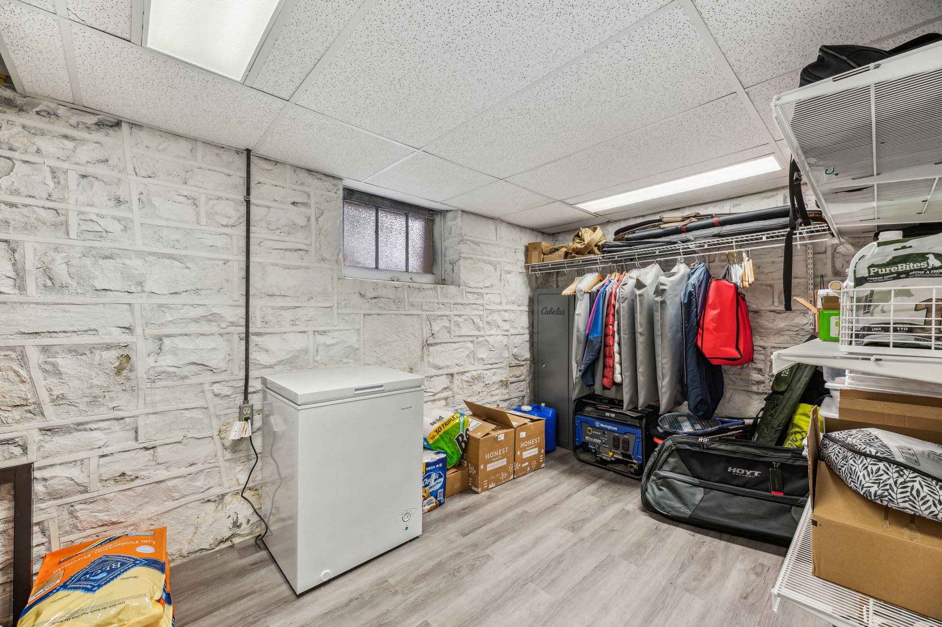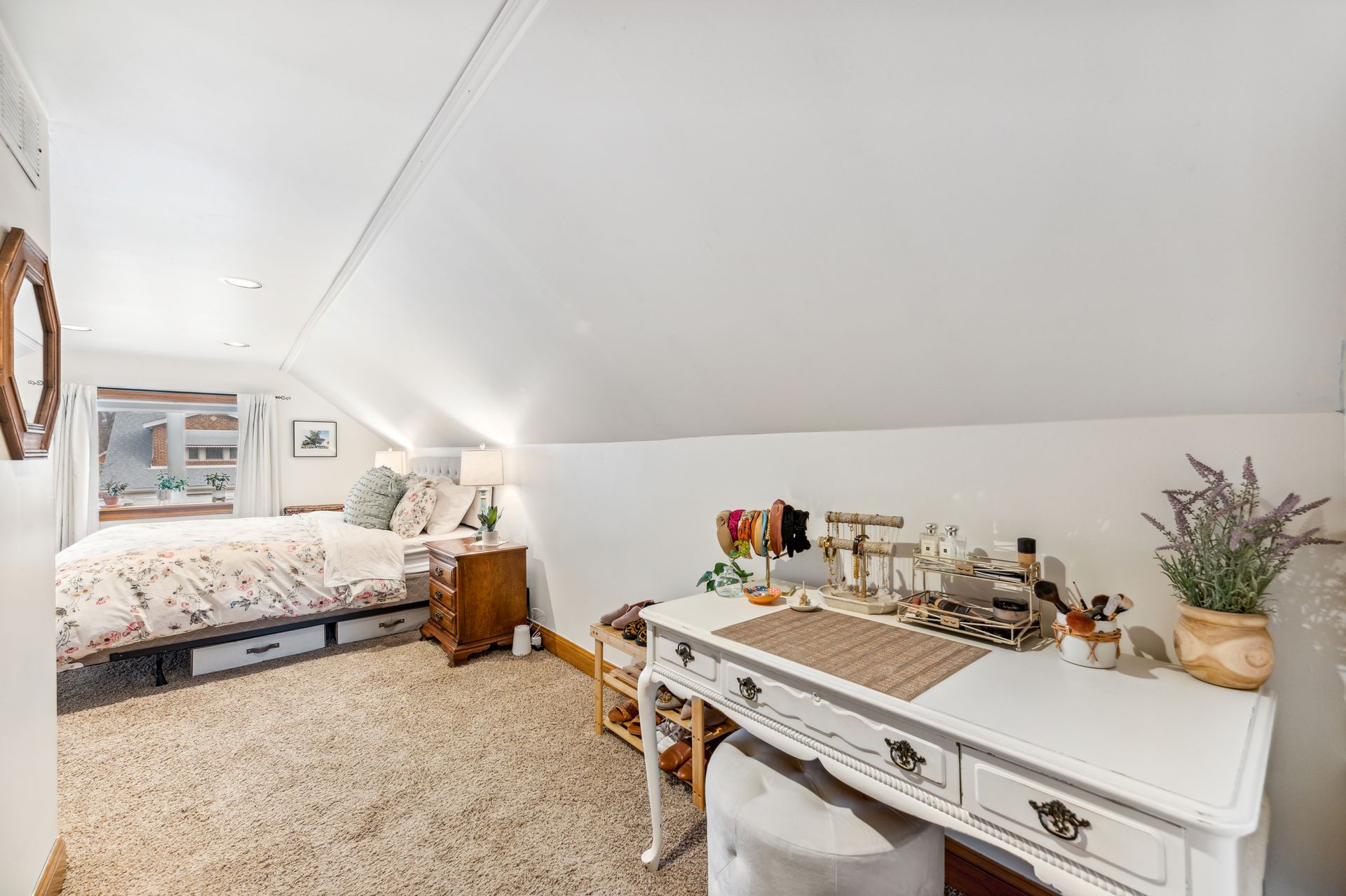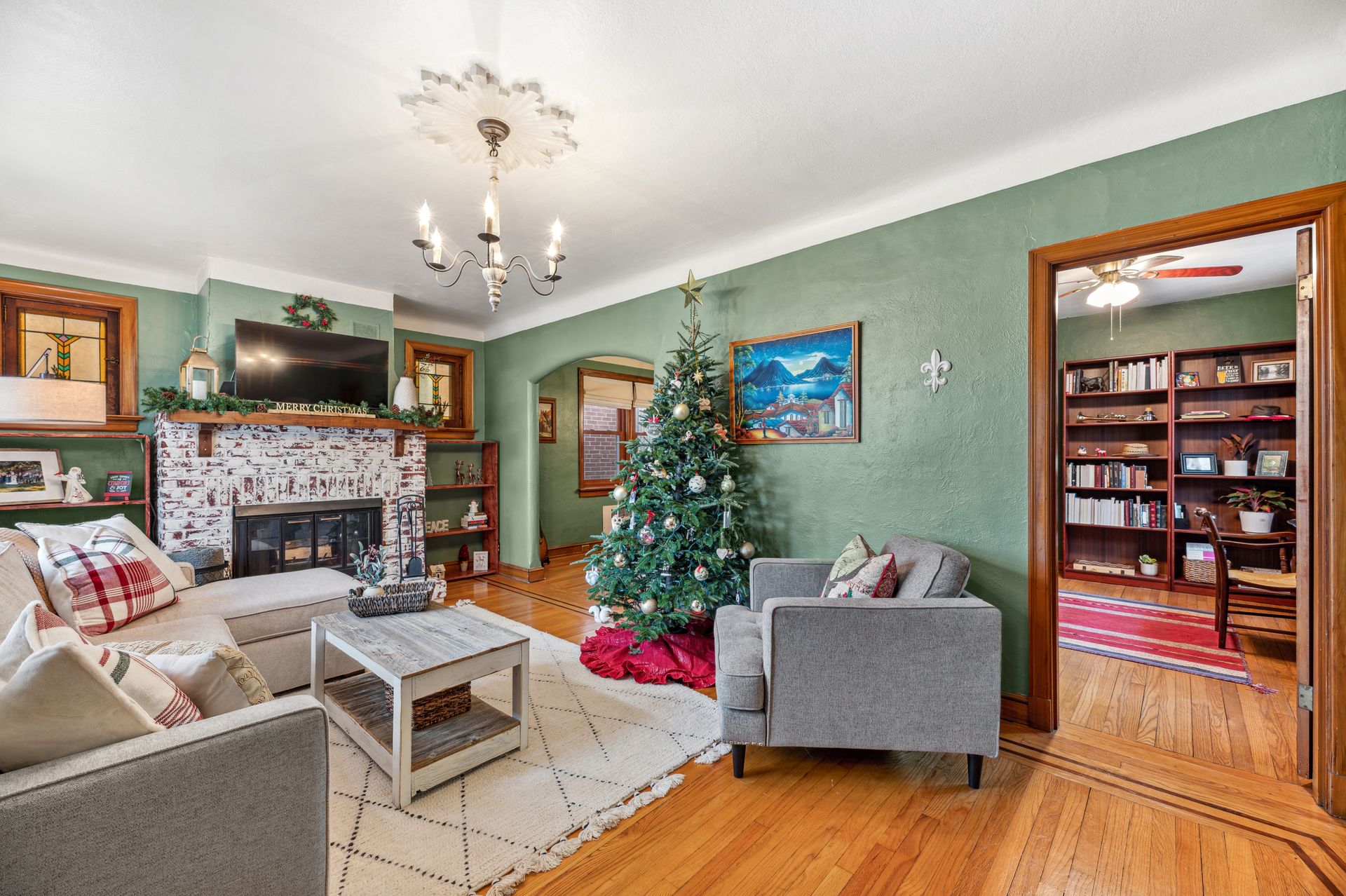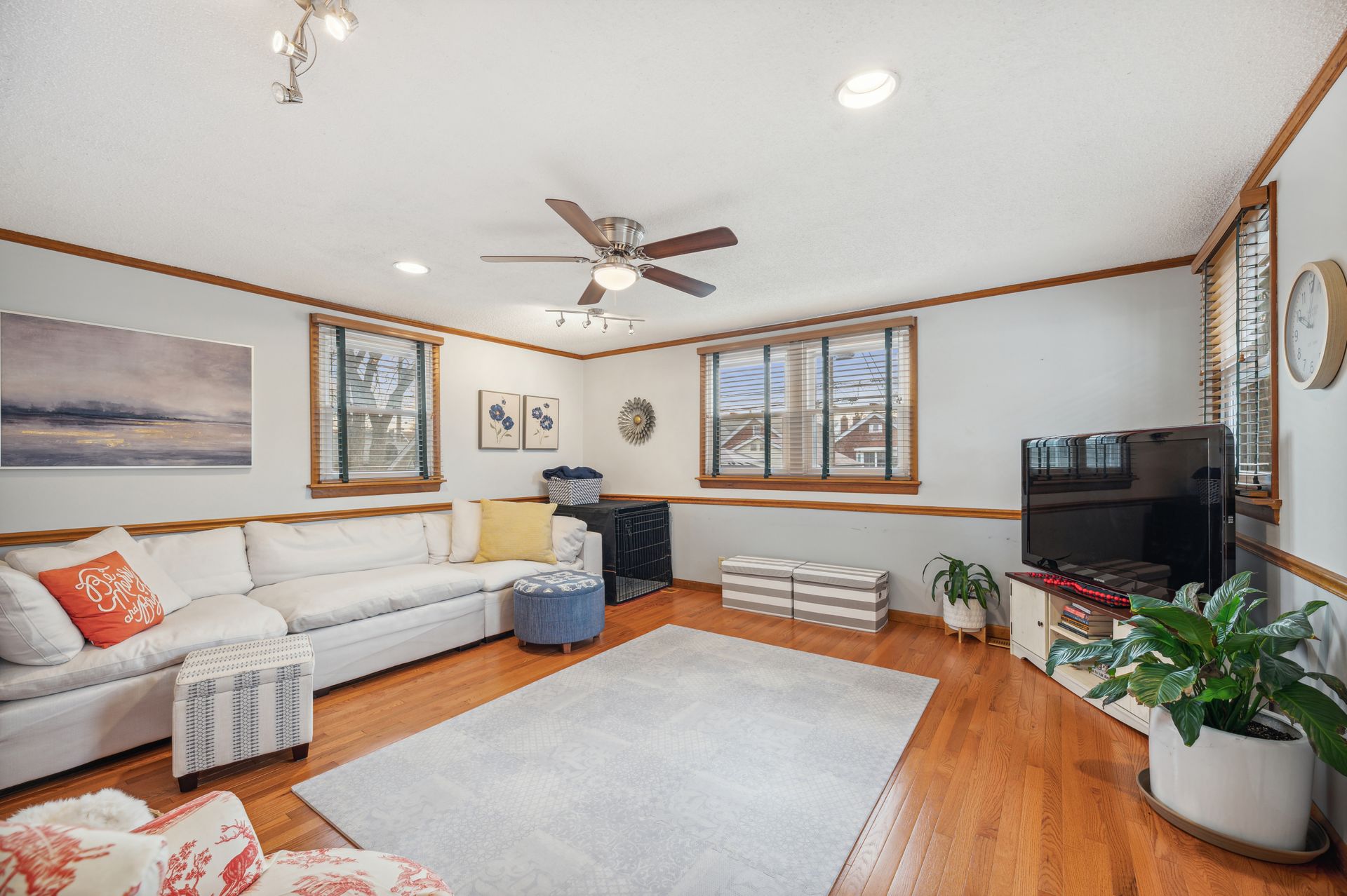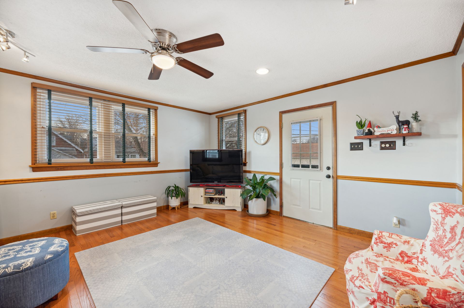 Renovated four bedroom, two bath, 1.5-story charmer in move-in condition in a sought-after location and complete with the Home Protection Plan for the buyer! Updates include a center island granite kitchen with stainless appliances, remodeled baths, a newer roof, fresh interior paint including fireplace, new light fixtures and recessed lights, new wood floor in the upstairs bedroom, a new brick patio, and new wood fencing on two sides in the level back yard. Other amenities feature stained glass windows, a skylight, a cedar-lined closet in the main floor bedroom, and a walkout lower level with two finished rooms with updated vinyl flooring. Attractive floor plan with two bedrooms and one bath on both the first and second floors. Super size, condition, and value!